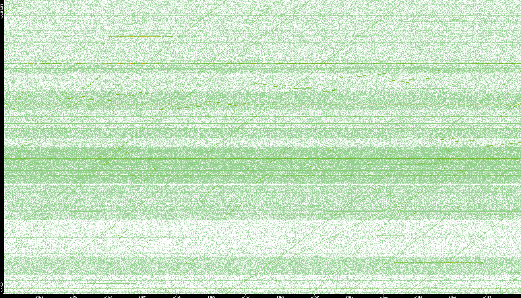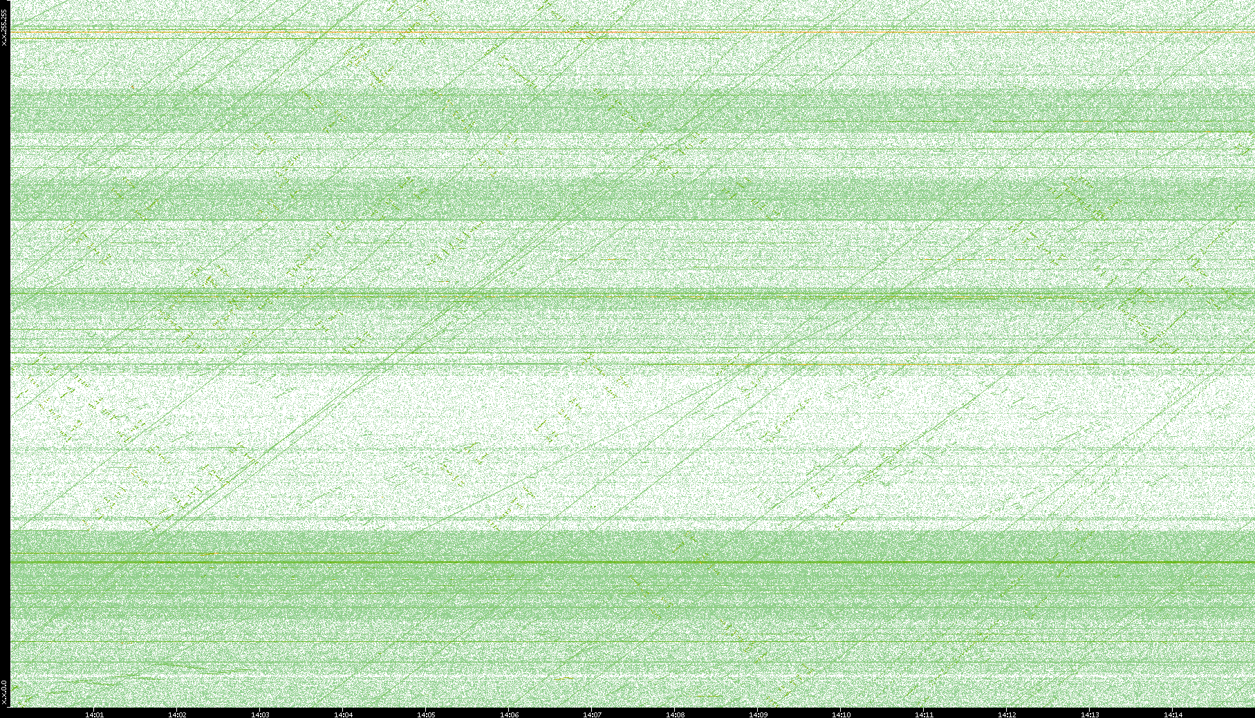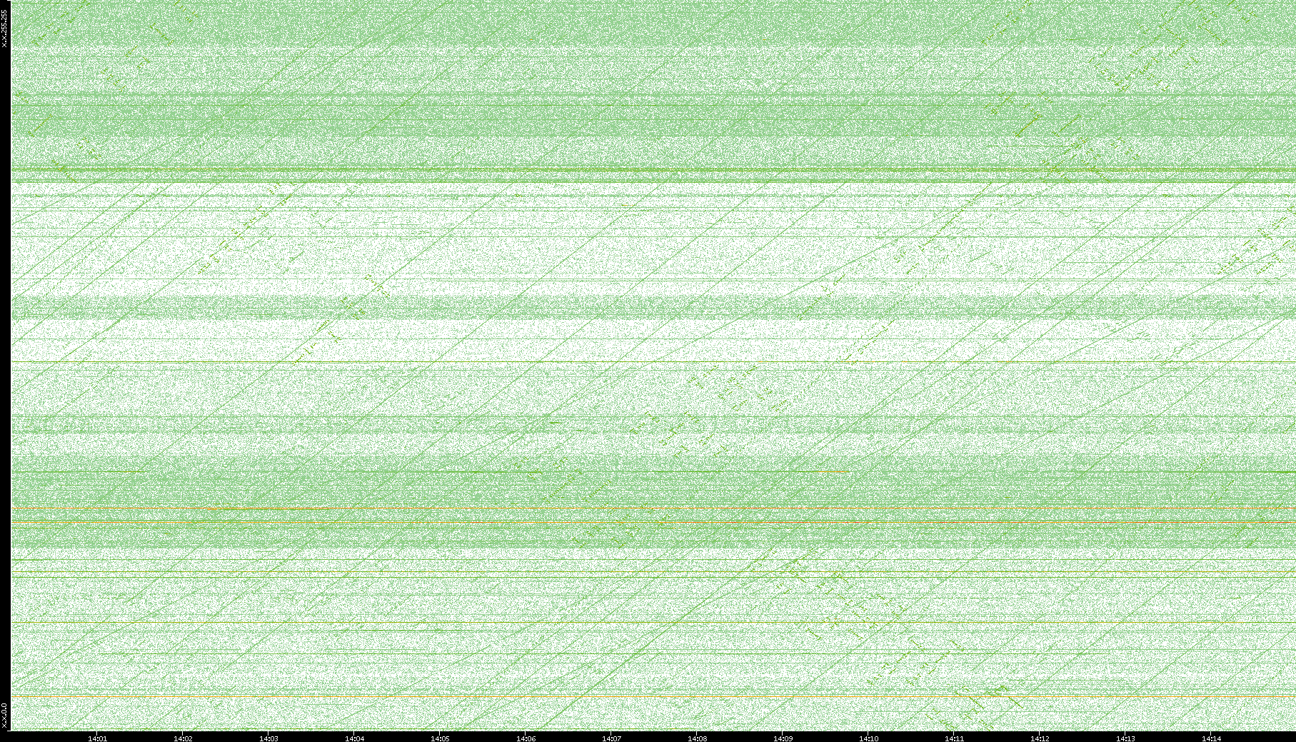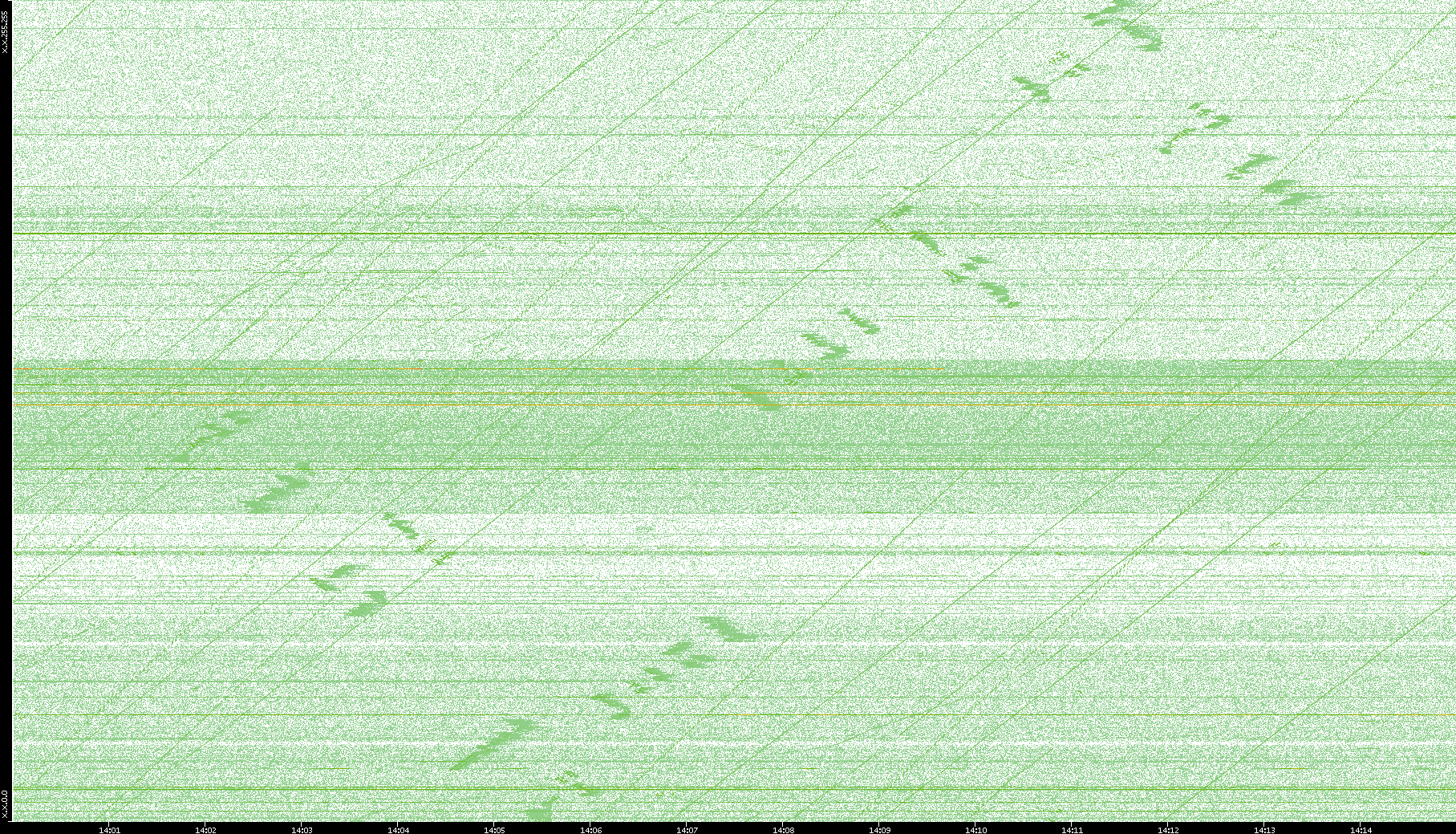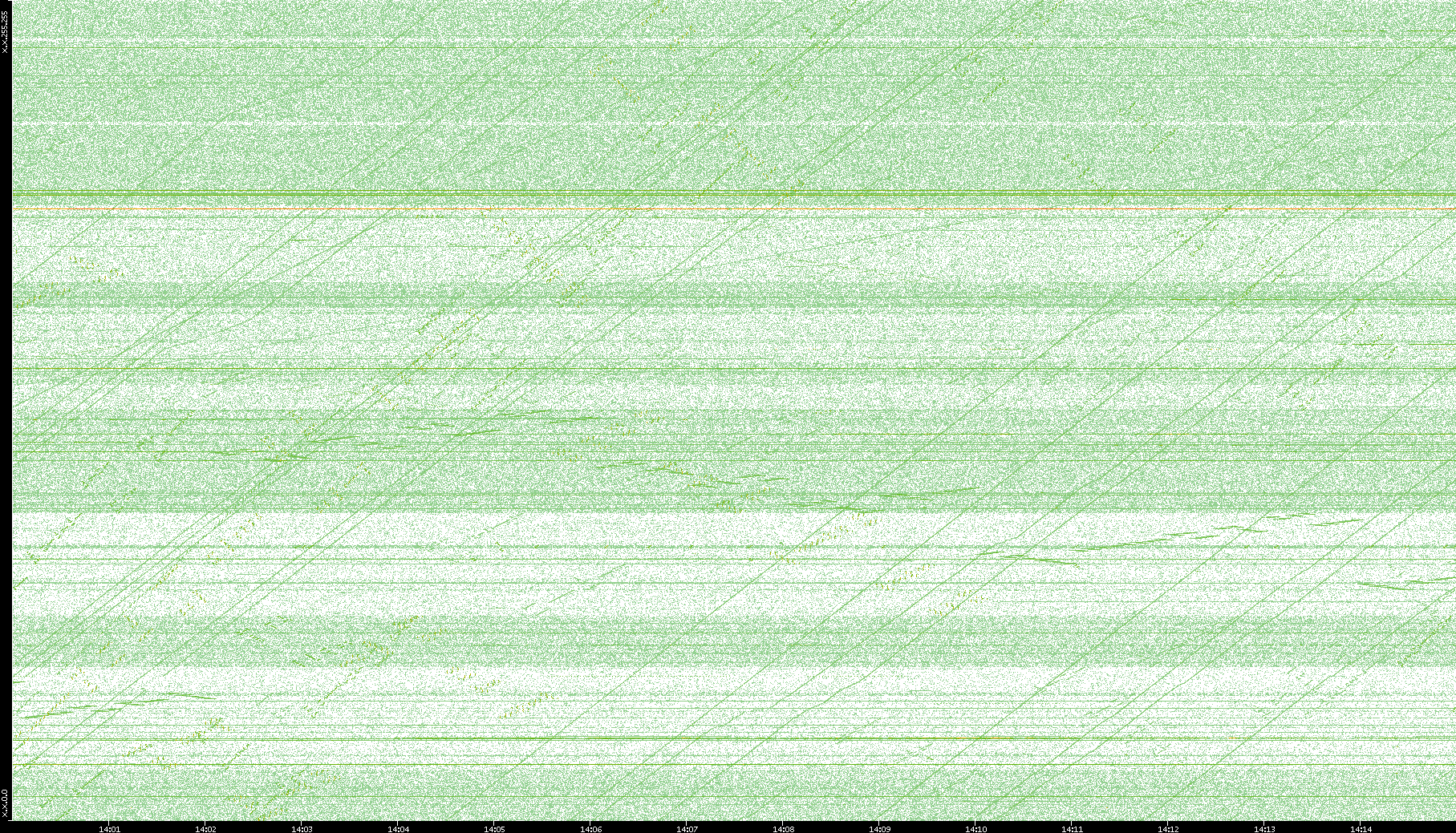 2003/10/14 Dest. IP vs. Time Dest. Port vs. Time Src. IP vs. Time Src. Port vs. Time Nb. of Packets vs. Time Throughput vs. Time Average Packet Size vs. Time Entropy of Port vs. Time