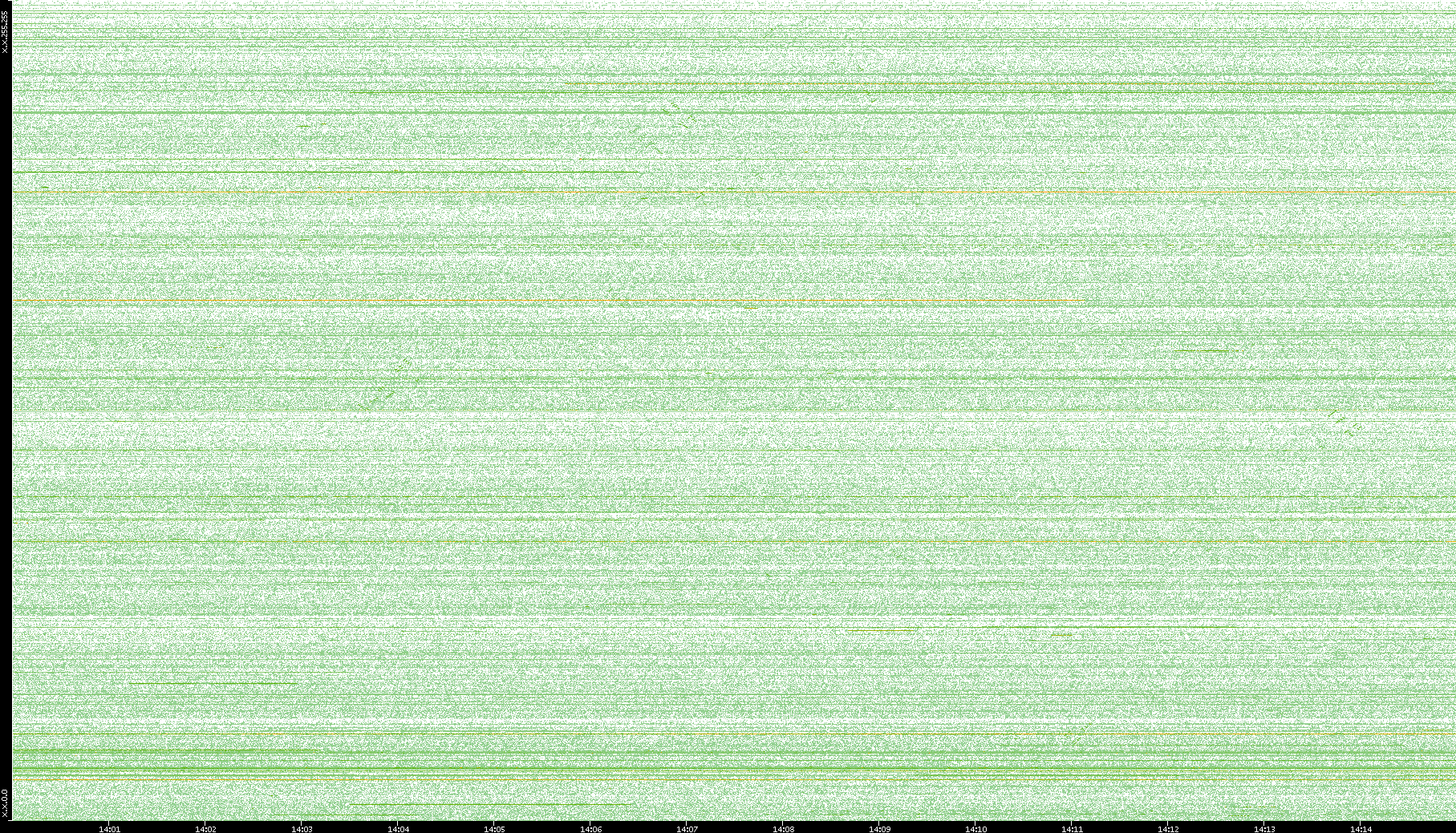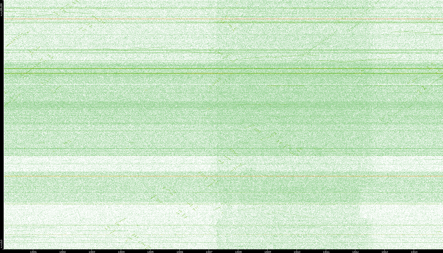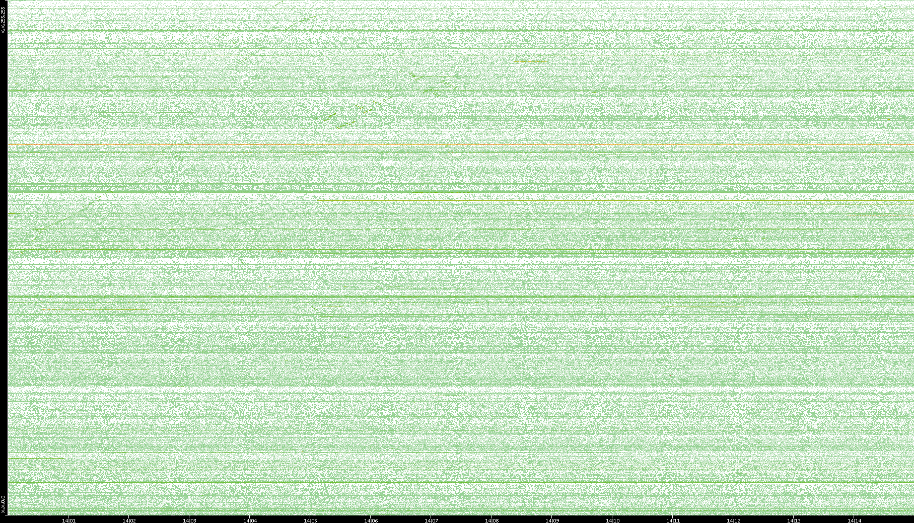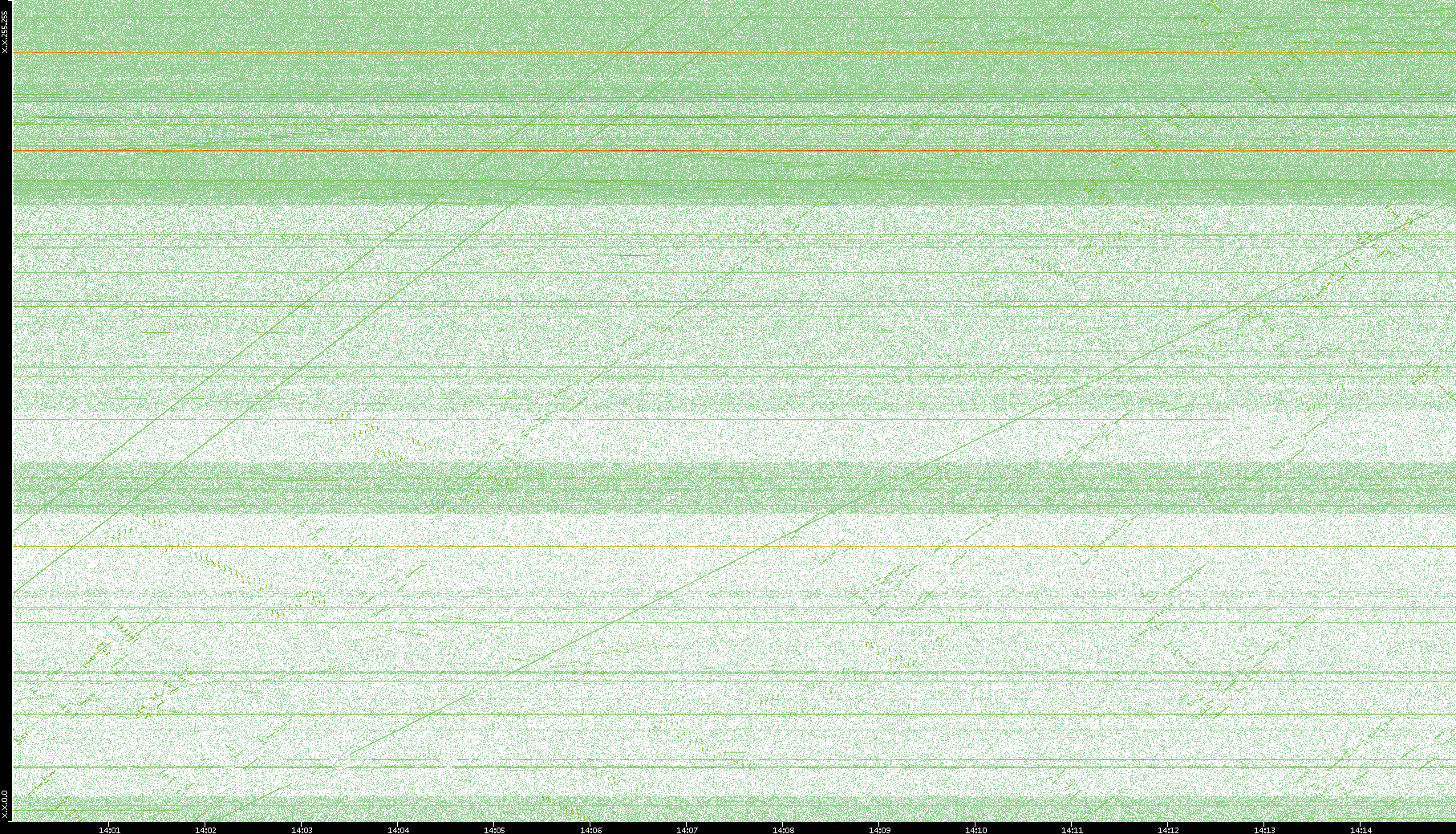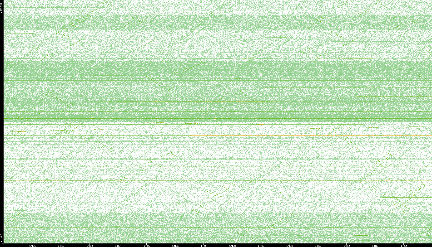 2003/10/14 Dest. IP vs. Time Dest. Port vs. Time Src. IP vs. Time Src. Port vs. Time Nb. of Packets vs. Time Throughput vs. Time Average Packet Size vs. Time Entropy of Port vs. Time