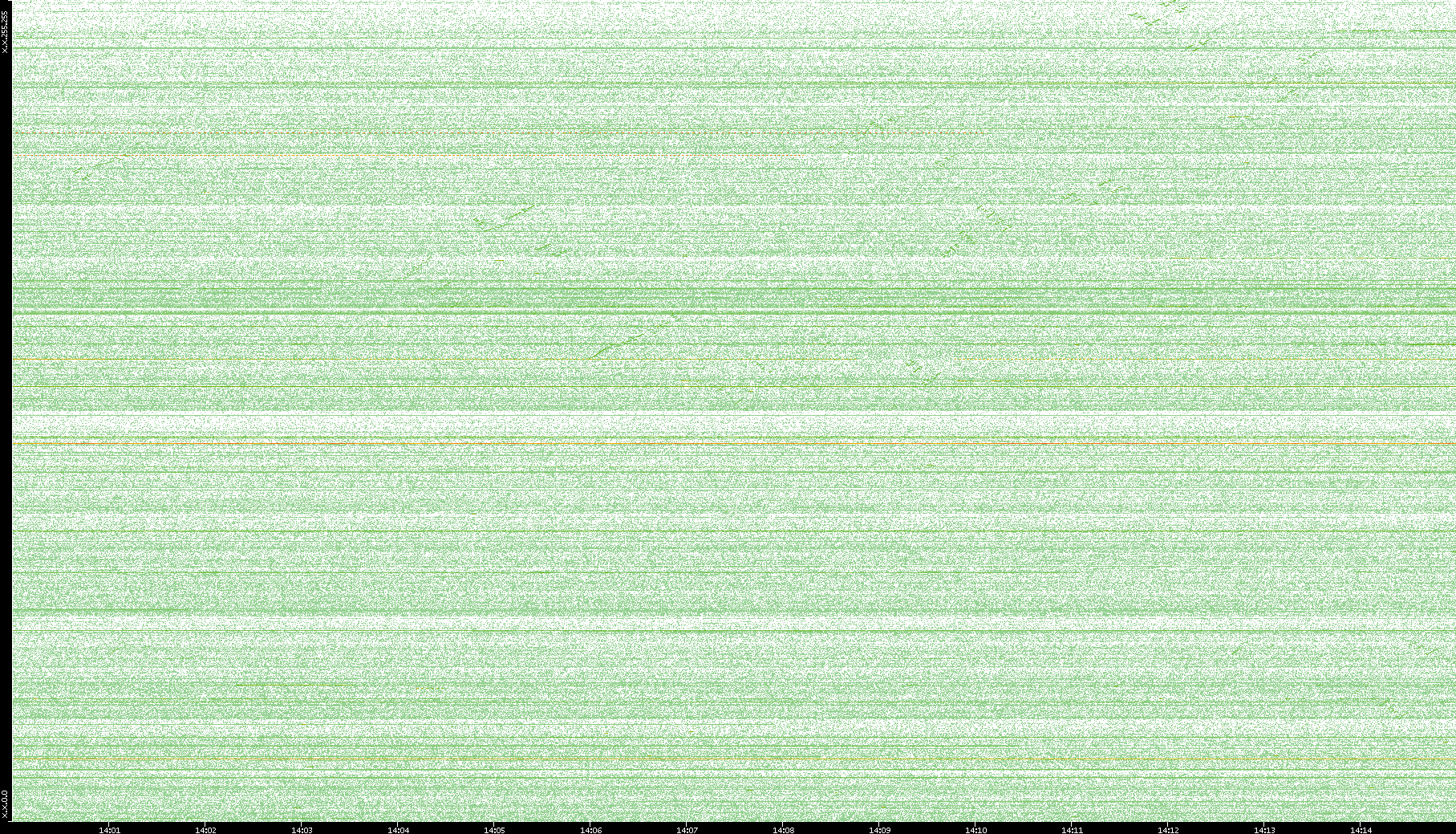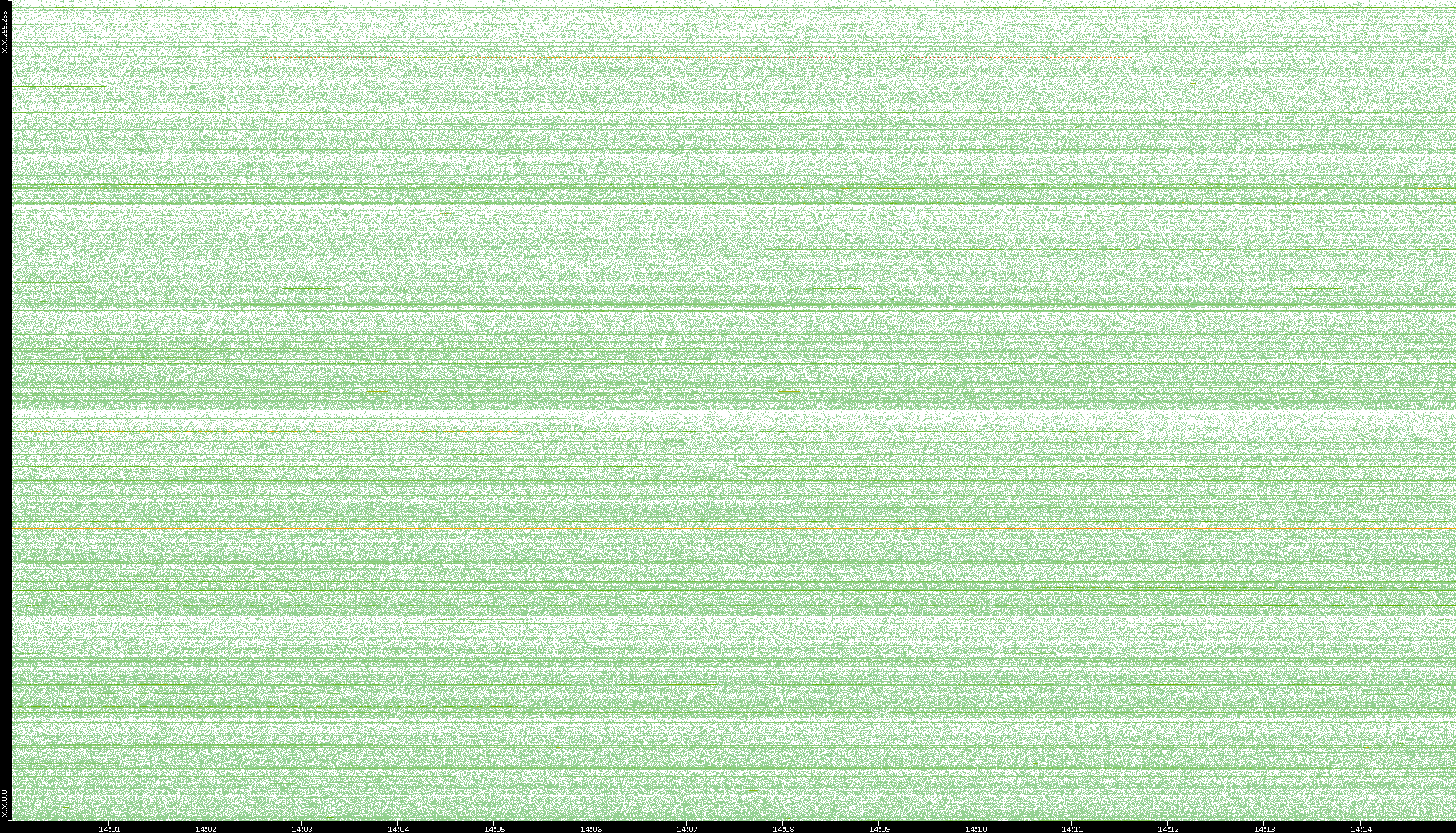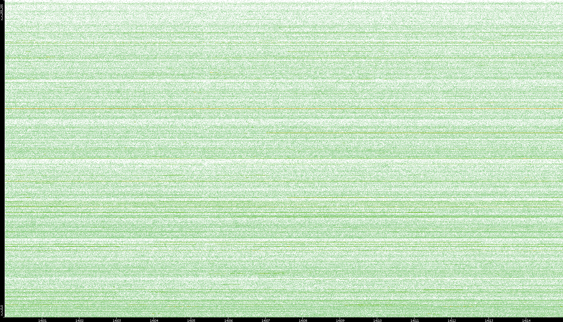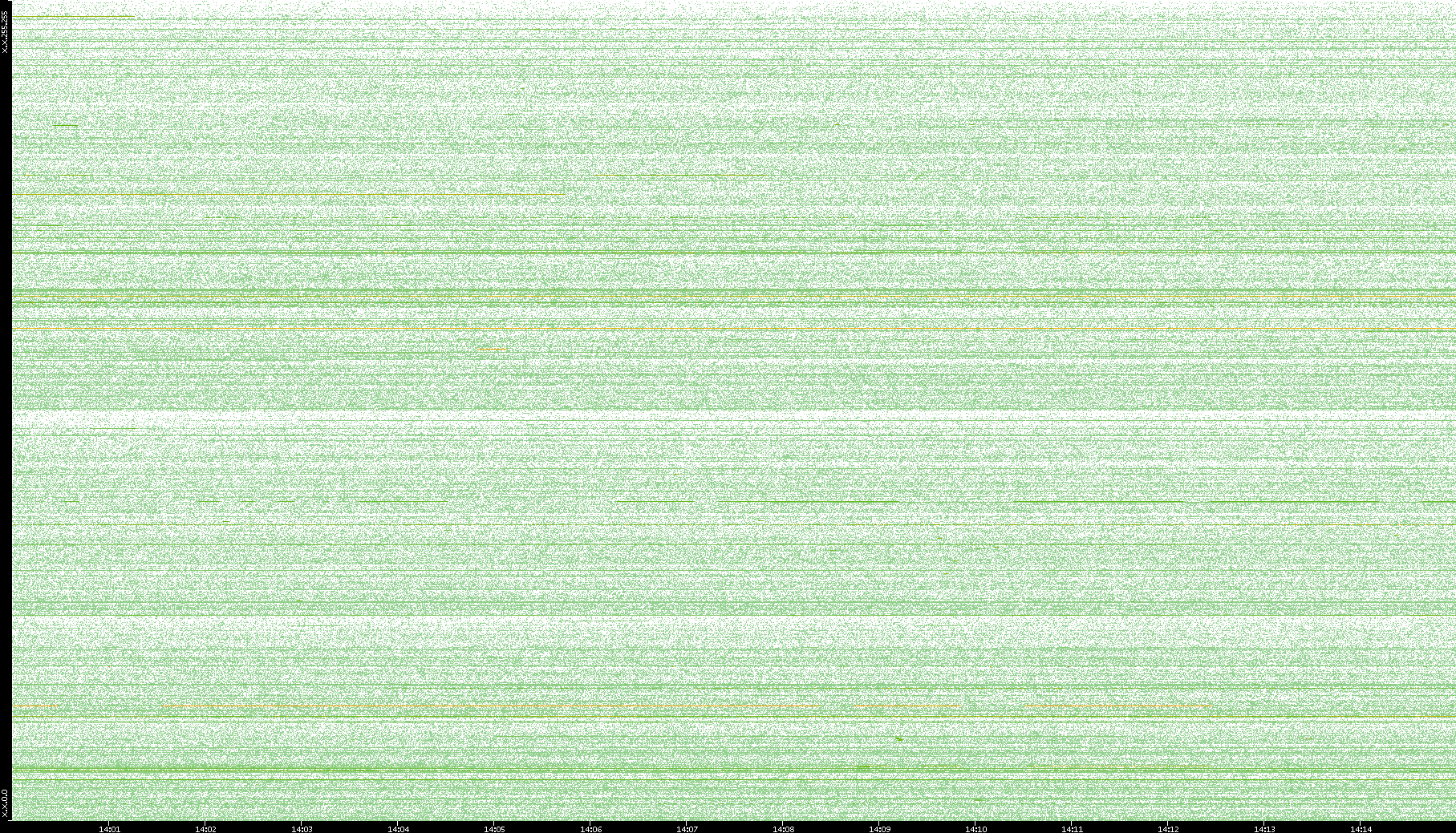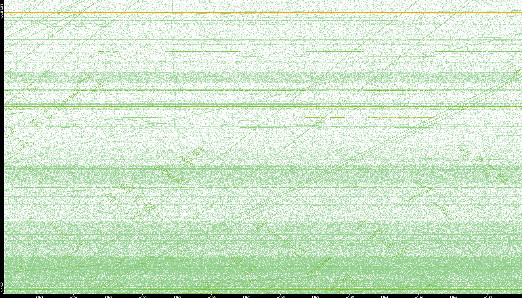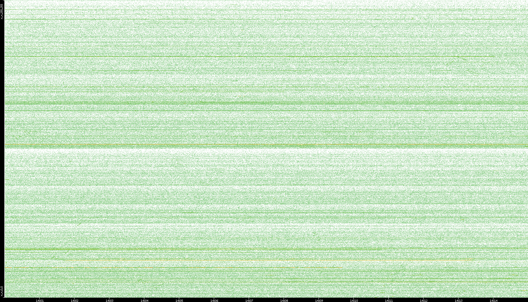 2003/10/14 Dest. IP vs. Time Dest. Port vs. Time Src. IP vs. Time Src. Port vs. Time Nb. of Packets vs. Time Throughput vs. Time Average Packet Size vs. Time Entropy of Port vs. Time