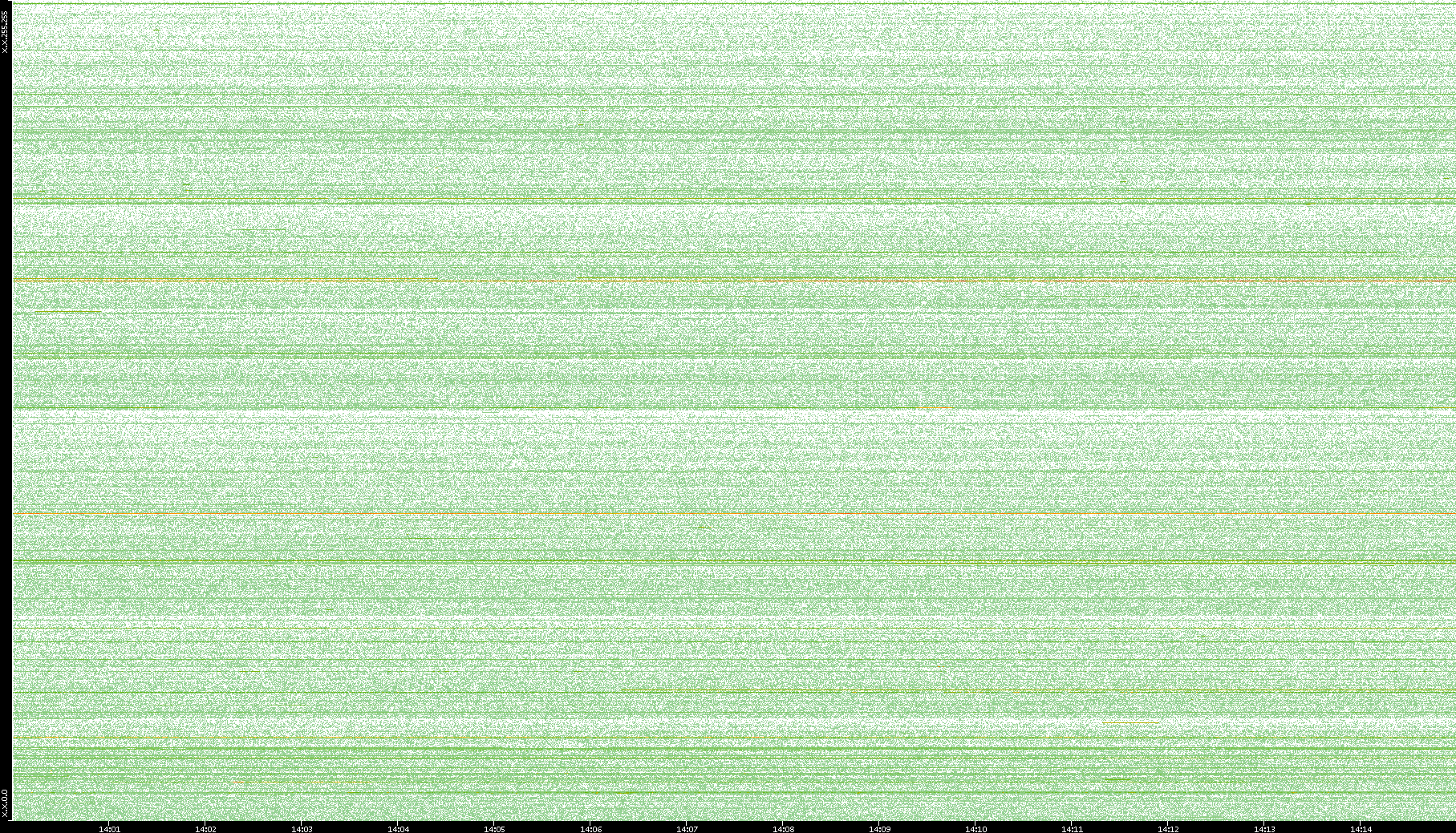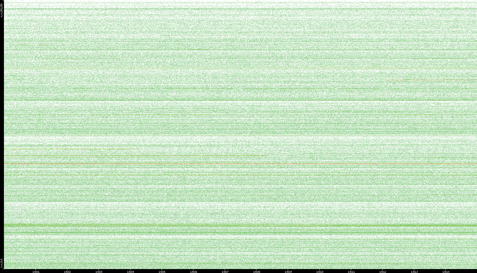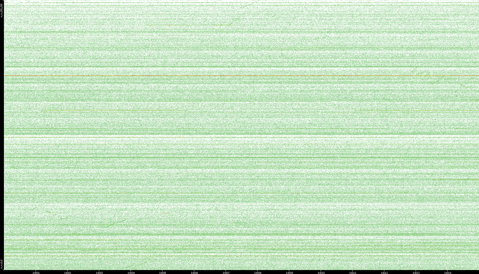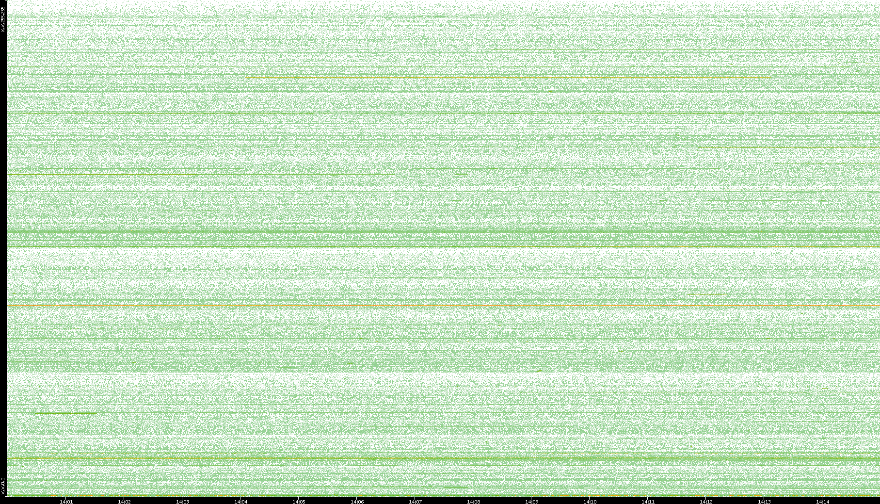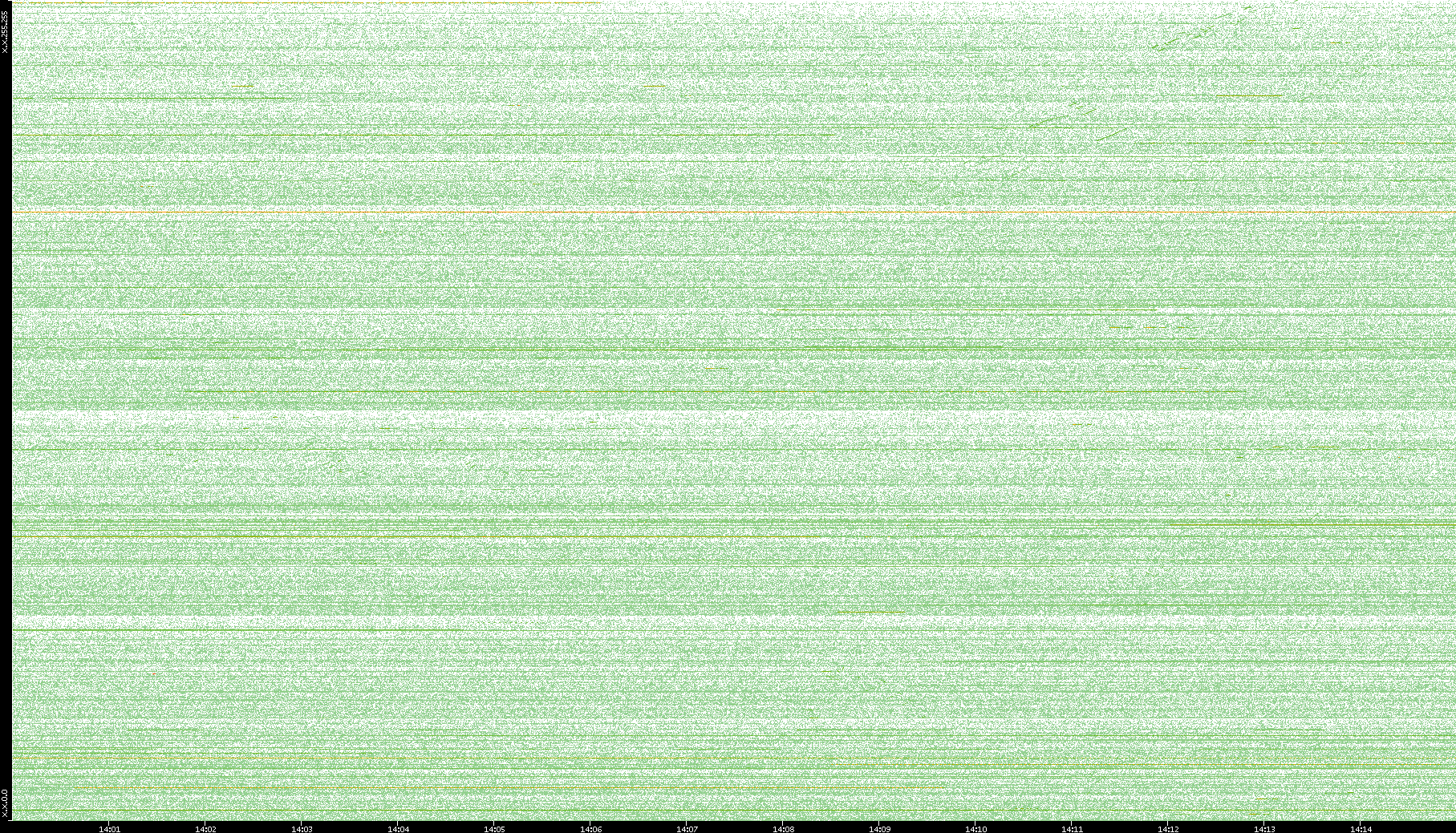 2003/10/14 Dest. IP vs. Time Dest. Port vs. Time Src. IP vs. Time Src. Port vs. Time Nb. of Packets vs. Time Throughput vs. Time Average Packet Size vs. Time Entropy of Port vs. Time