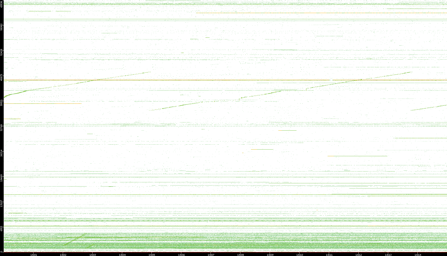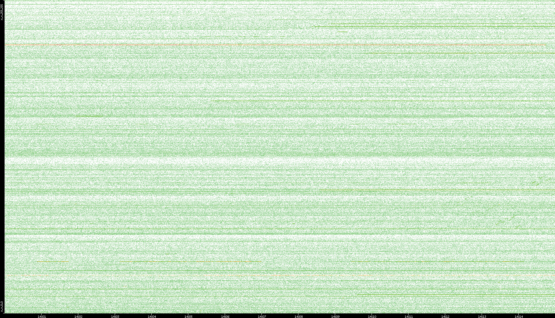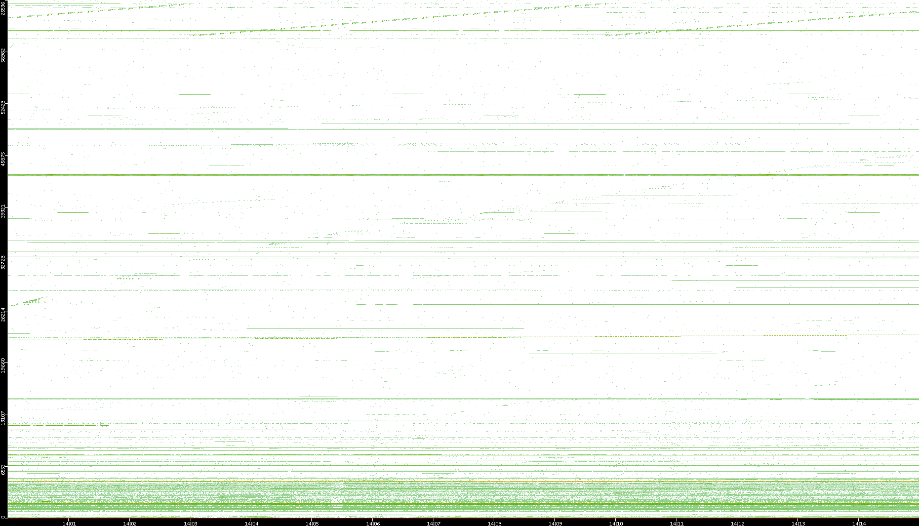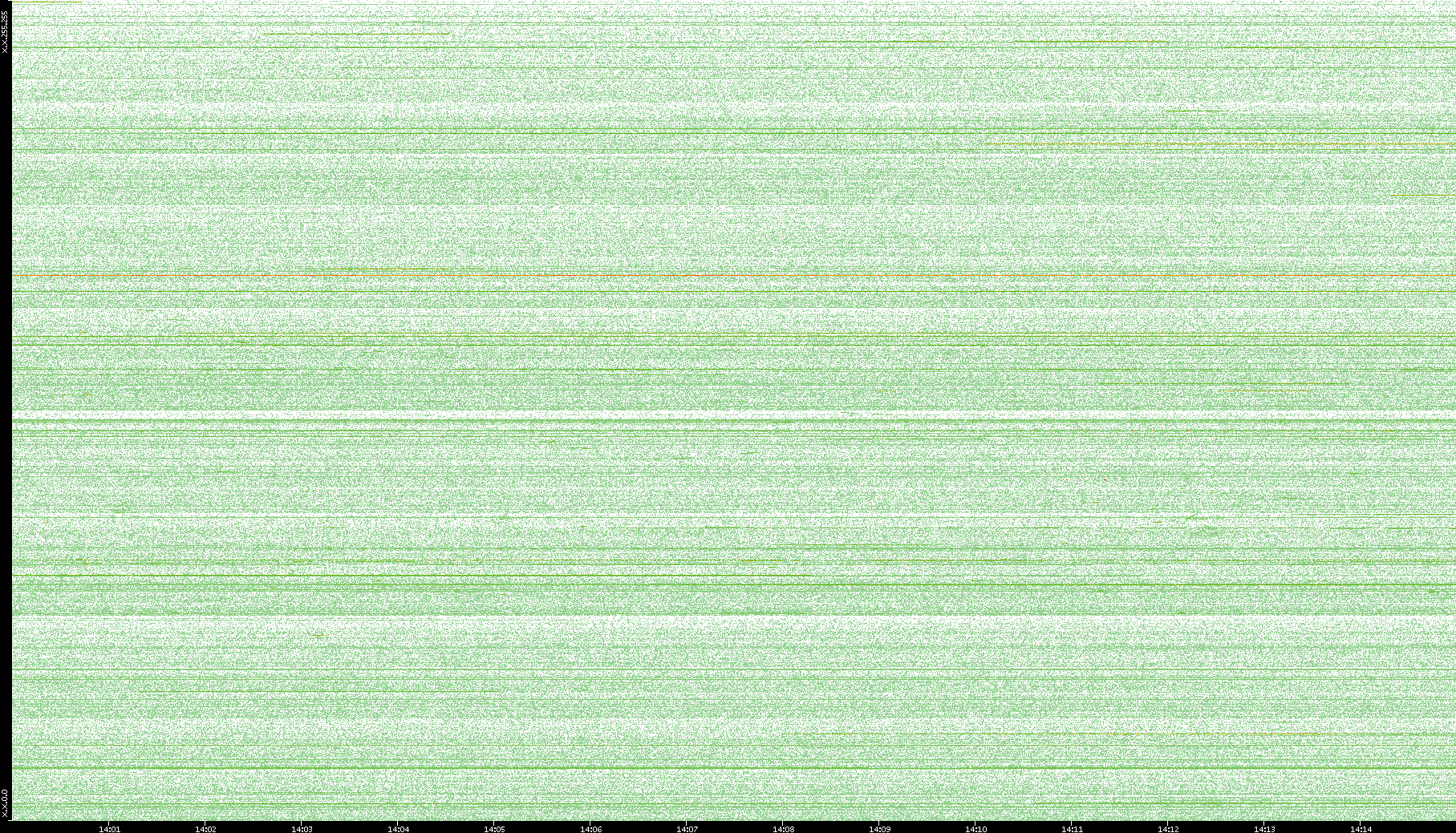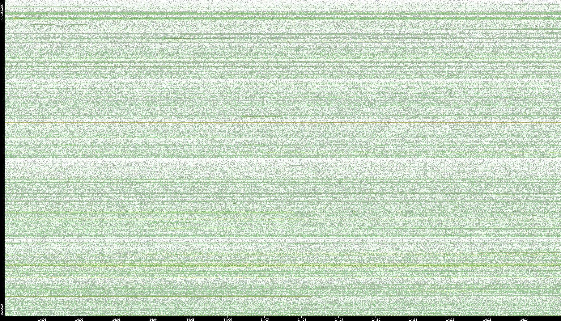 2003/10/14 Dest. IP vs. Time Dest. Port vs. Time Src. IP vs. Time Src. Port vs. Time Nb. of Packets vs. Time Throughput vs. Time Average Packet Size vs. Time Entropy of Port vs. Time