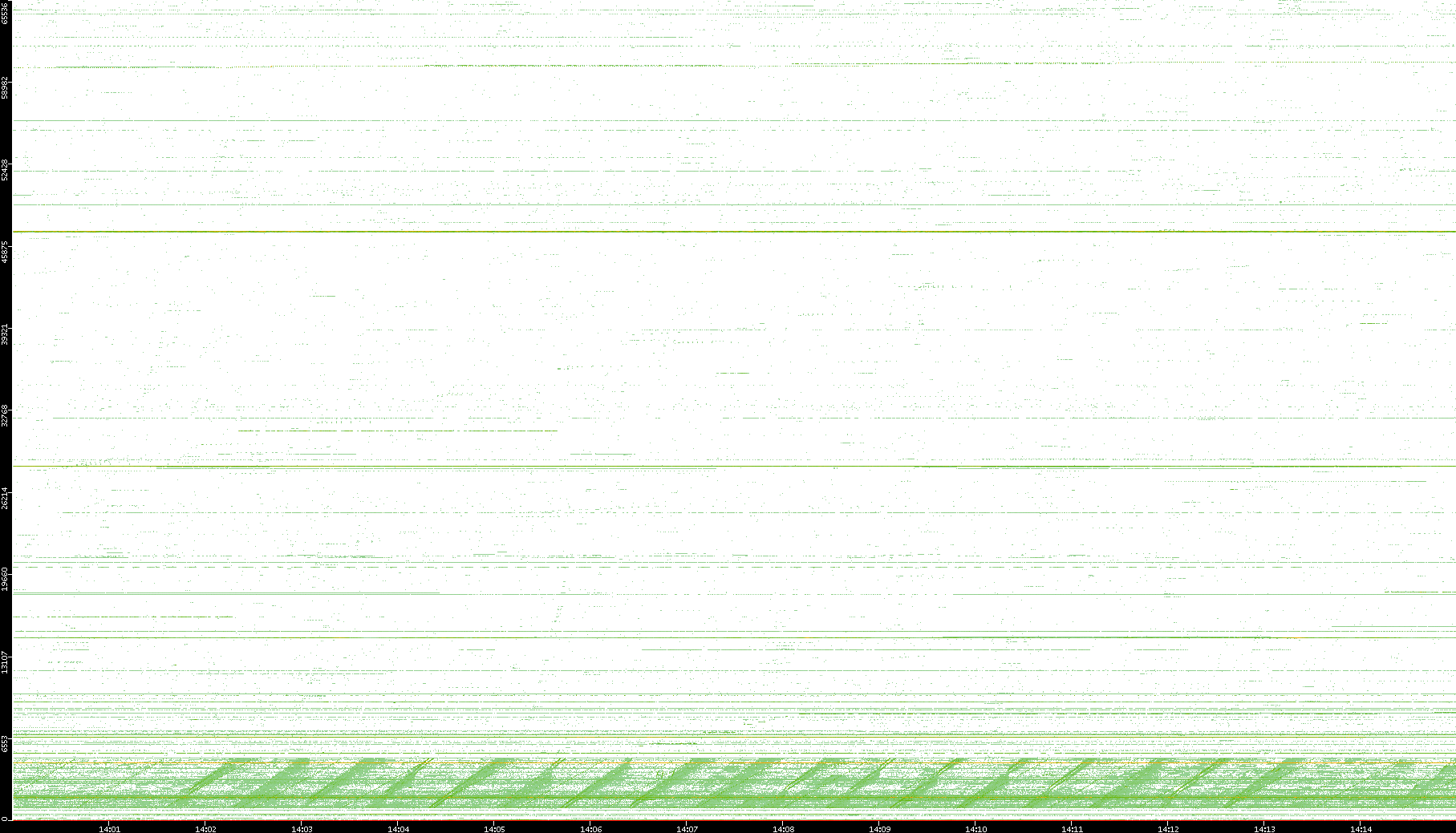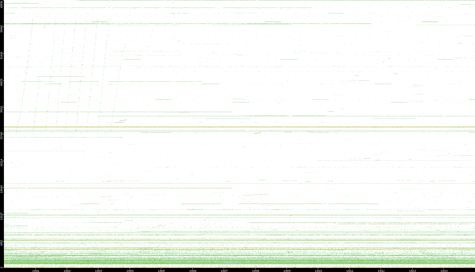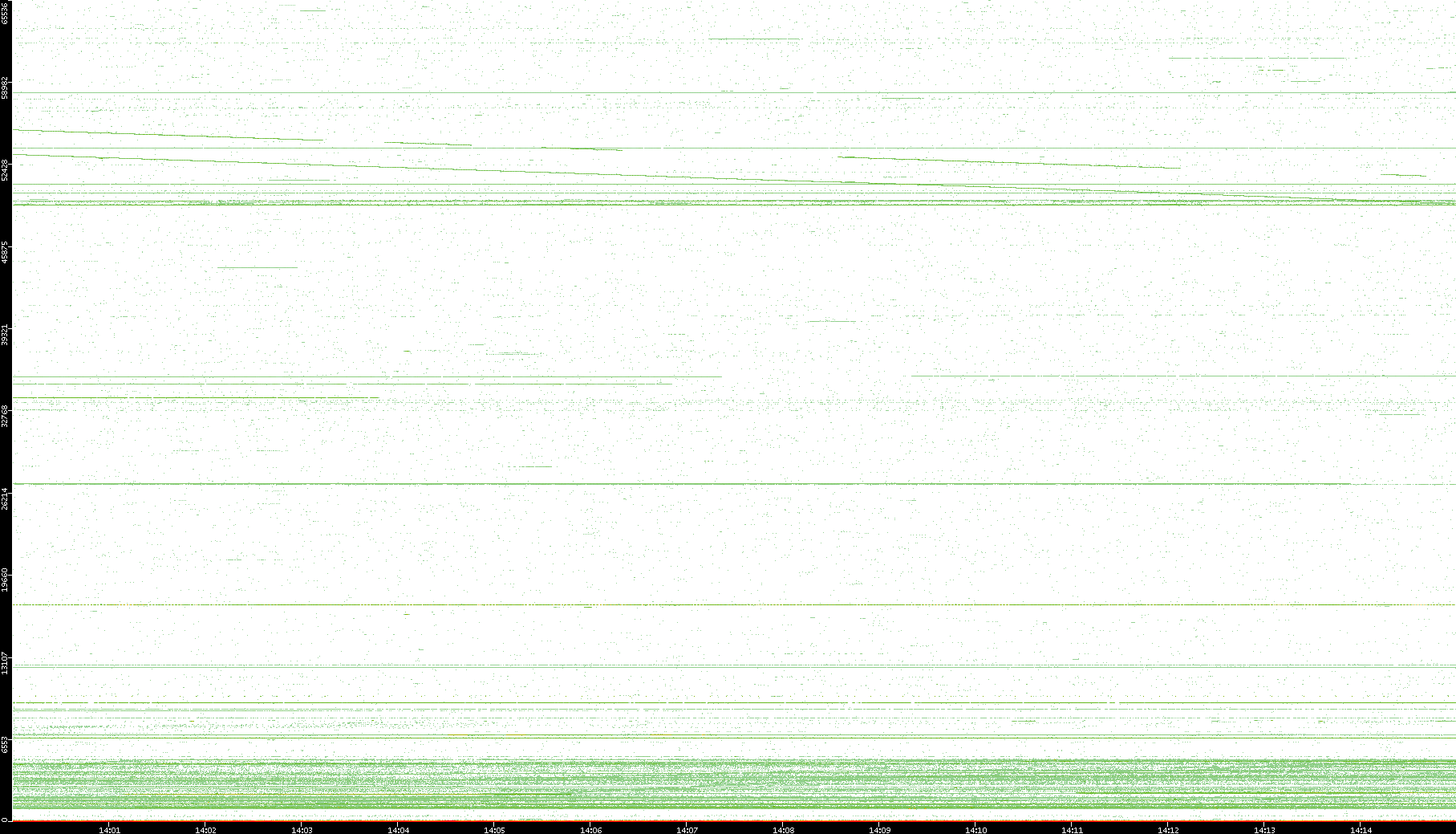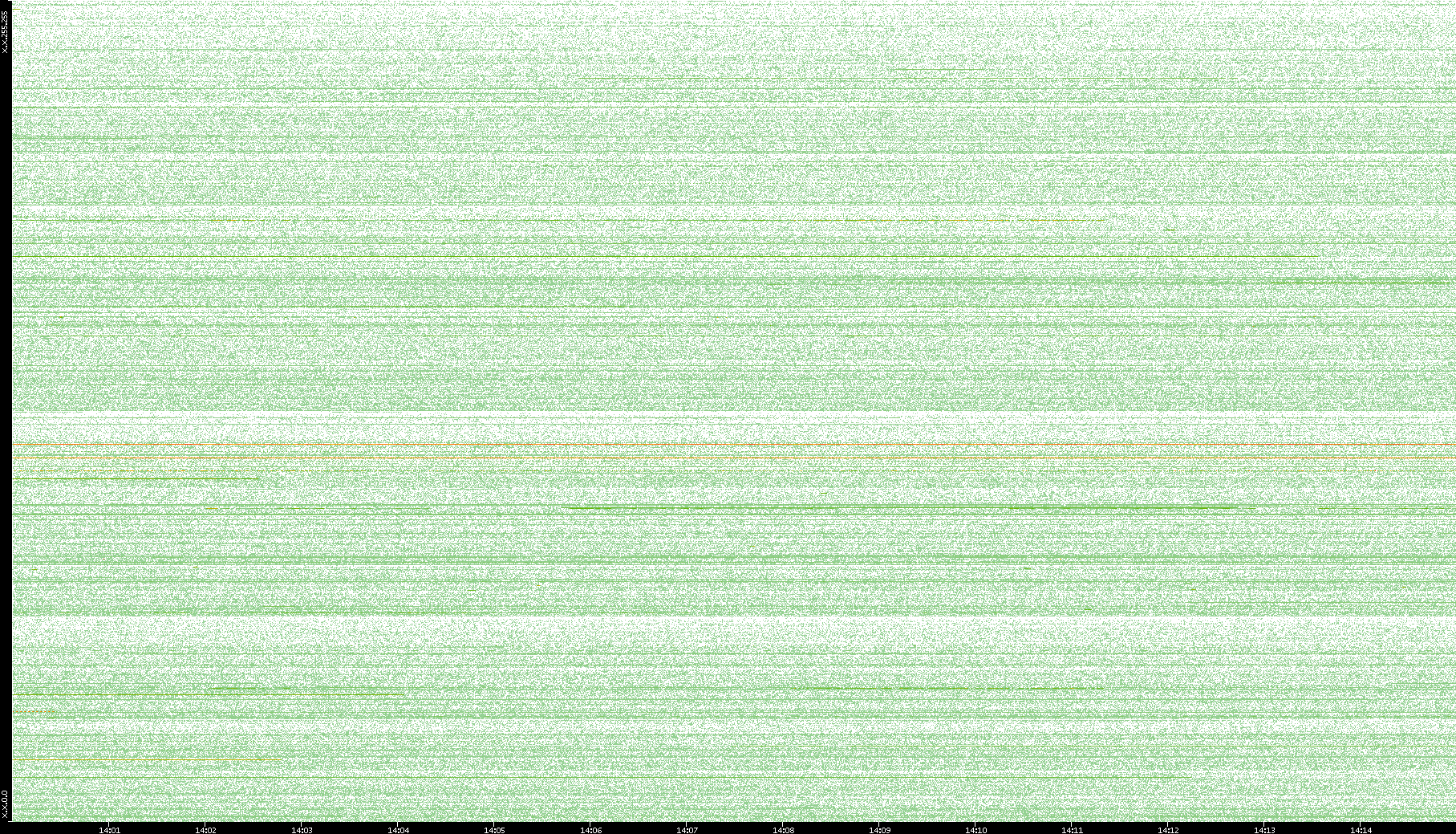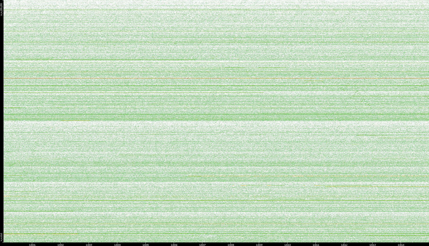 2003/10/14 Dest. IP vs. Time Dest. Port vs. Time Src. IP vs. Time Src. Port vs. Time Nb. of Packets vs. Time Throughput vs. Time Average Packet Size vs. Time Entropy of Port vs. Time