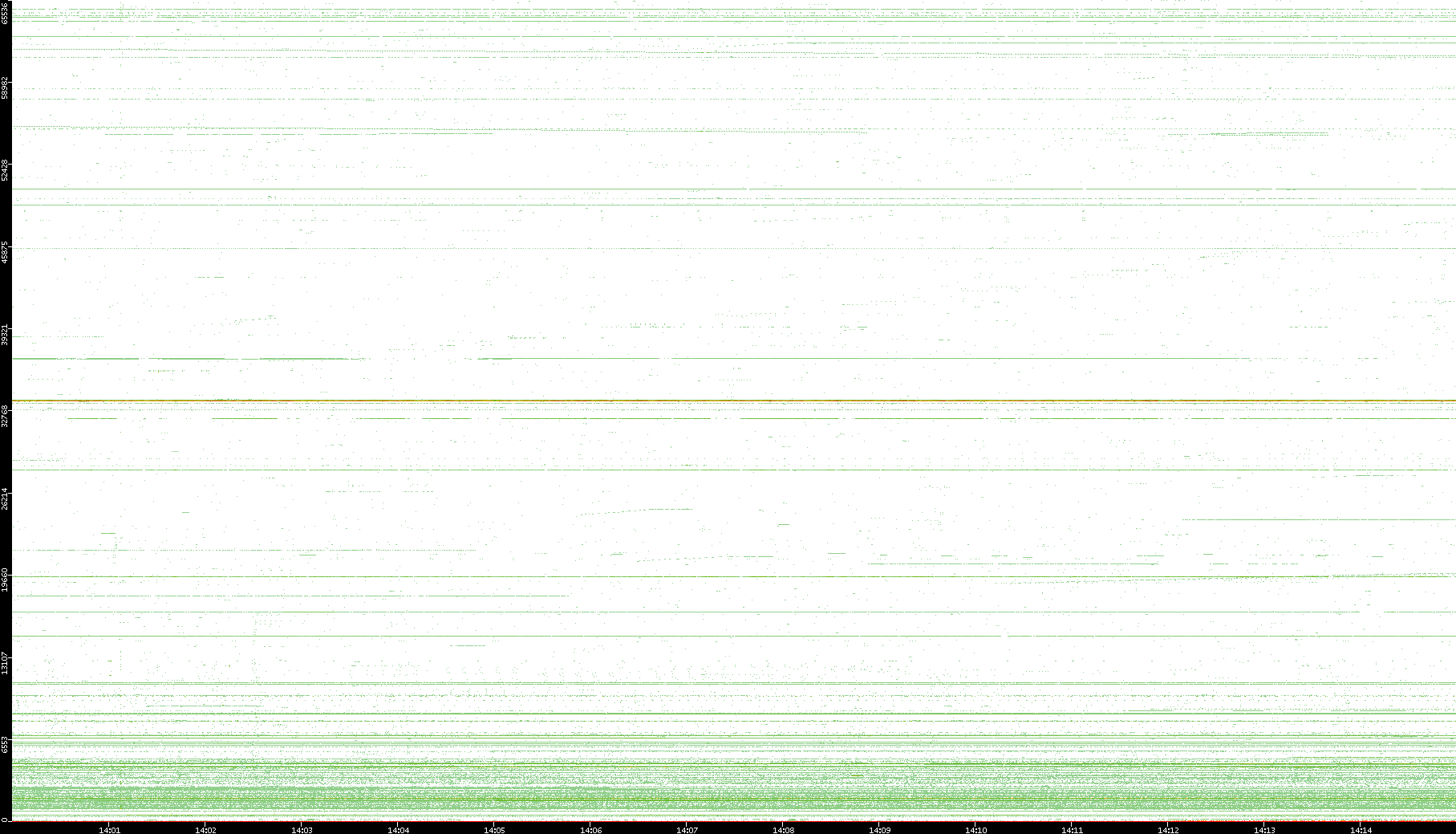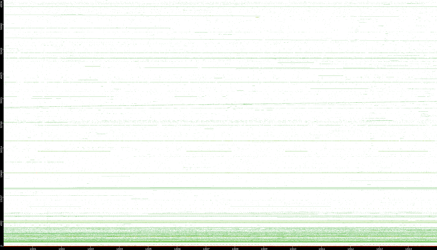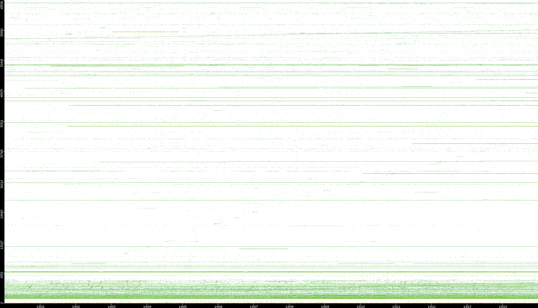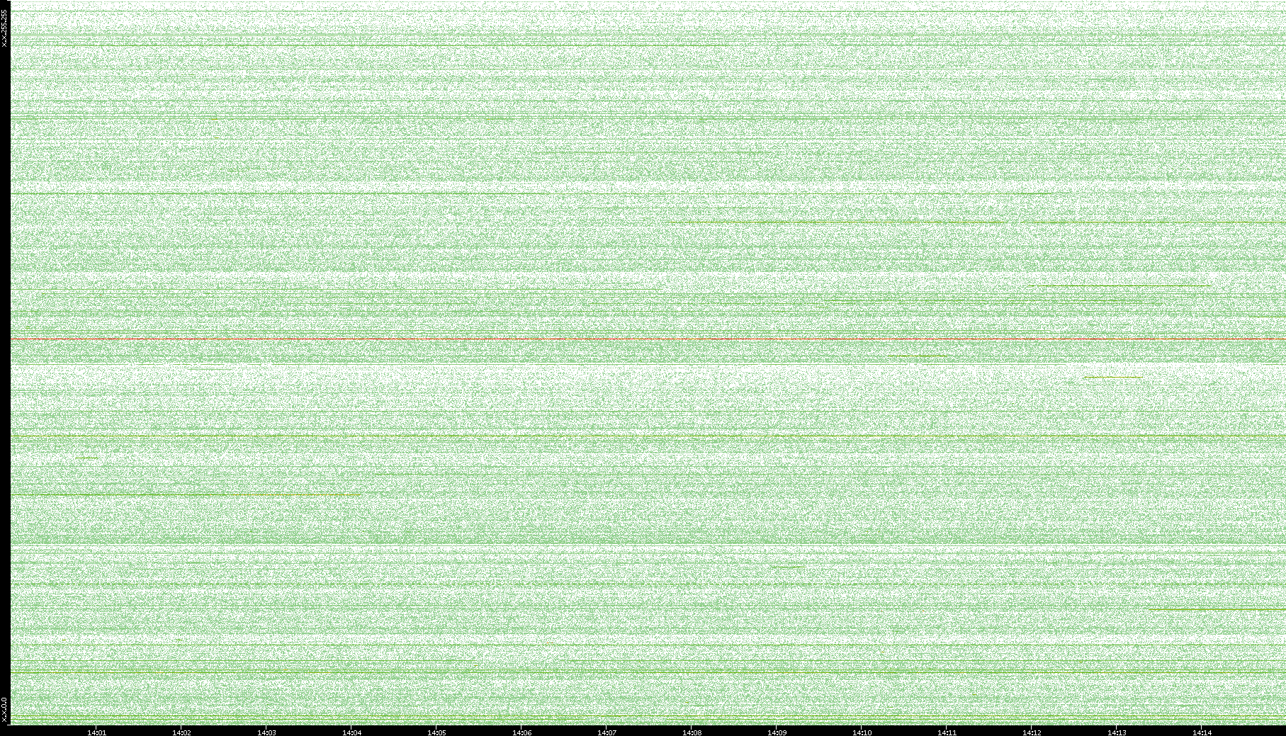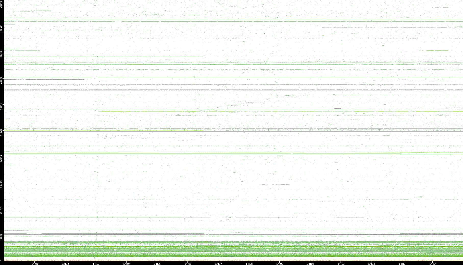 2003/10/14 Dest. IP vs. Time Dest. Port vs. Time Src. IP vs. Time Src. Port vs. Time Nb. of Packets vs. Time Throughput vs. Time Average Packet Size vs. Time Entropy of Port vs. Time