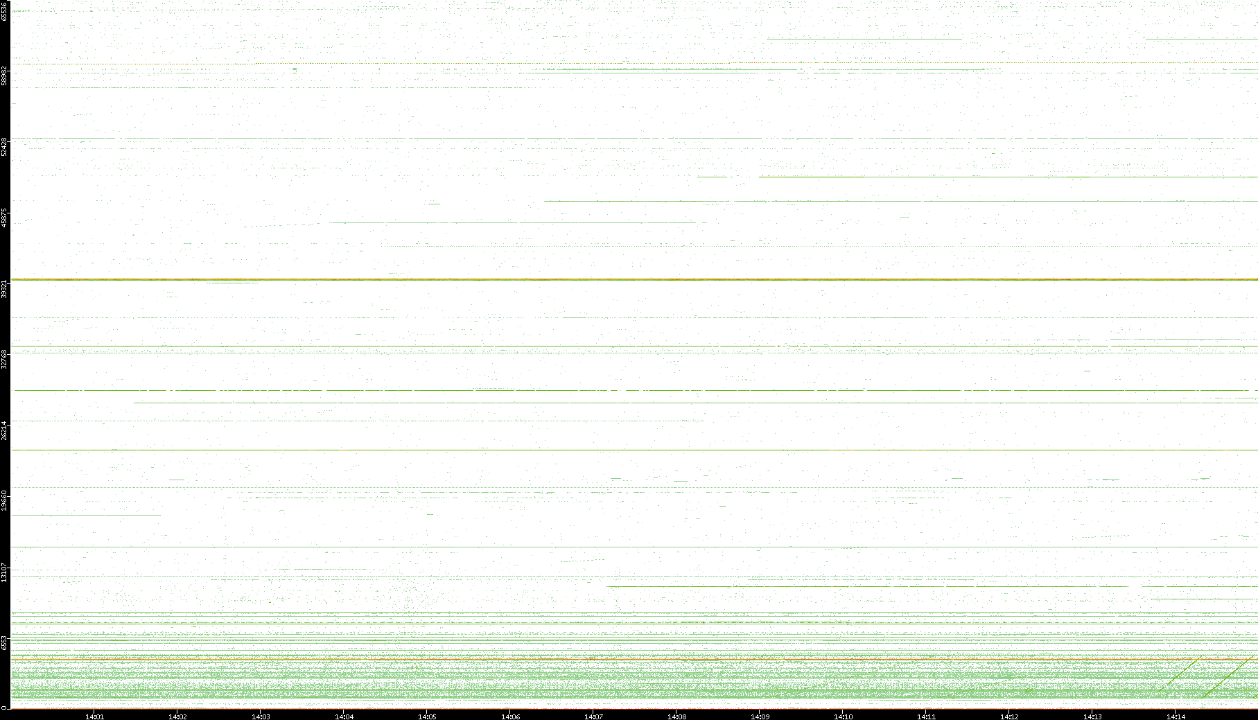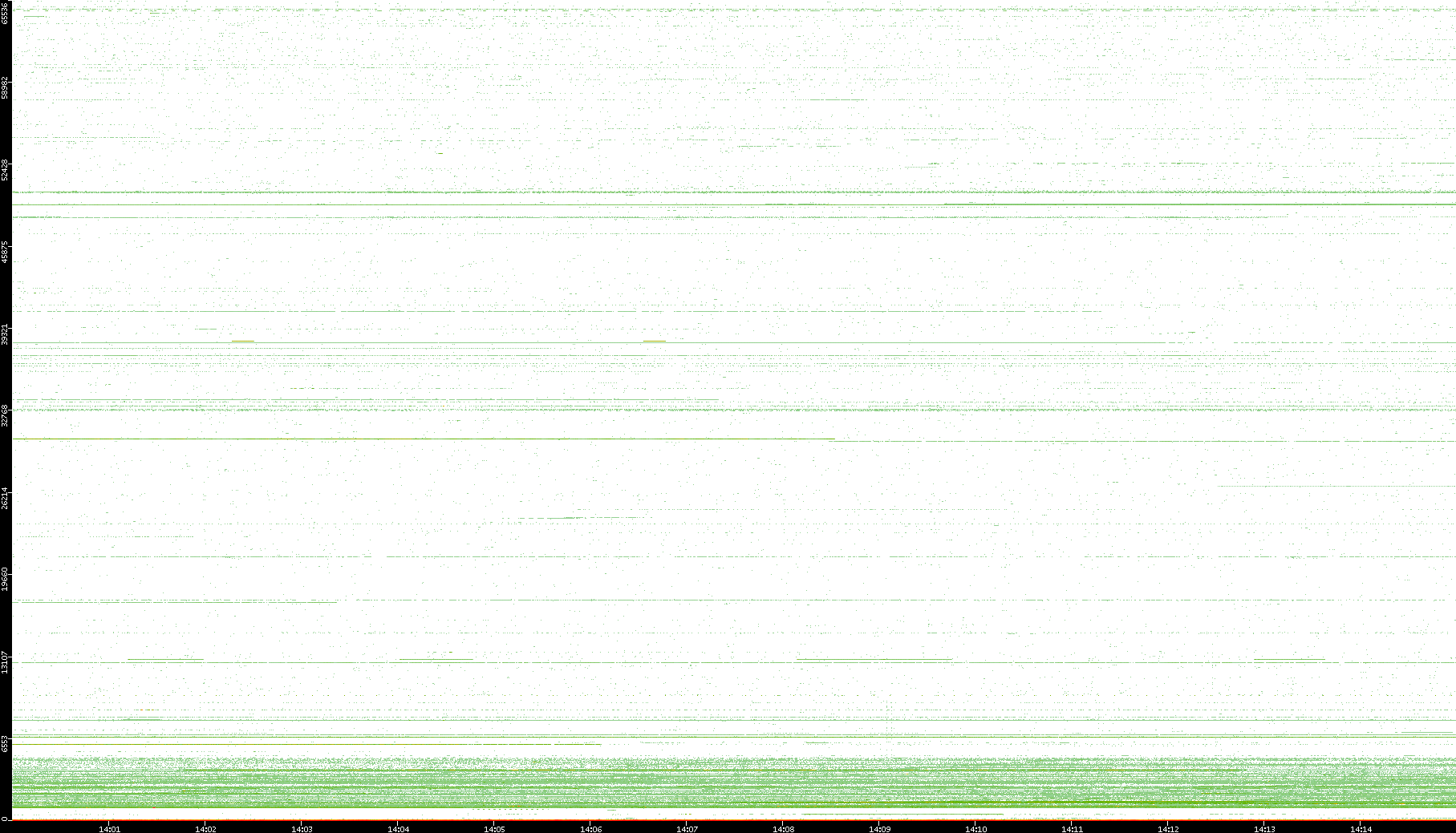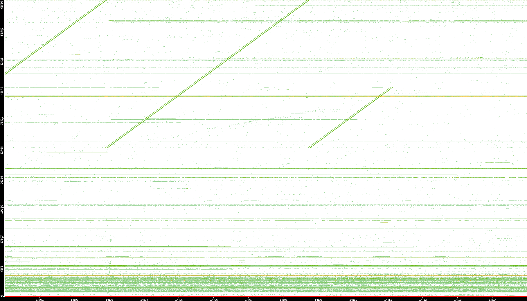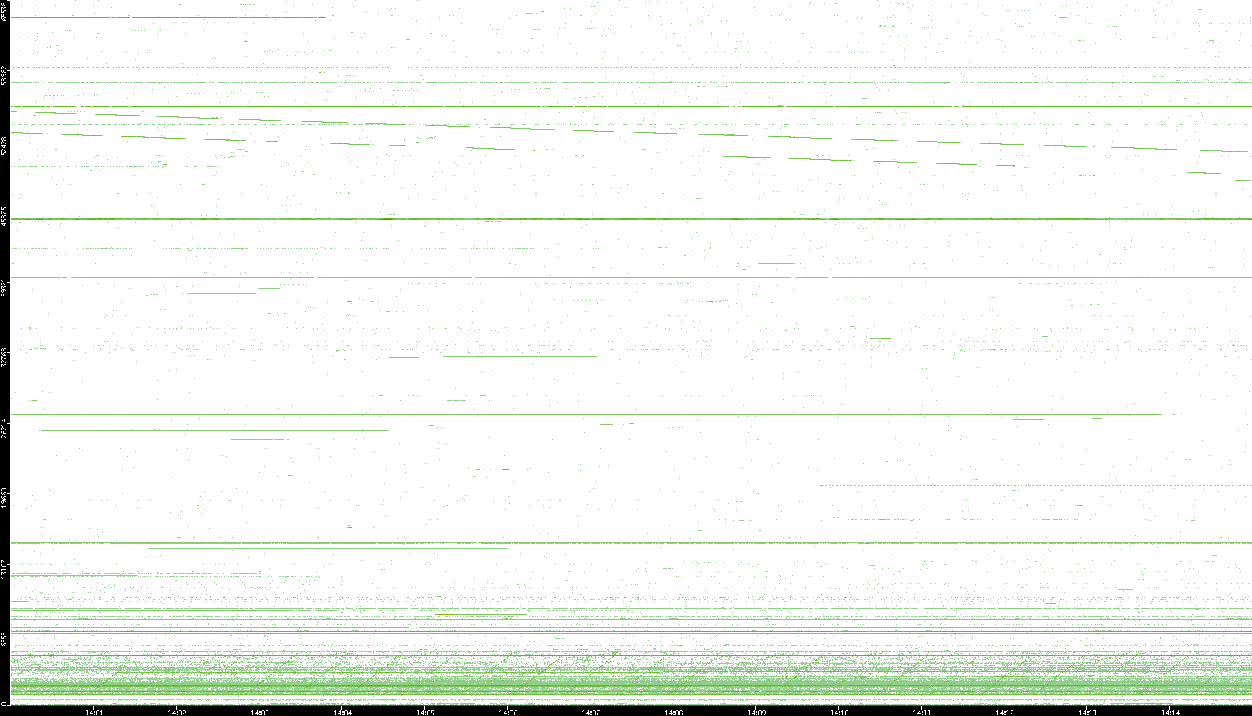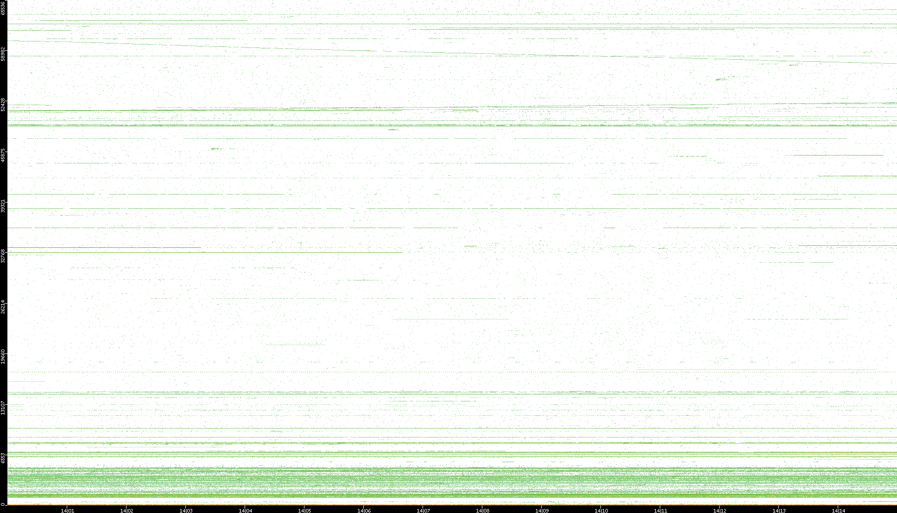 2003/10/14 Dest. IP vs. Time Dest. Port vs. Time Src. IP vs. Time Src. Port vs. Time Nb. of Packets vs. Time Throughput vs. Time Average Packet Size vs. Time Entropy of Port vs. Time