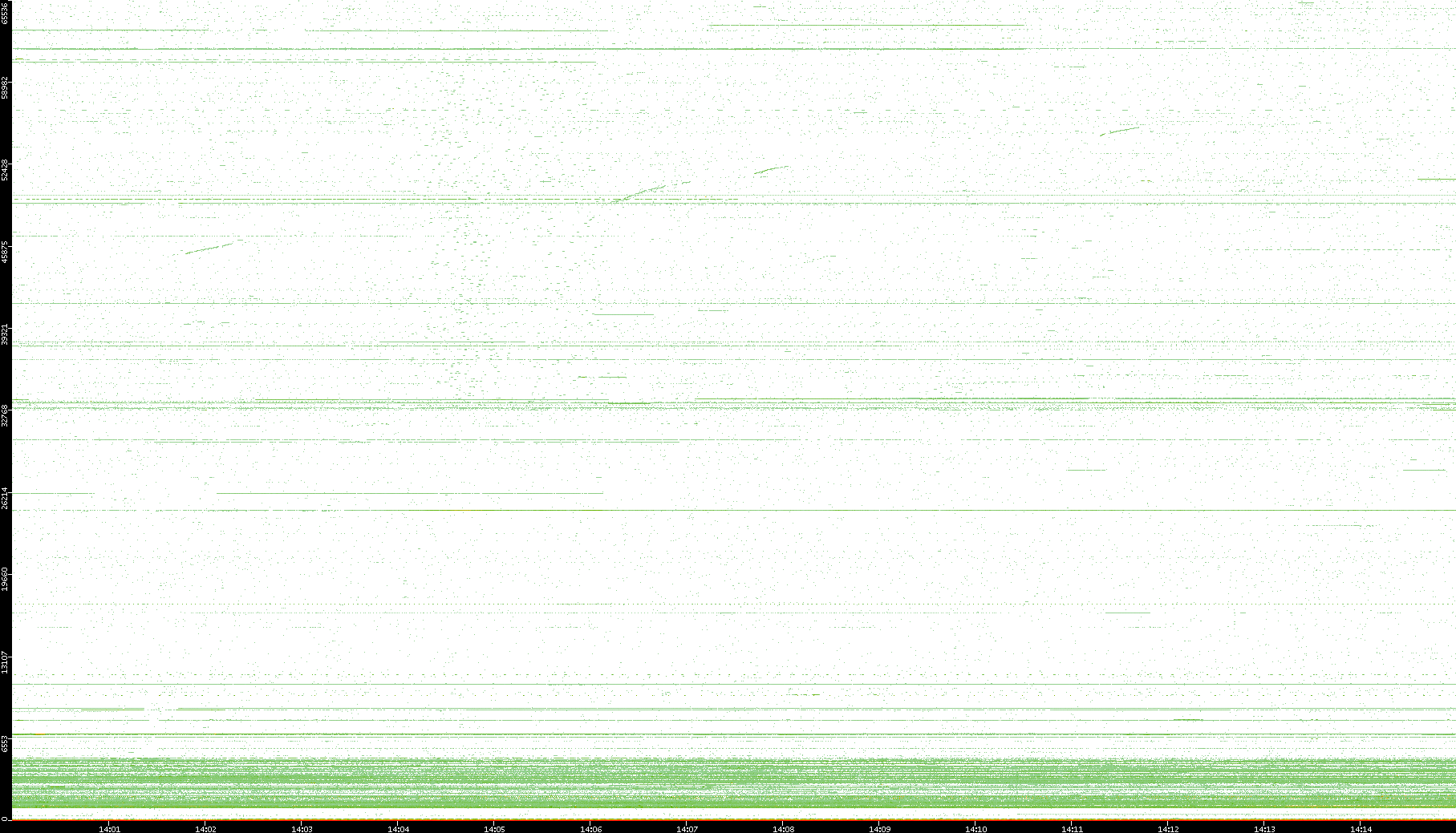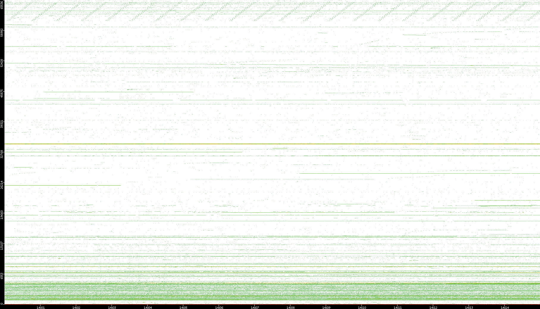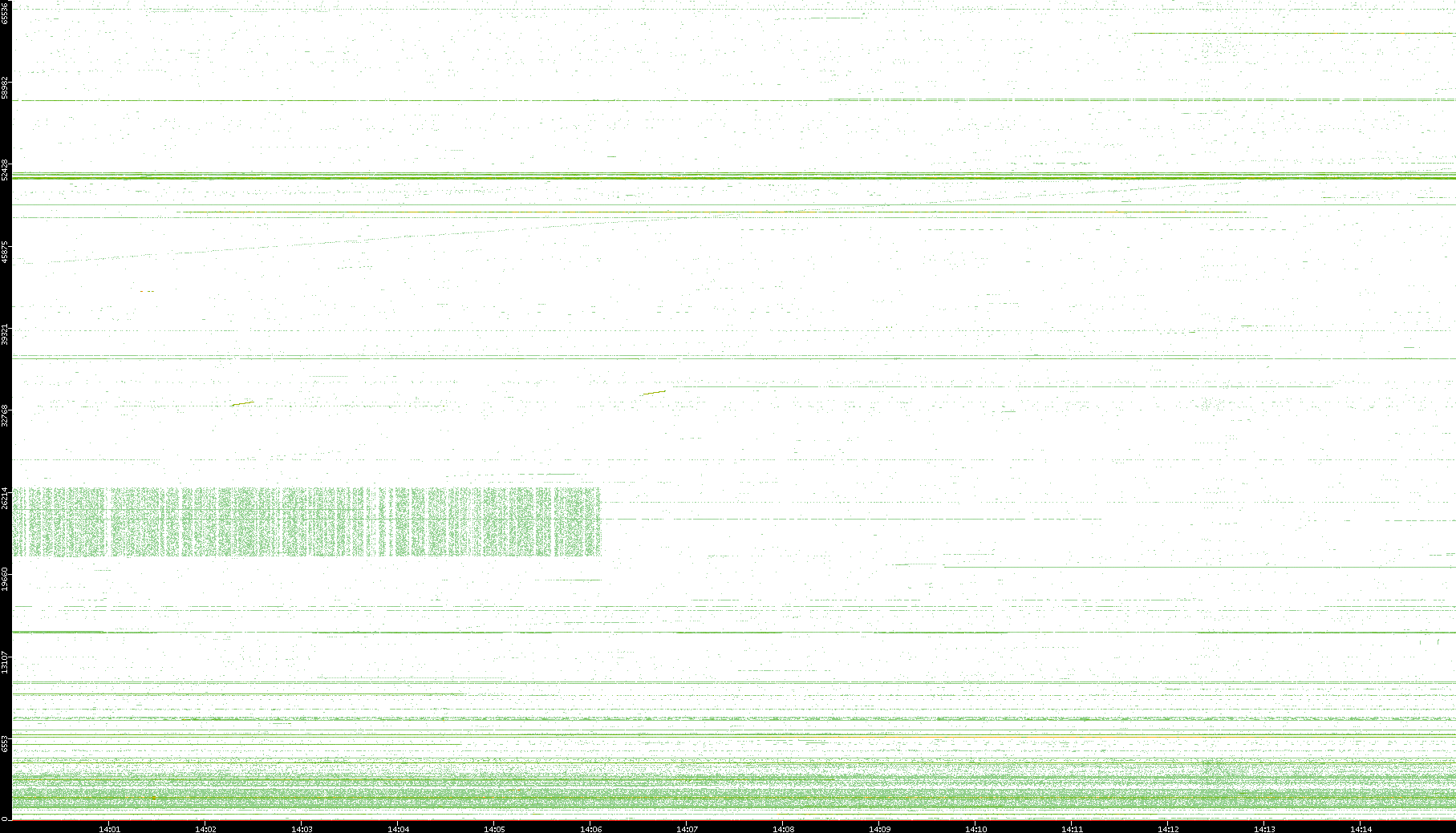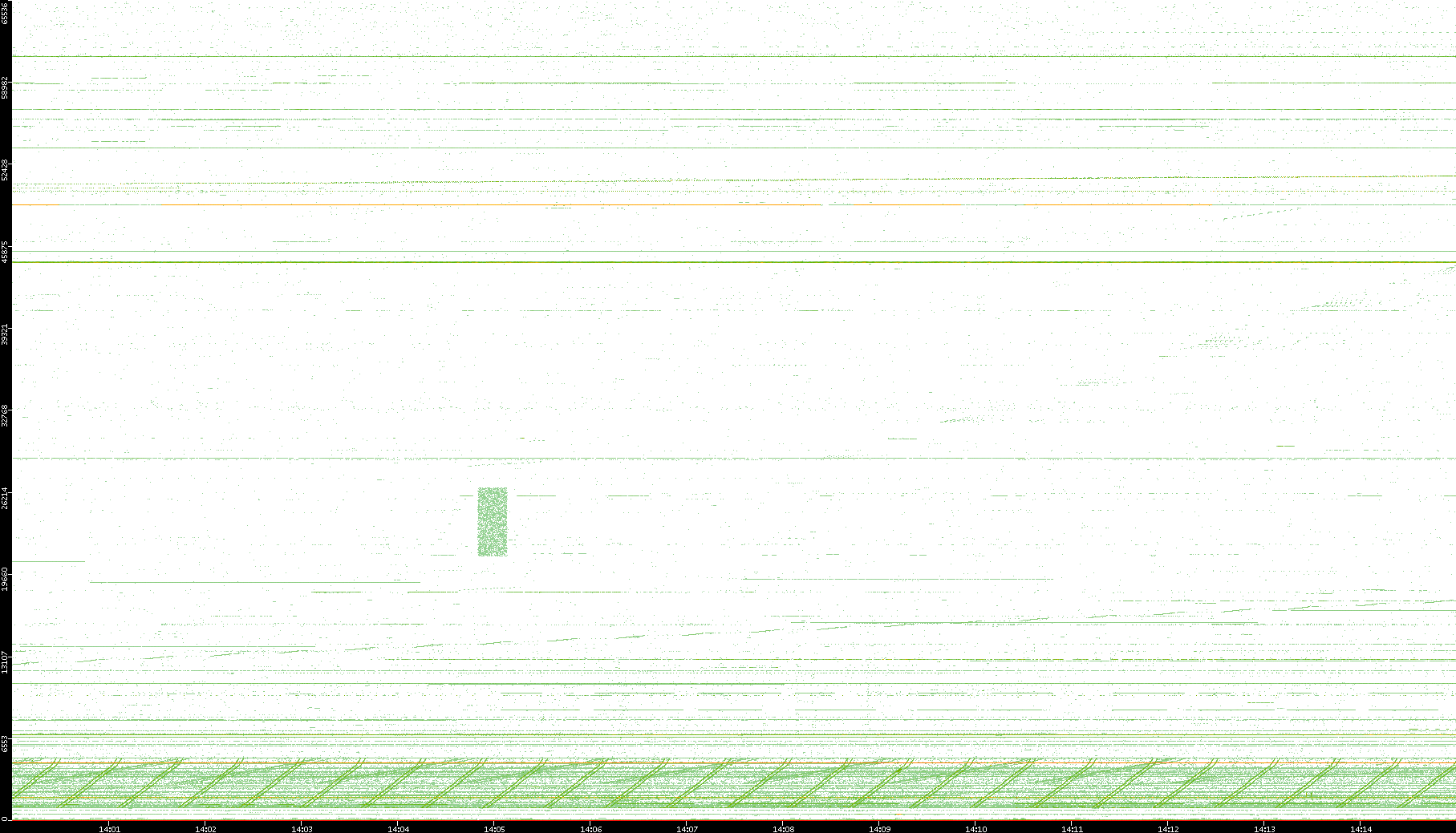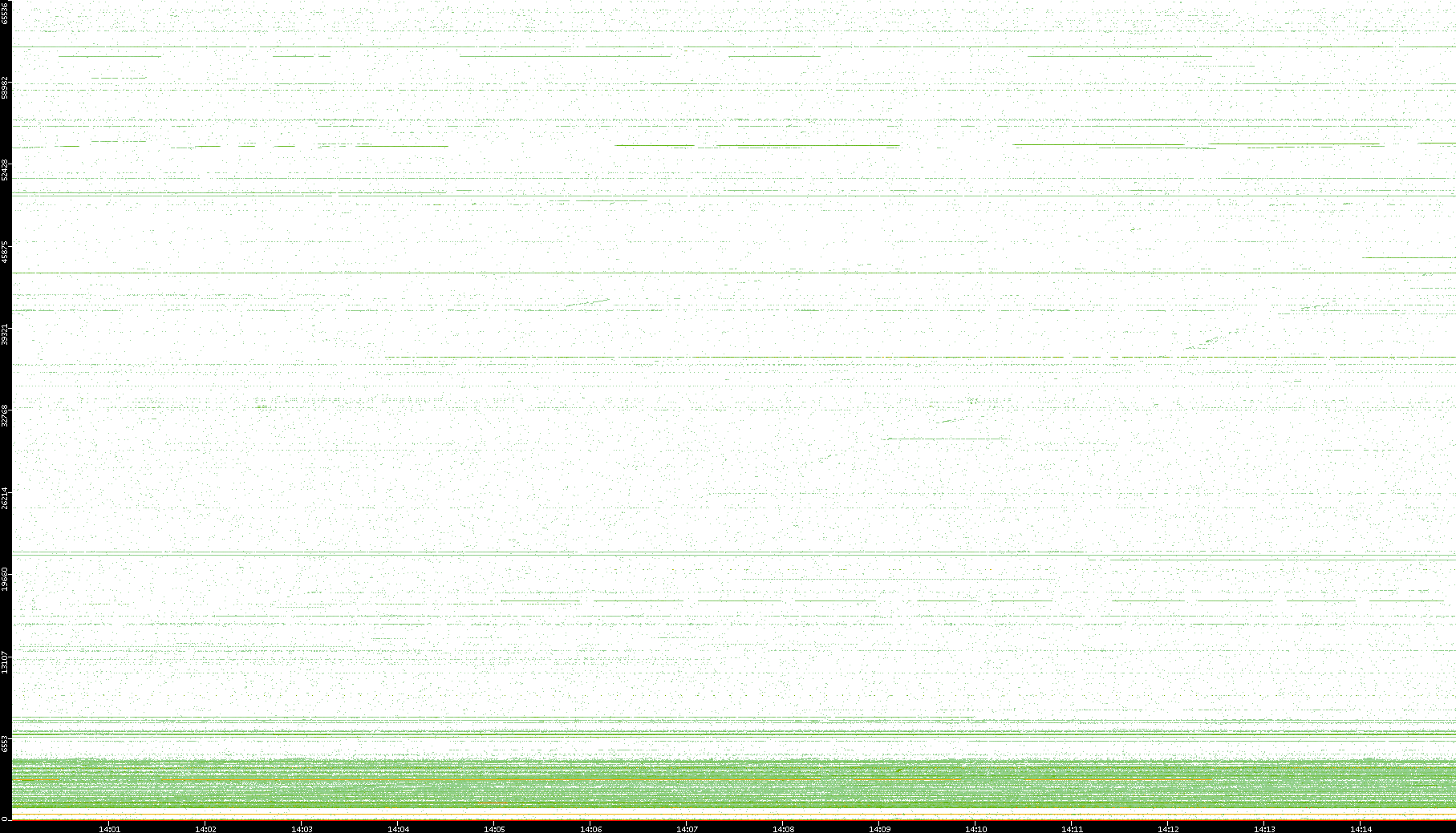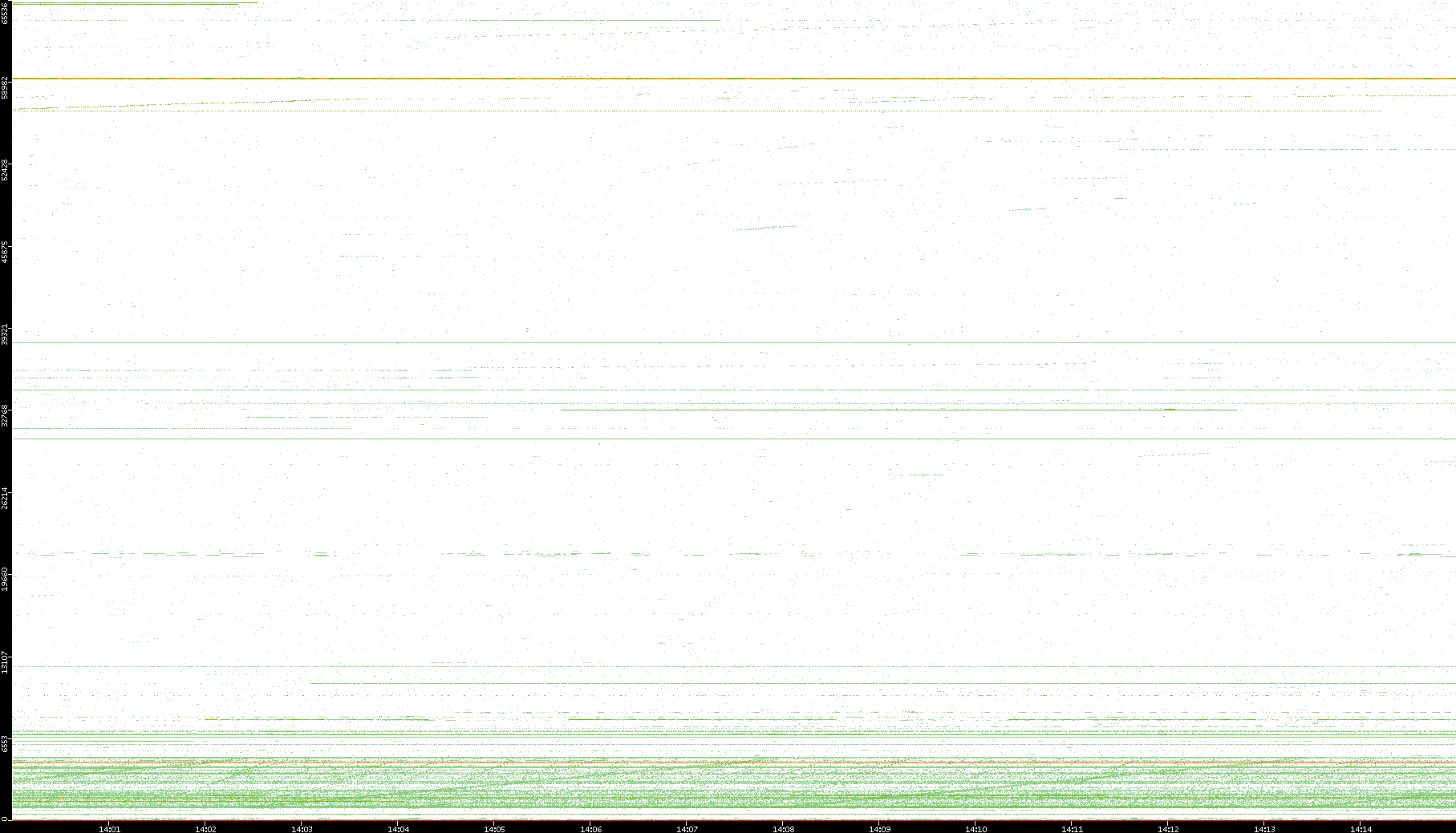 2003/10/14 Dest. IP vs. Time Dest. Port vs. Time Src. IP vs. Time Src. Port vs. Time Nb. of Packets vs. Time Throughput vs. Time Average Packet Size vs. Time Entropy of Port vs. Time