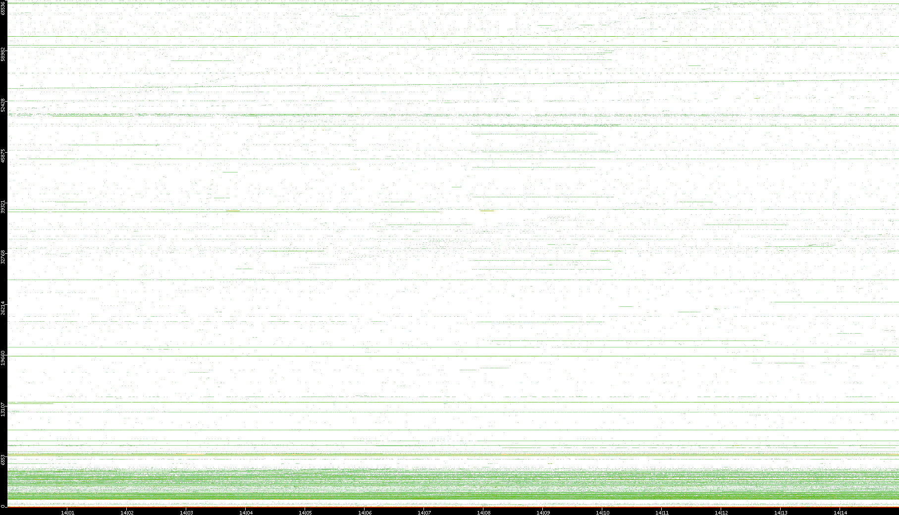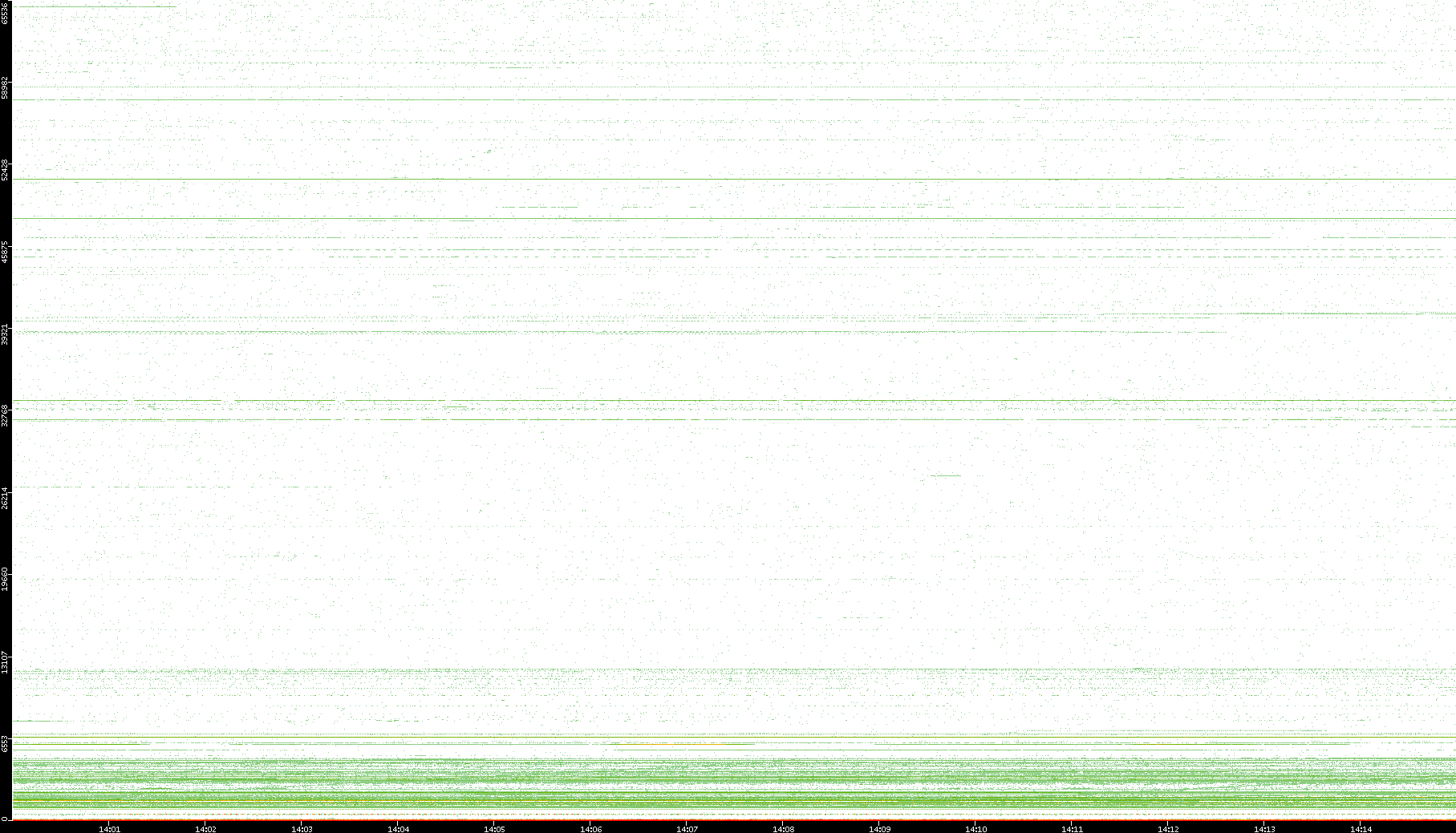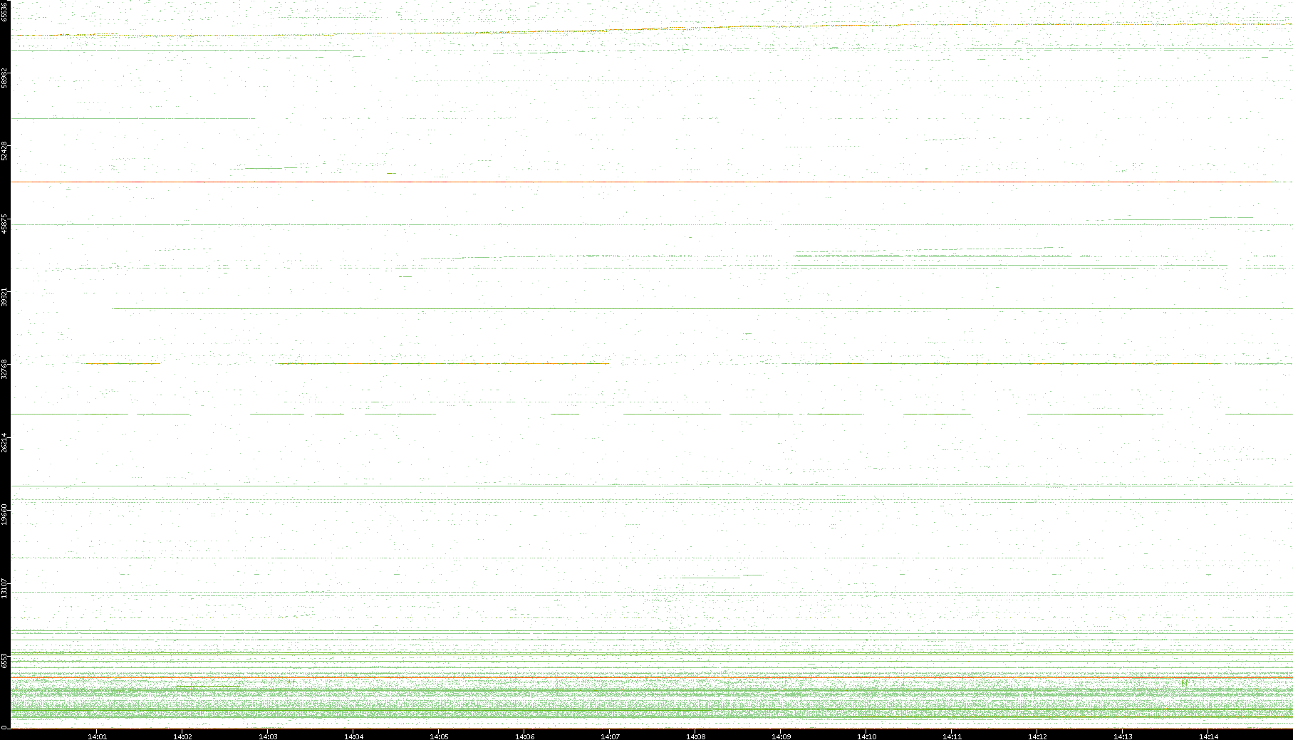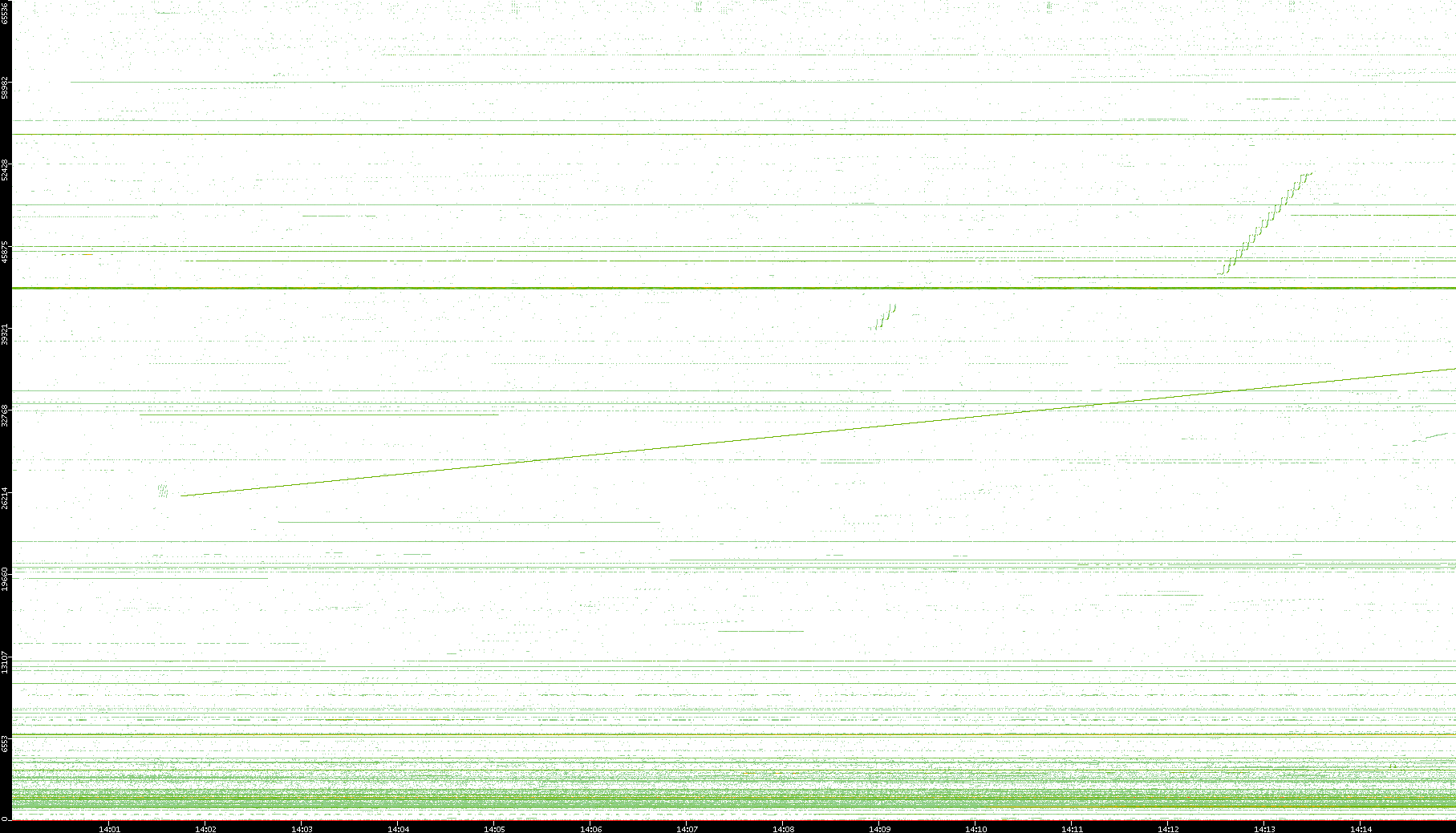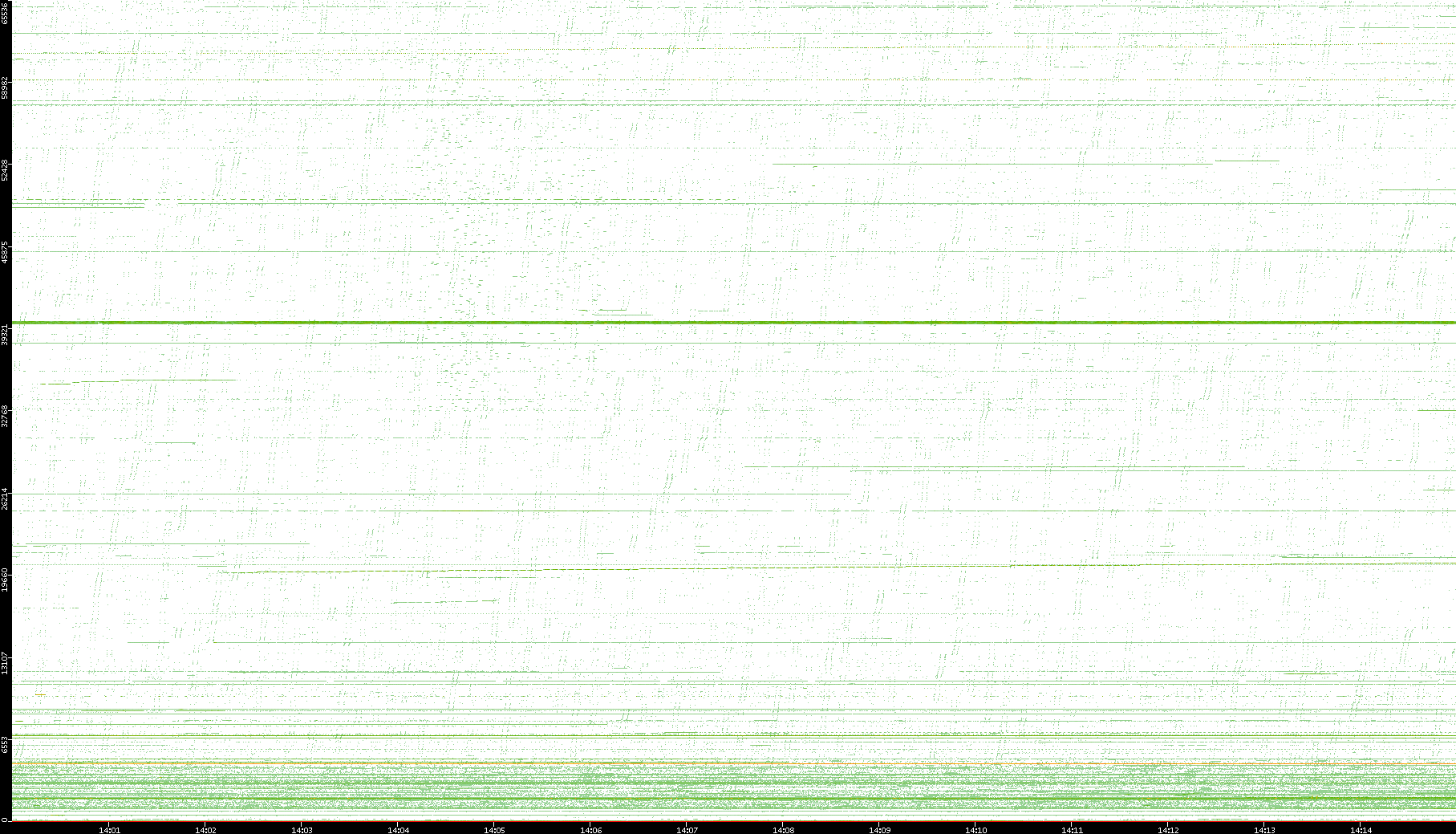 2003/10/14 Dest. IP vs. Time Dest. Port vs. Time Src. IP vs. Time Src. Port vs. Time Nb. of Packets vs. Time Throughput vs. Time Average Packet Size vs. Time Entropy of Port vs. Time
