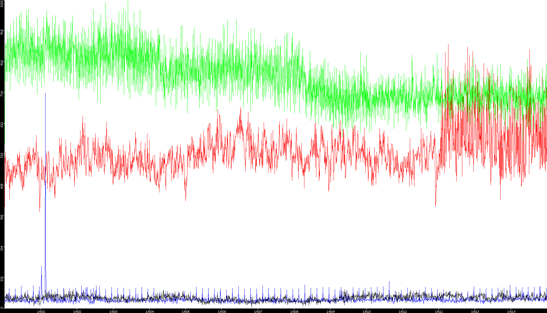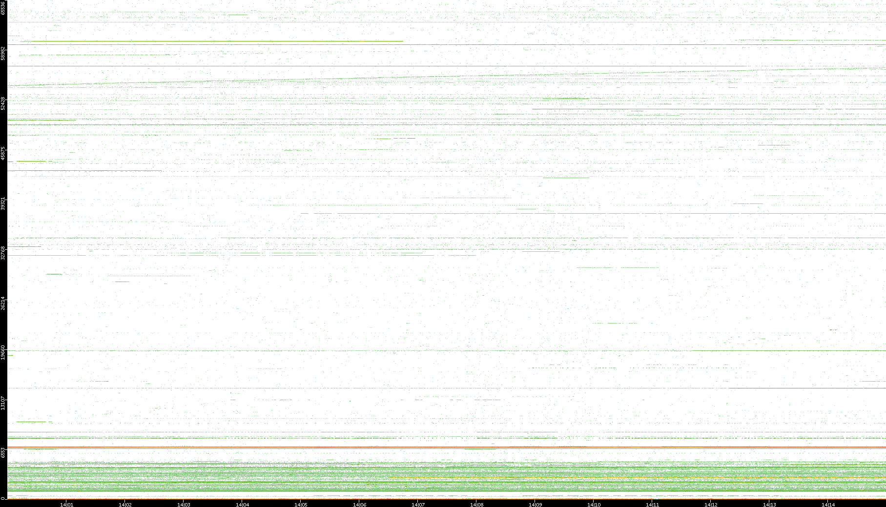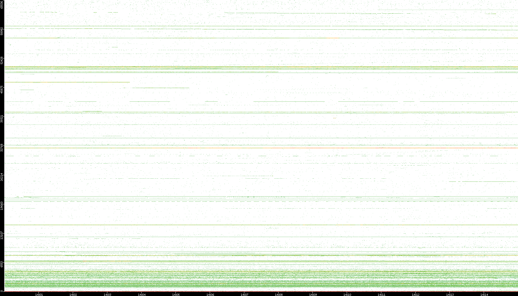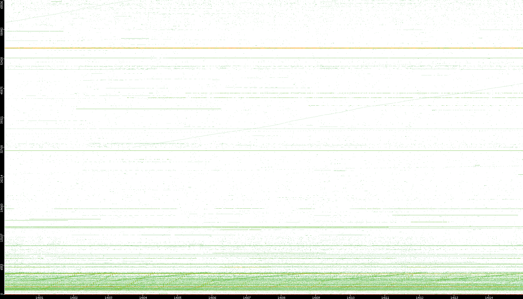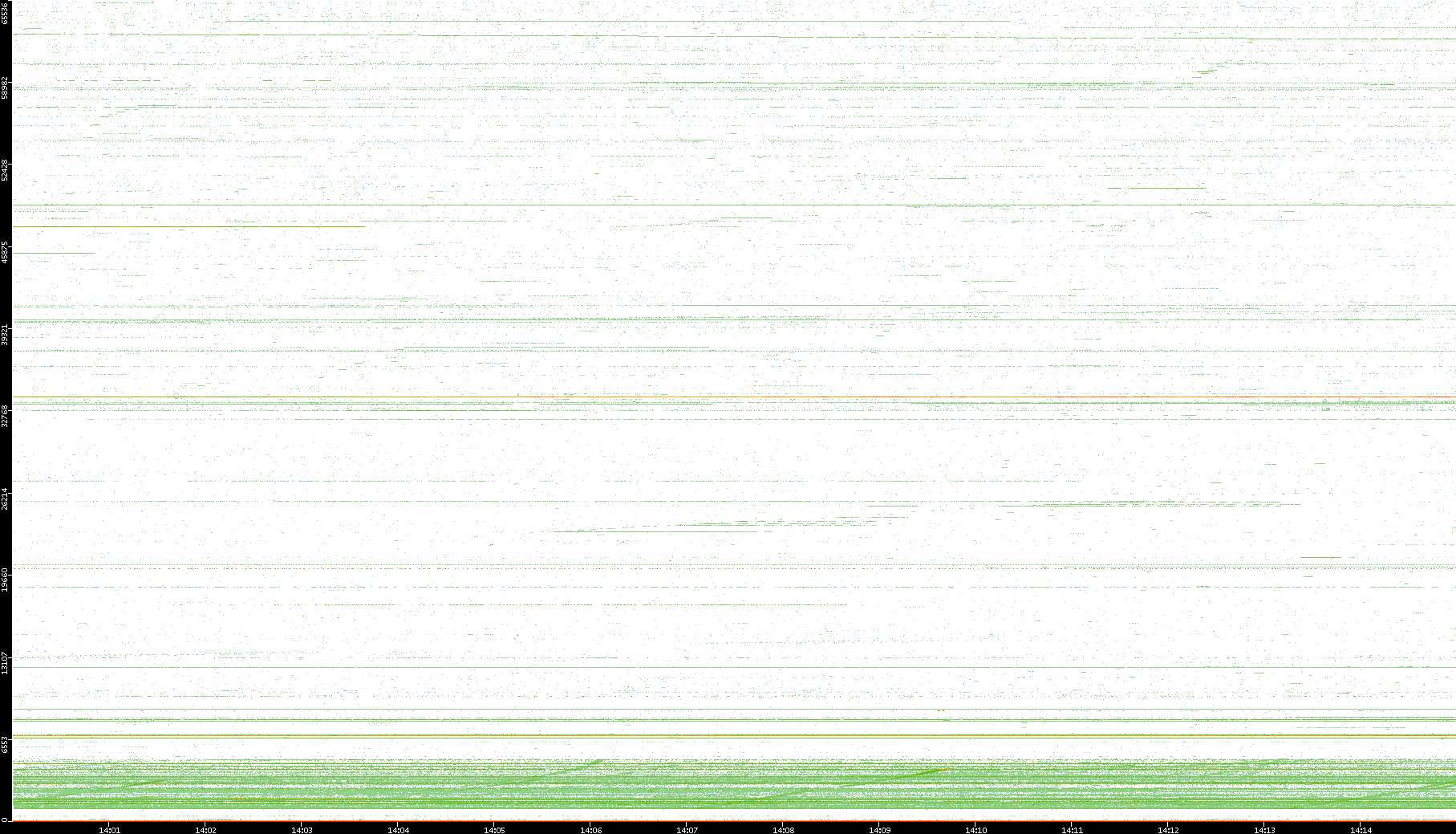 2003/10/14 Dest. IP vs. Time Dest. Port vs. Time Src. IP vs. Time Src. Port vs. Time Nb. of Packets vs. Time Throughput vs. Time Average Packet Size vs. Time Entropy of Port vs. Time