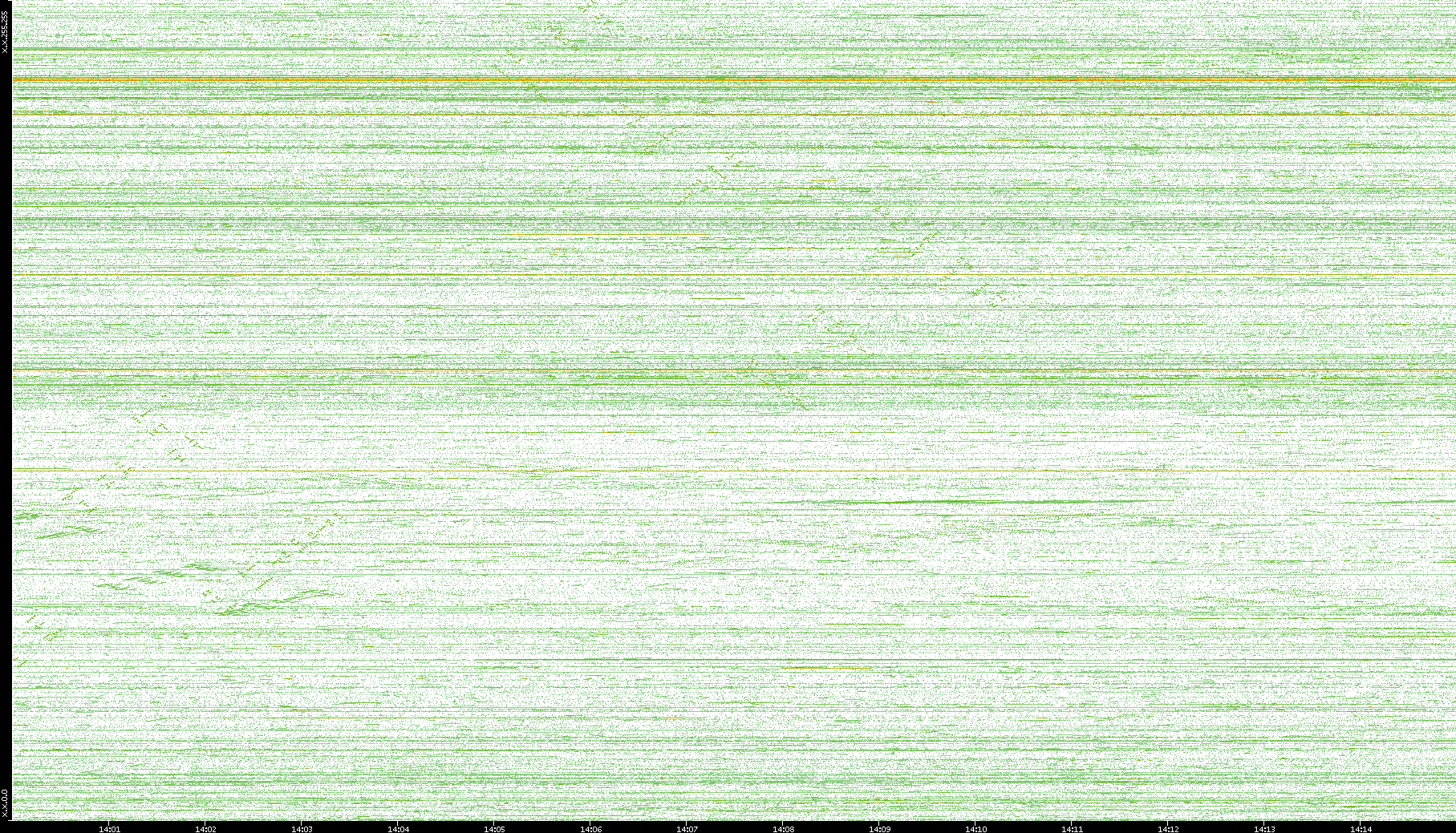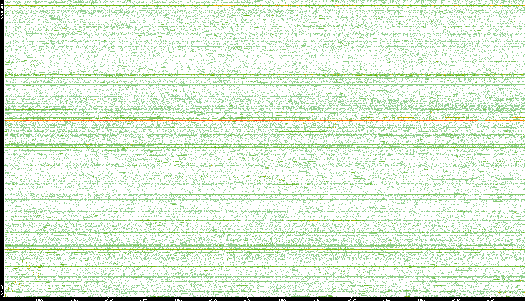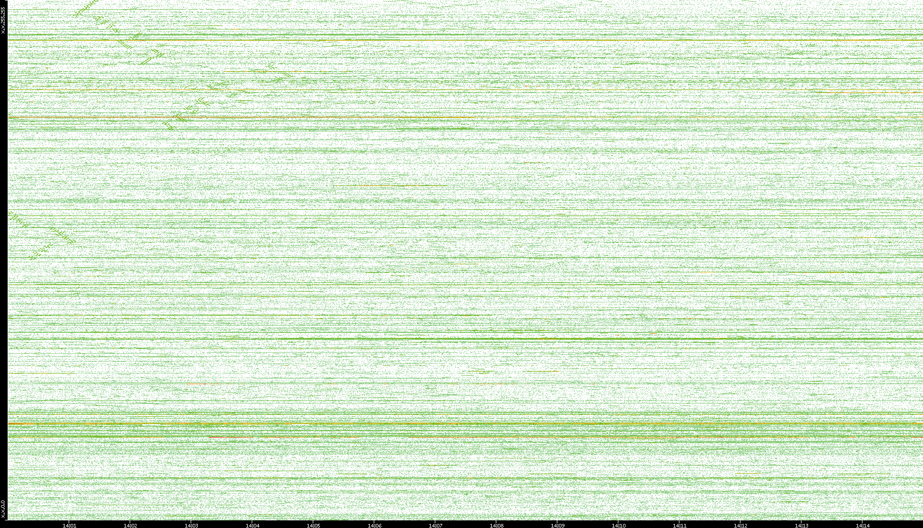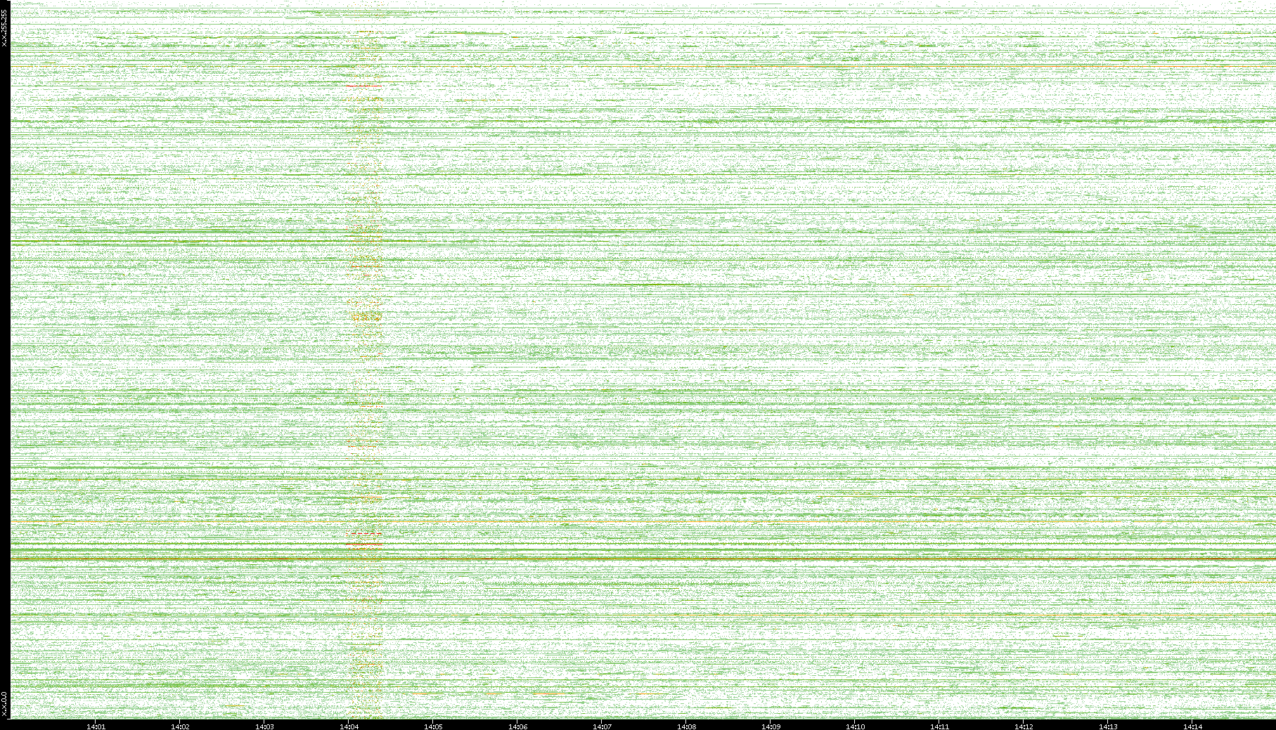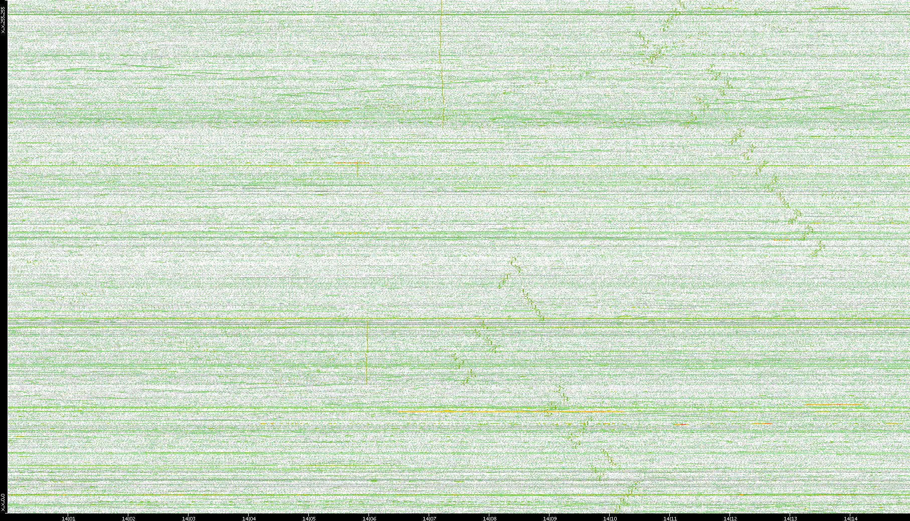 2004/02/14 Dest. IP vs. Time Dest. Port vs. Time Src. IP vs. Time Src. Port vs. Time Nb. of Packets vs. Time Throughput vs. Time Average Packet Size vs. Time Entropy of Port vs. Time