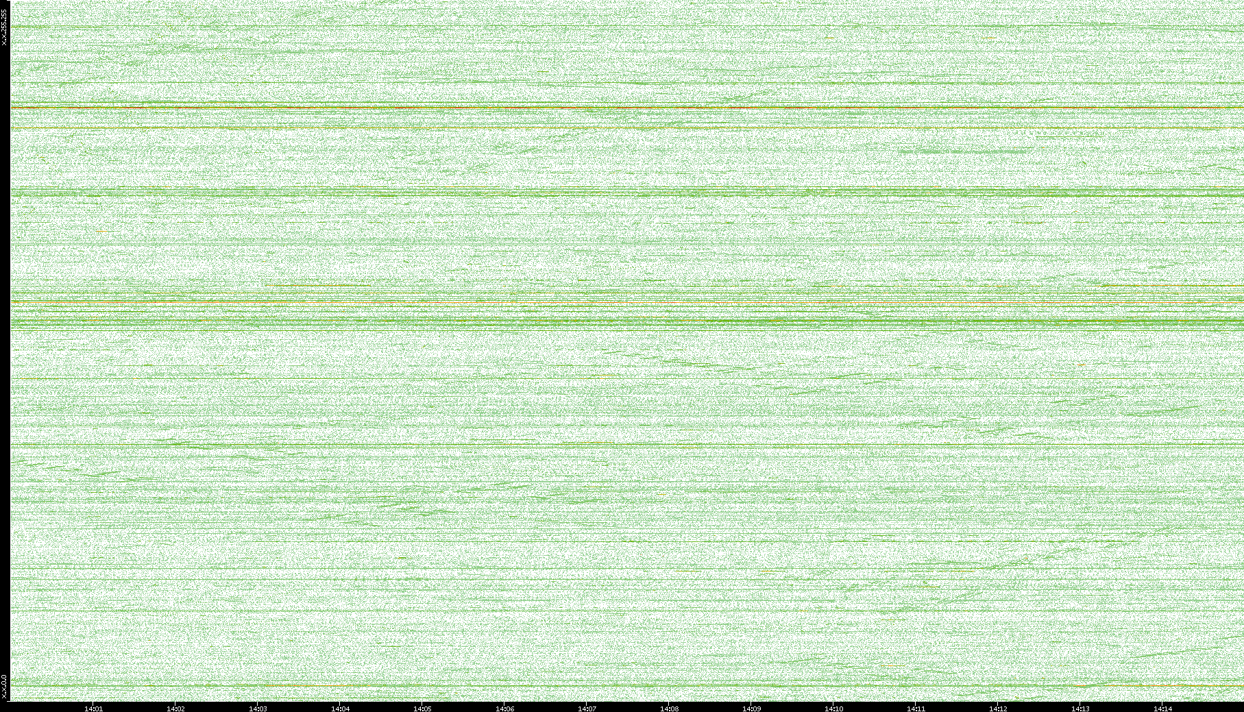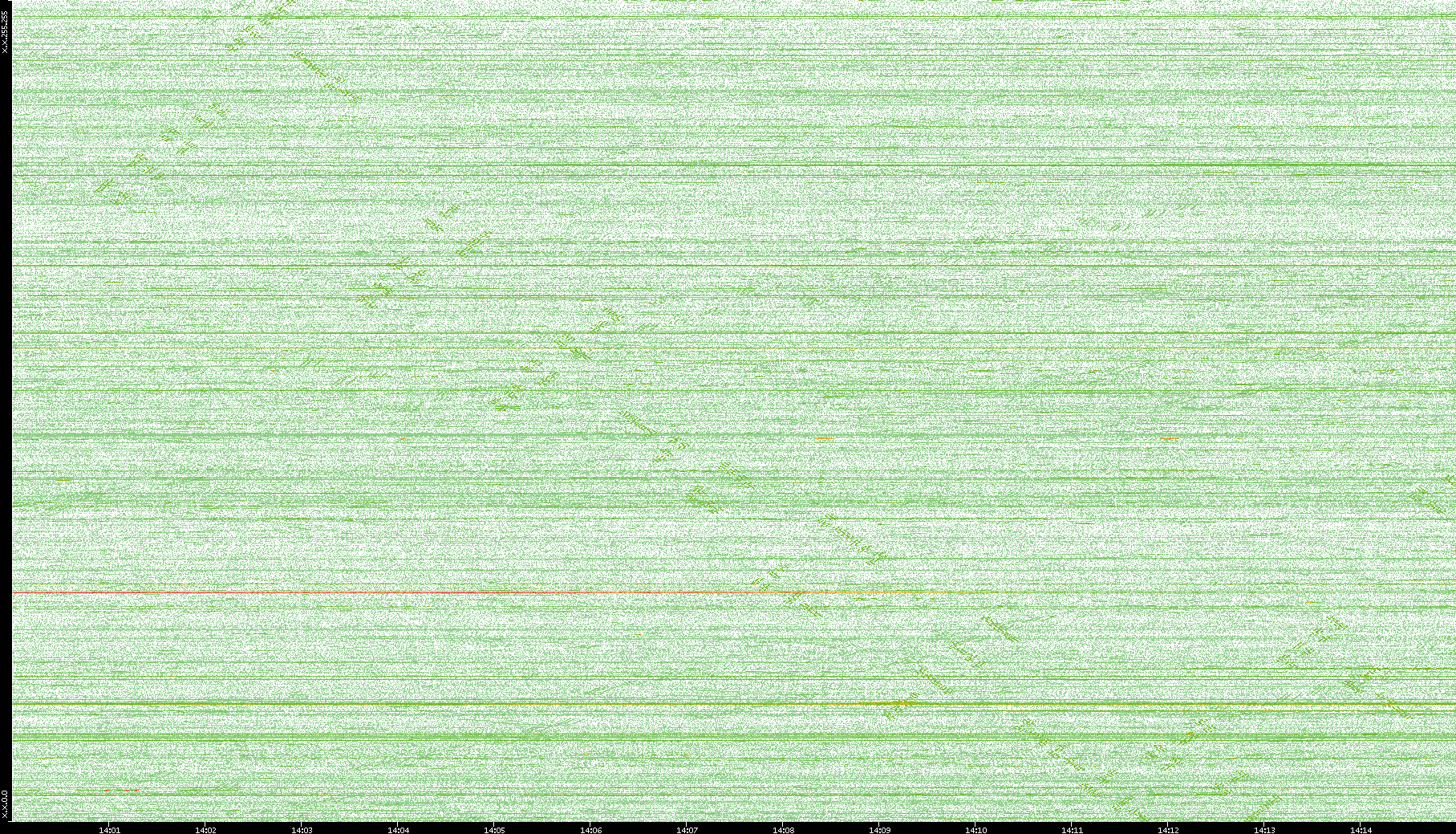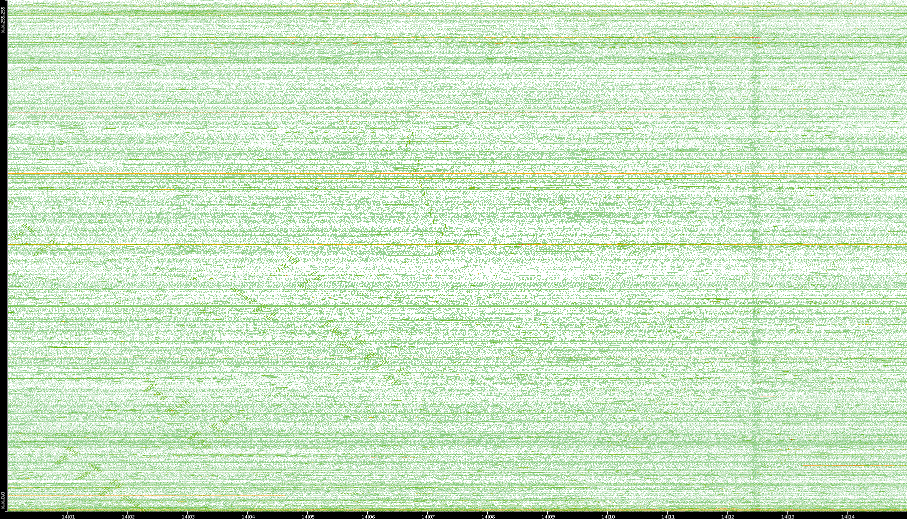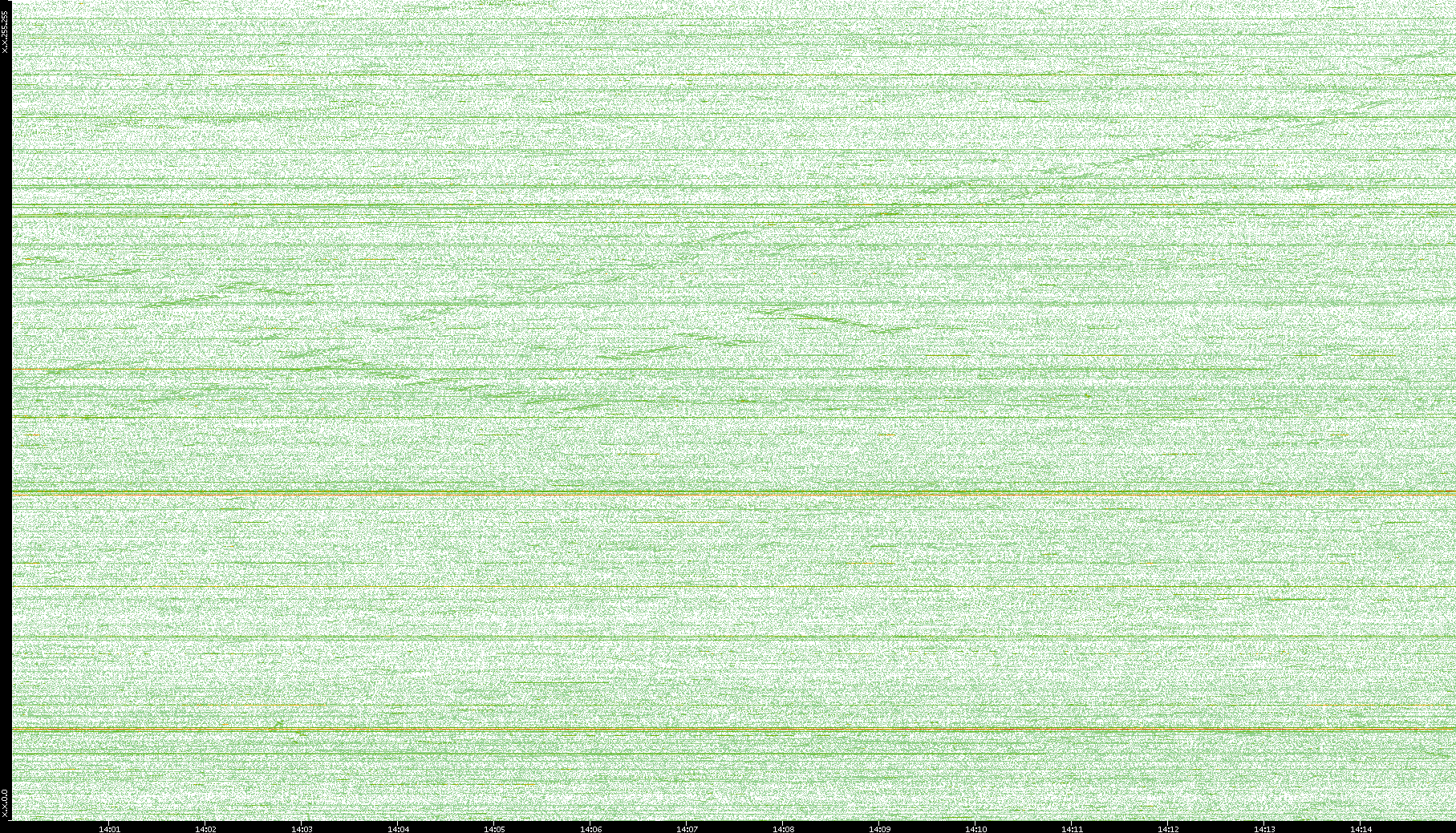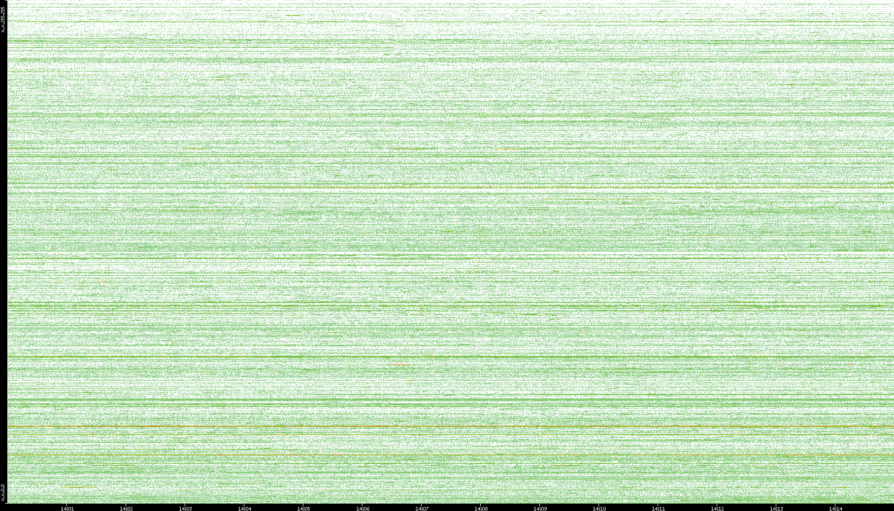 2004/02/14 Dest. IP vs. Time Dest. Port vs. Time Src. IP vs. Time Src. Port vs. Time Nb. of Packets vs. Time Throughput vs. Time Average Packet Size vs. Time Entropy of Port vs. Time