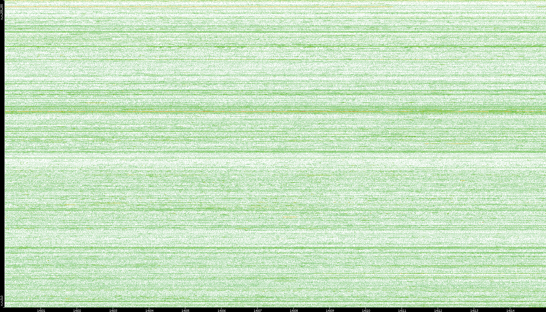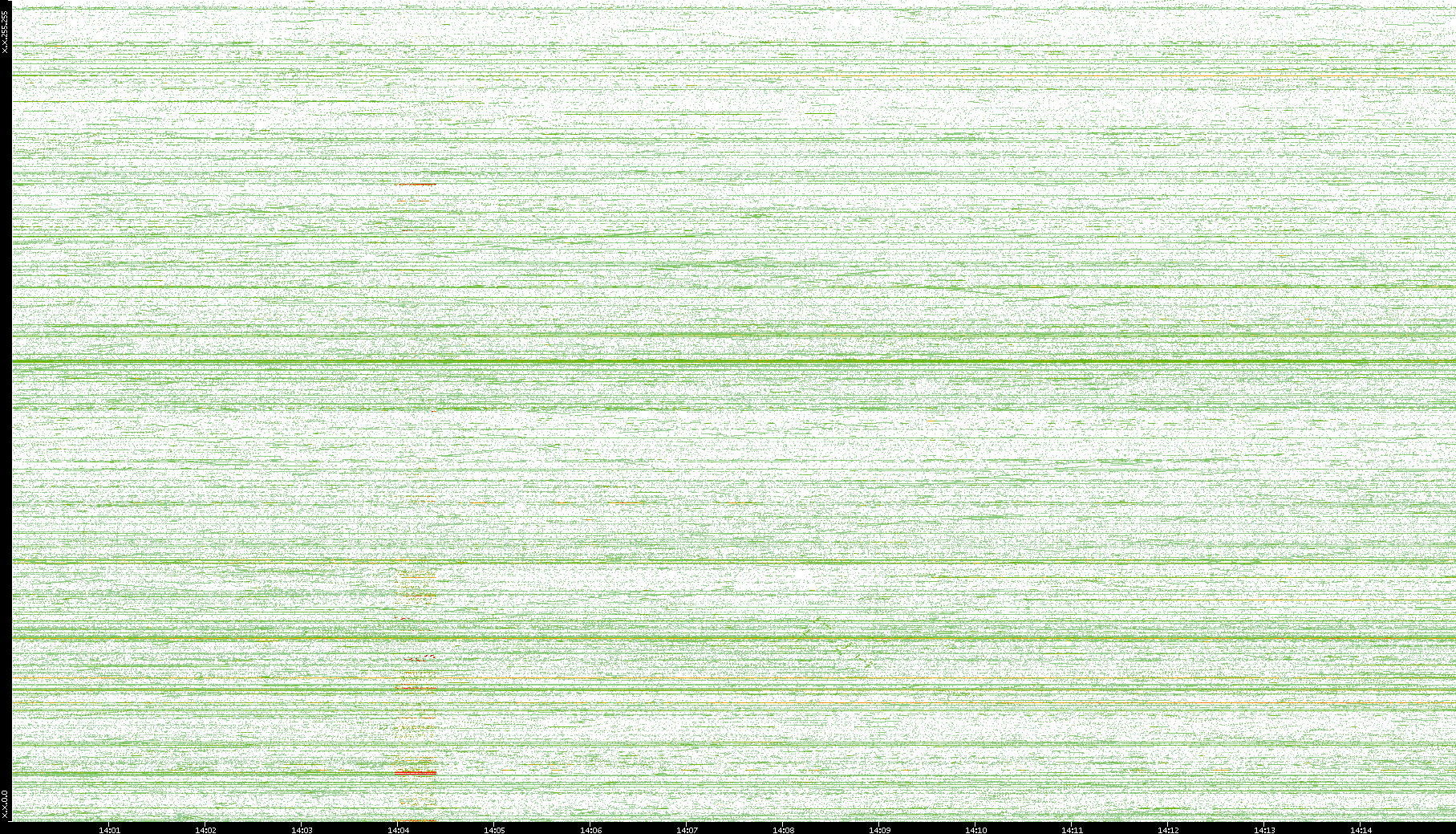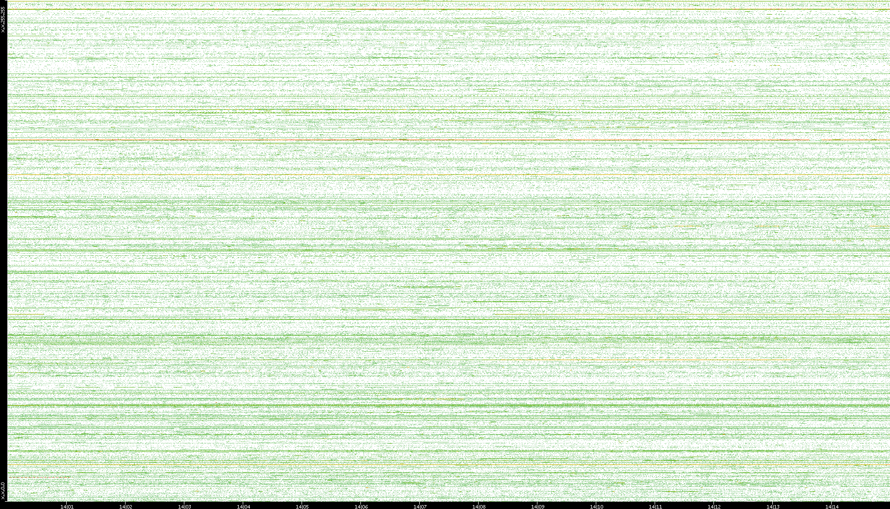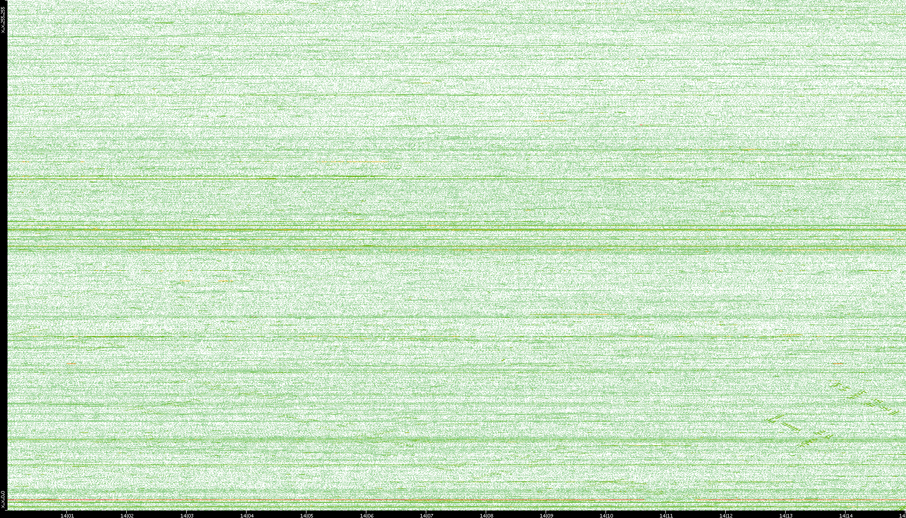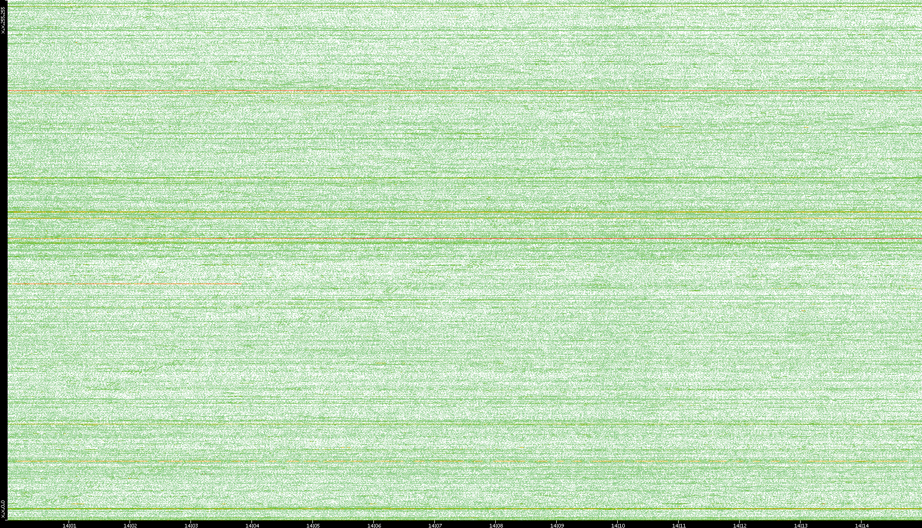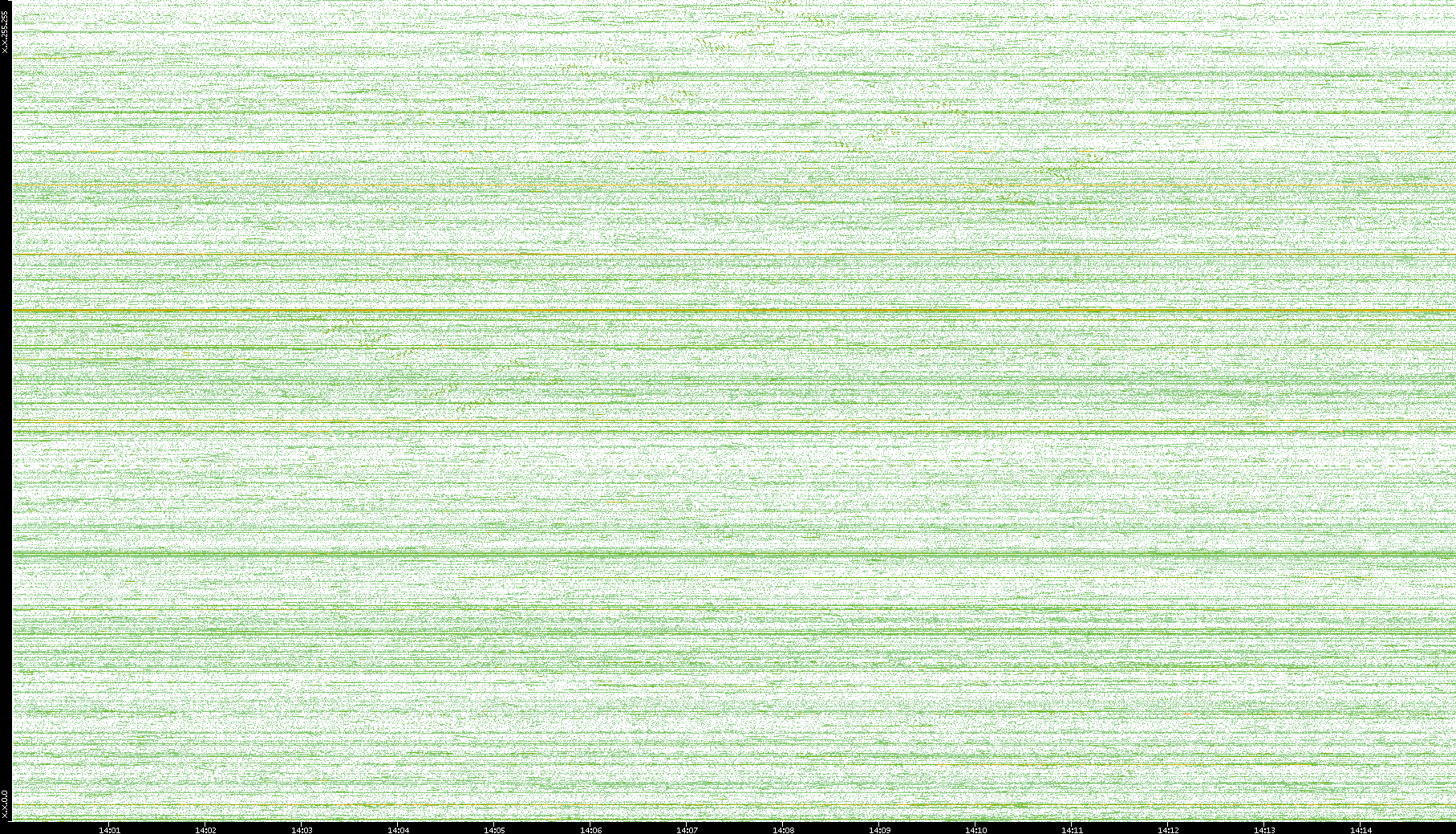 2004/02/14 Dest. IP vs. Time Dest. Port vs. Time Src. IP vs. Time Src. Port vs. Time Nb. of Packets vs. Time Throughput vs. Time Average Packet Size vs. Time Entropy of Port vs. Time