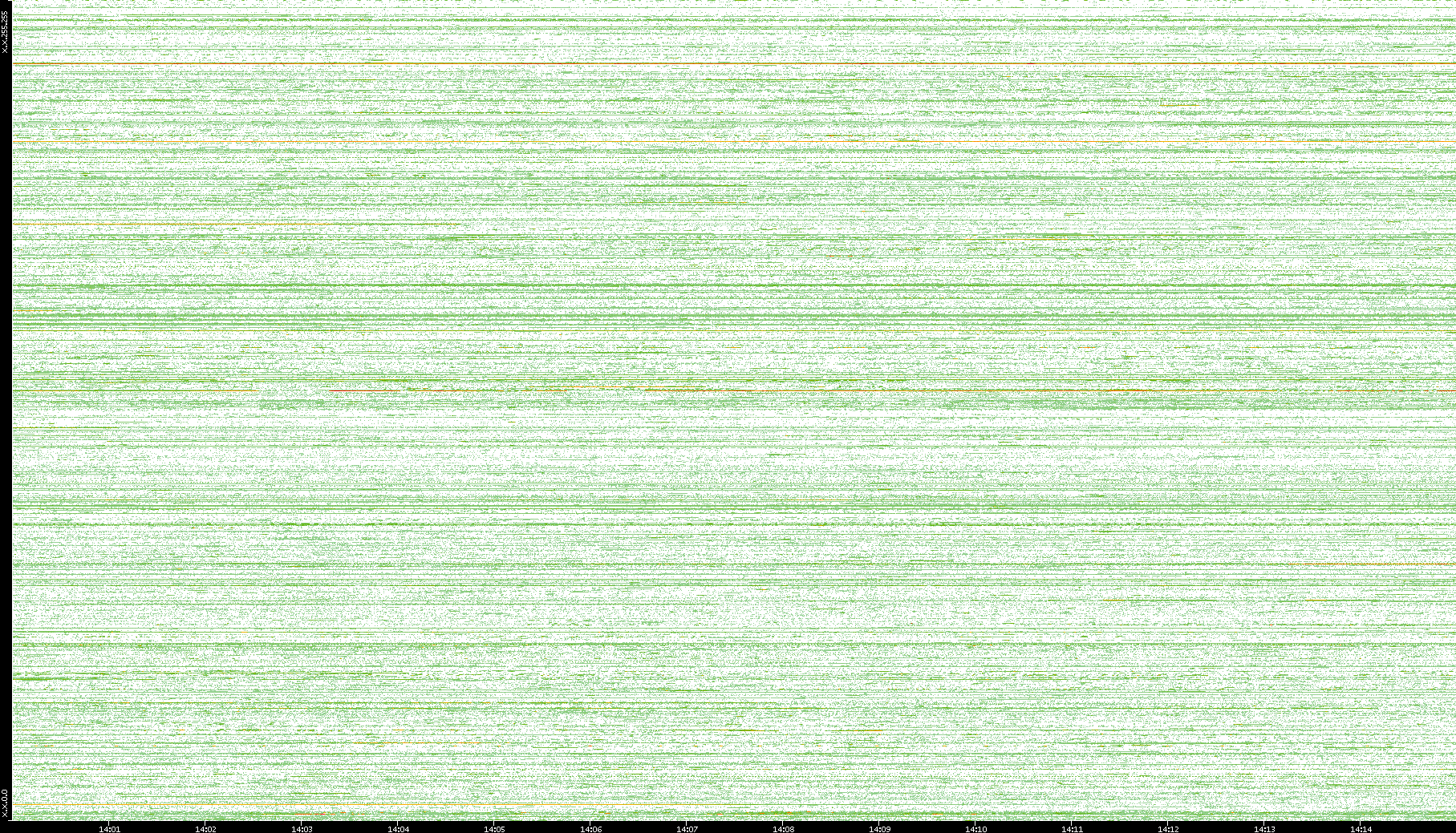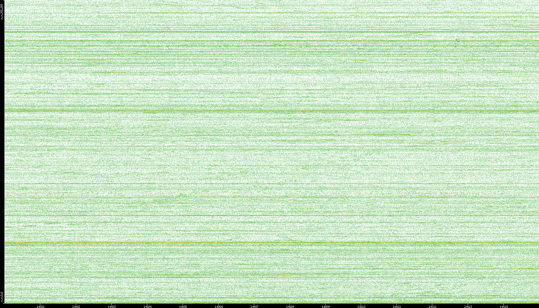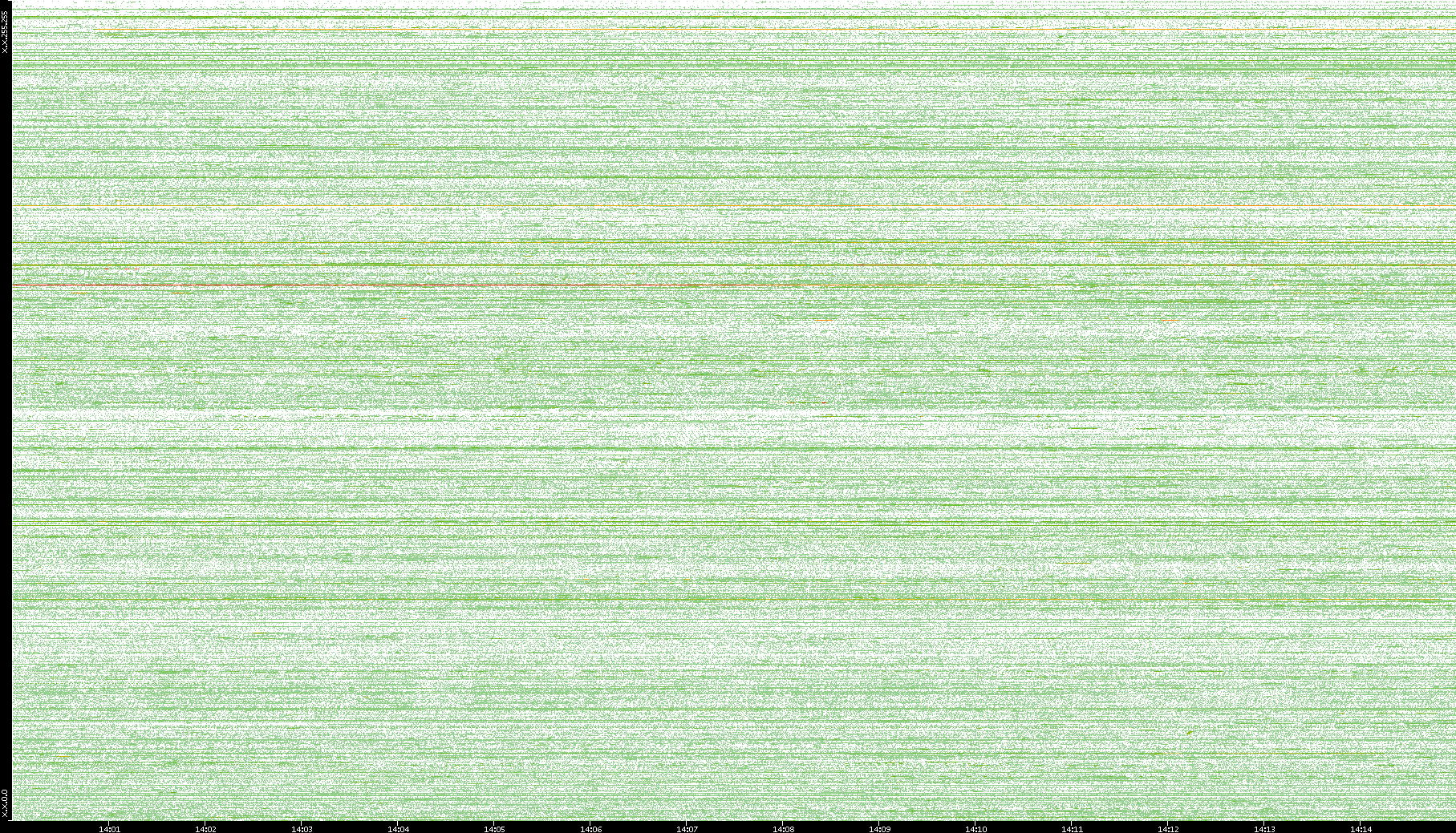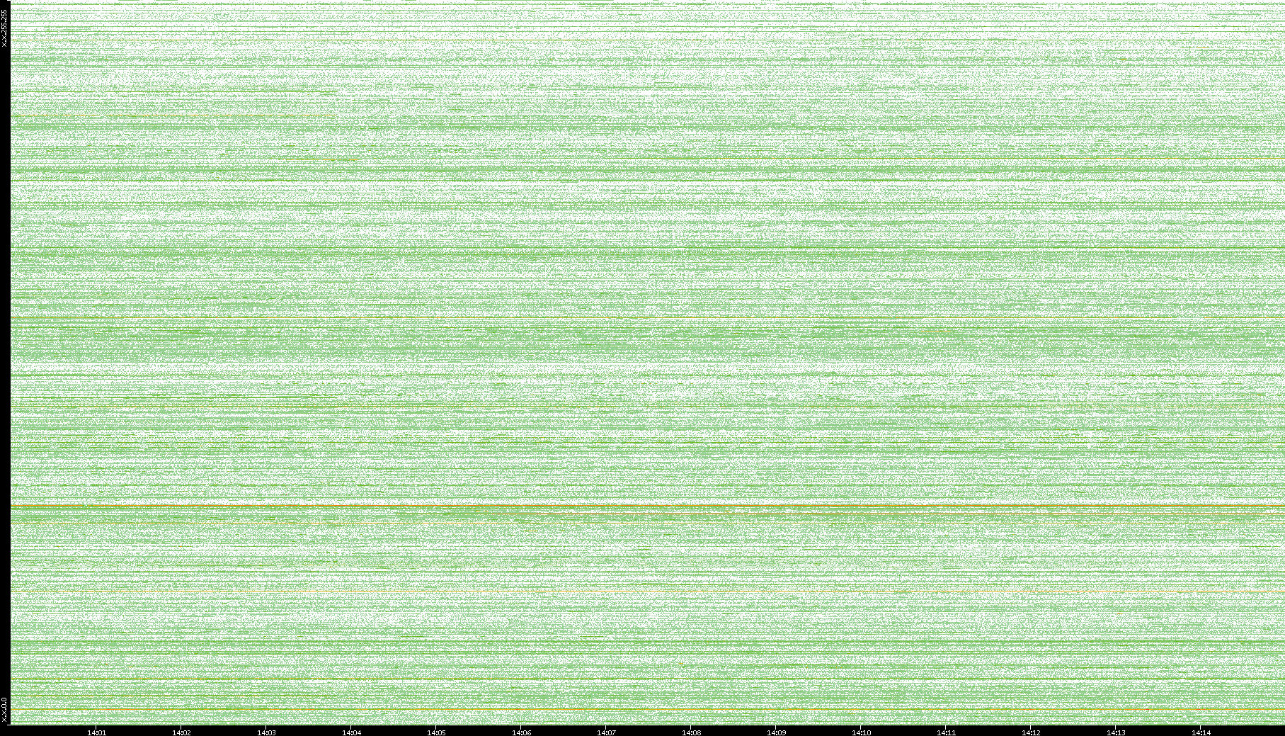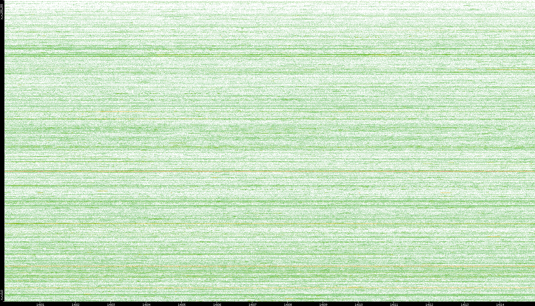 2004/02/14 Dest. IP vs. Time Dest. Port vs. Time Src. IP vs. Time Src. Port vs. Time Nb. of Packets vs. Time Throughput vs. Time Average Packet Size vs. Time Entropy of Port vs. Time