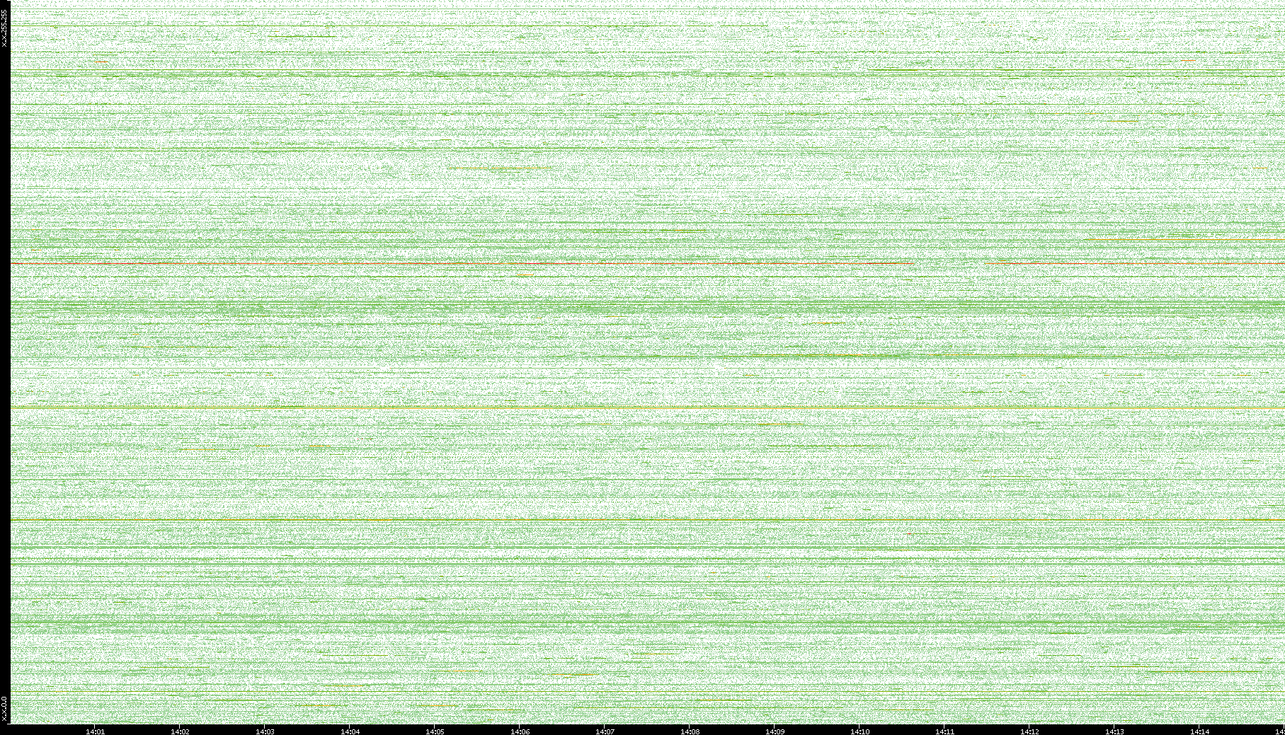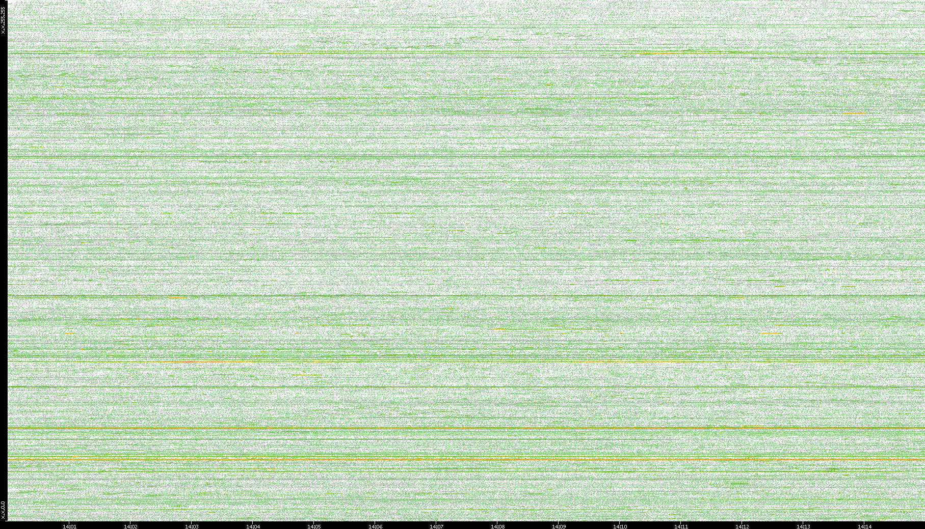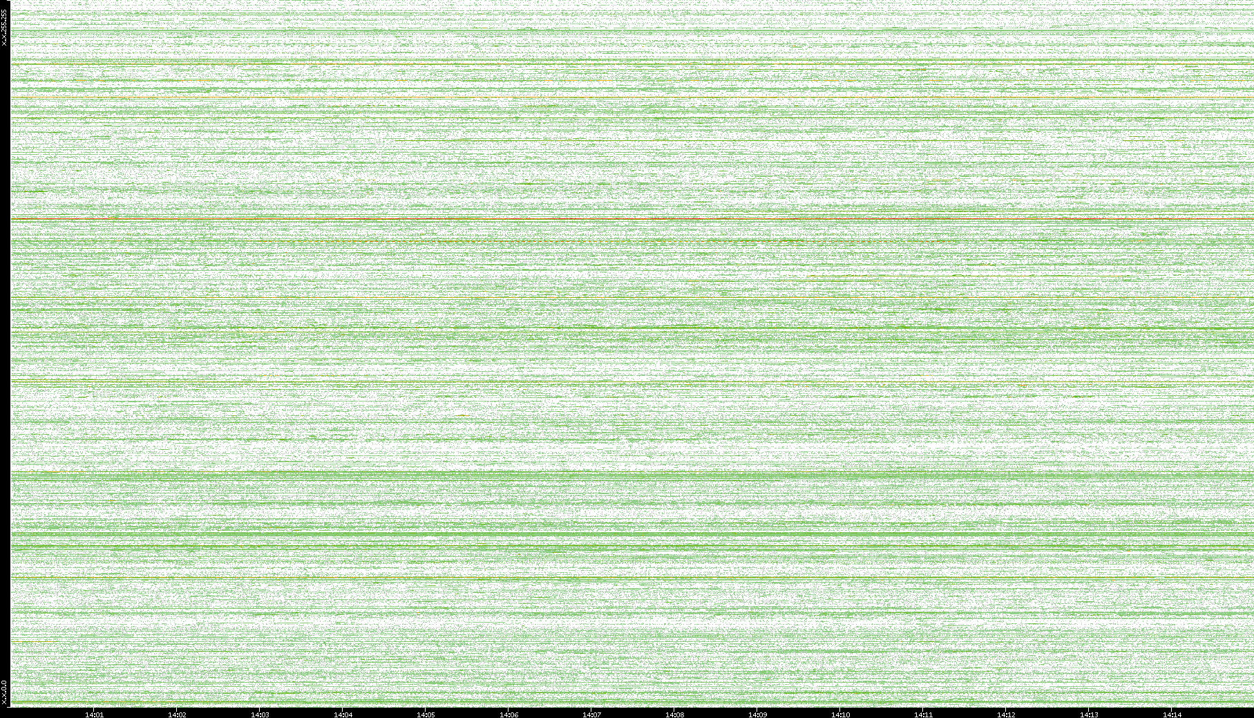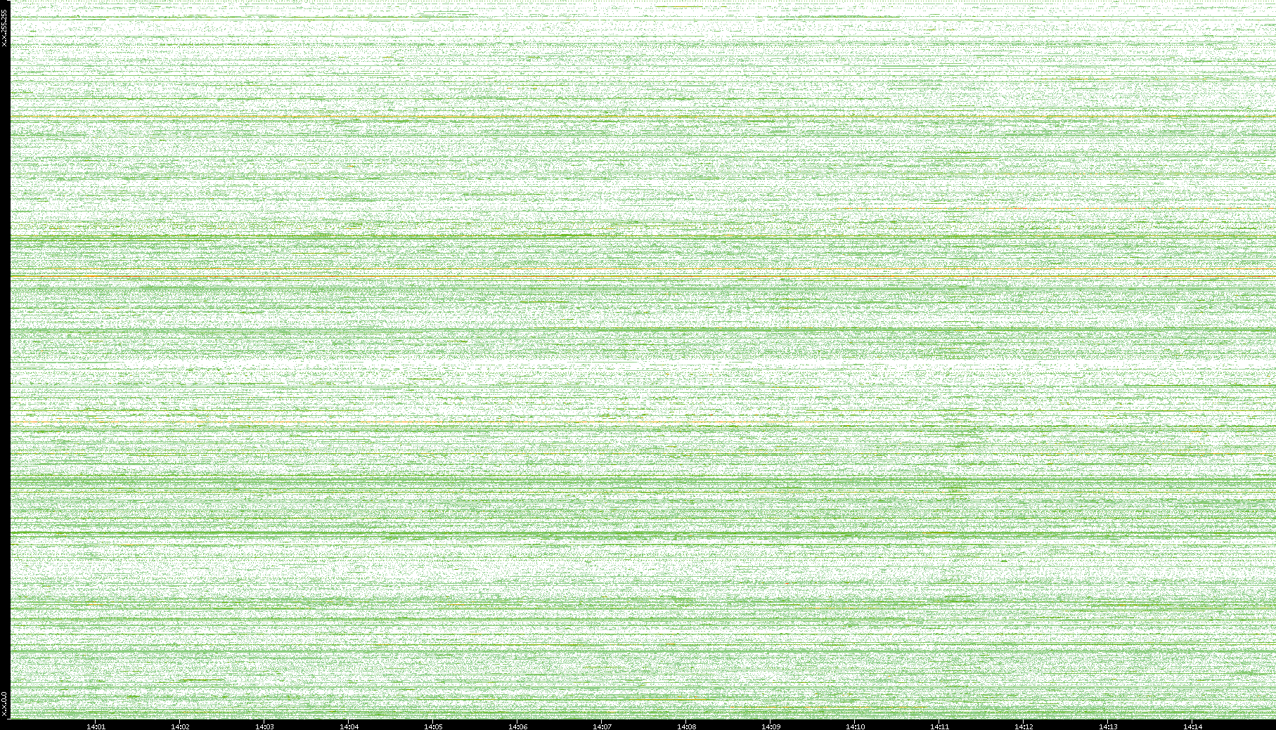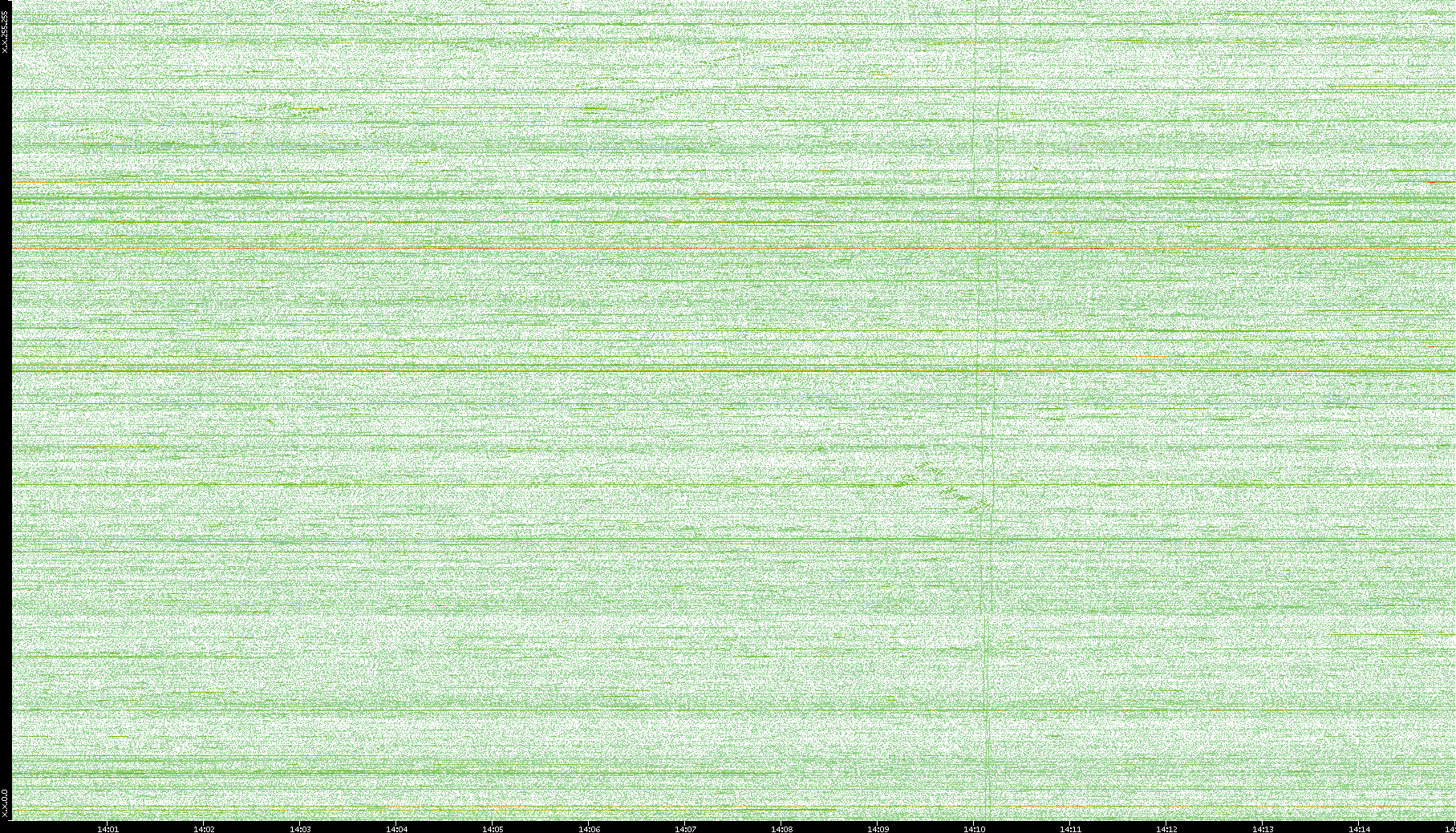 2004/02/14 Dest. IP vs. Time Dest. Port vs. Time Src. IP vs. Time Src. Port vs. Time Nb. of Packets vs. Time Throughput vs. Time Average Packet Size vs. Time Entropy of Port vs. Time