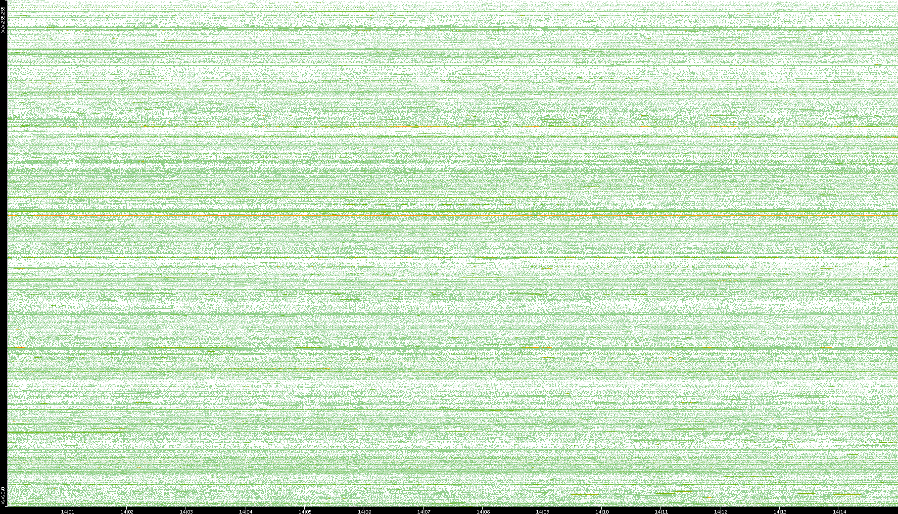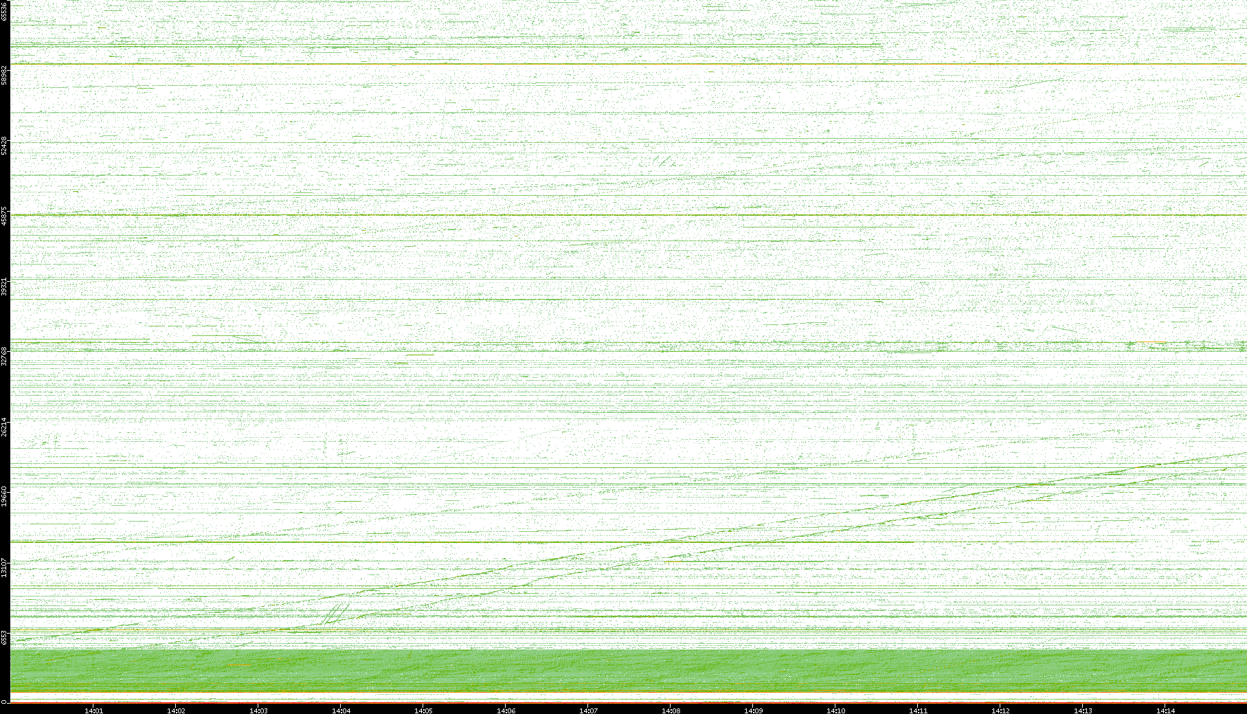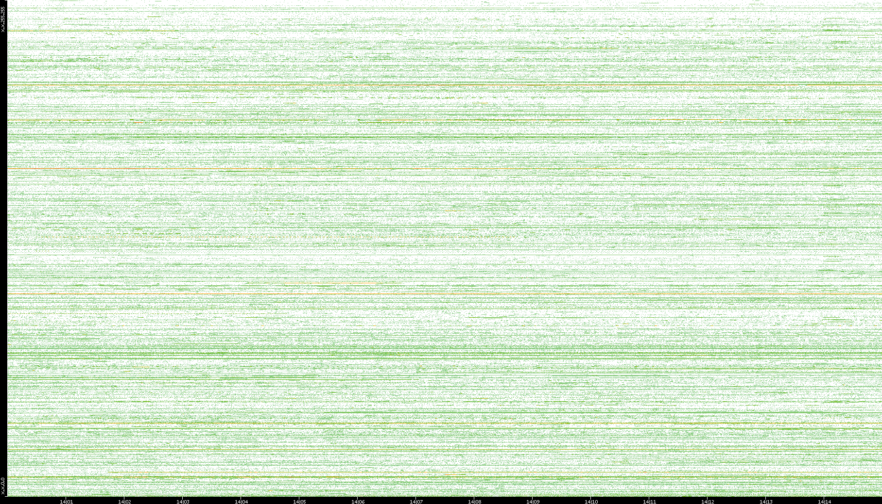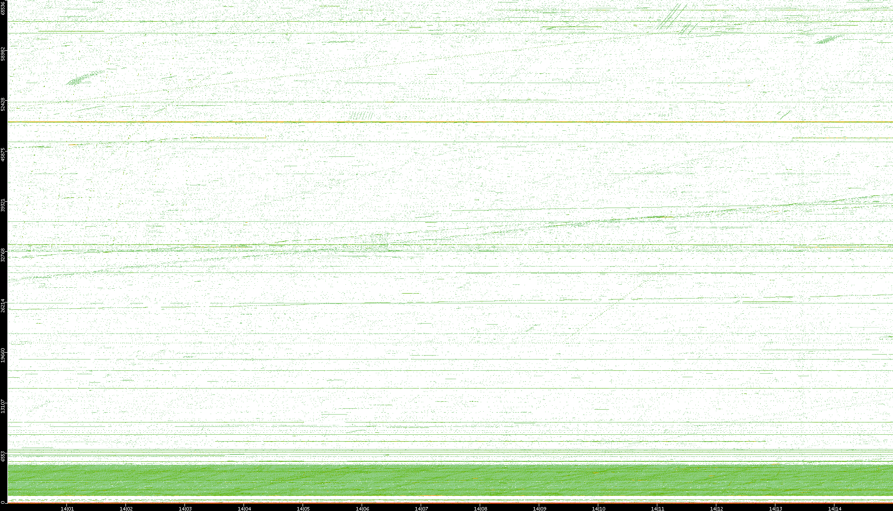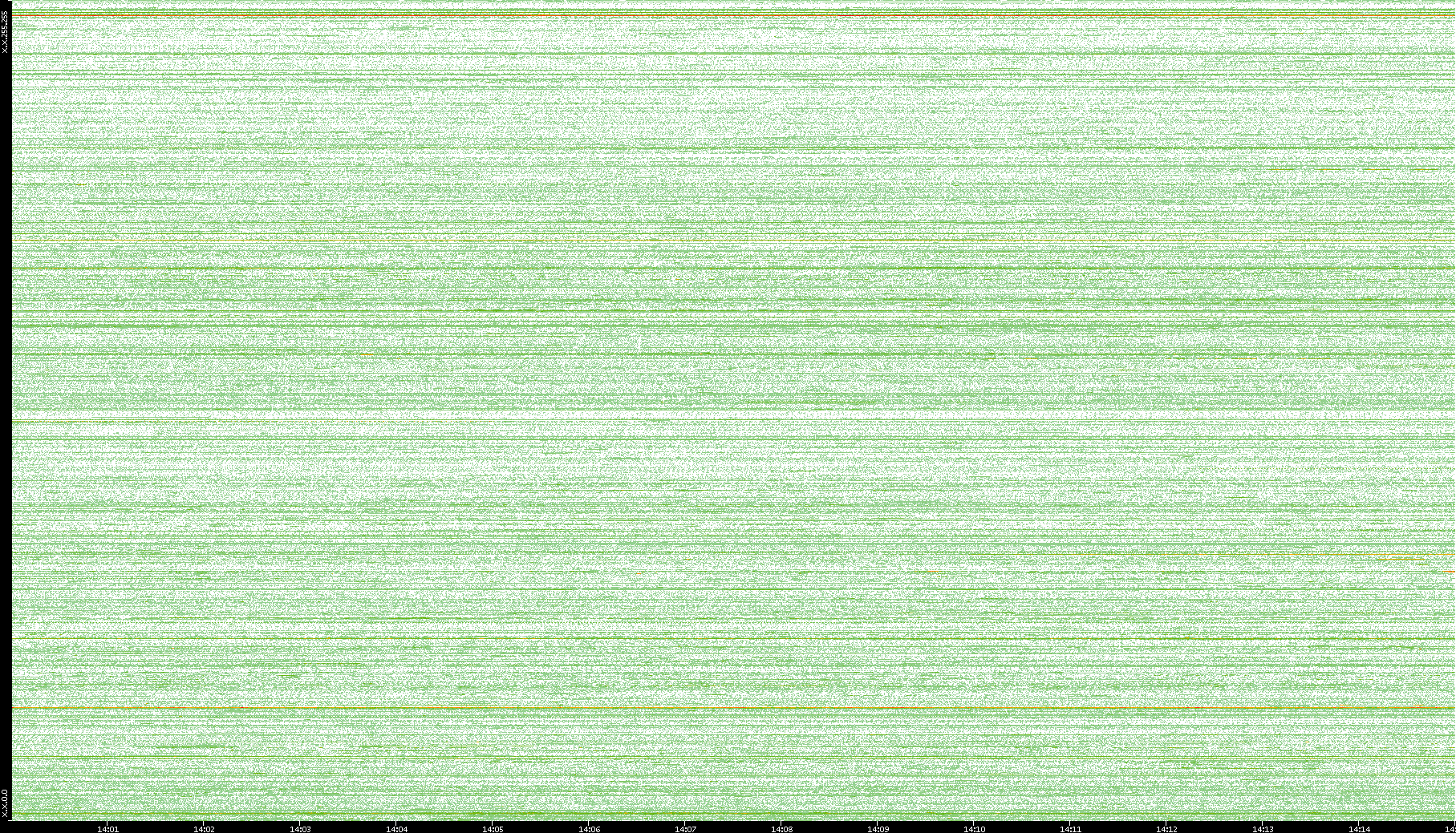 2004/02/14 Dest. IP vs. Time Dest. Port vs. Time Src. IP vs. Time Src. Port vs. Time Nb. of Packets vs. Time Throughput vs. Time Average Packet Size vs. Time Entropy of Port vs. Time