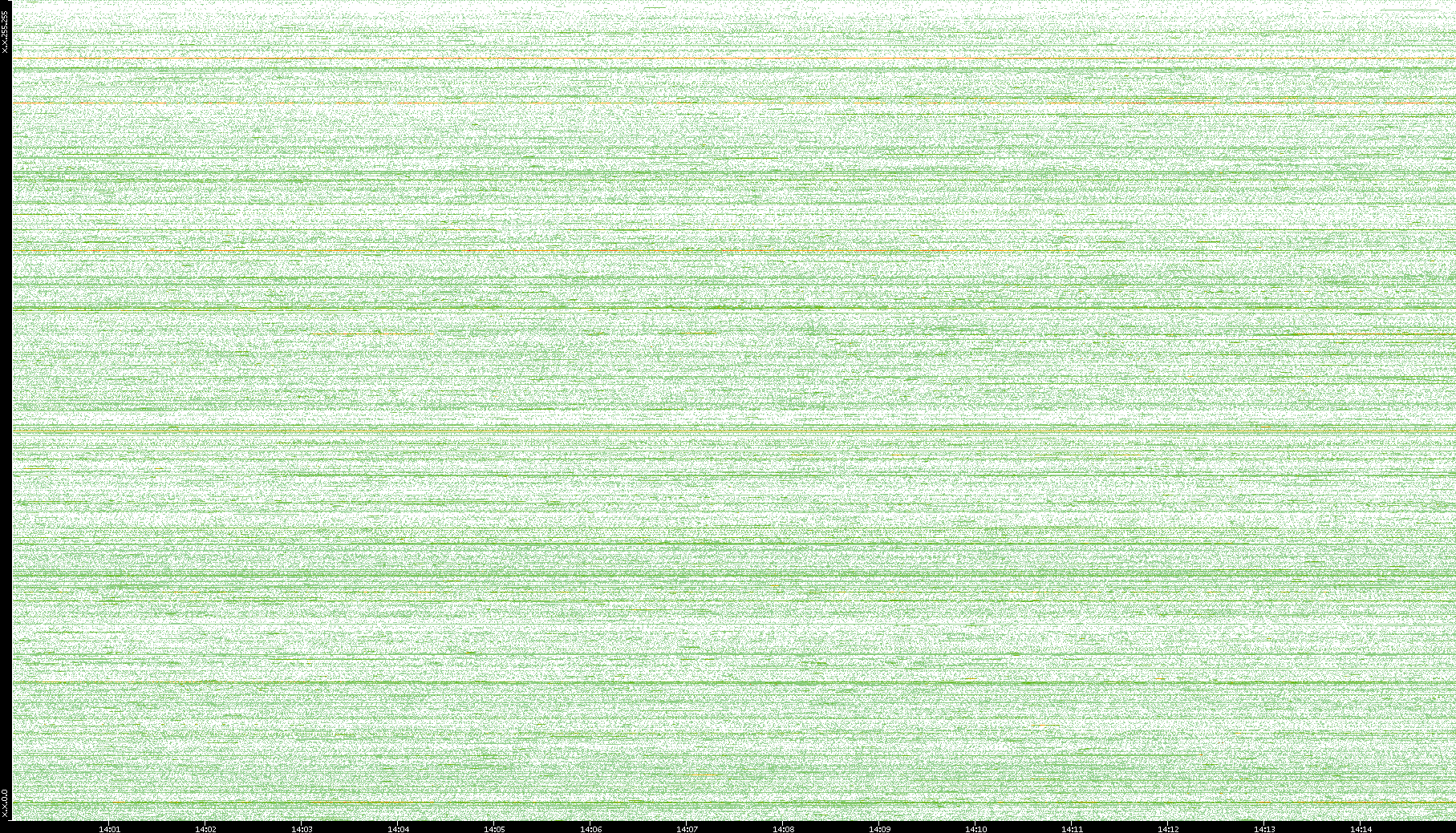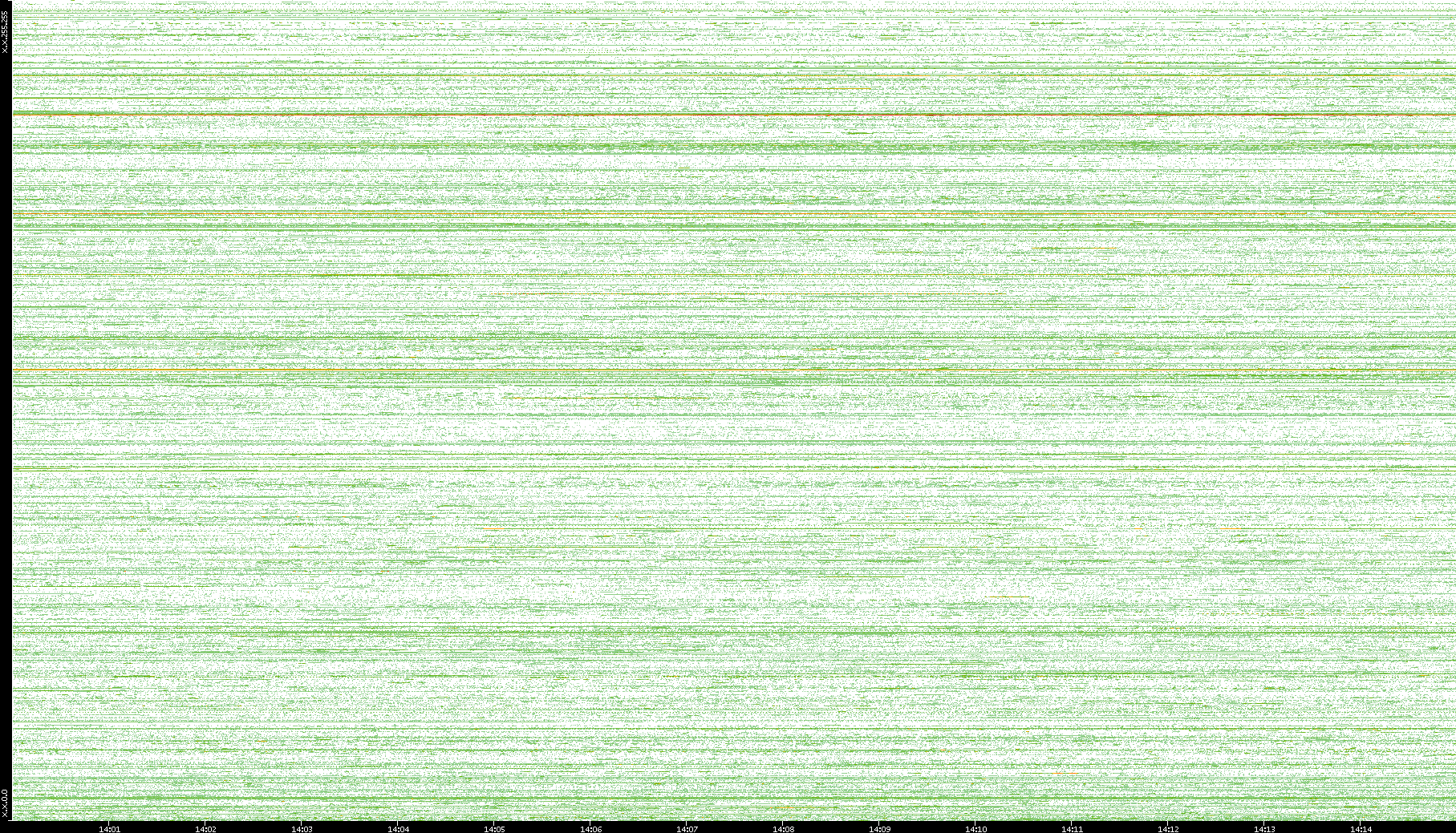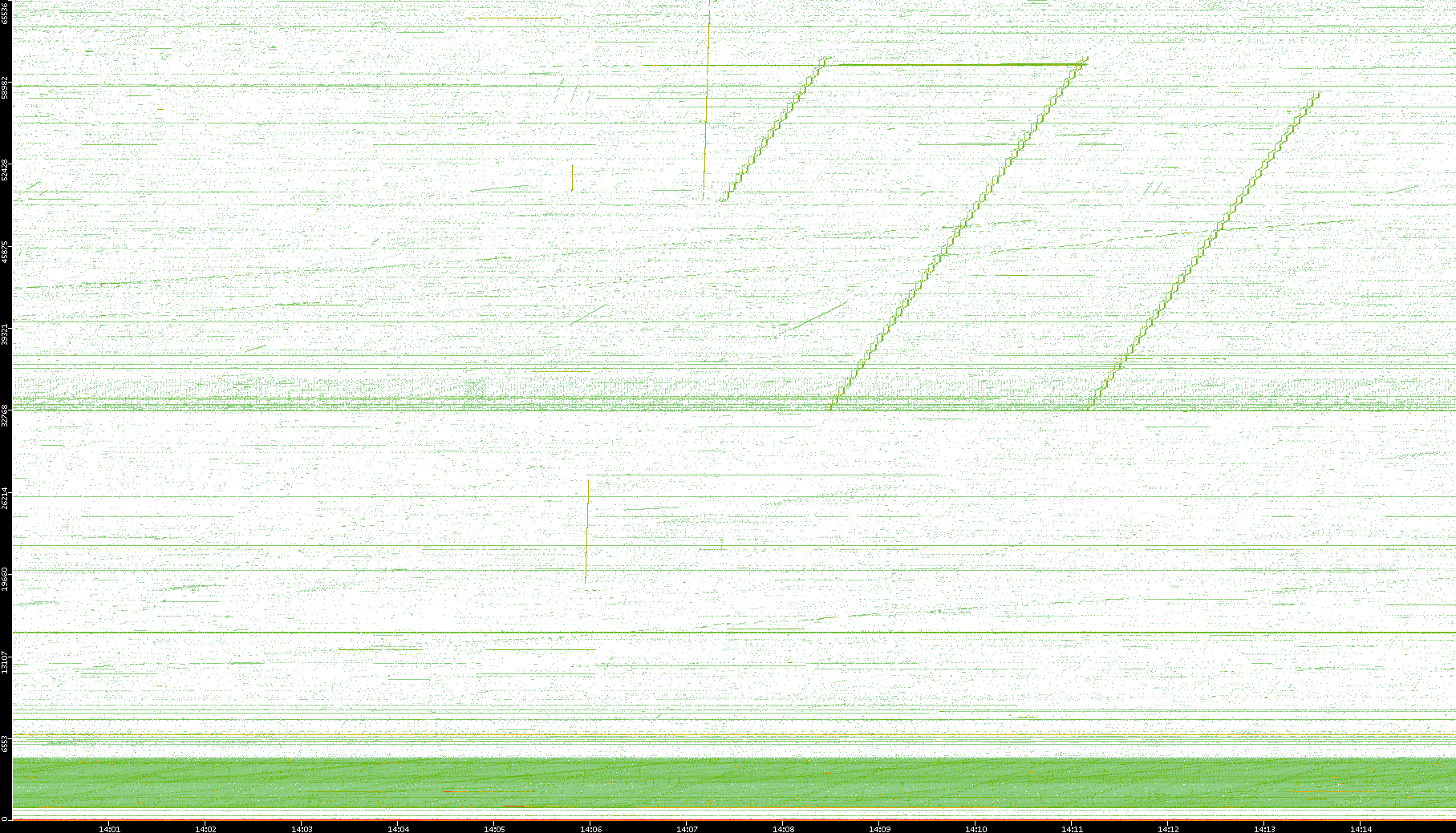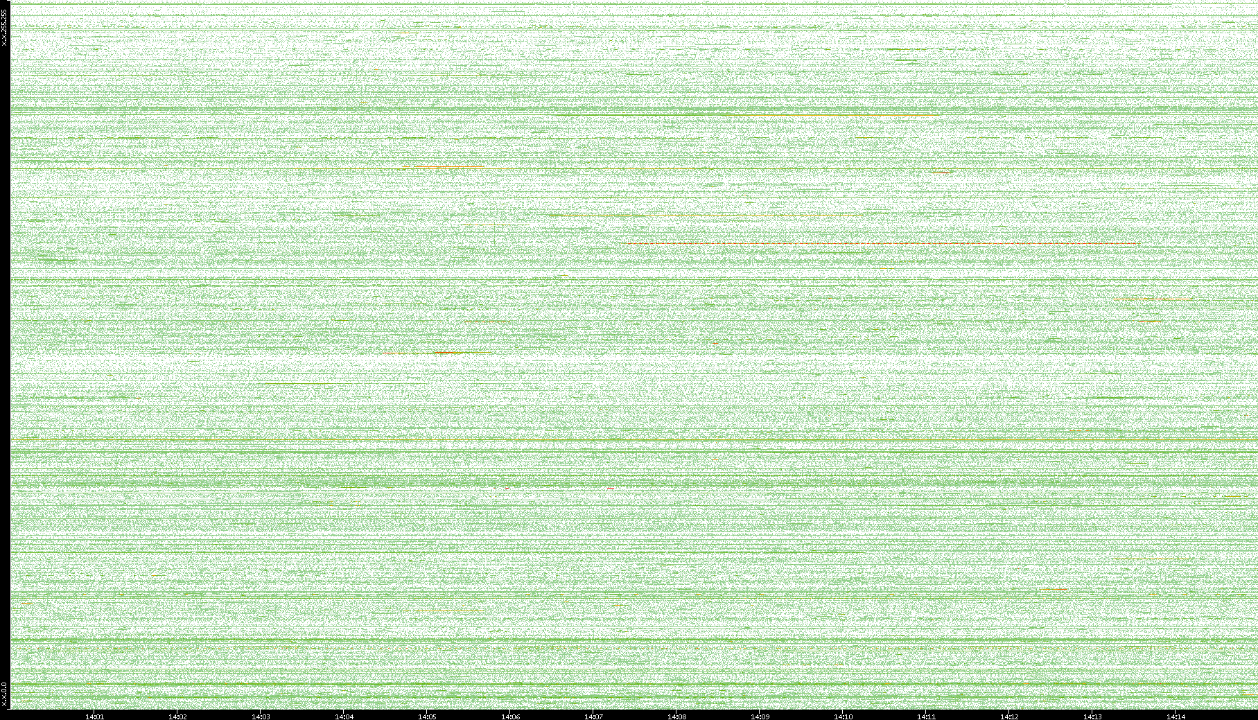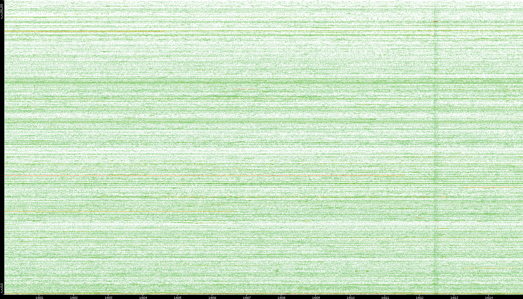 2004/02/14 Dest. IP vs. Time Dest. Port vs. Time Src. IP vs. Time Src. Port vs. Time Nb. of Packets vs. Time Throughput vs. Time Average Packet Size vs. Time Entropy of Port vs. Time