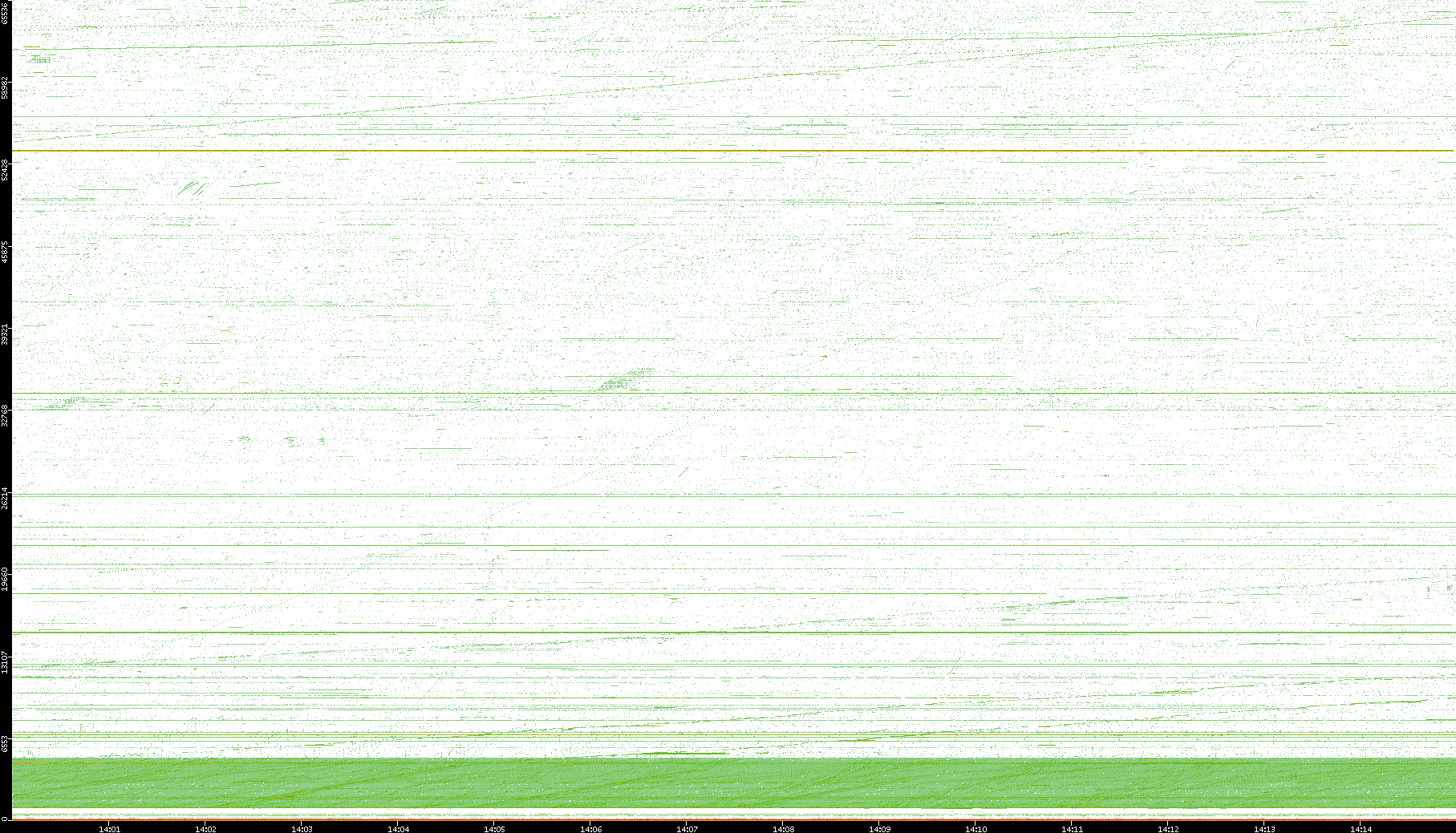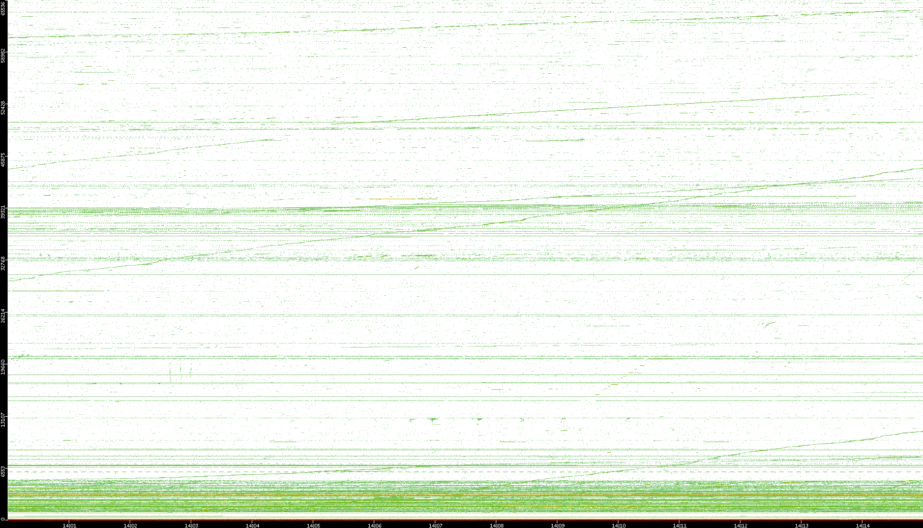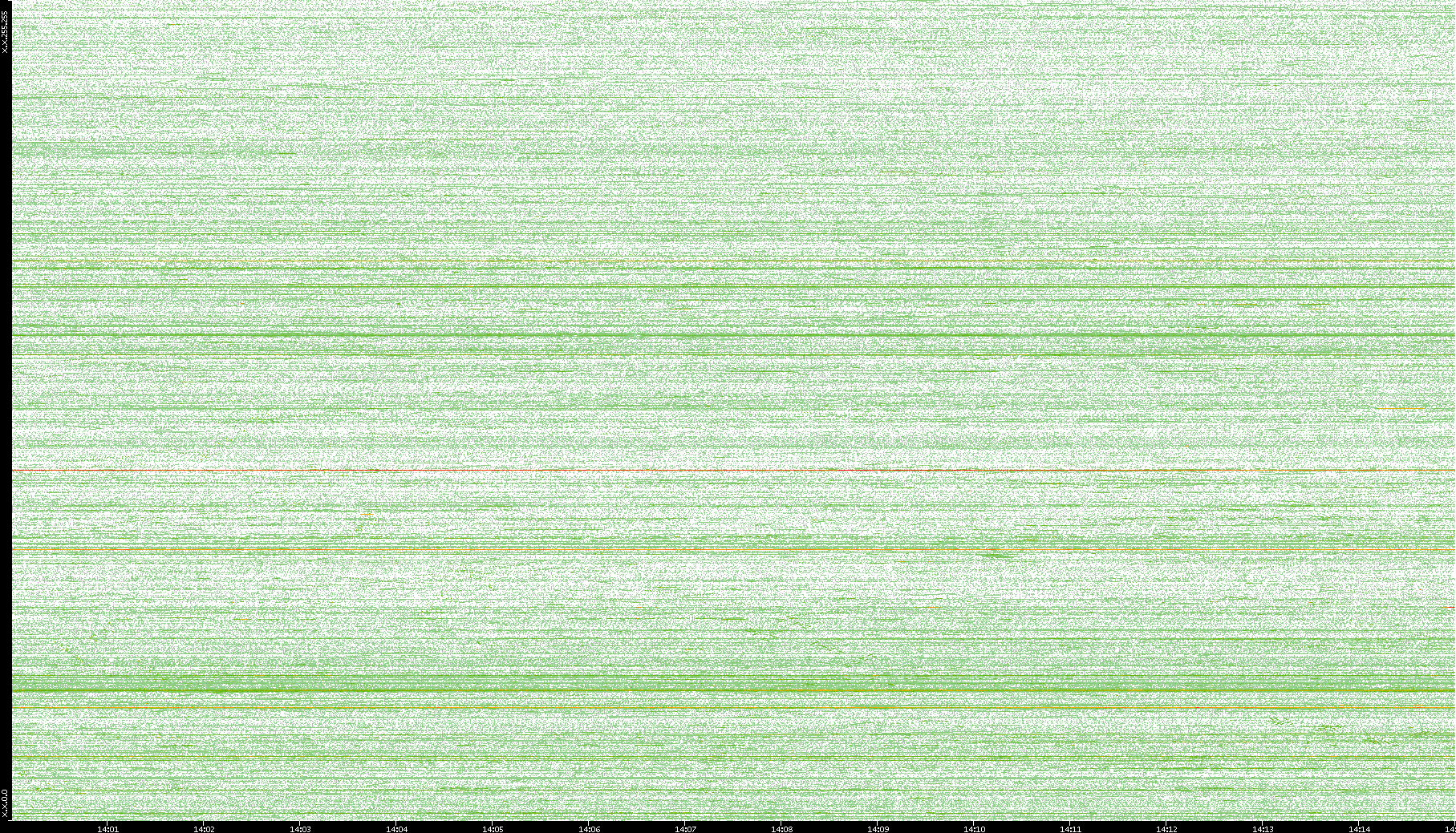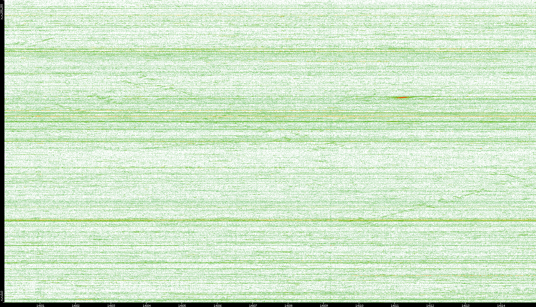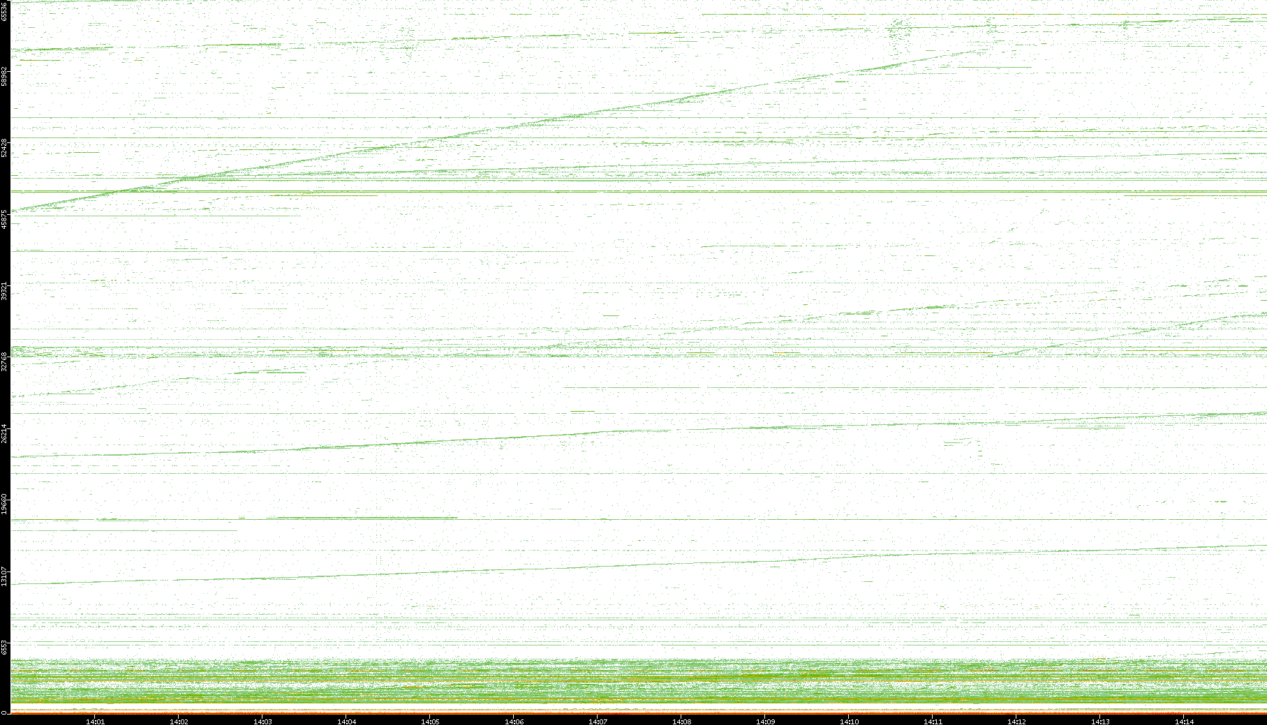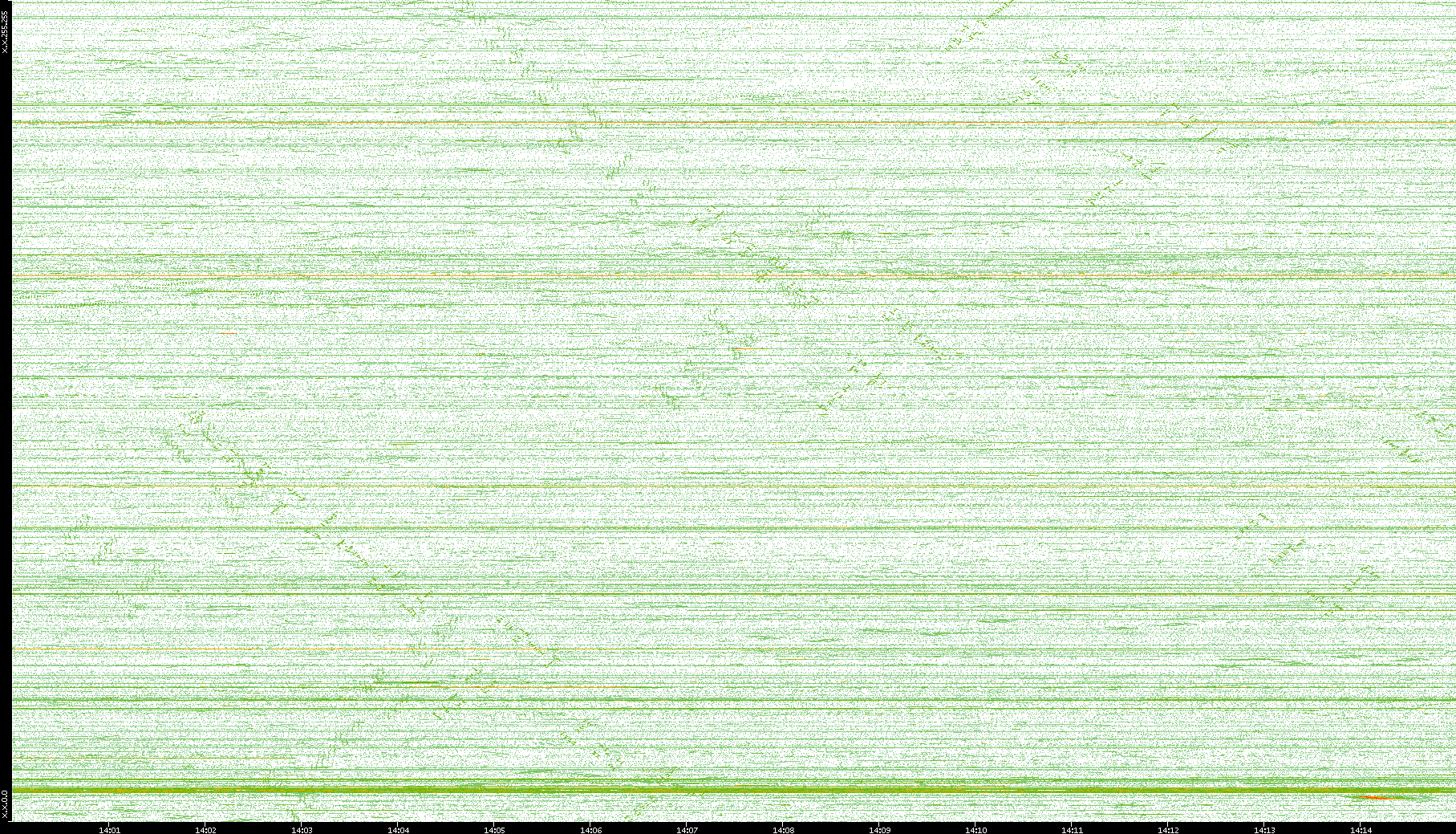 2004/02/14 Dest. IP vs. Time Dest. Port vs. Time Src. IP vs. Time Src. Port vs. Time Nb. of Packets vs. Time Throughput vs. Time Average Packet Size vs. Time Entropy of Port vs. Time