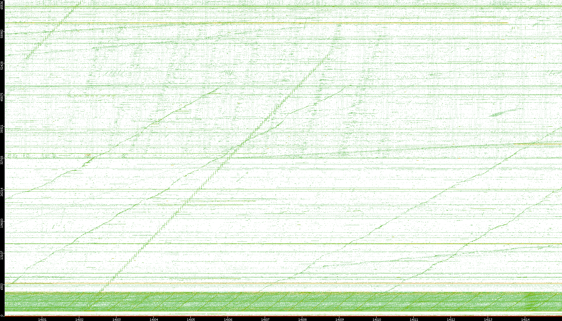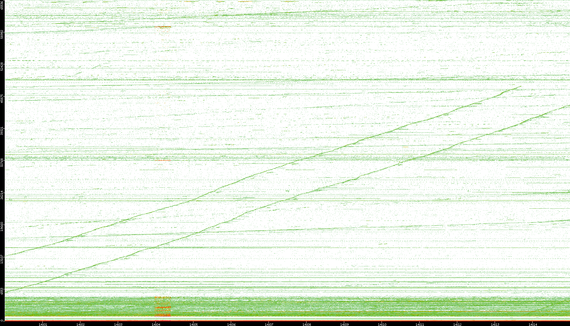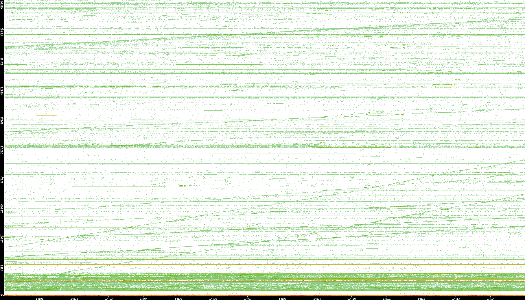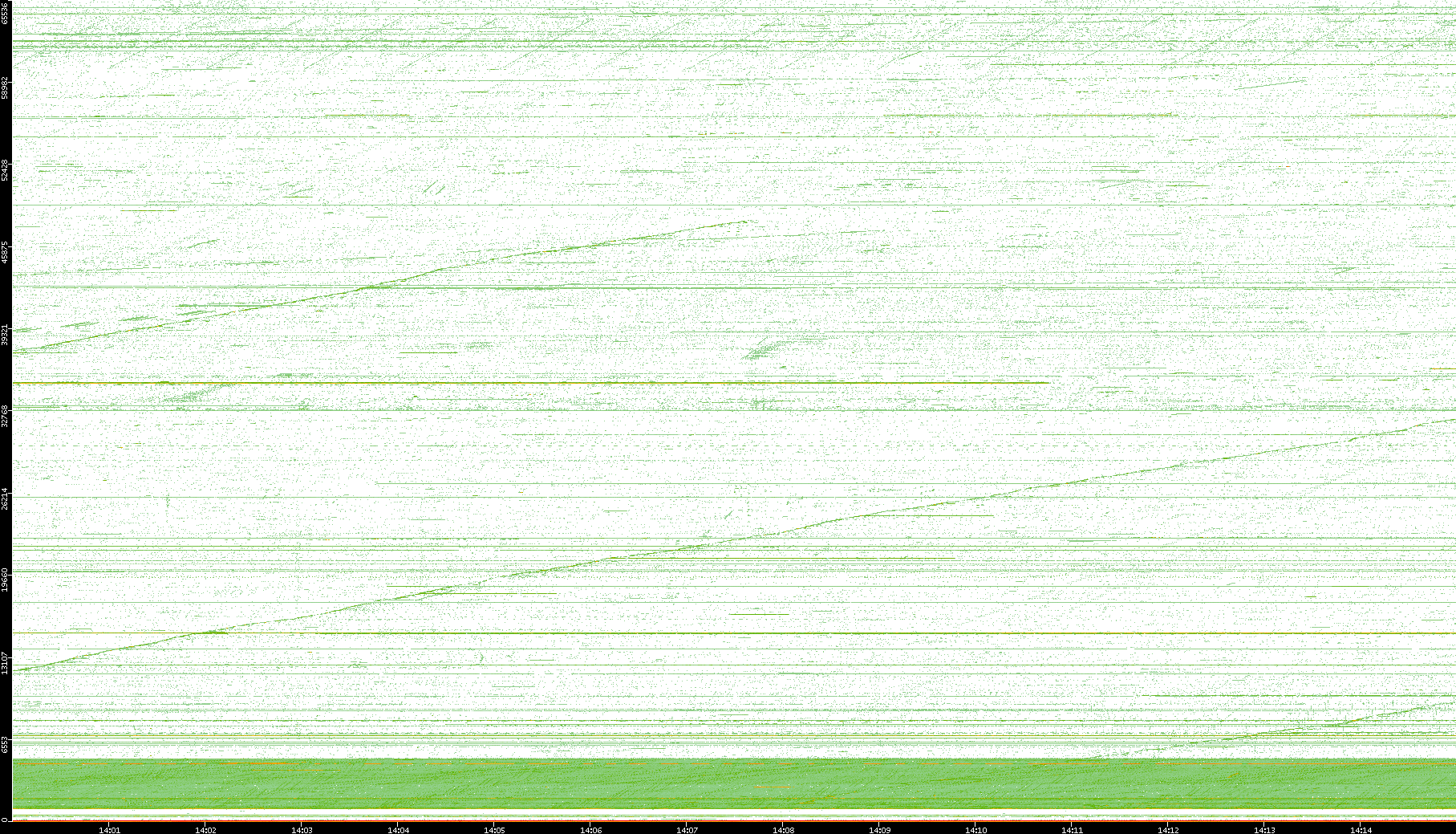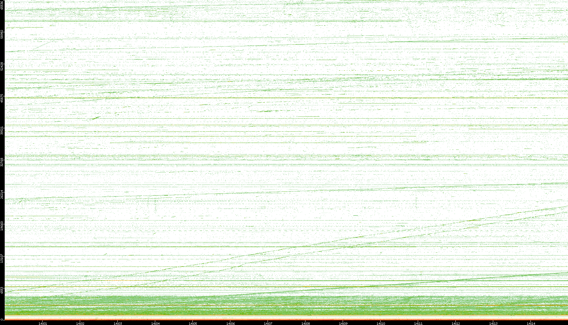 2004/02/14 Dest. IP vs. Time Dest. Port vs. Time Src. IP vs. Time Src. Port vs. Time Nb. of Packets vs. Time Throughput vs. Time Average Packet Size vs. Time Entropy of Port vs. Time