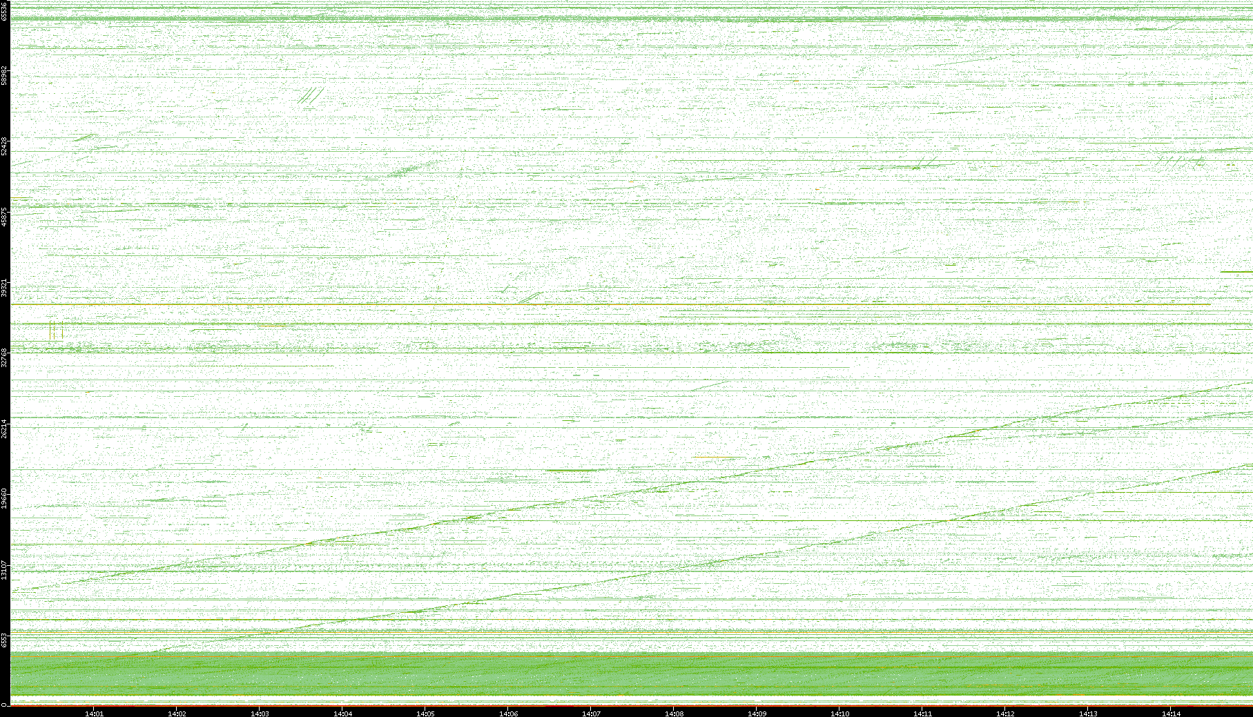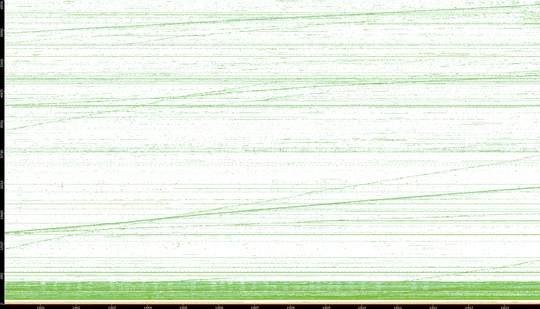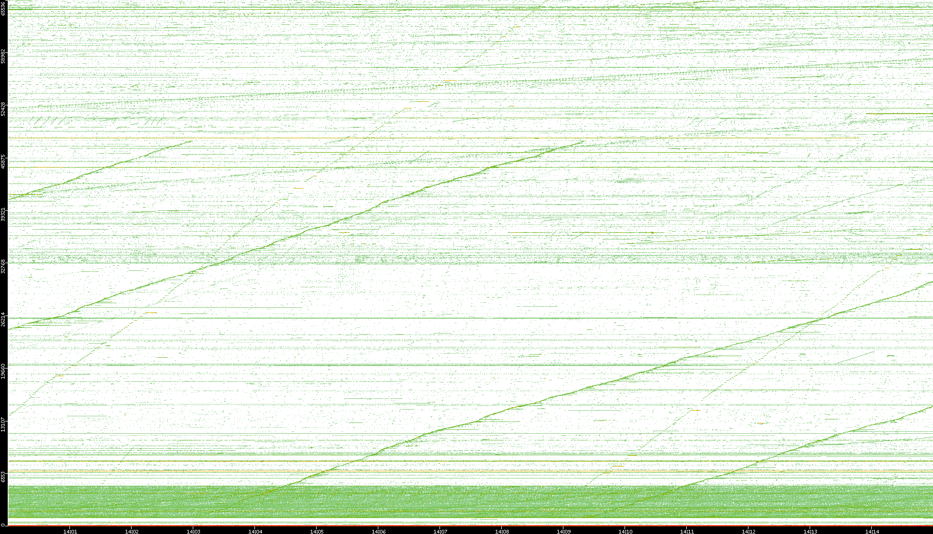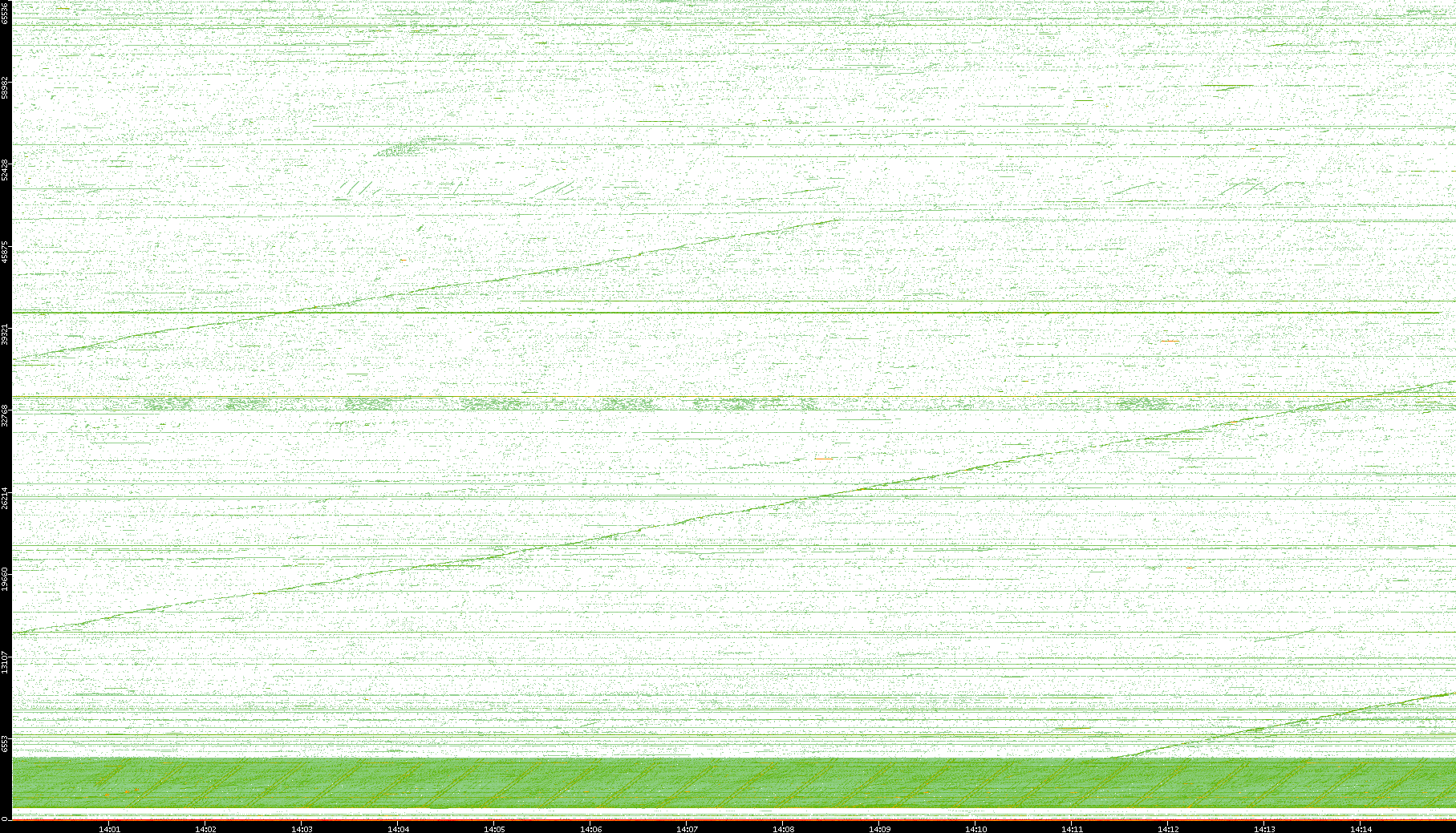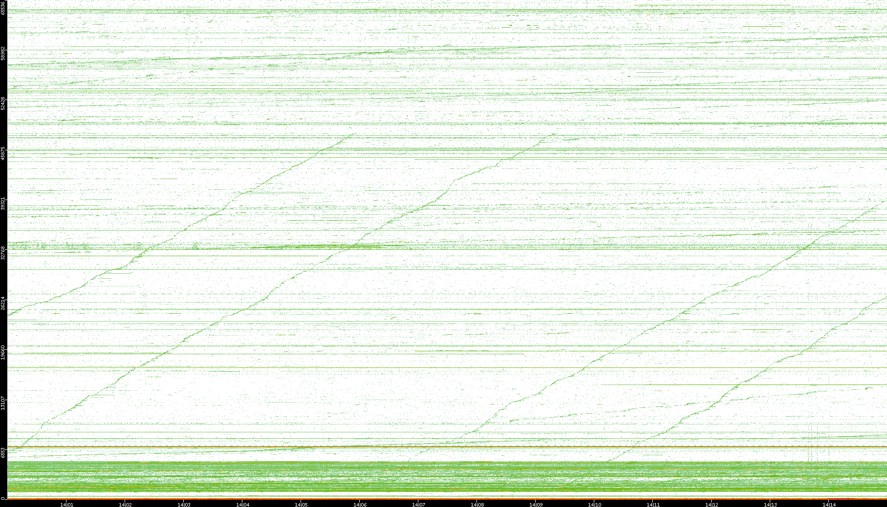 2004/02/14 Dest. IP vs. Time Dest. Port vs. Time Src. IP vs. Time Src. Port vs. Time Nb. of Packets vs. Time Throughput vs. Time Average Packet Size vs. Time Entropy of Port vs. Time