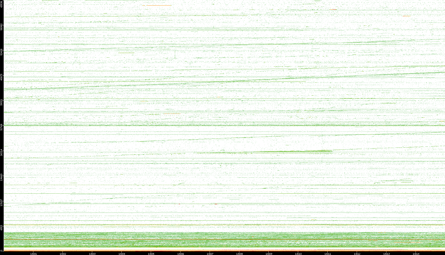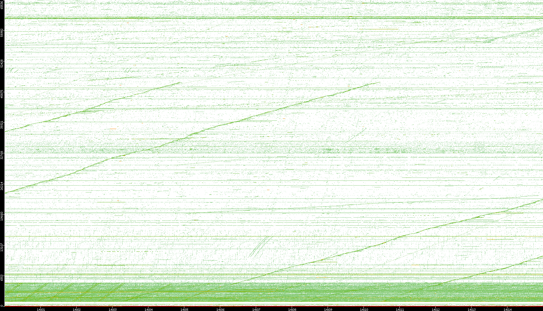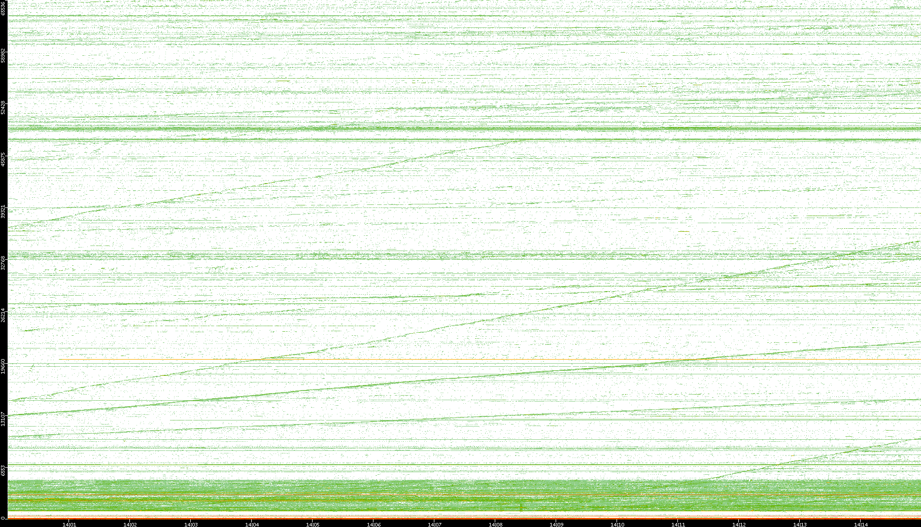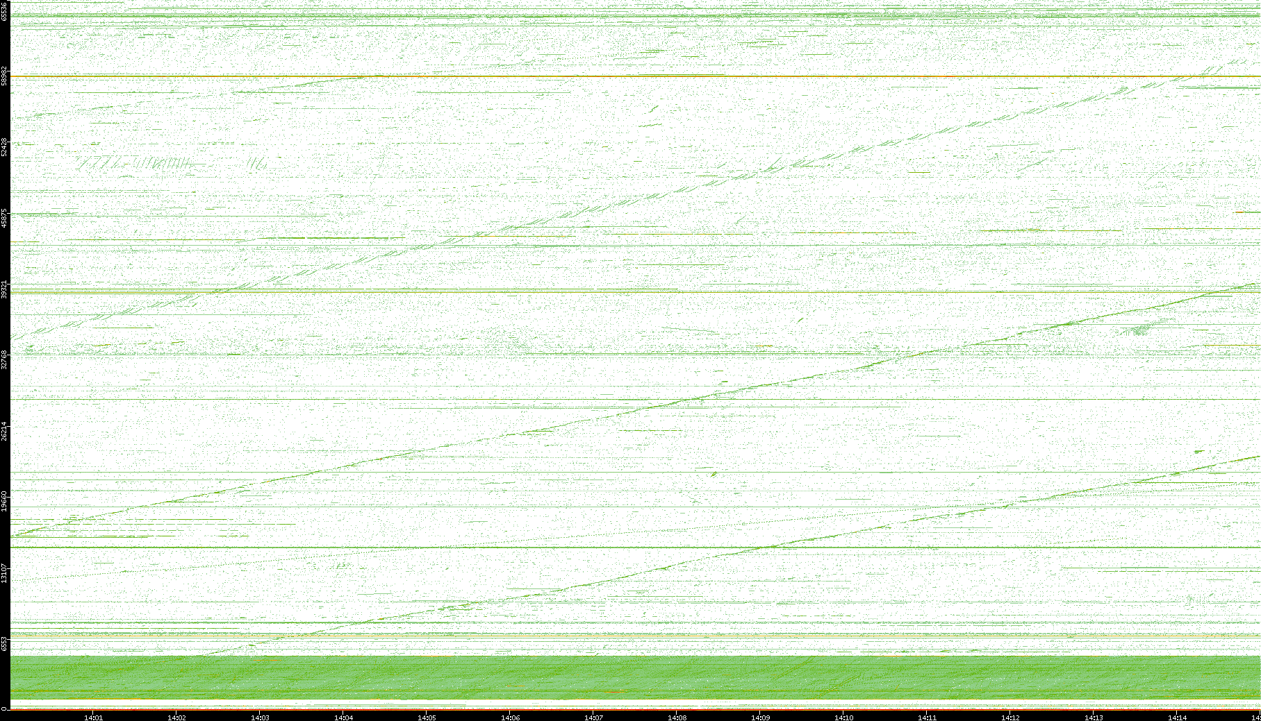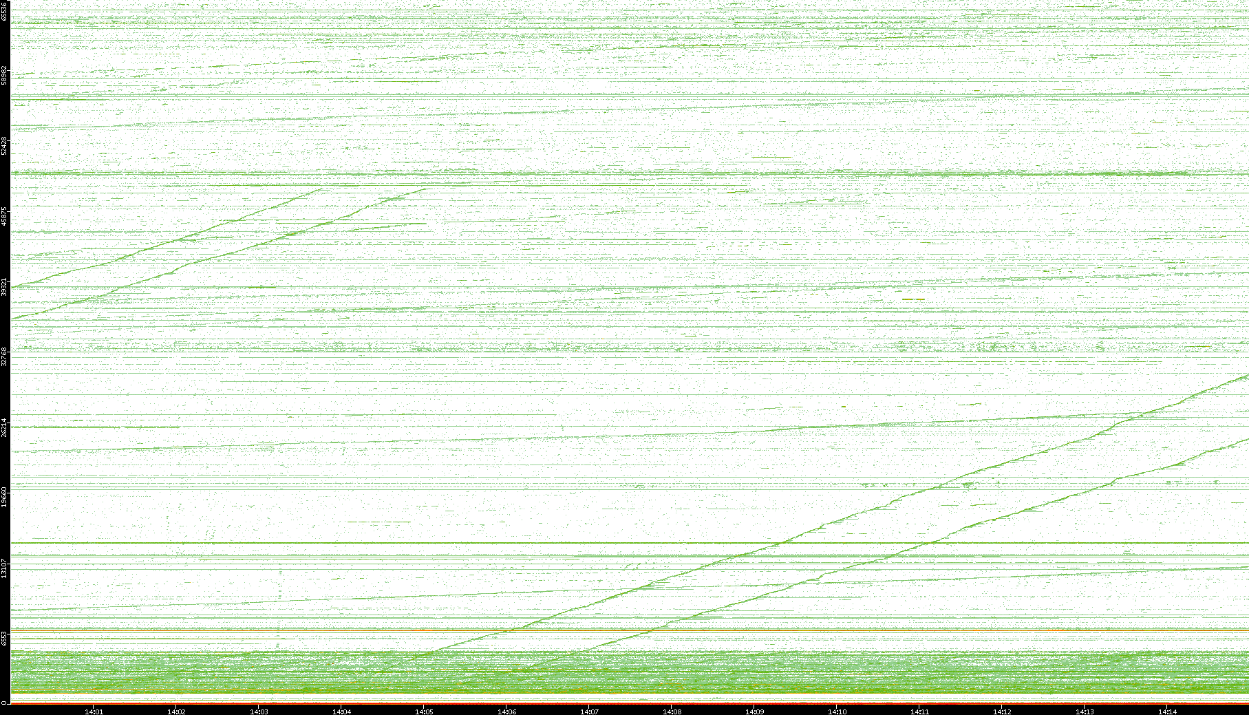 2004/02/14 Dest. IP vs. Time Dest. Port vs. Time Src. IP vs. Time Src. Port vs. Time Nb. of Packets vs. Time Throughput vs. Time Average Packet Size vs. Time Entropy of Port vs. Time