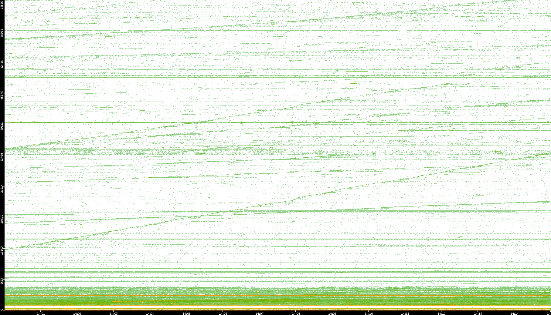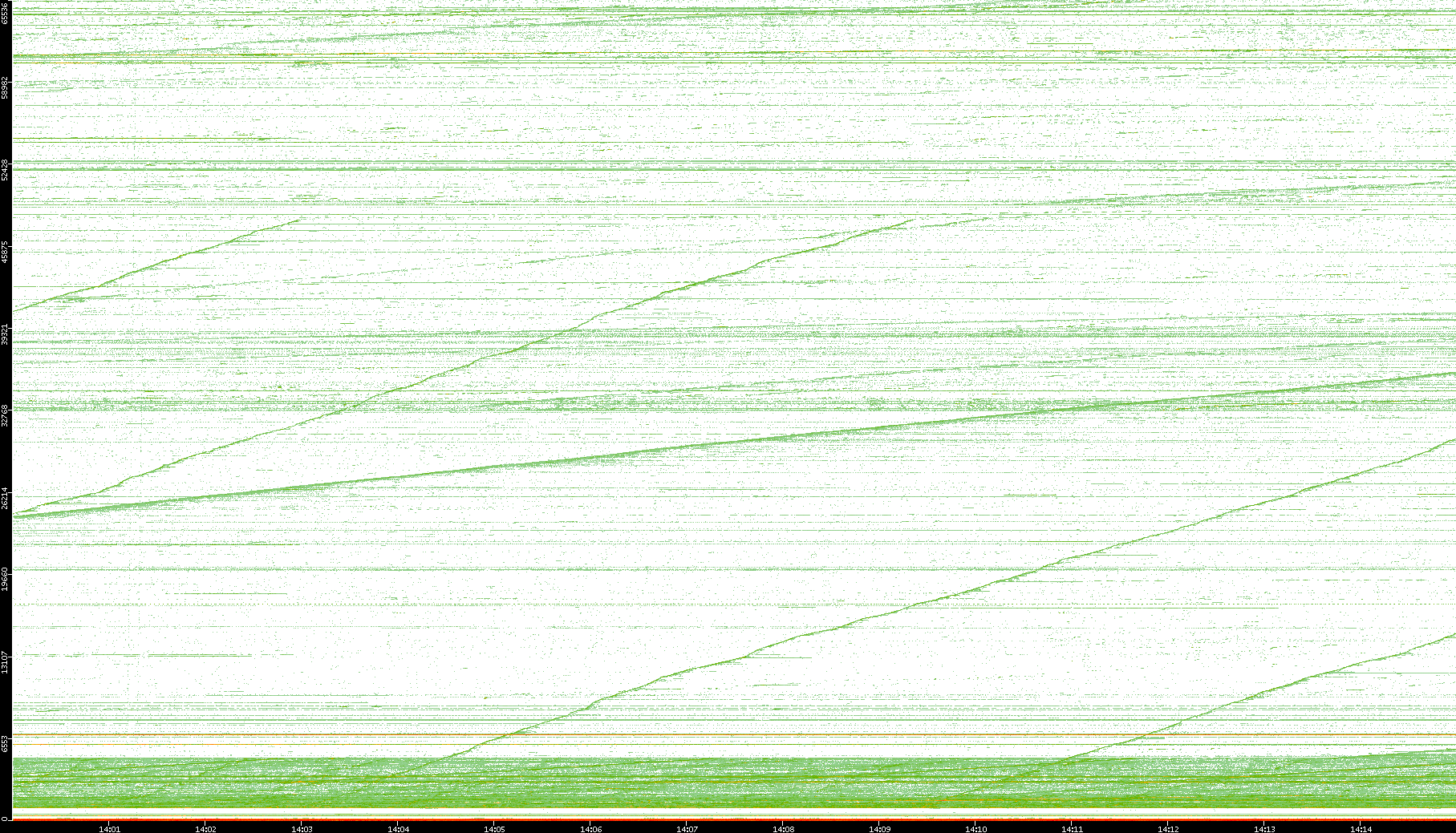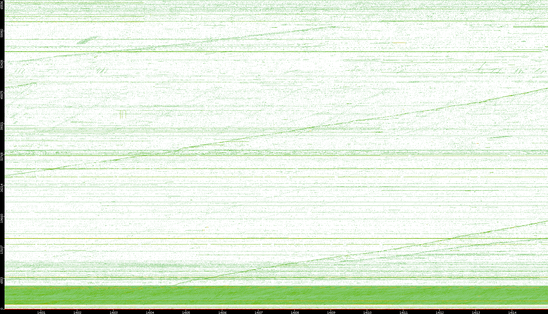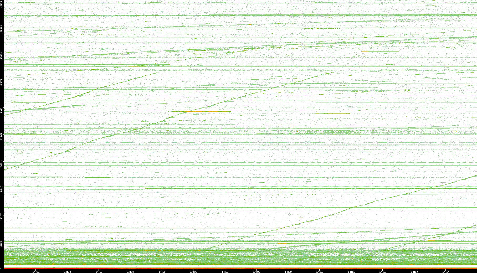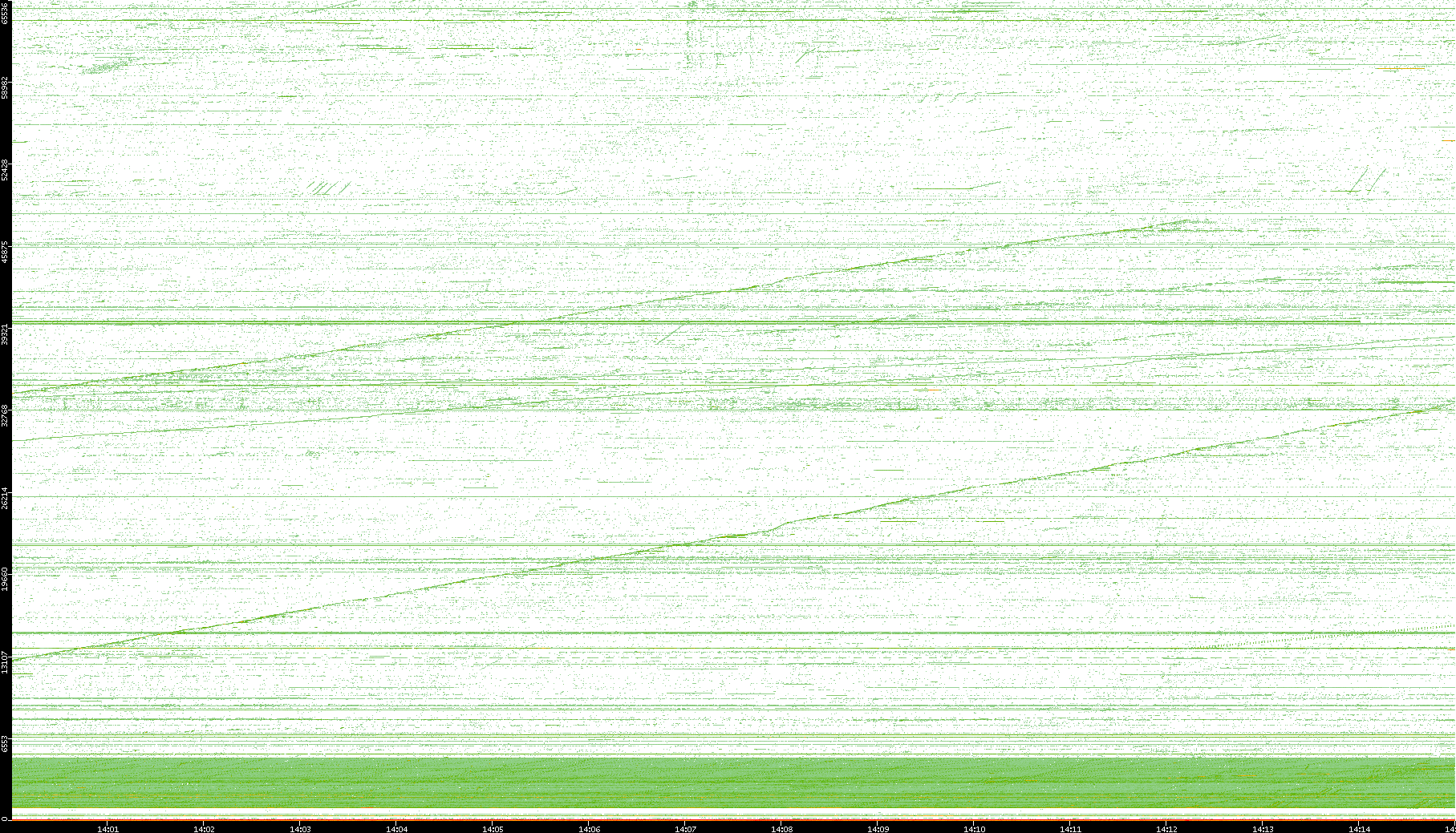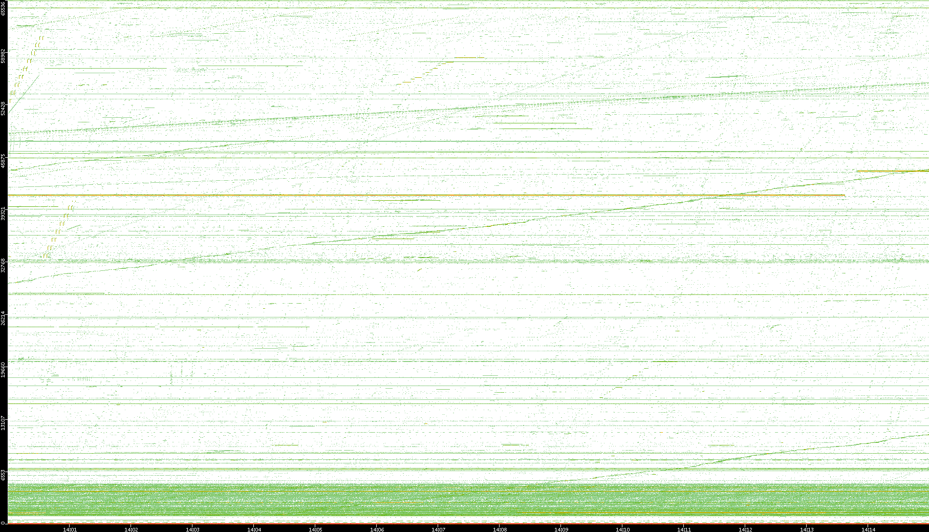 2004/02/14 Dest. IP vs. Time Dest. Port vs. Time Src. IP vs. Time Src. Port vs. Time Nb. of Packets vs. Time Throughput vs. Time Average Packet Size vs. Time Entropy of Port vs. Time