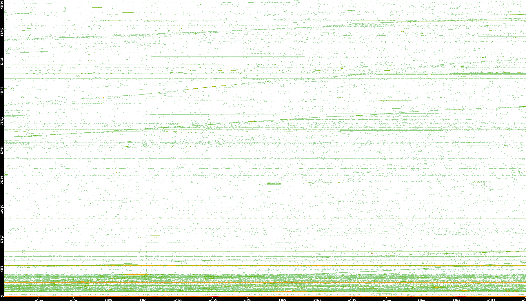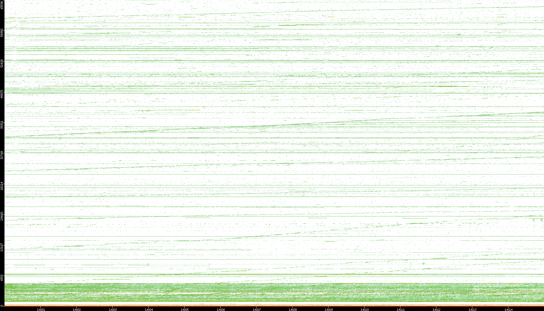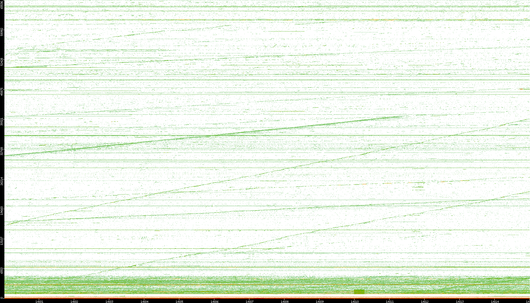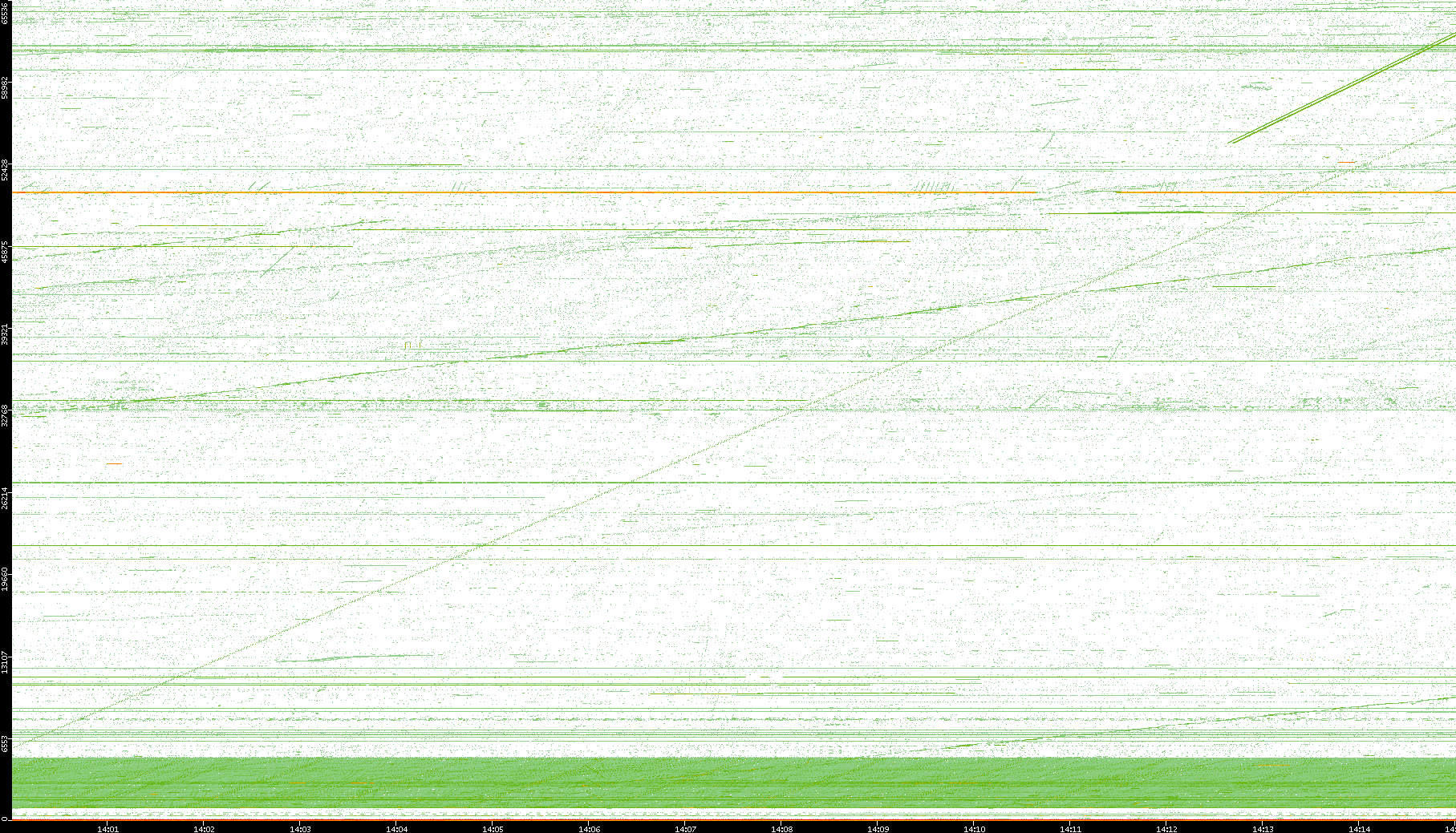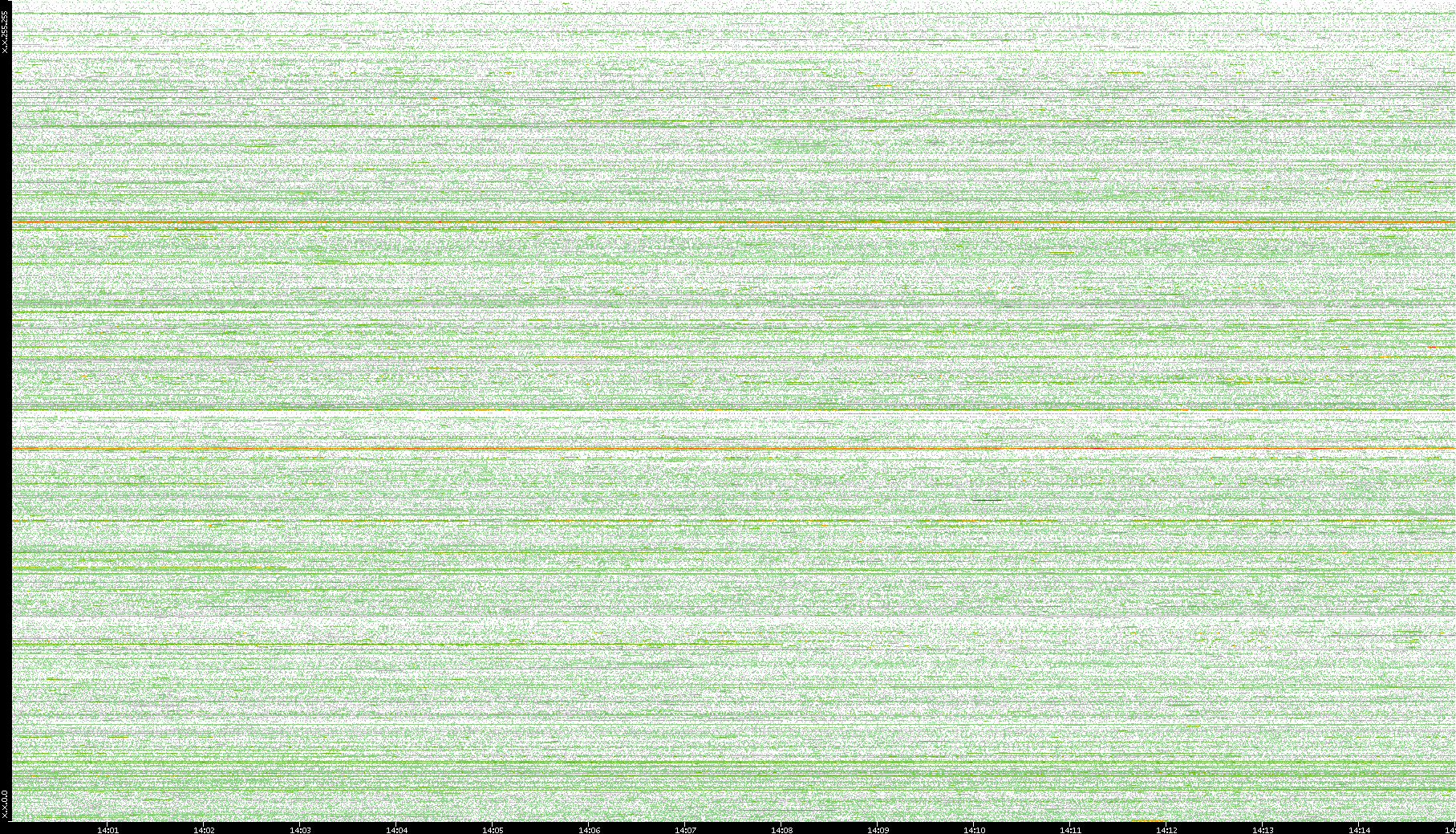 2004/02/14 Dest. IP vs. Time Dest. Port vs. Time Src. IP vs. Time Src. Port vs. Time Nb. of Packets vs. Time Throughput vs. Time Average Packet Size vs. Time Entropy of Port vs. Time
