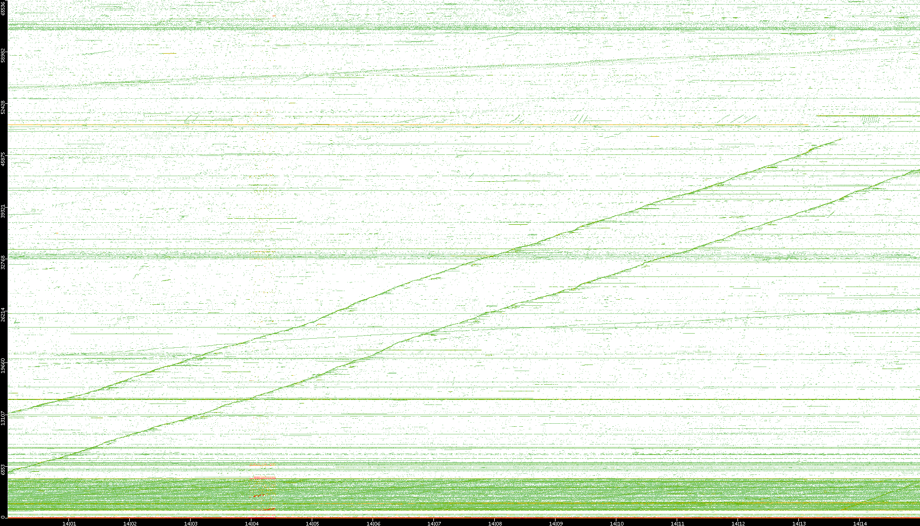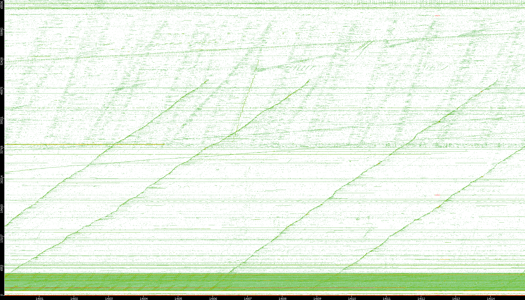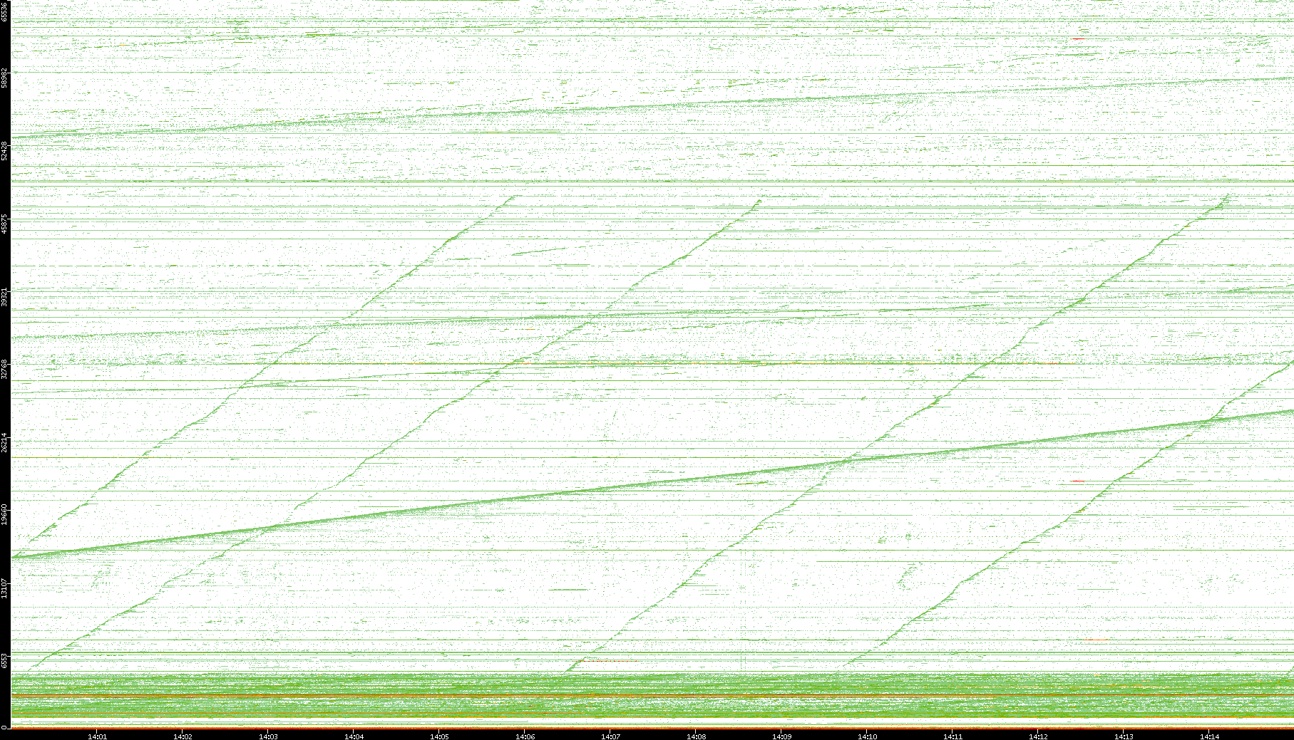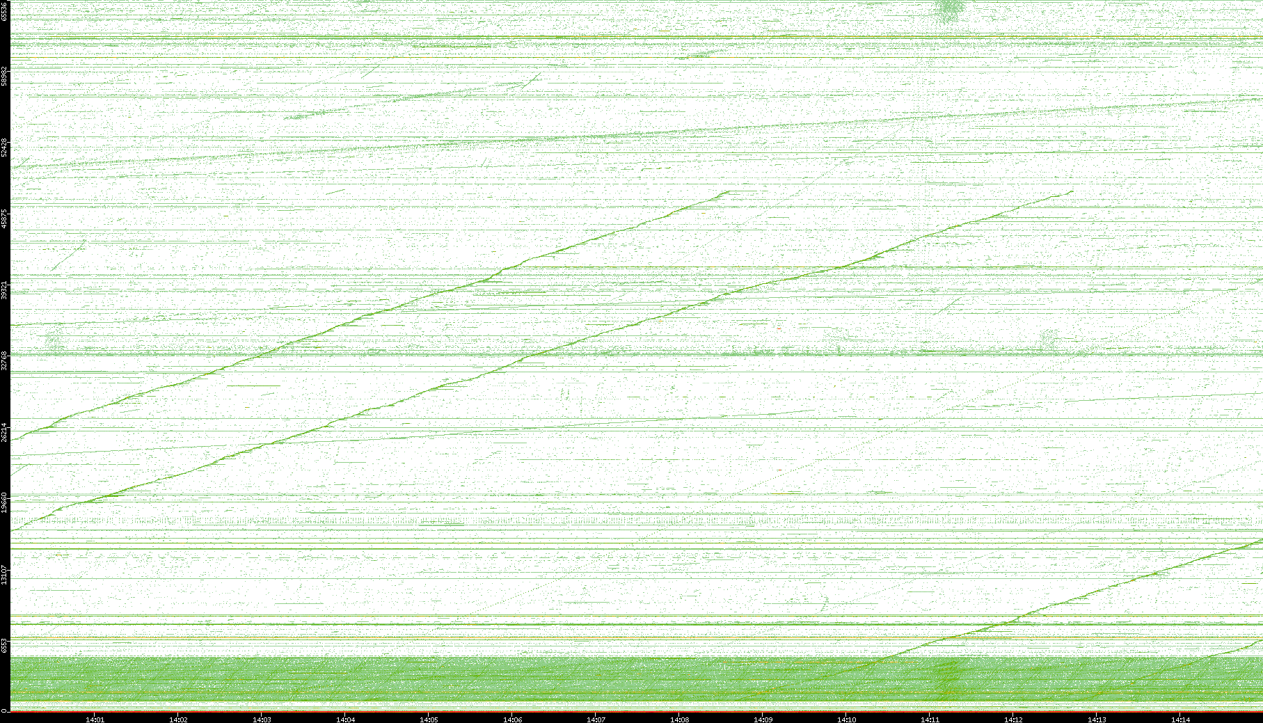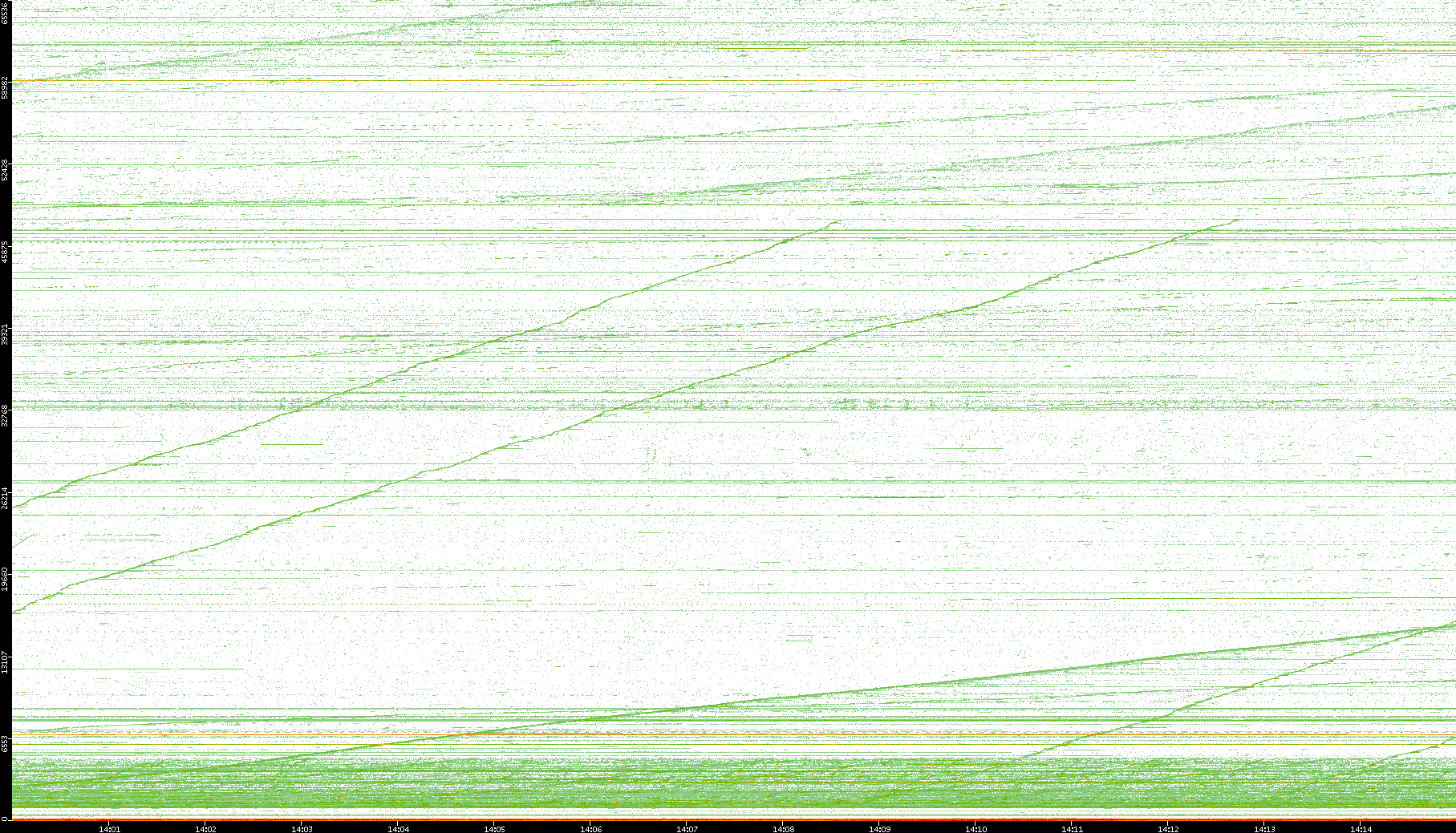 2004/02/14 Dest. IP vs. Time Dest. Port vs. Time Src. IP vs. Time Src. Port vs. Time Nb. of Packets vs. Time Throughput vs. Time Average Packet Size vs. Time Entropy of Port vs. Time