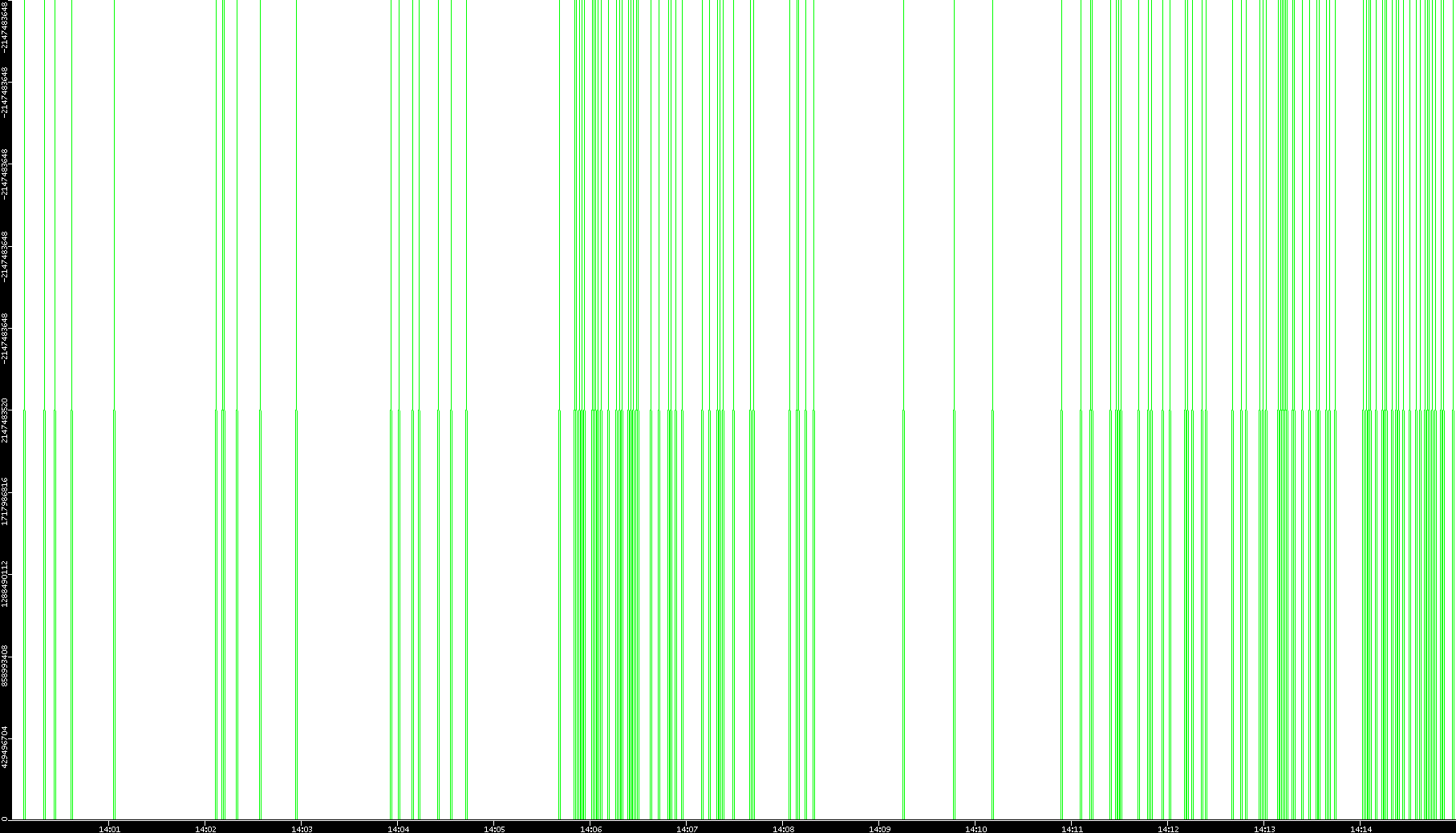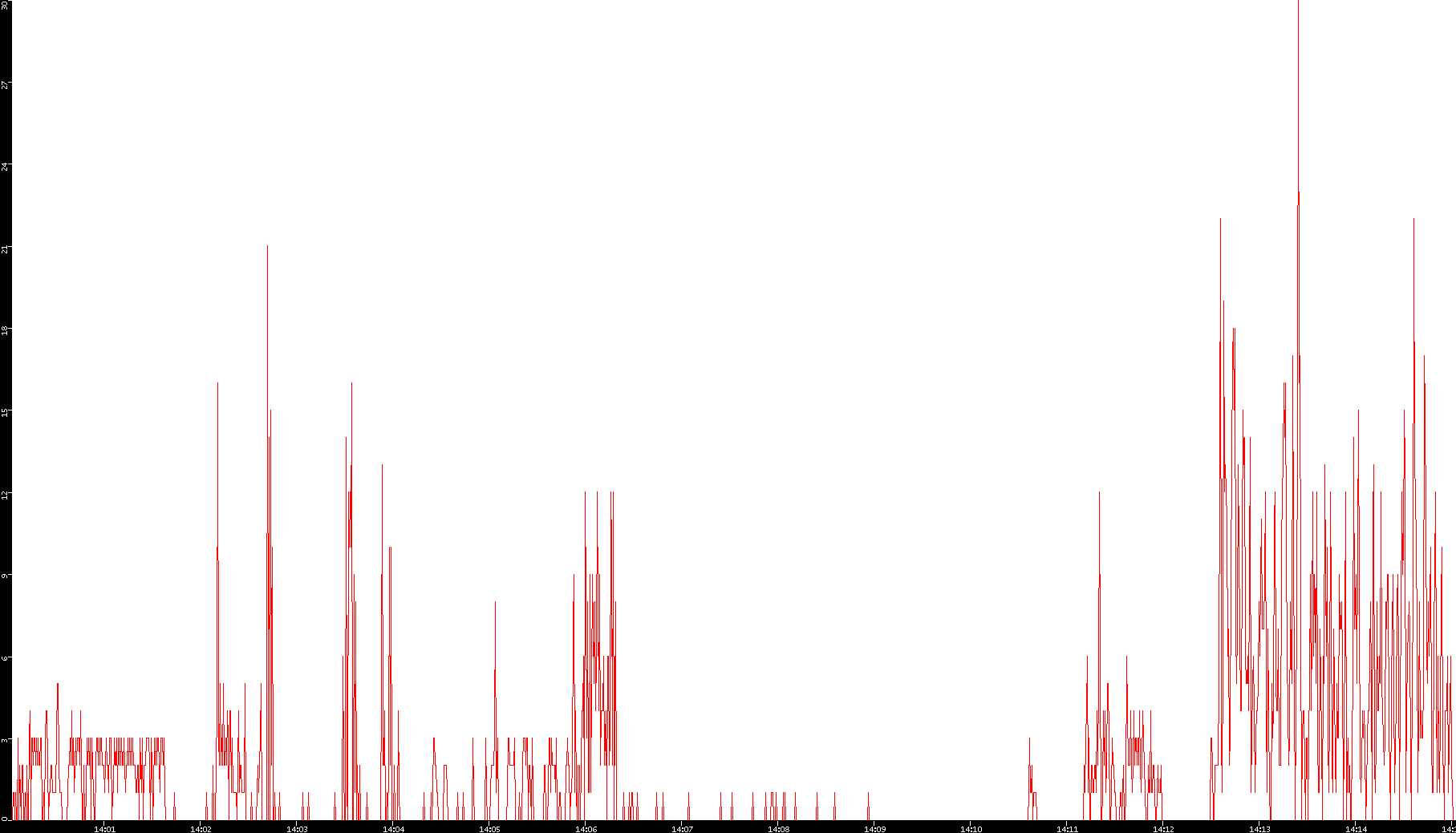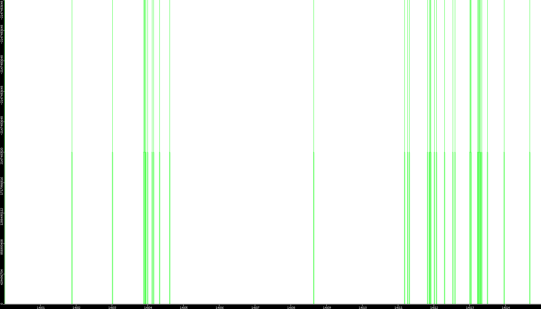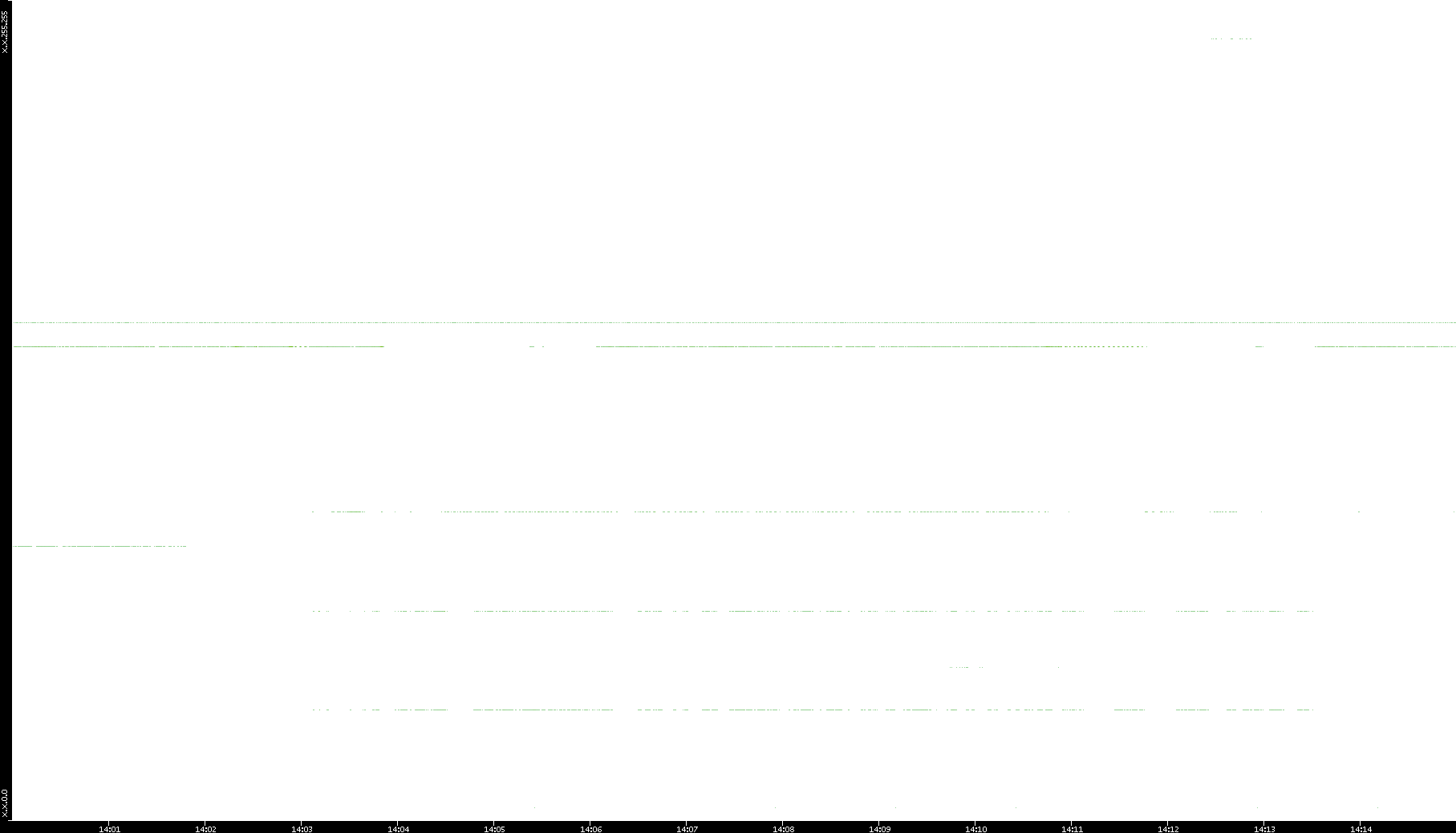 2004/04/14 Dest. IP vs. Time Dest. Port vs. Time Src. IP vs. Time Src. Port vs. Time Nb. of Packets vs. Time Throughput vs. Time Average Packet Size vs. Time Entropy of Port vs. Time