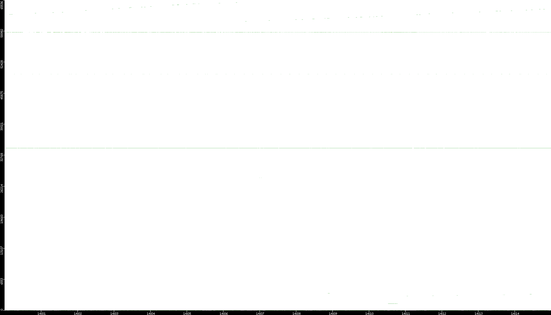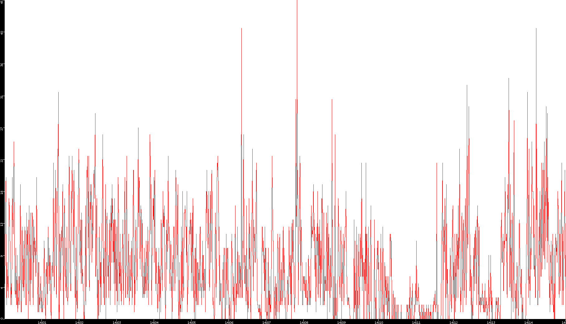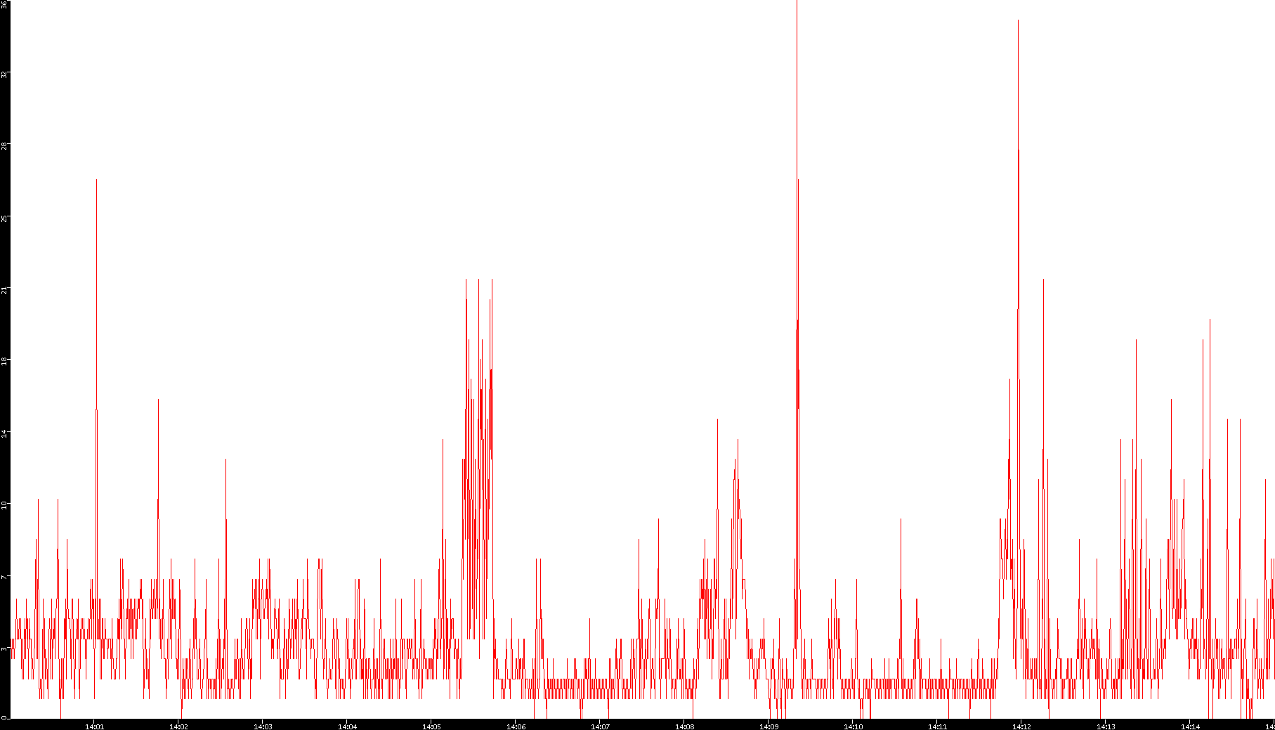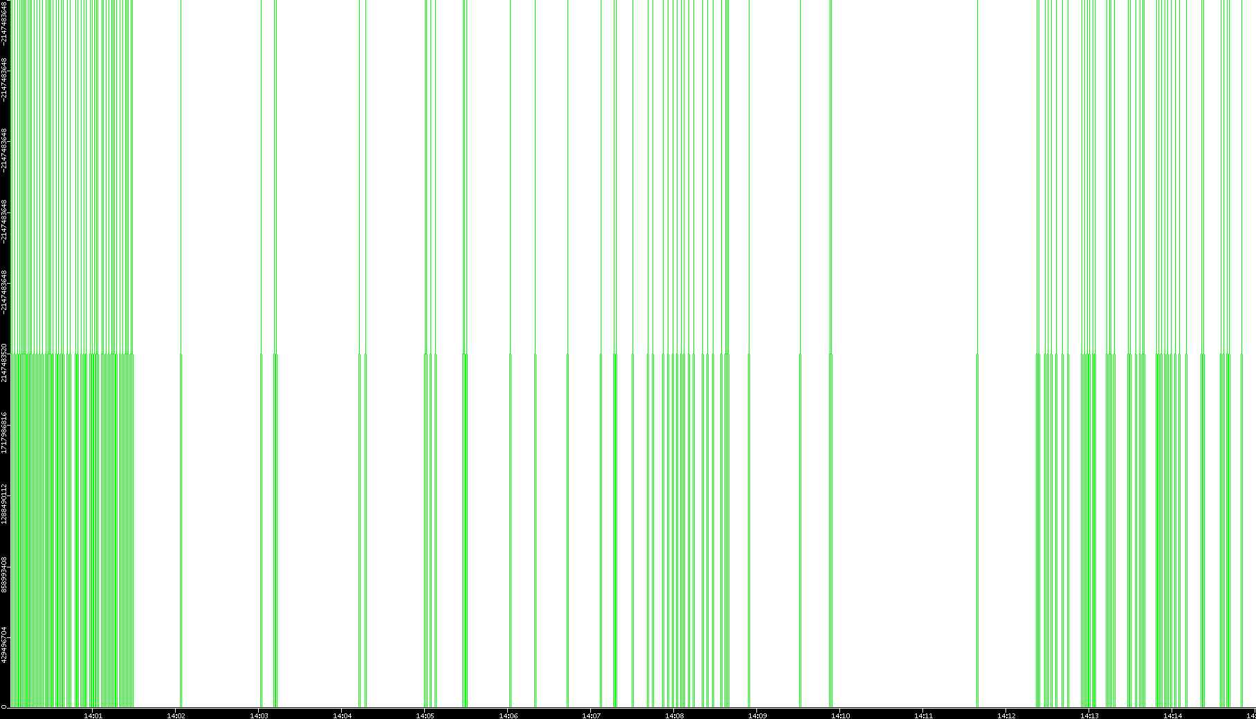 2004/04/14 Dest. IP vs. Time Dest. Port vs. Time Src. IP vs. Time Src. Port vs. Time Nb. of Packets vs. Time Throughput vs. Time Average Packet Size vs. Time Entropy of Port vs. Time