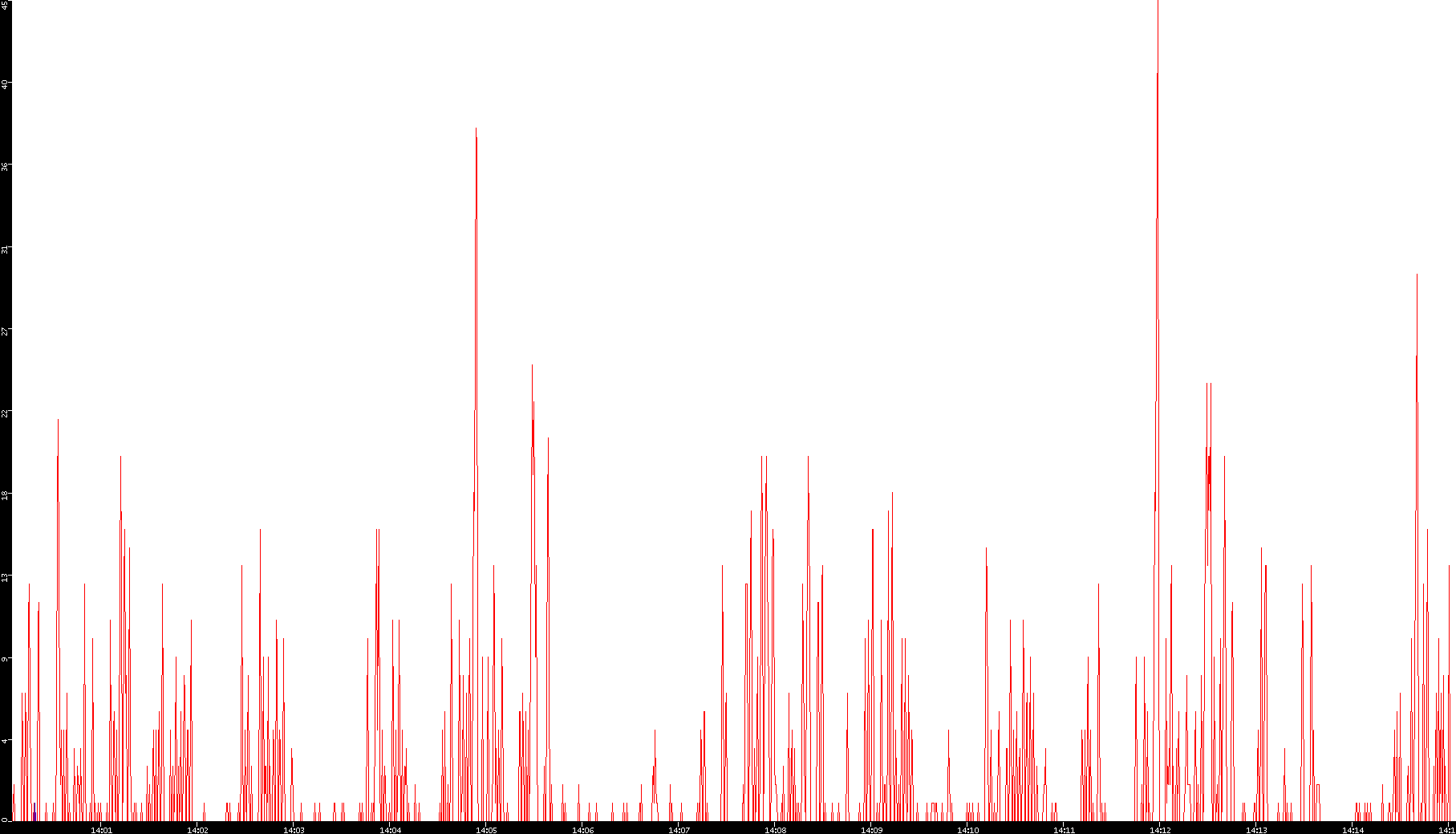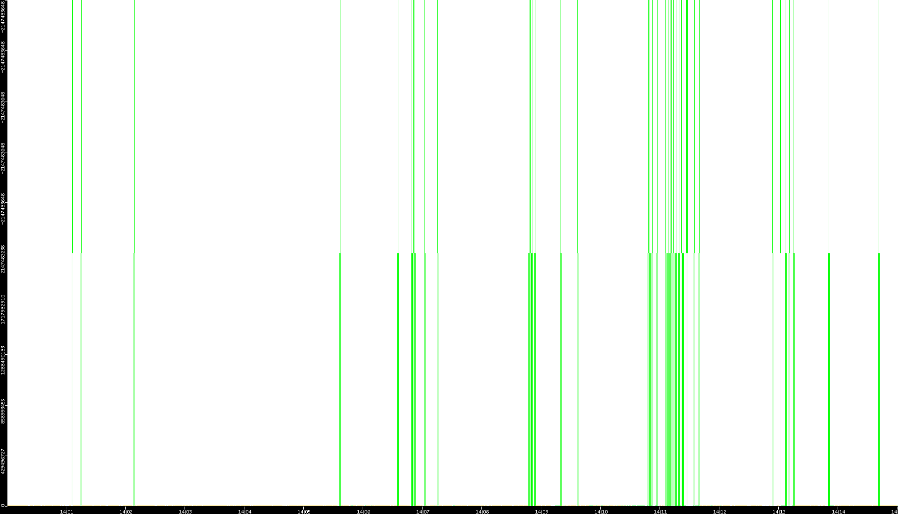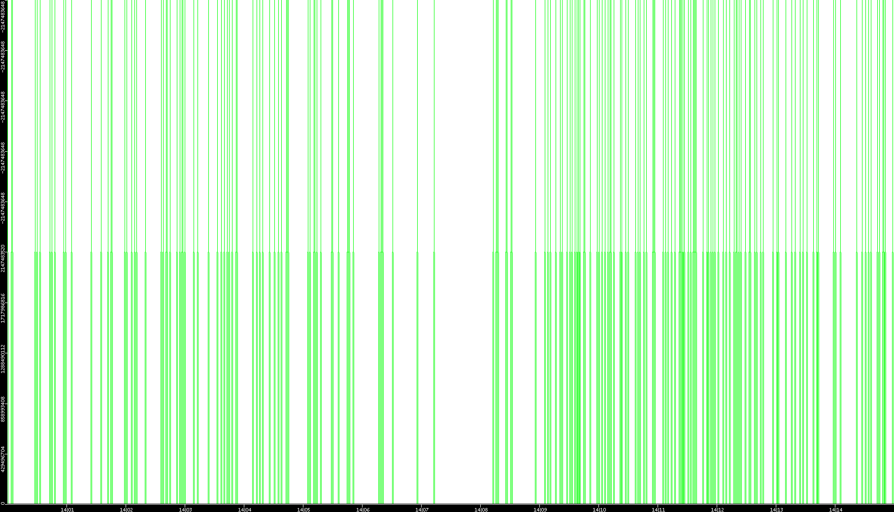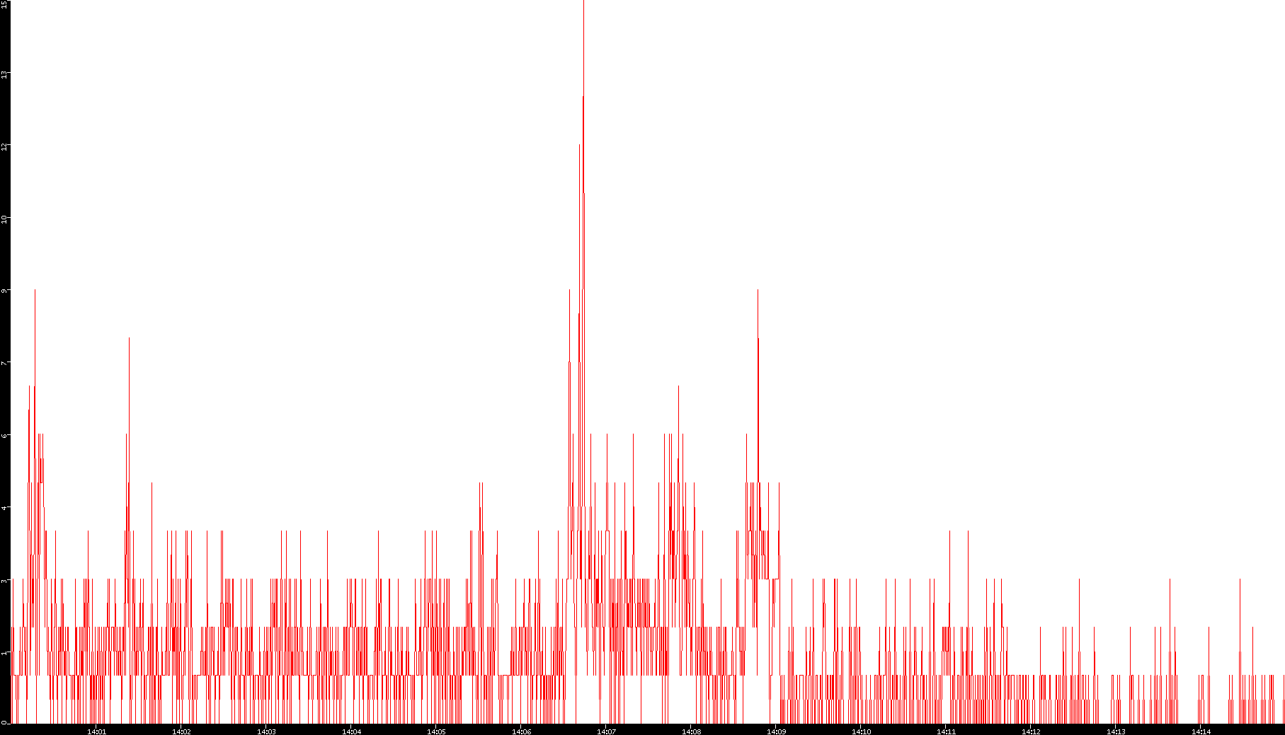 2004/04/14 Dest. IP vs. Time Dest. Port vs. Time Src. IP vs. Time Src. Port vs. Time Nb. of Packets vs. Time Throughput vs. Time Average Packet Size vs. Time Entropy of Port vs. Time