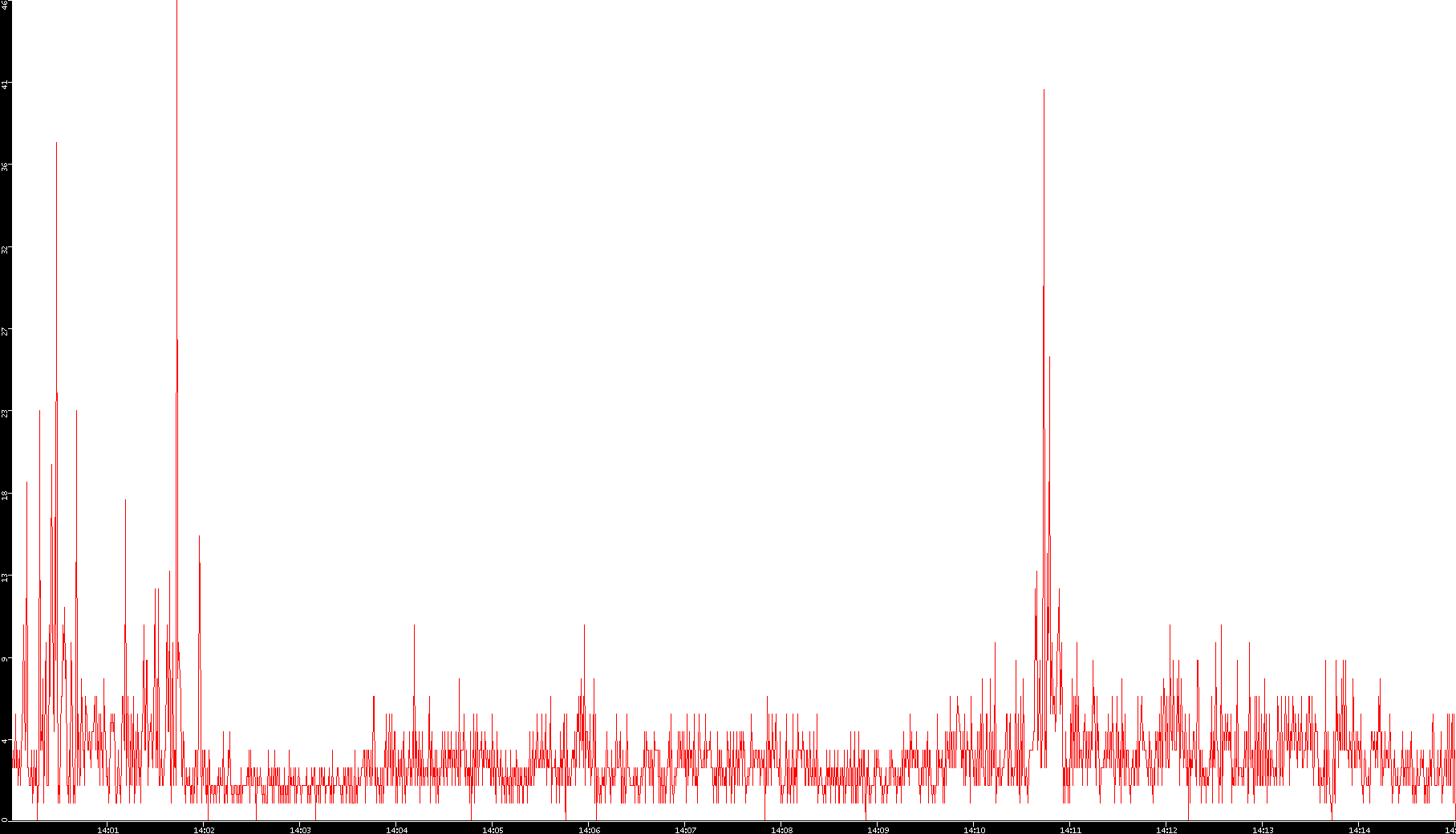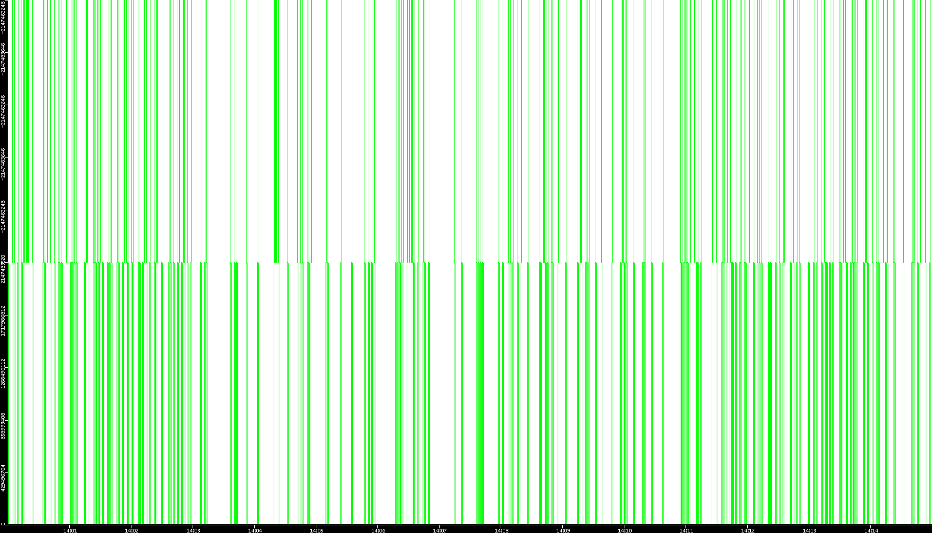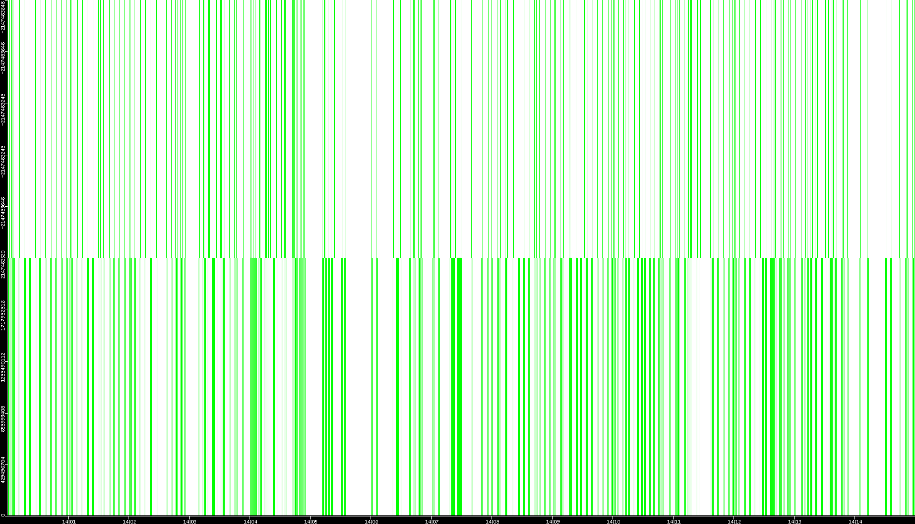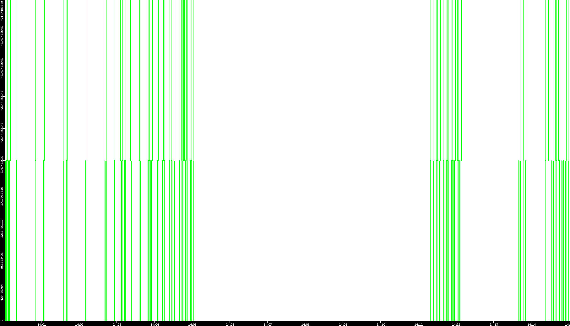 2004/04/14 Dest. IP vs. Time Dest. Port vs. Time Src. IP vs. Time Src. Port vs. Time Nb. of Packets vs. Time Throughput vs. Time Average Packet Size vs. Time Entropy of Port vs. Time