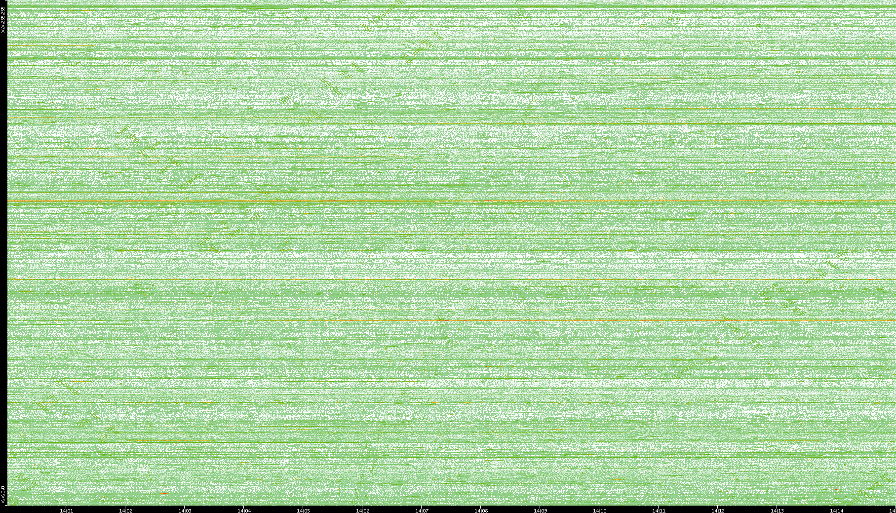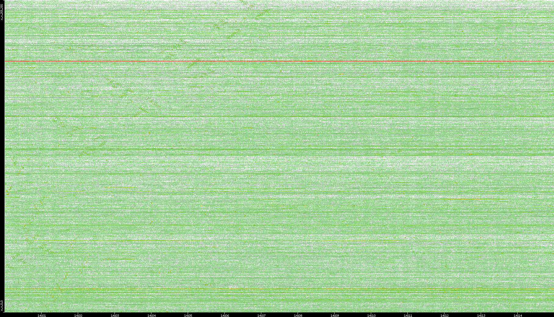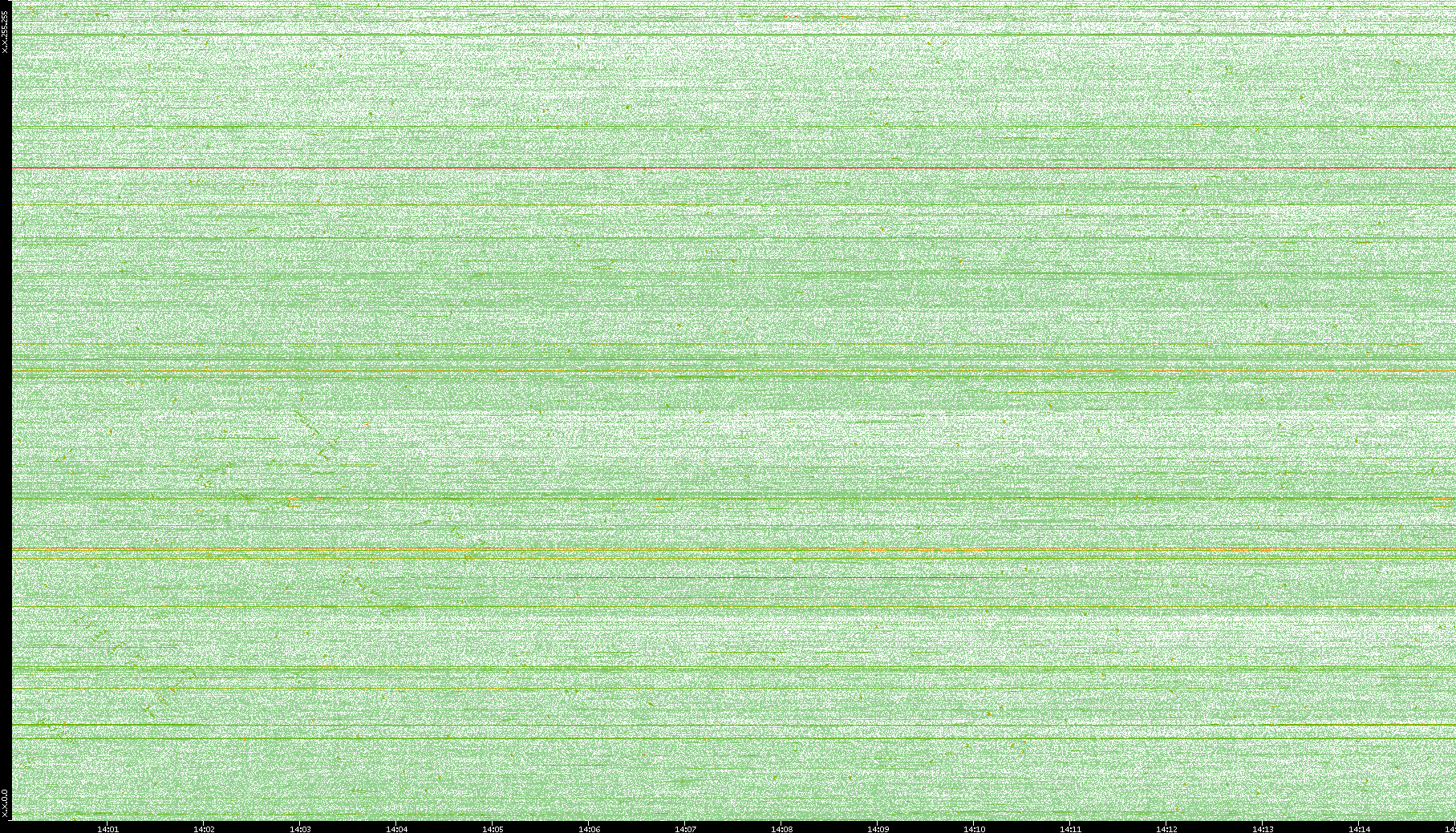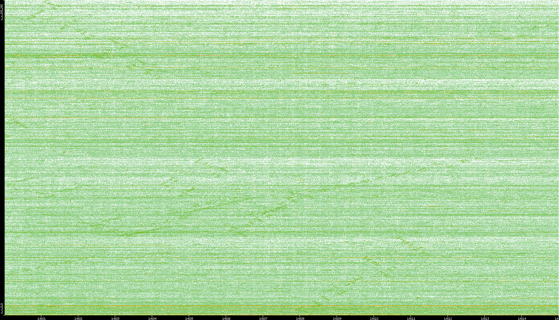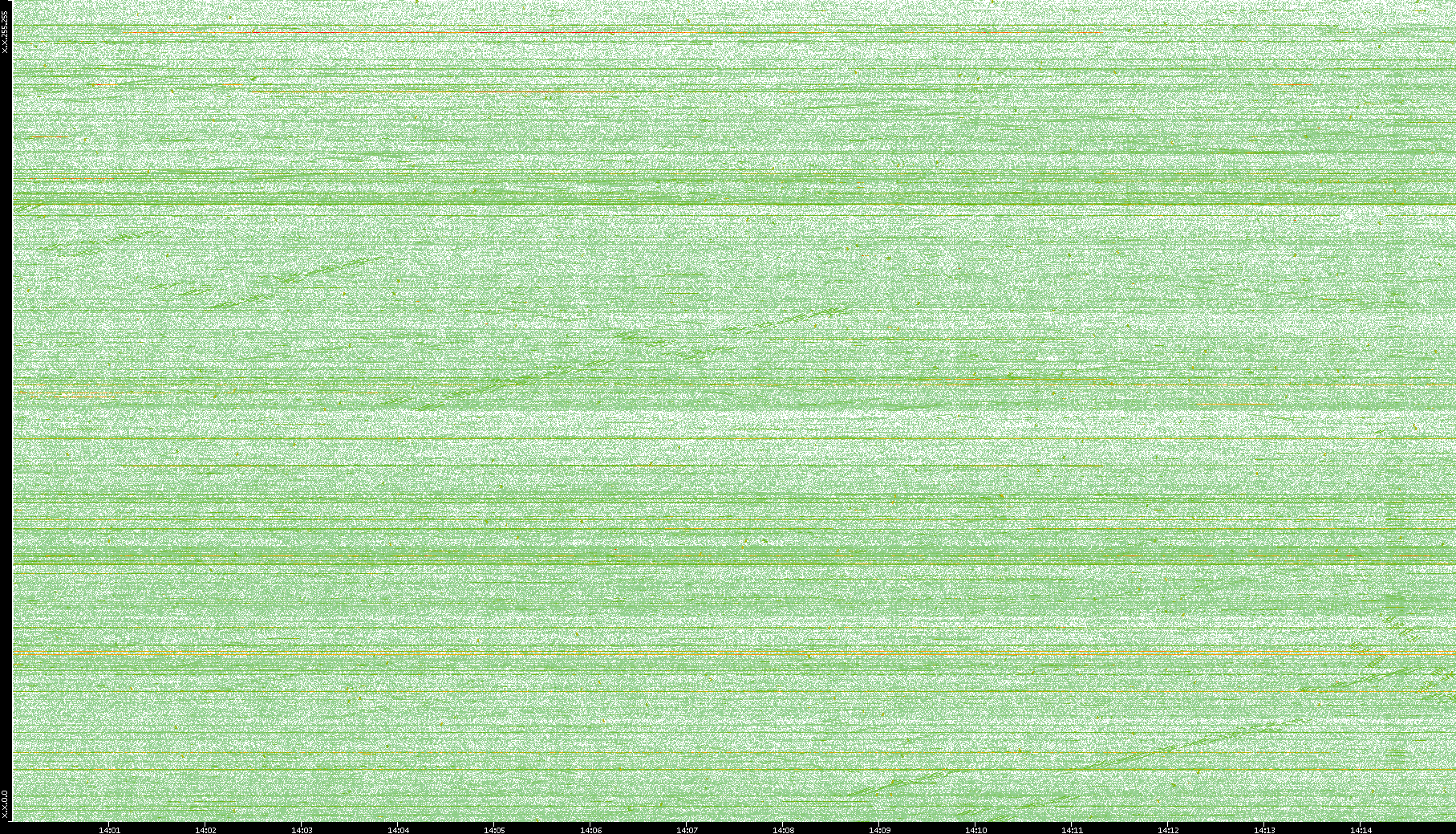 2004/05/14 Dest. IP vs. Time Dest. Port vs. Time Src. IP vs. Time Src. Port vs. Time Nb. of Packets vs. Time Throughput vs. Time Average Packet Size vs. Time Entropy of Port vs. Time
