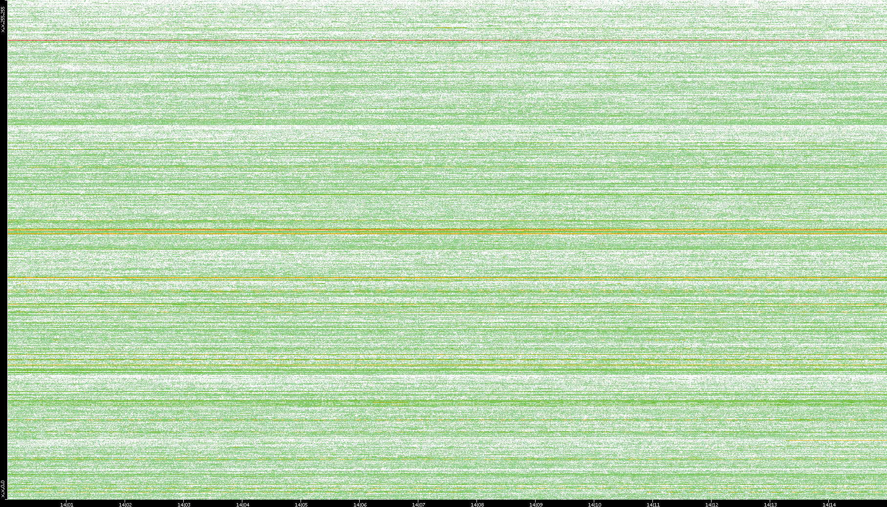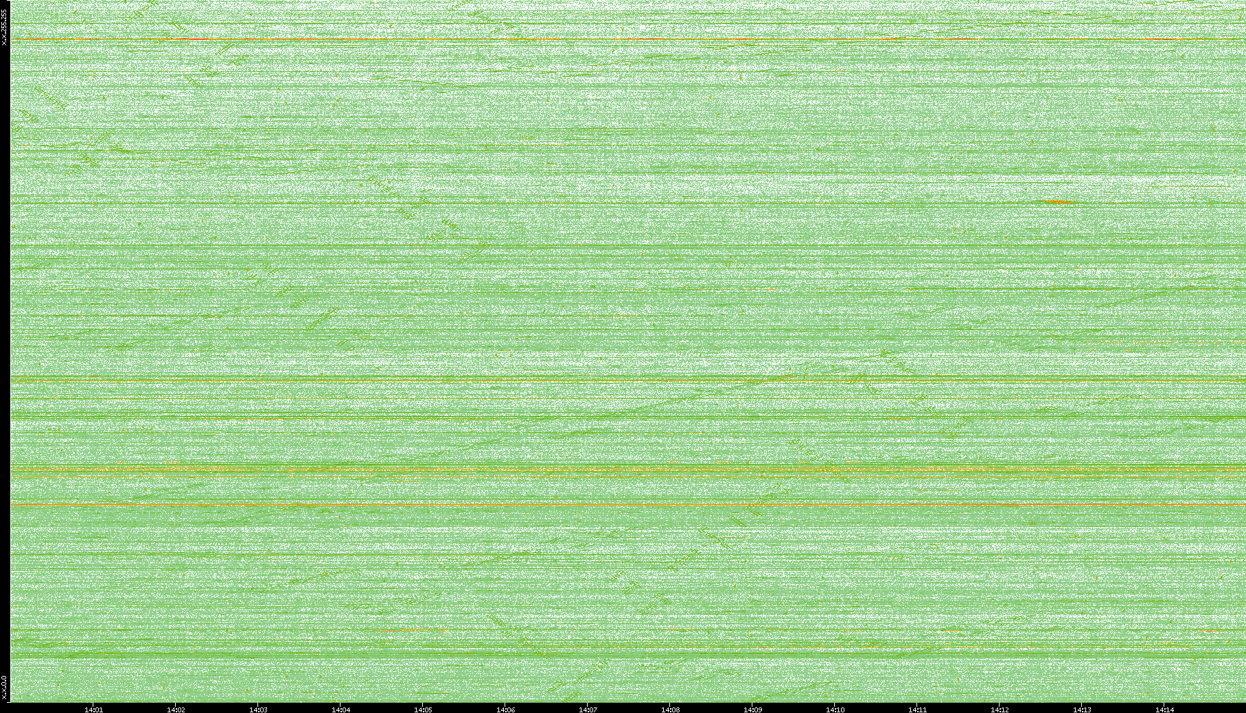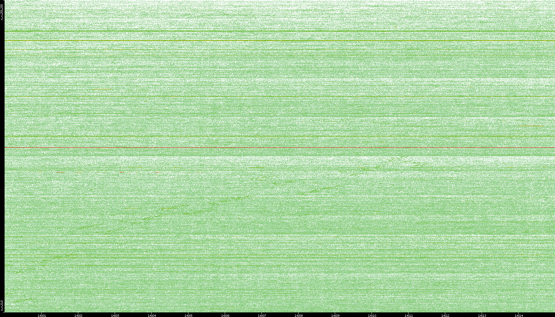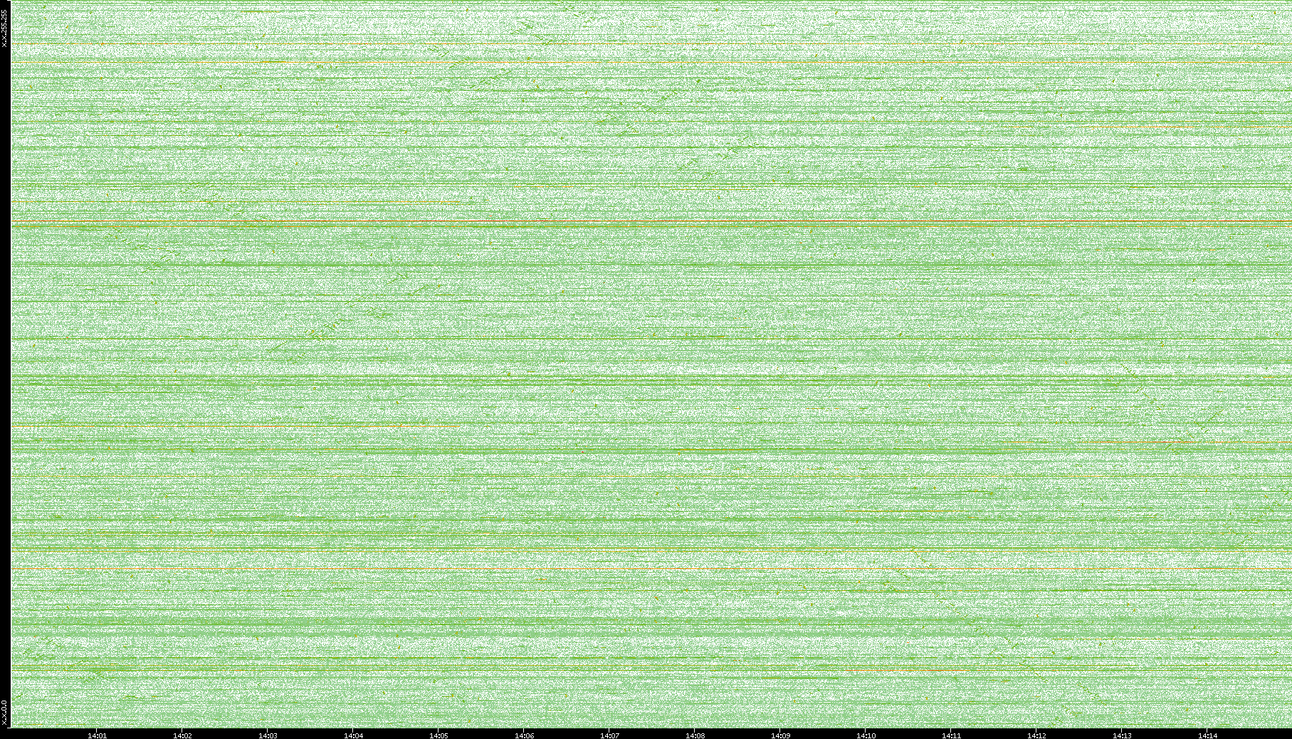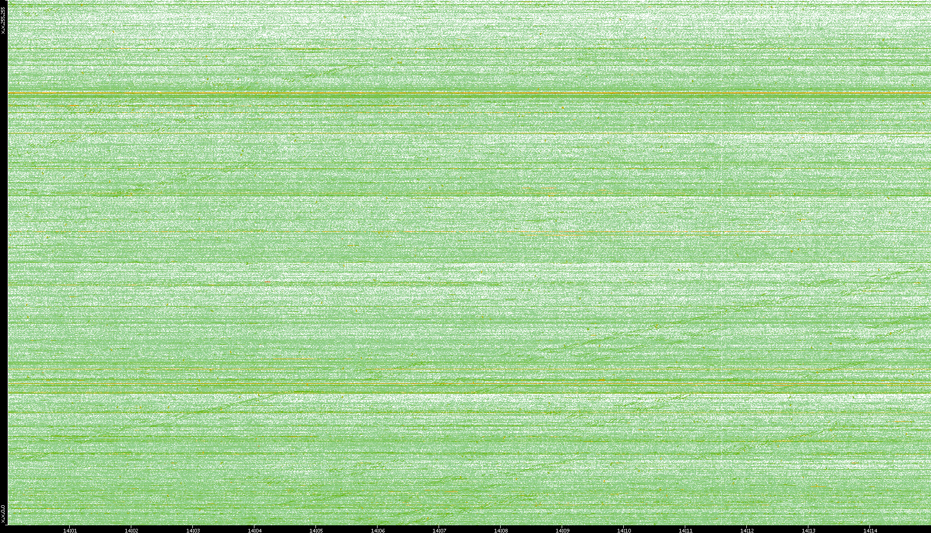 2004/05/14 Dest. IP vs. Time Dest. Port vs. Time Src. IP vs. Time Src. Port vs. Time Nb. of Packets vs. Time Throughput vs. Time Average Packet Size vs. Time Entropy of Port vs. Time