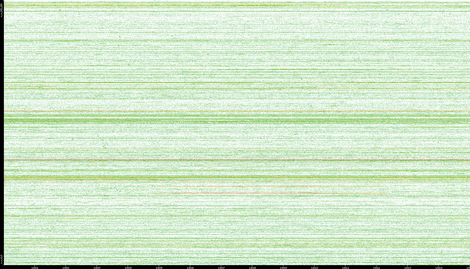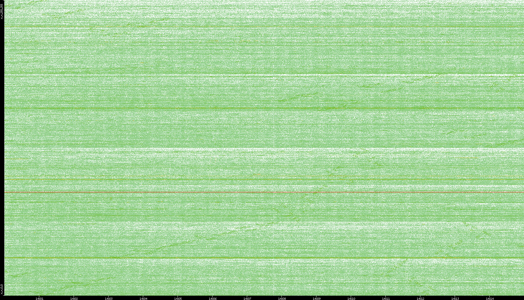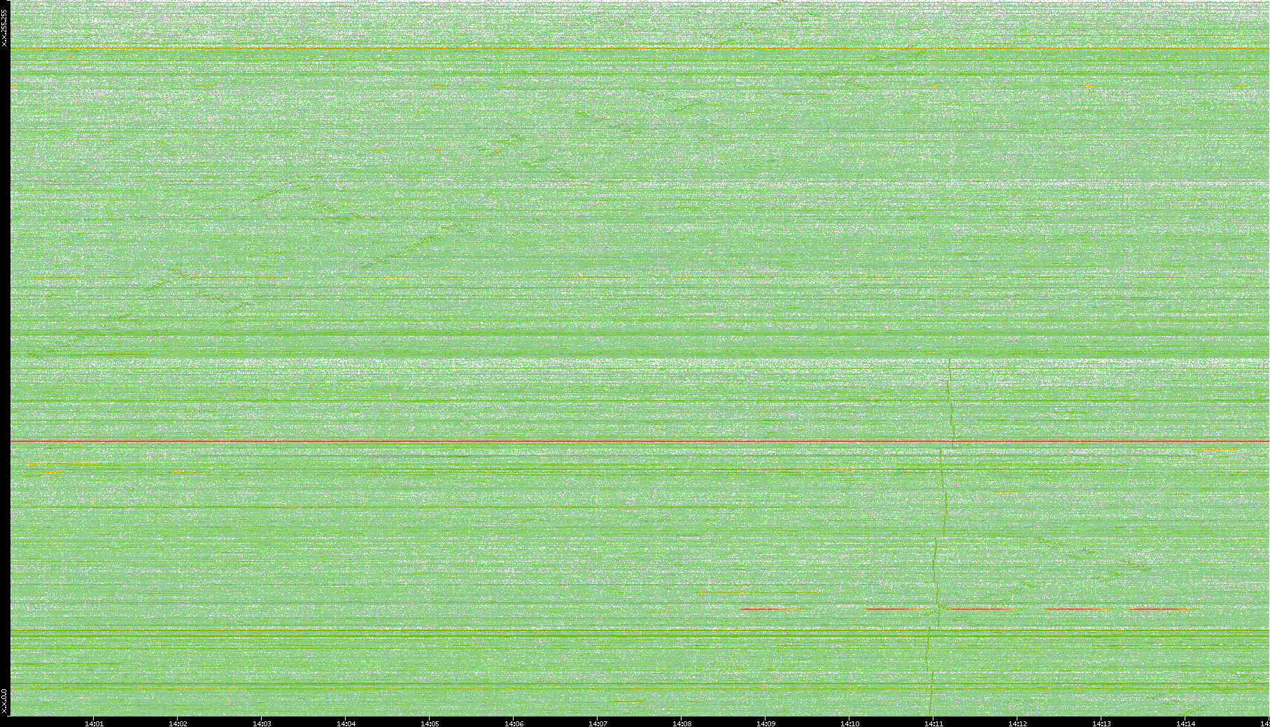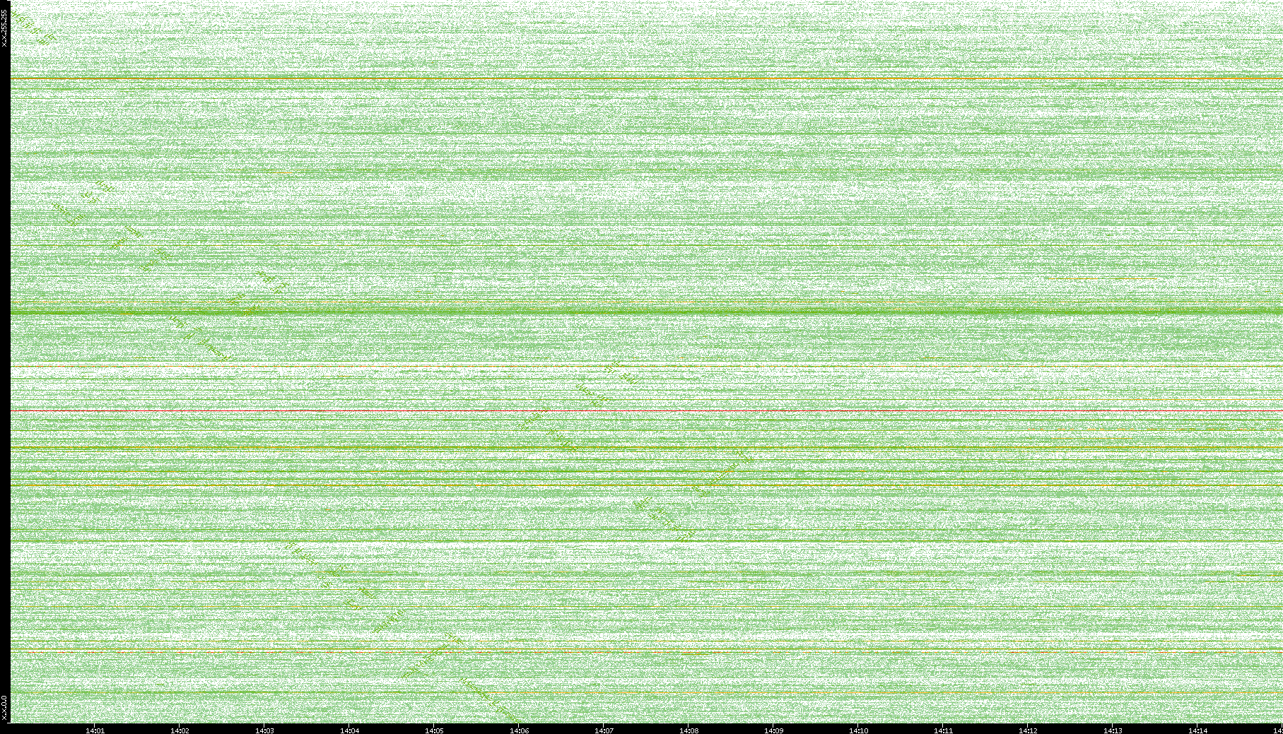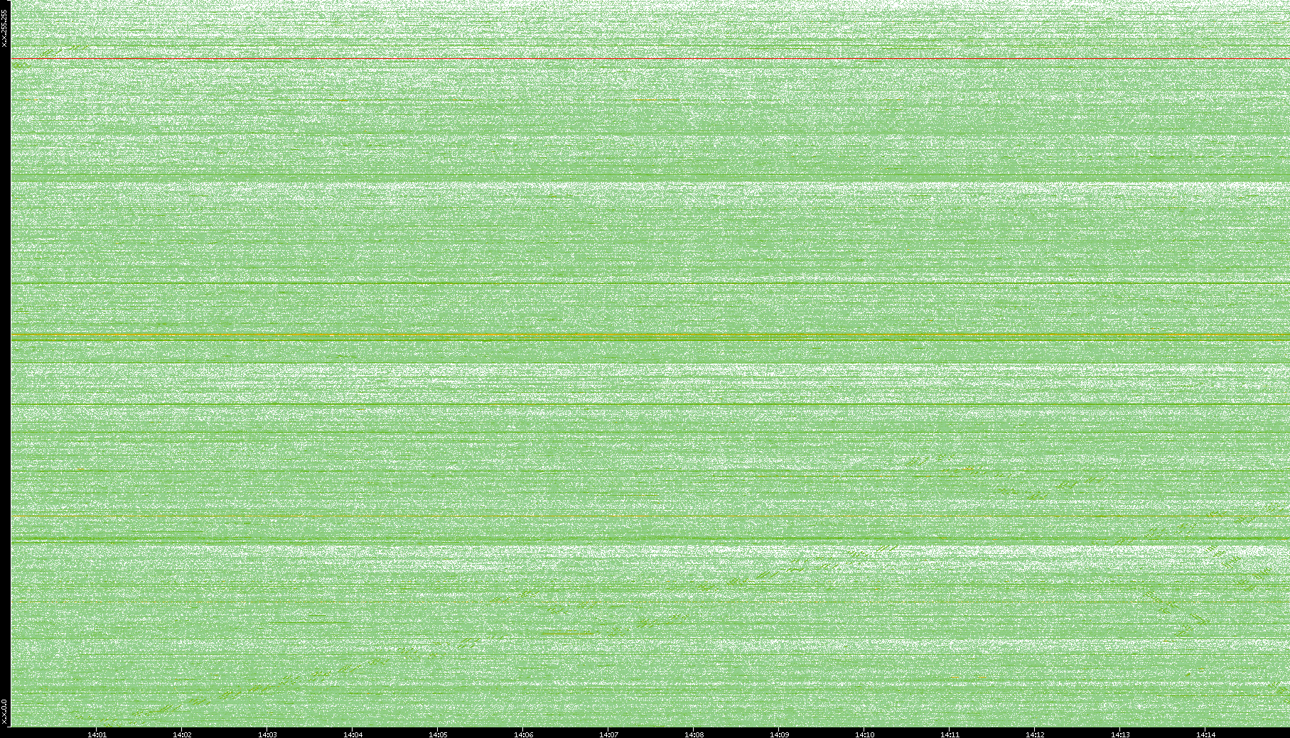 2004/05/14 Dest. IP vs. Time Dest. Port vs. Time Src. IP vs. Time Src. Port vs. Time Nb. of Packets vs. Time Throughput vs. Time Average Packet Size vs. Time Entropy of Port vs. Time