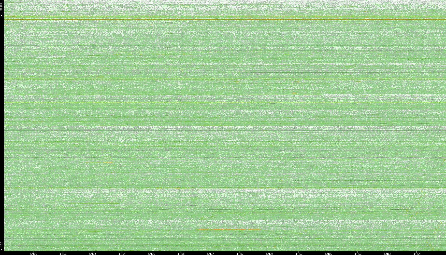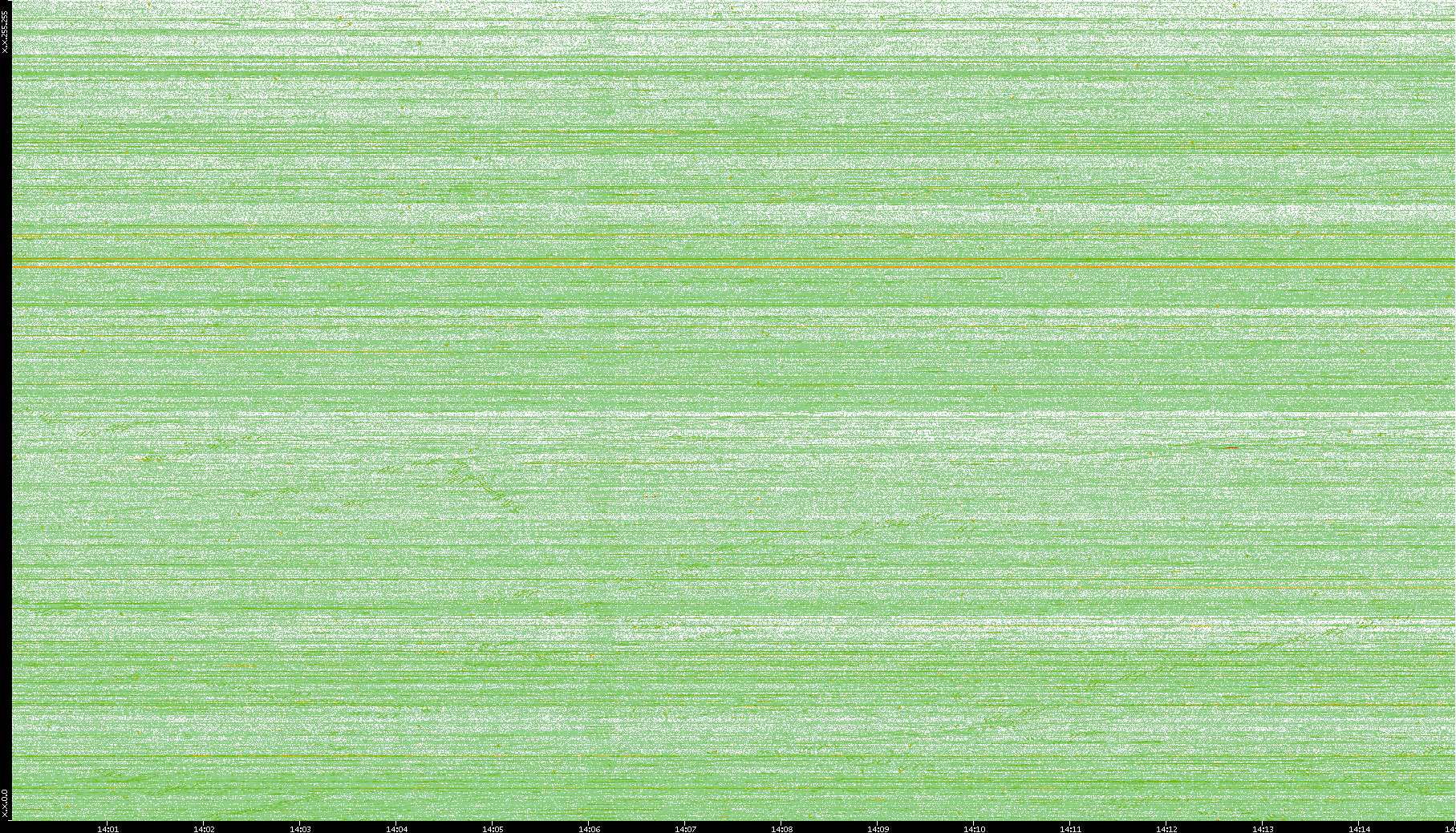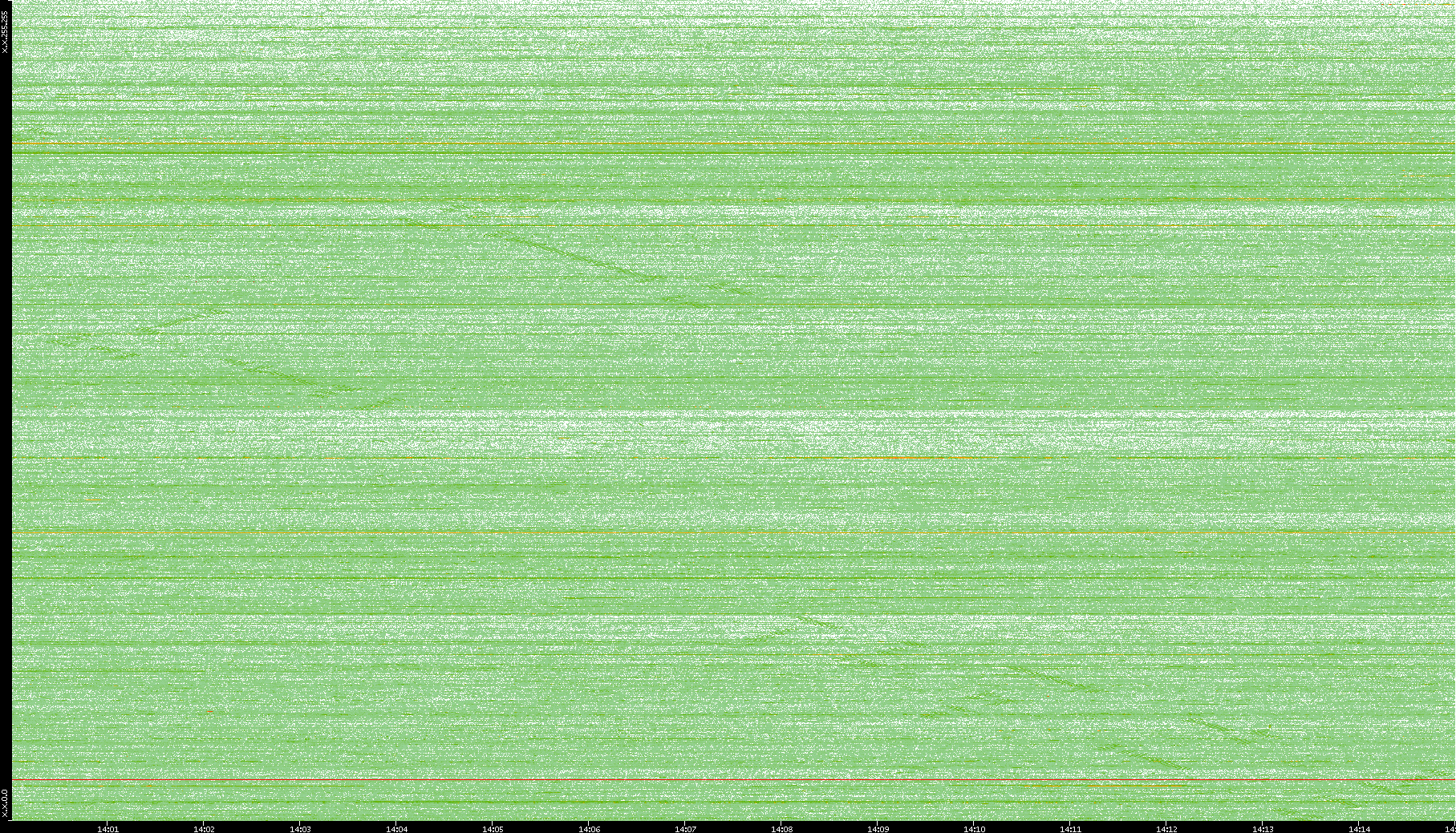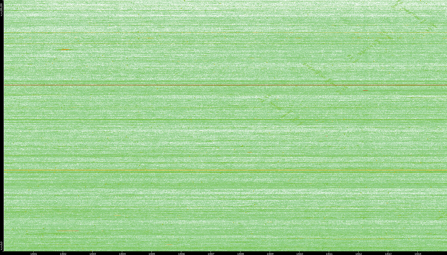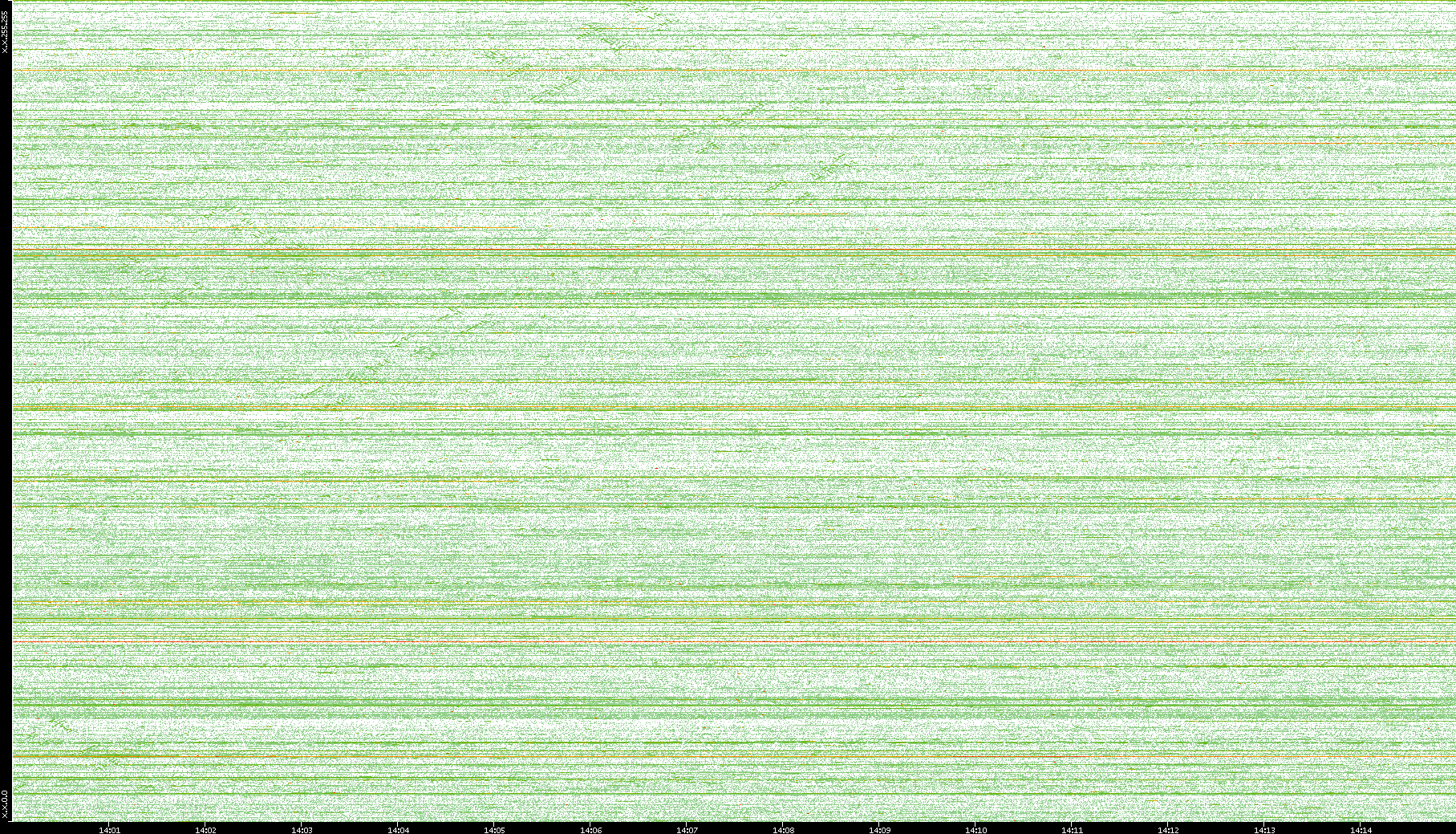 2004/05/14 Dest. IP vs. Time Dest. Port vs. Time Src. IP vs. Time Src. Port vs. Time Nb. of Packets vs. Time Throughput vs. Time Average Packet Size vs. Time Entropy of Port vs. Time