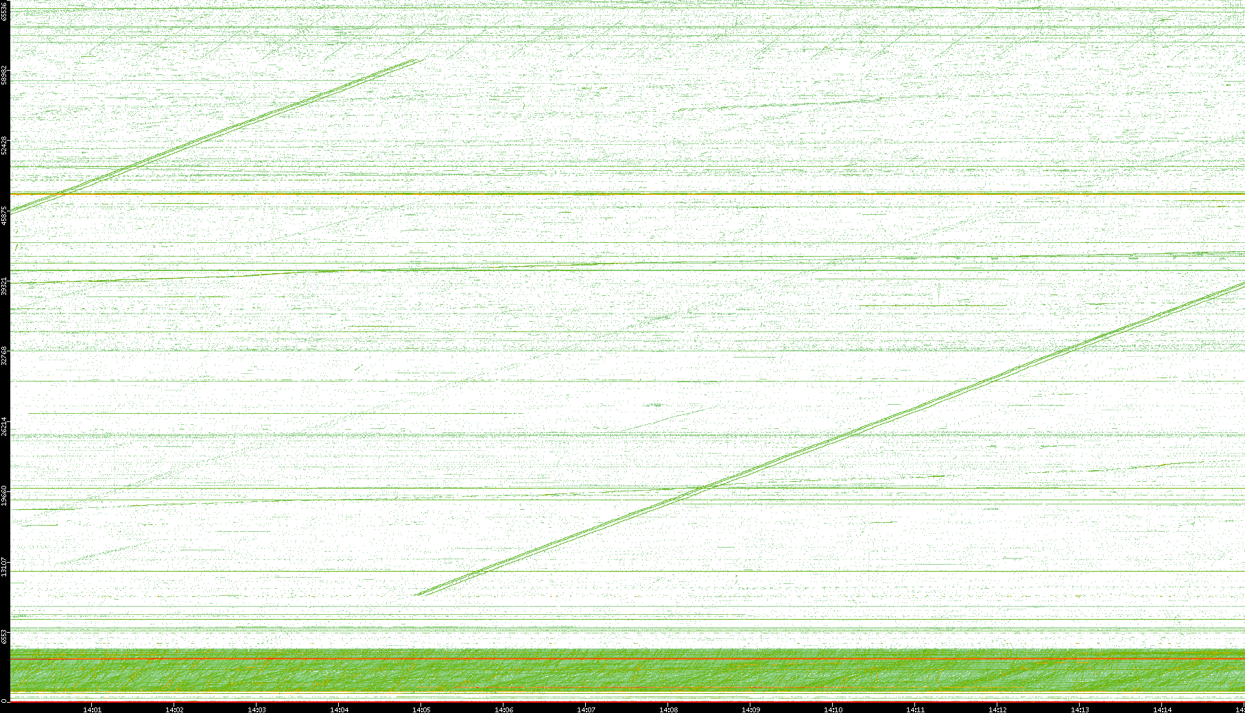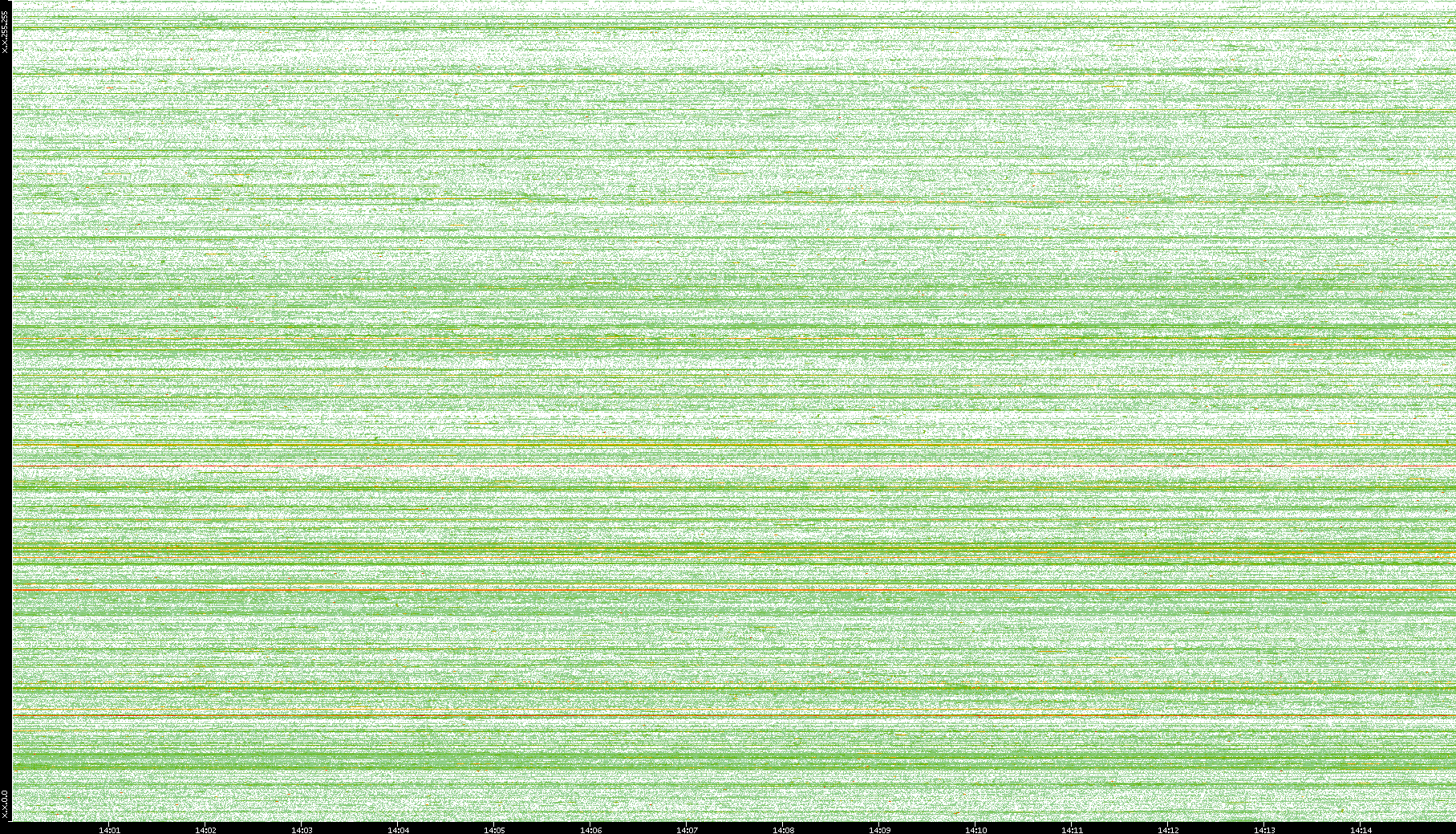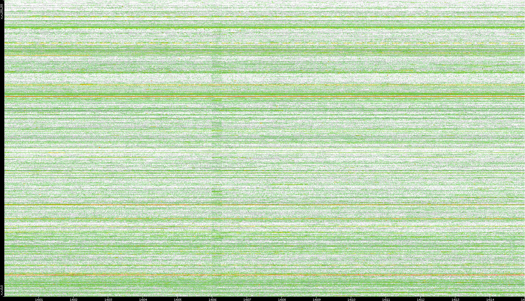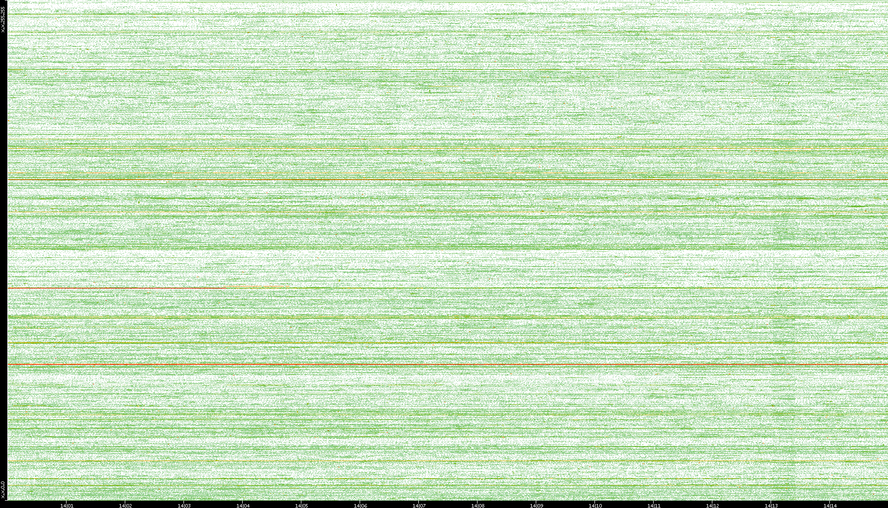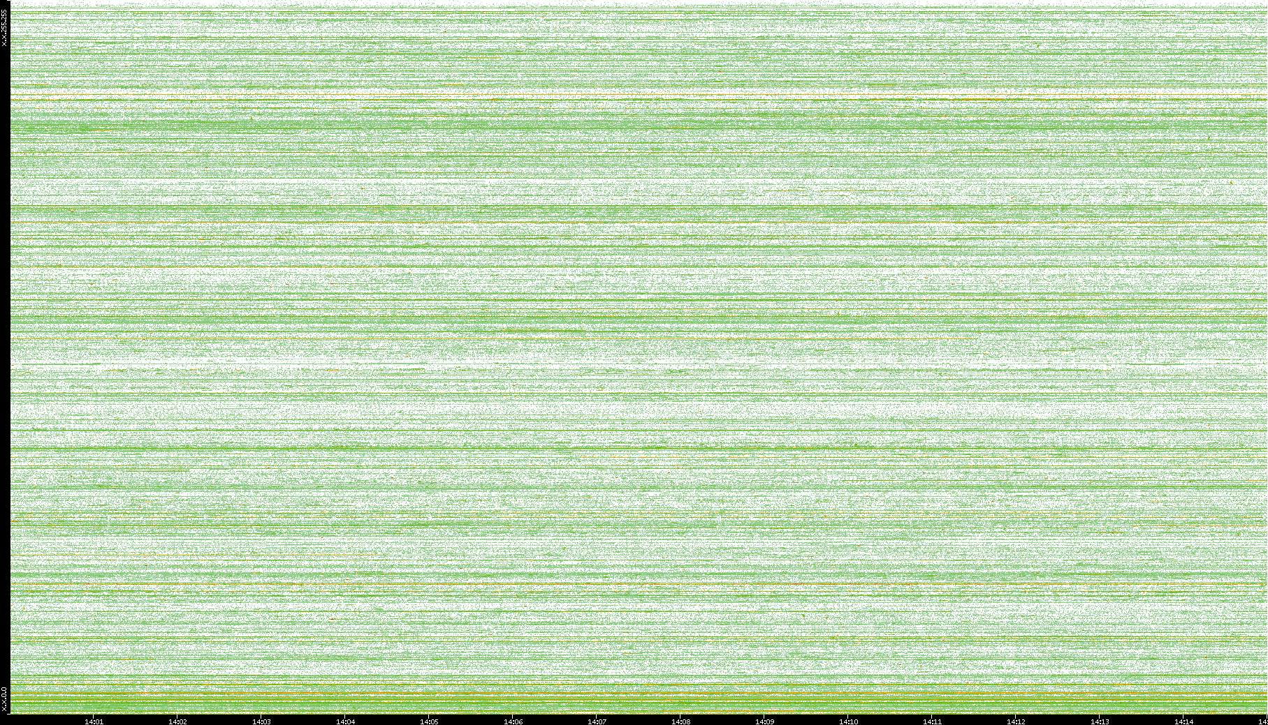 2004/05/14 Dest. IP vs. Time Dest. Port vs. Time Src. IP vs. Time Src. Port vs. Time Nb. of Packets vs. Time Throughput vs. Time Average Packet Size vs. Time Entropy of Port vs. Time