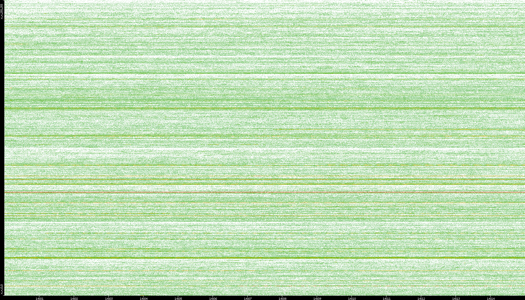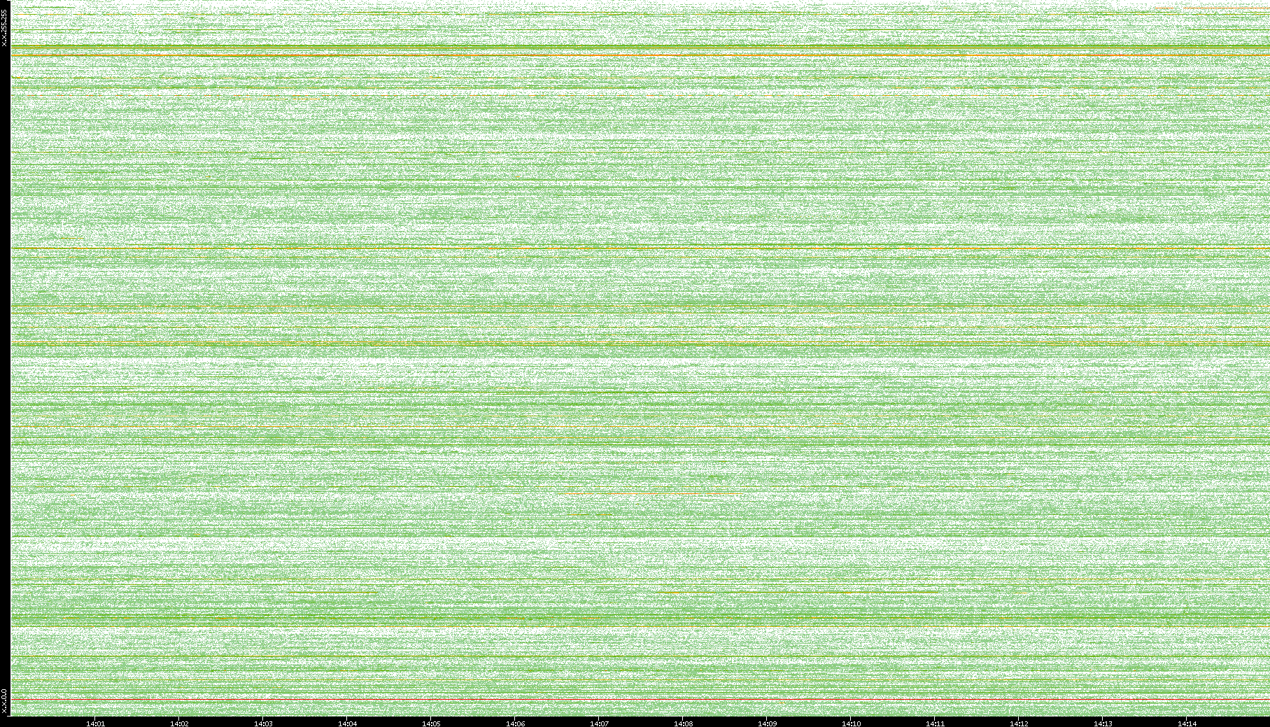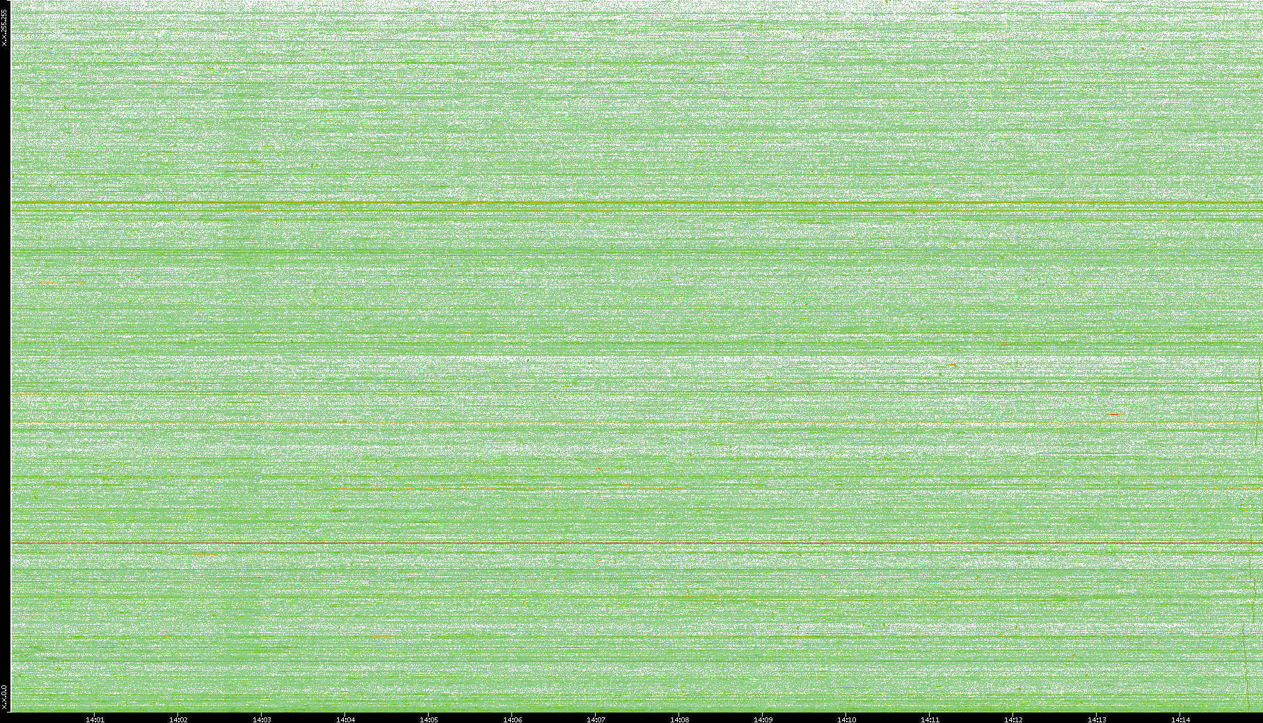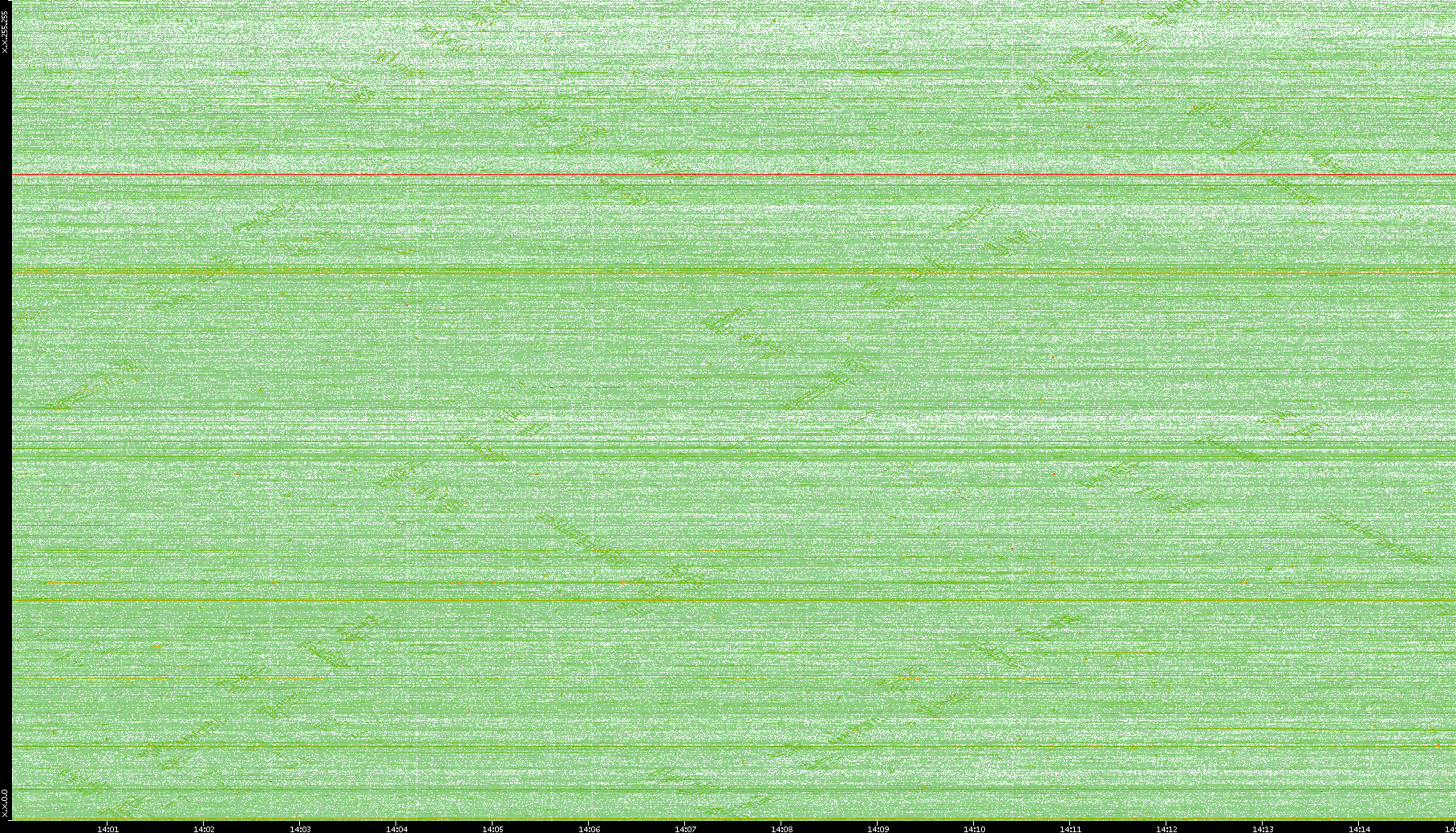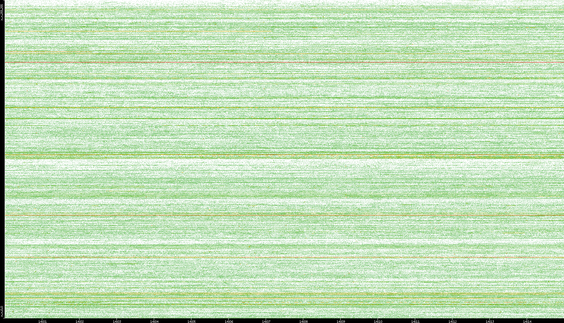 2004/05/14 Dest. IP vs. Time Dest. Port vs. Time Src. IP vs. Time Src. Port vs. Time Nb. of Packets vs. Time Throughput vs. Time Average Packet Size vs. Time Entropy of Port vs. Time
