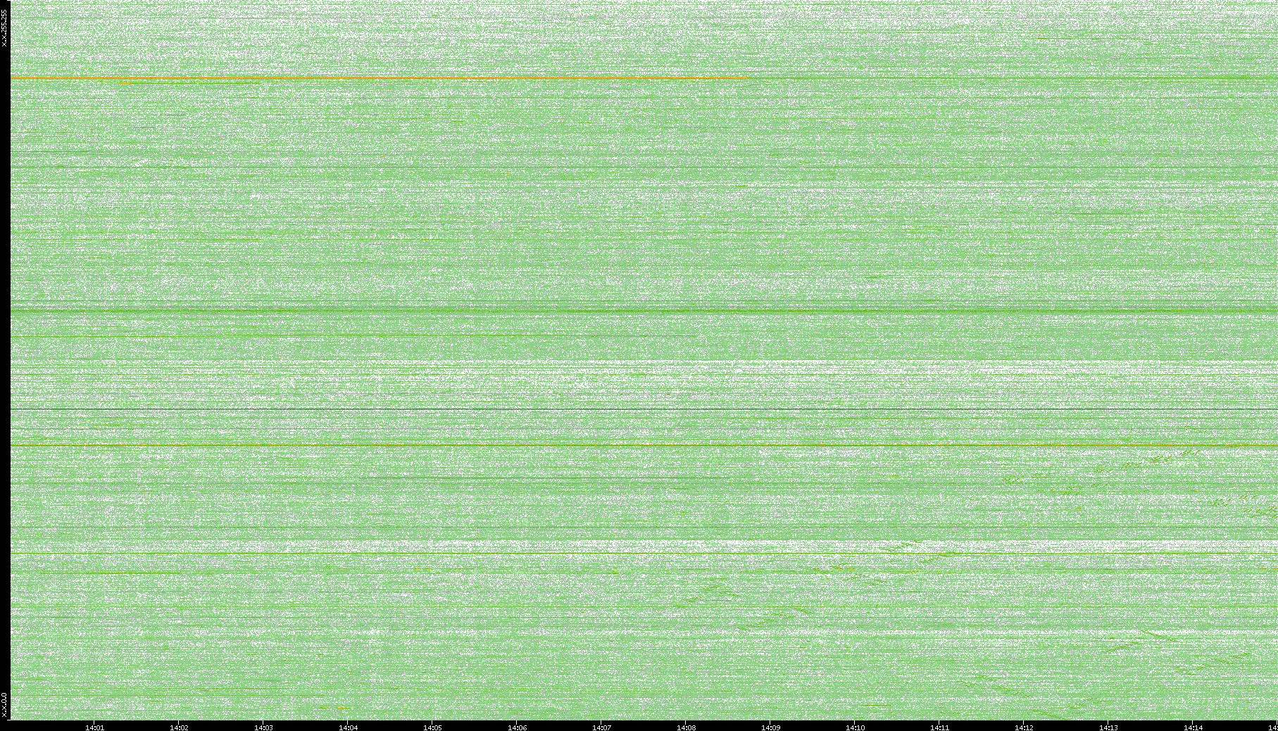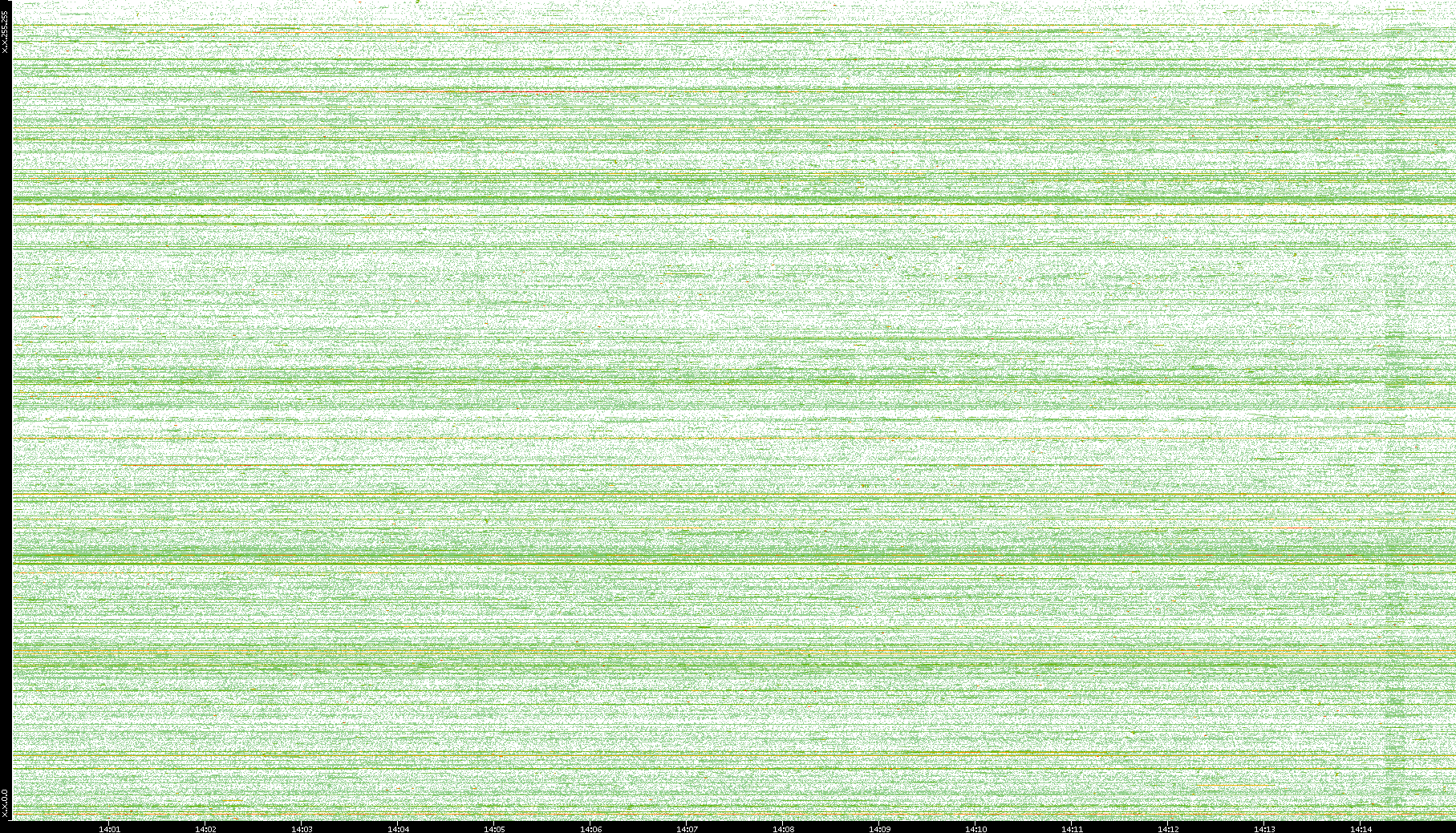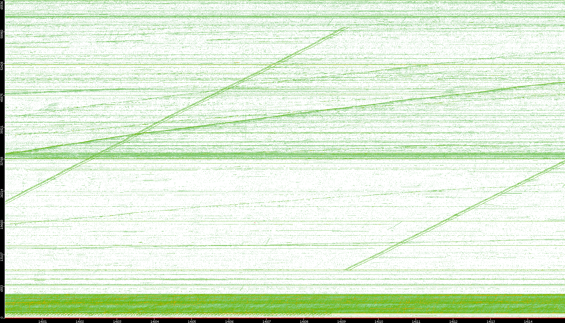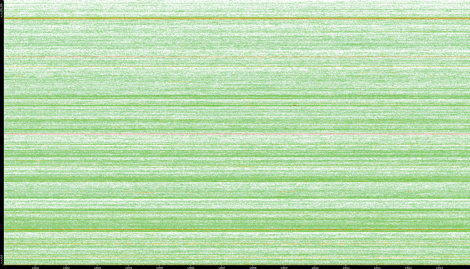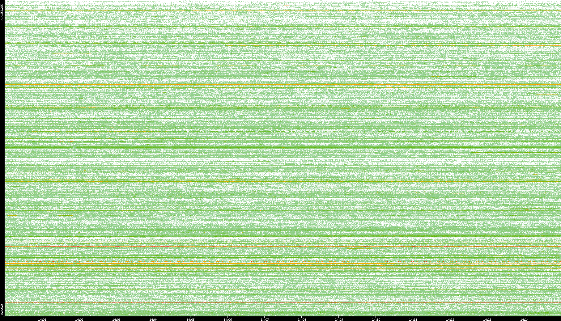 2004/05/14 Dest. IP vs. Time Dest. Port vs. Time Src. IP vs. Time Src. Port vs. Time Nb. of Packets vs. Time Throughput vs. Time Average Packet Size vs. Time Entropy of Port vs. Time