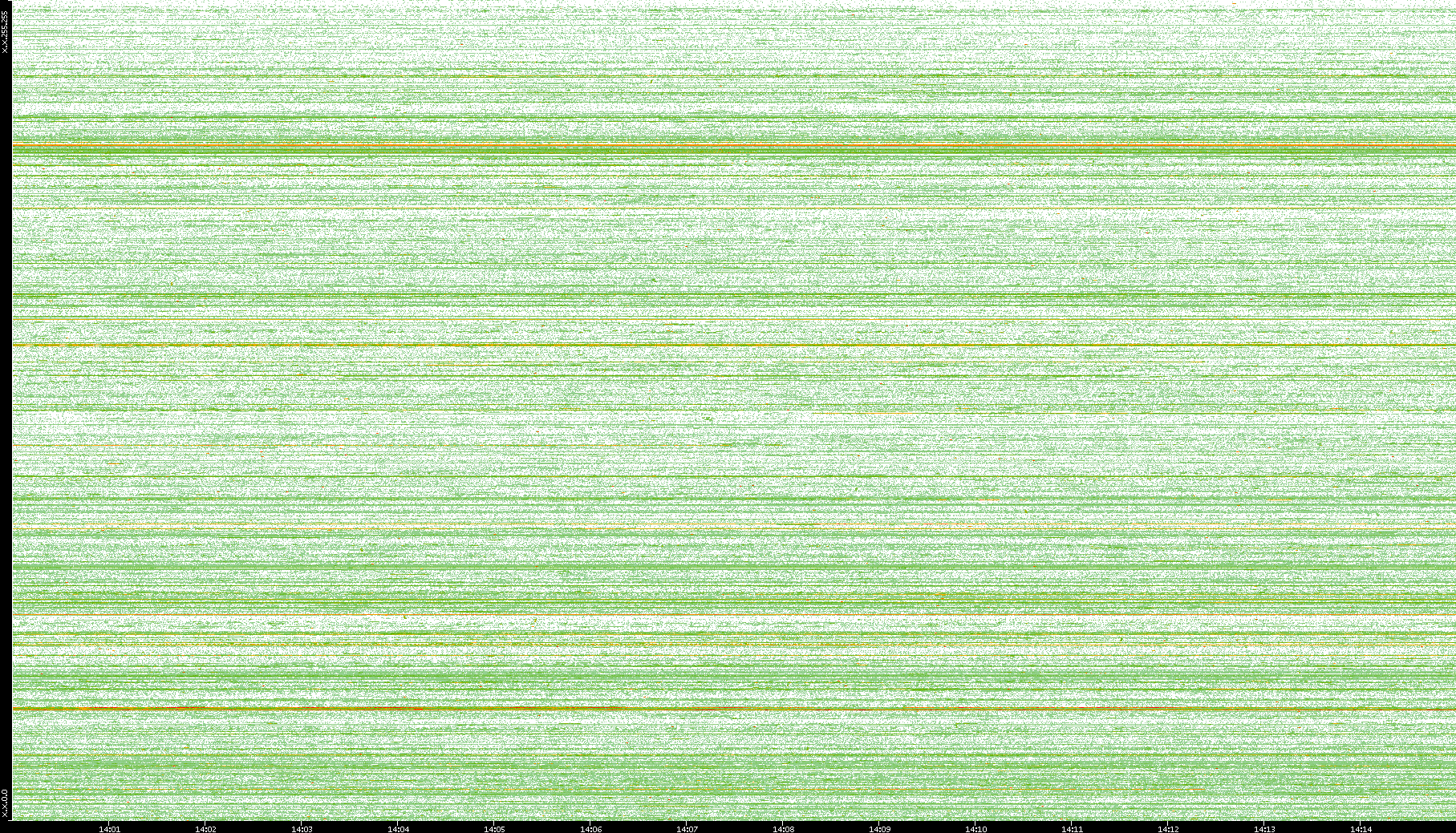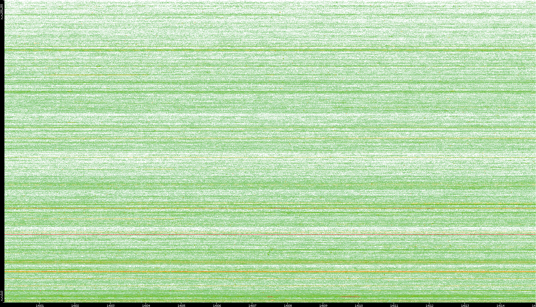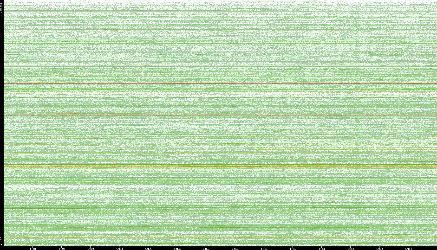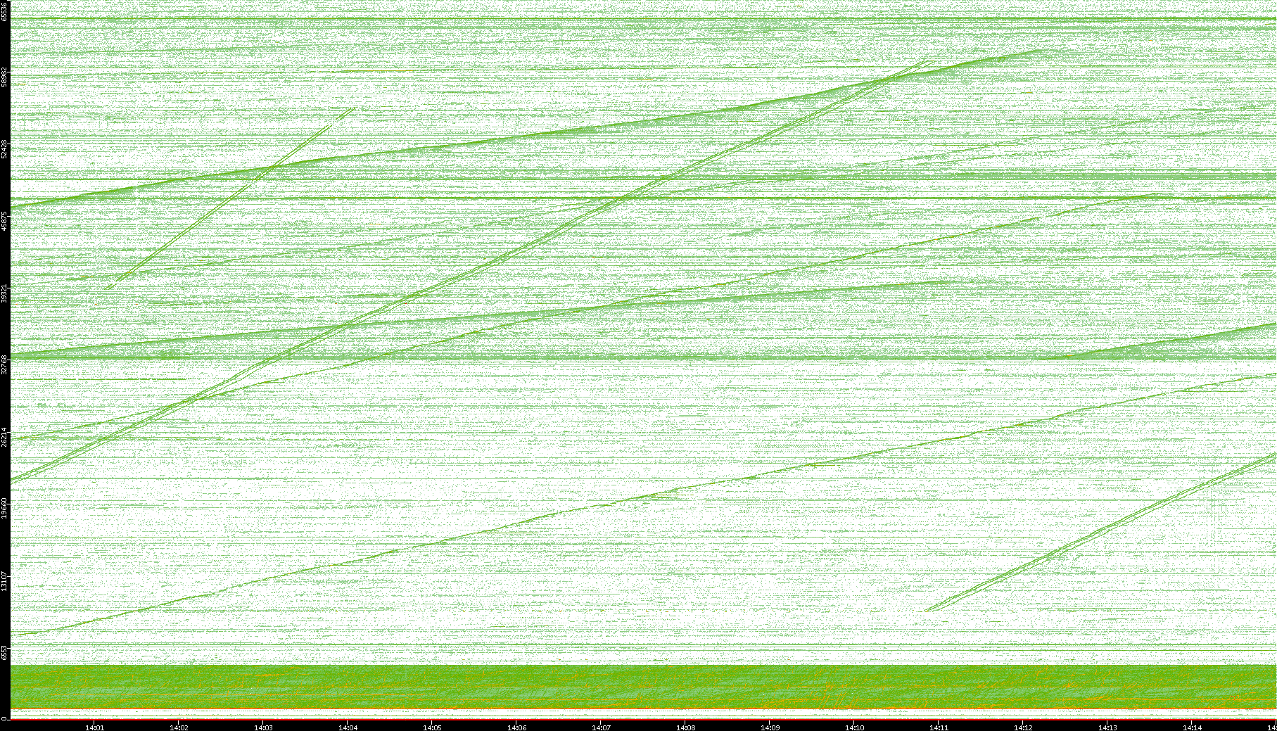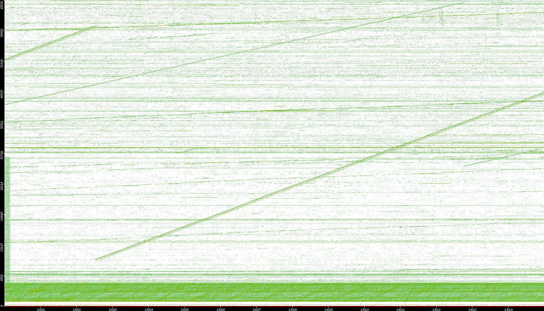 2004/05/14 Dest. IP vs. Time Dest. Port vs. Time Src. IP vs. Time Src. Port vs. Time Nb. of Packets vs. Time Throughput vs. Time Average Packet Size vs. Time Entropy of Port vs. Time