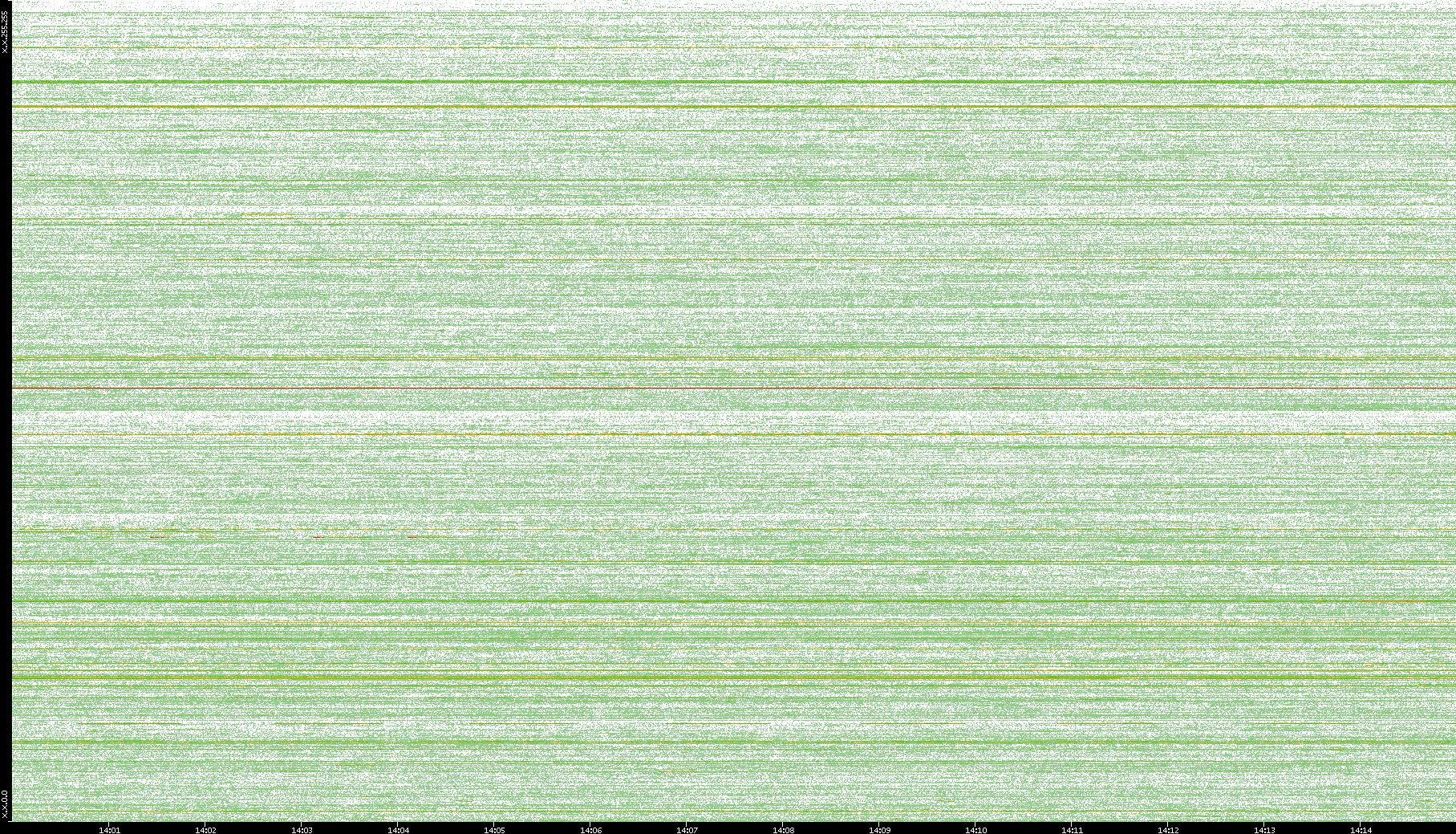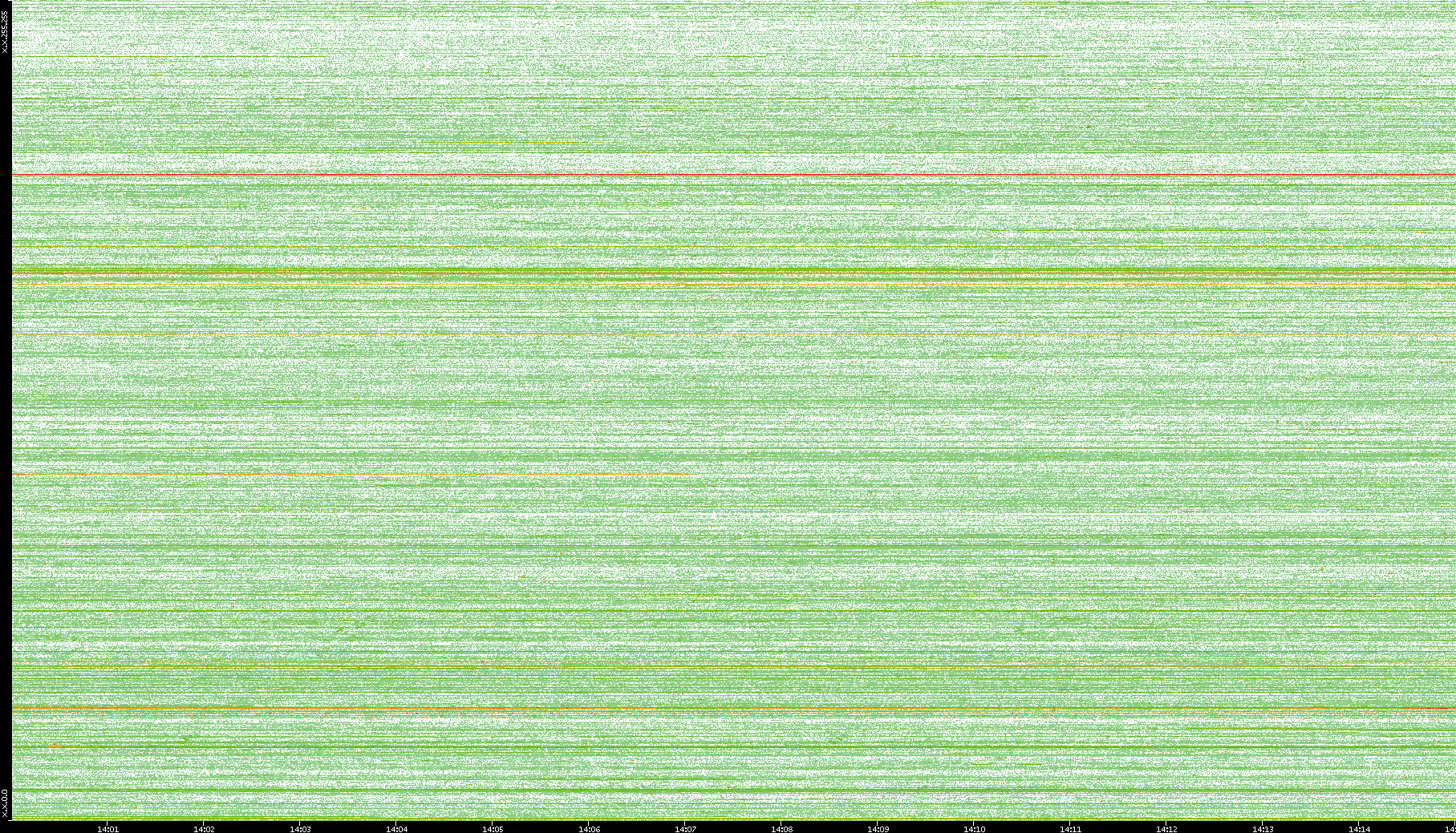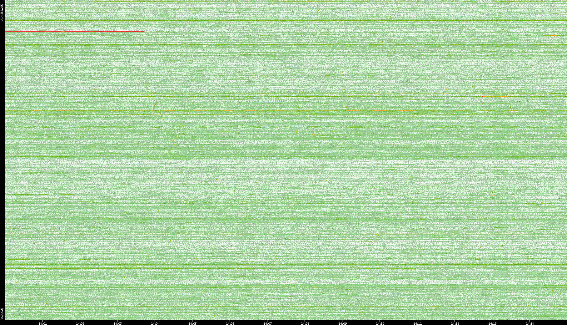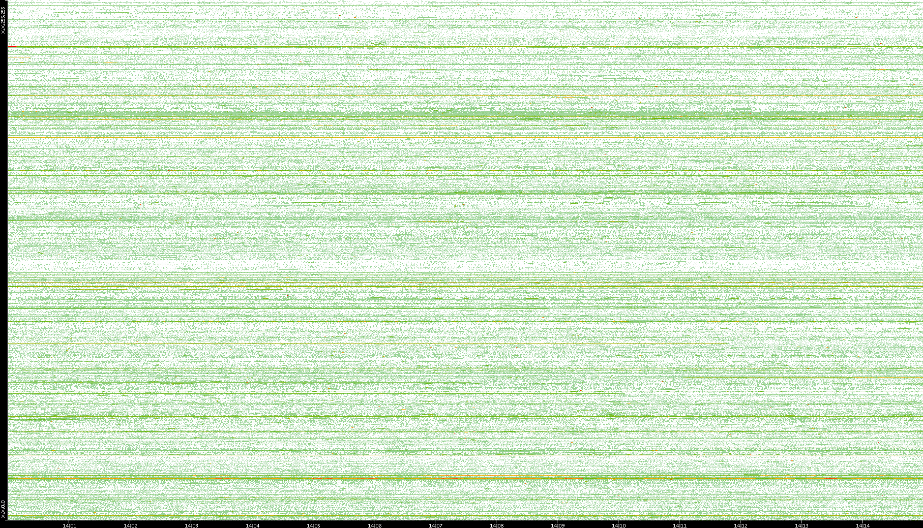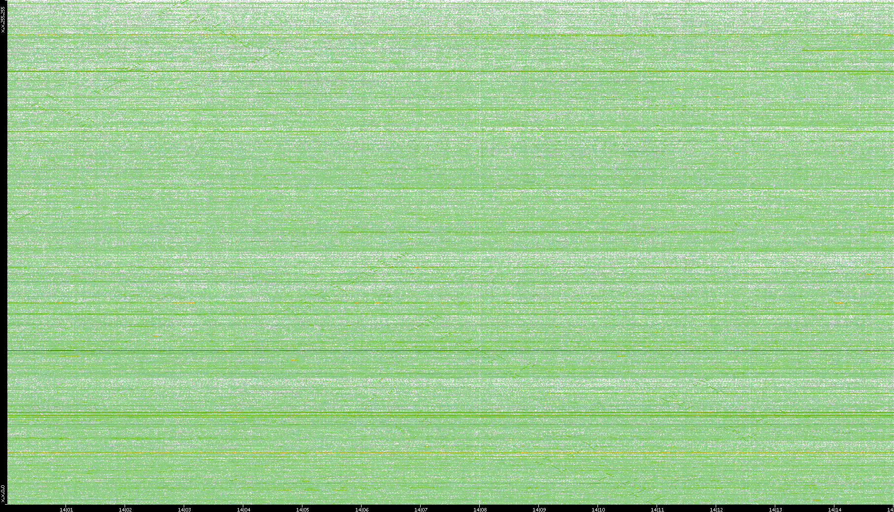2004/05/14 Dest. IP vs. Time Dest. Port vs. Time Src. IP vs. Time Src. Port vs. Time Nb. of Packets vs. Time Throughput vs. Time Average Packet Size vs. Time Entropy of Port vs. Time