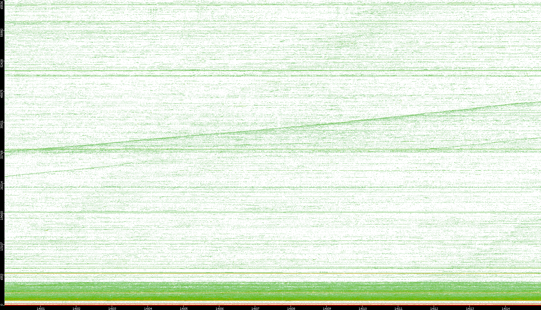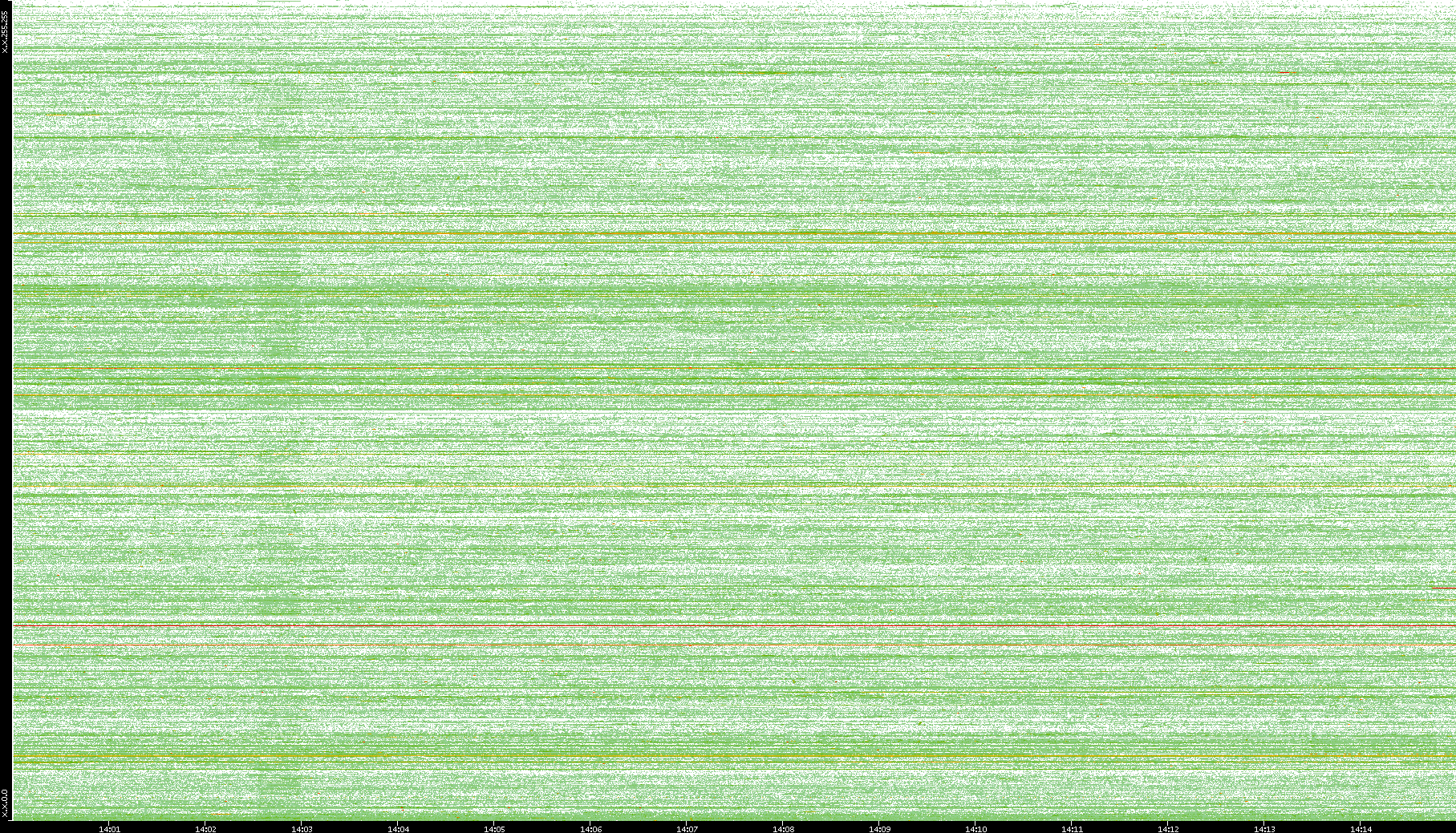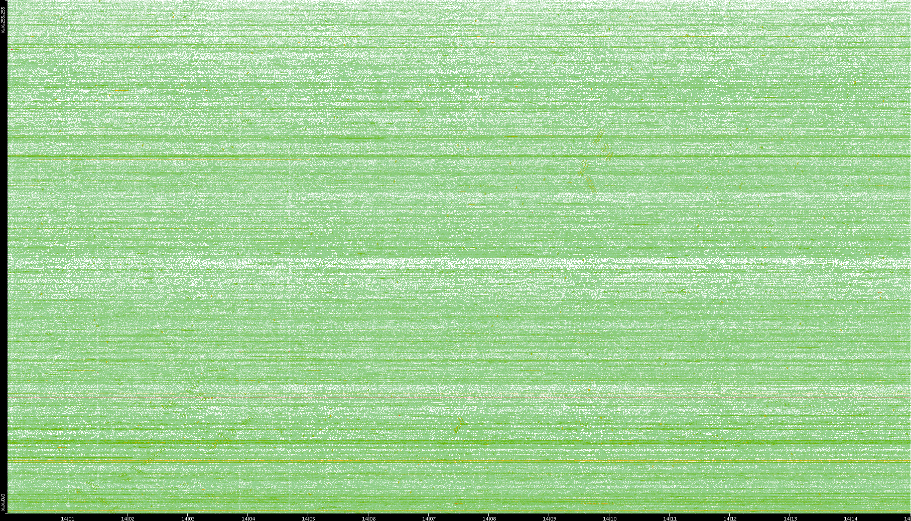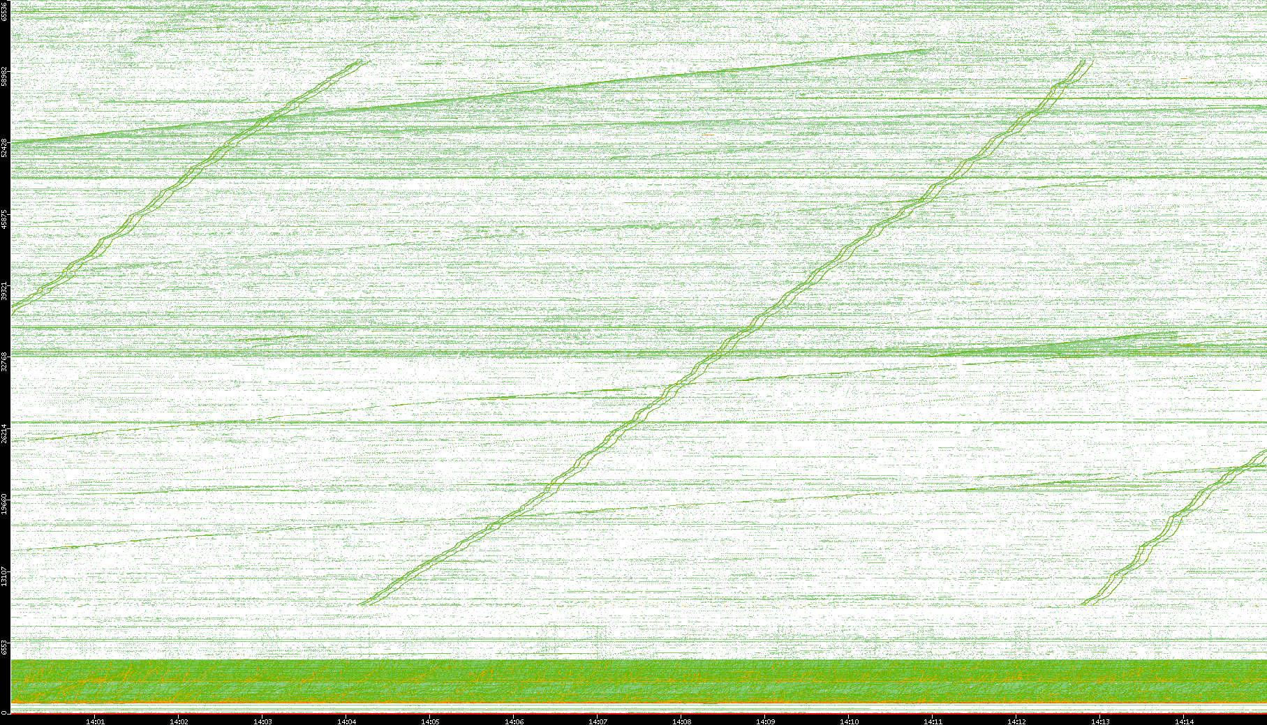 2004/05/14 Dest. IP vs. Time Dest. Port vs. Time Src. IP vs. Time Src. Port vs. Time Nb. of Packets vs. Time Throughput vs. Time Average Packet Size vs. Time Entropy of Port vs. Time
