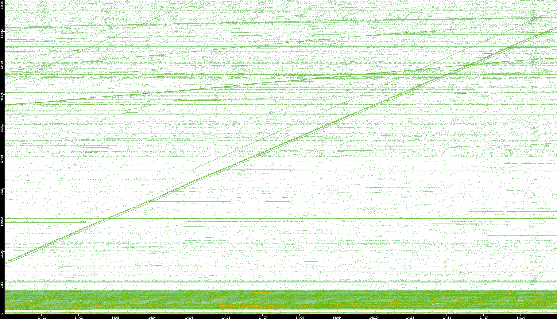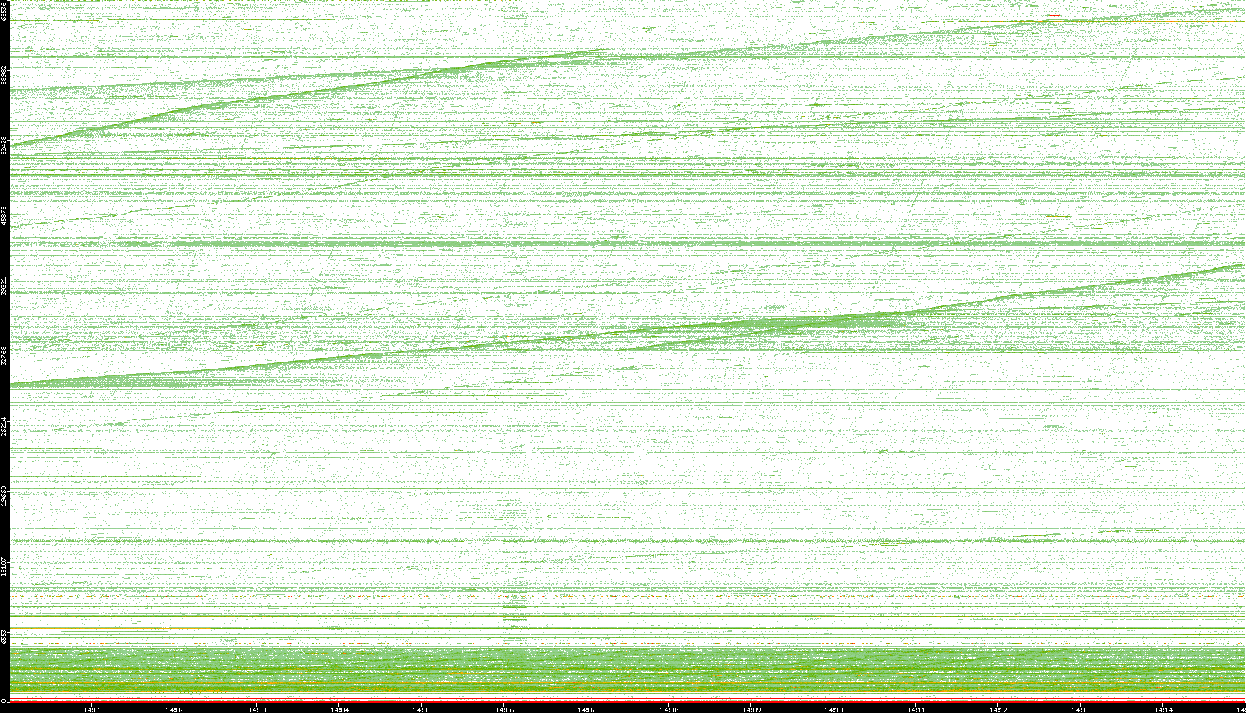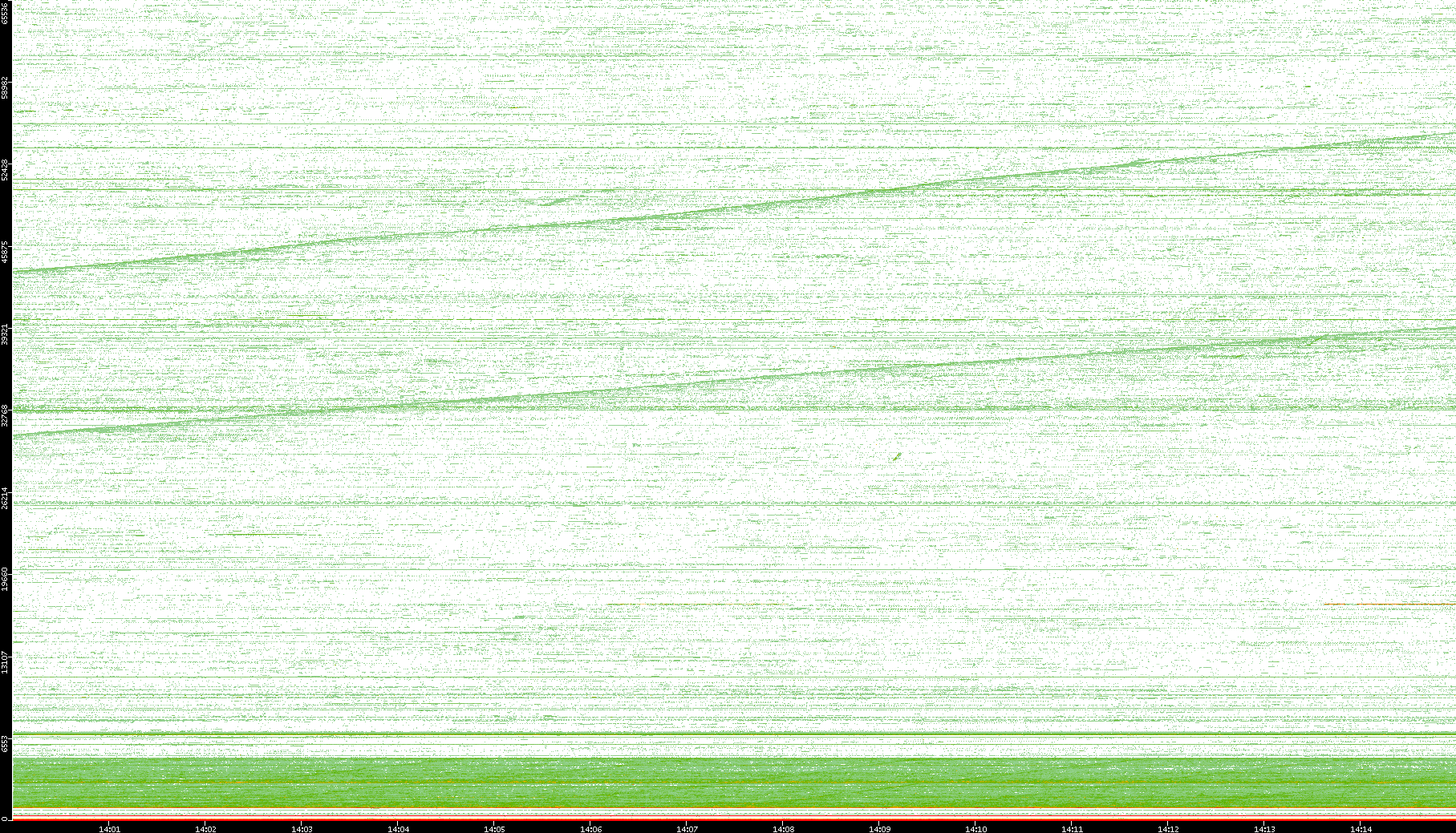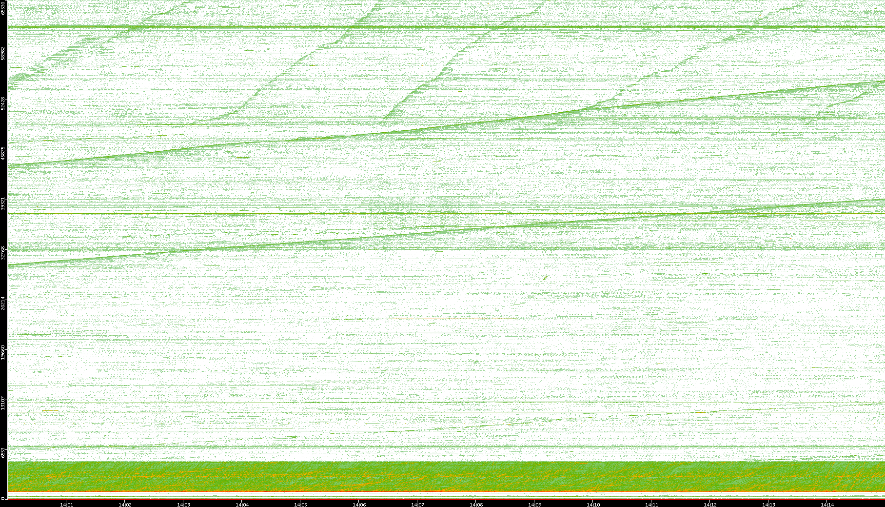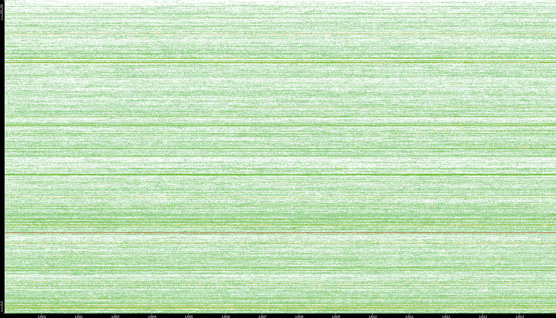 2004/05/14 Dest. IP vs. Time Dest. Port vs. Time Src. IP vs. Time Src. Port vs. Time Nb. of Packets vs. Time Throughput vs. Time Average Packet Size vs. Time Entropy of Port vs. Time