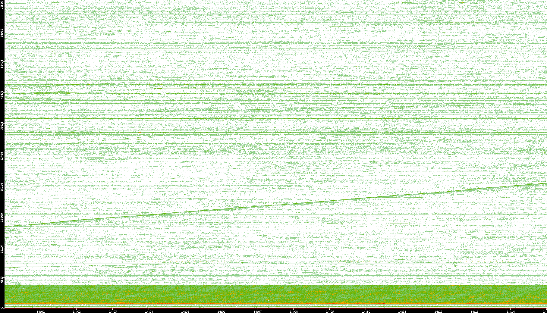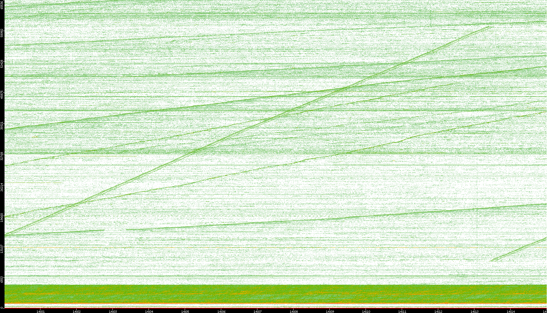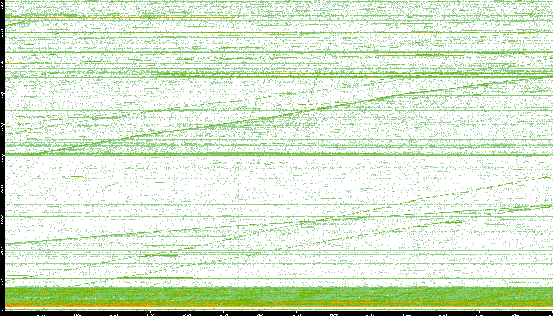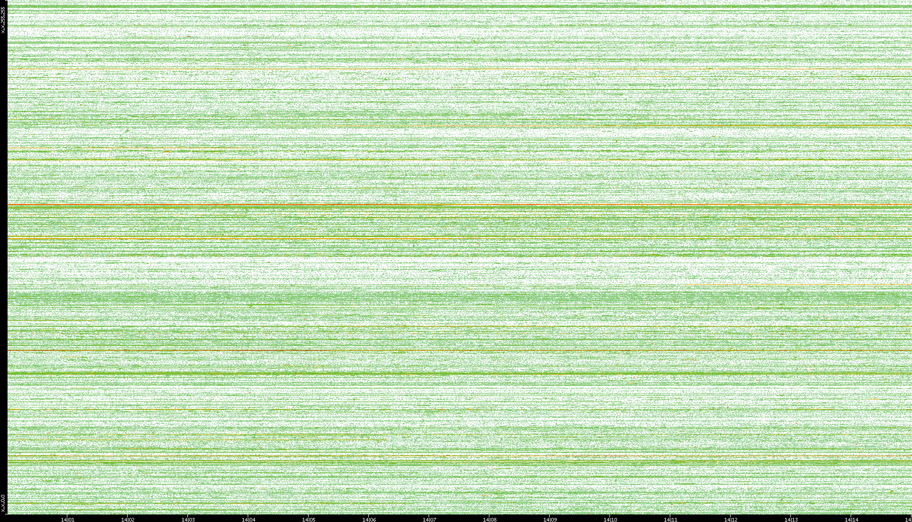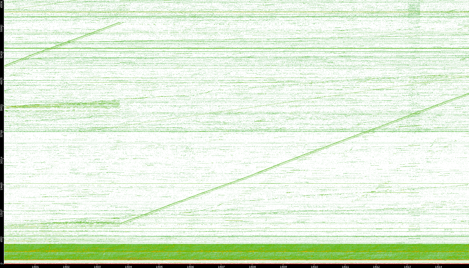 2004/05/14 Dest. IP vs. Time Dest. Port vs. Time Src. IP vs. Time Src. Port vs. Time Nb. of Packets vs. Time Throughput vs. Time Average Packet Size vs. Time Entropy of Port vs. Time