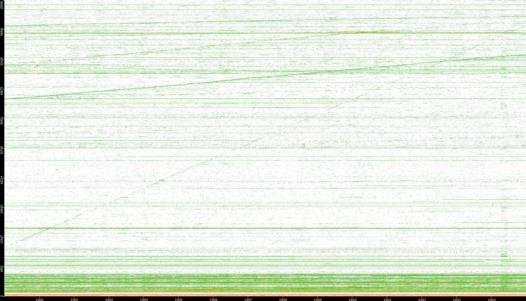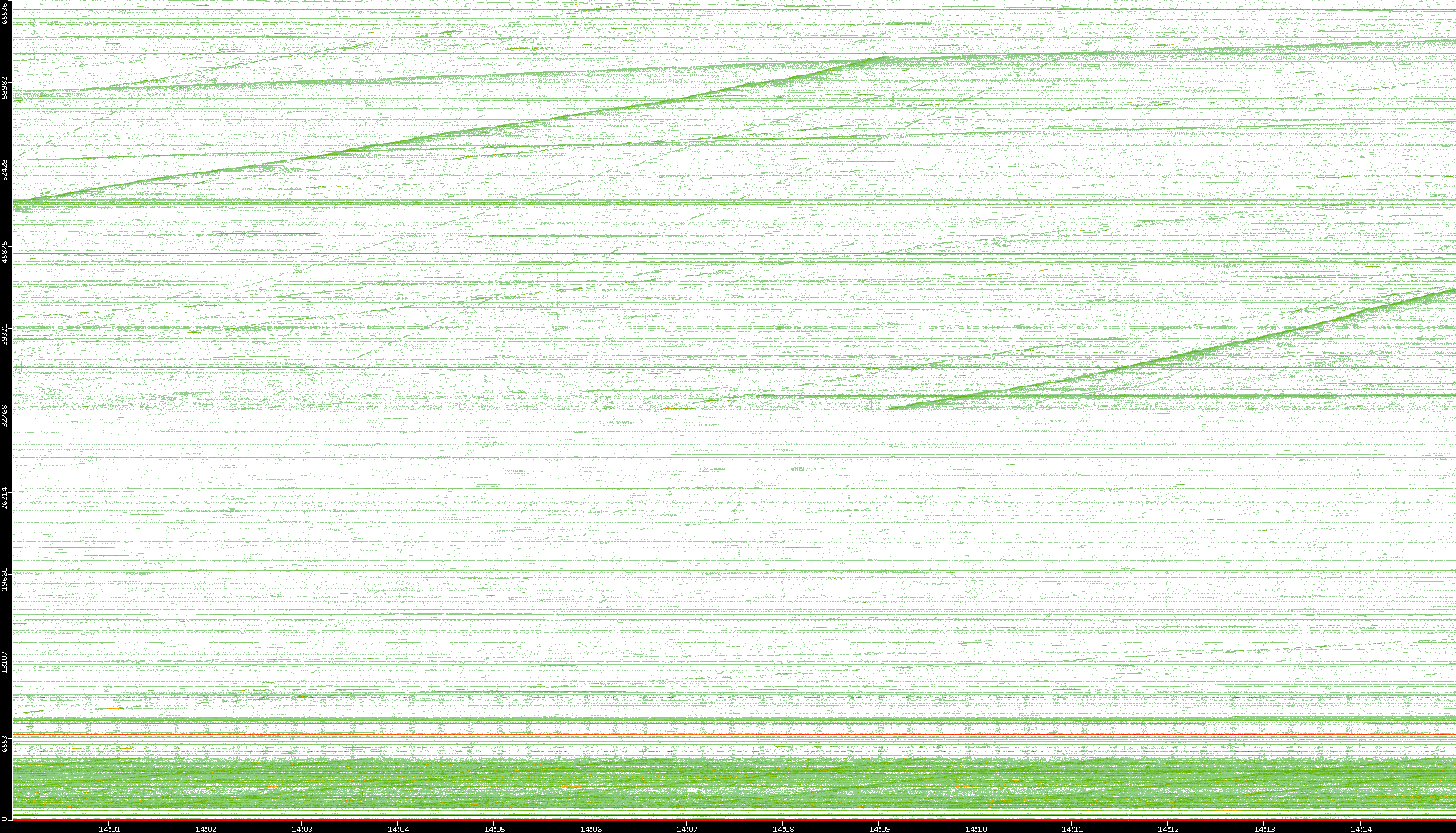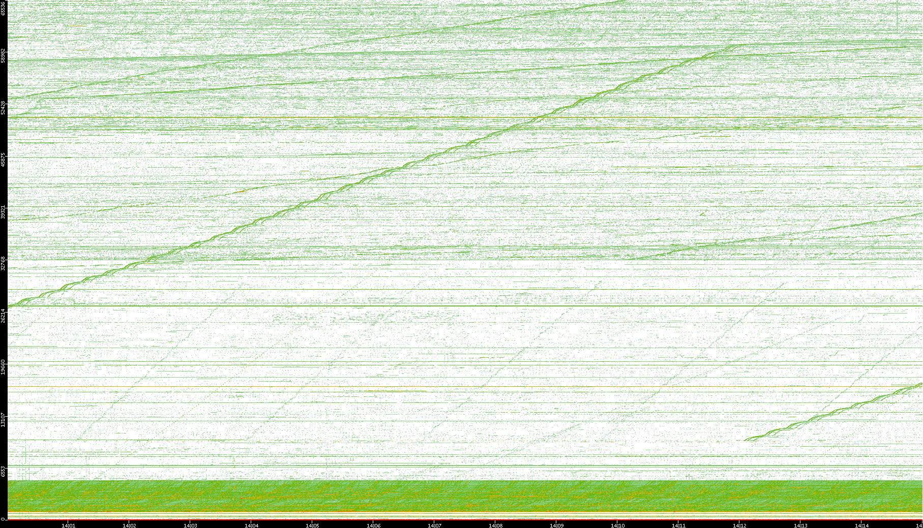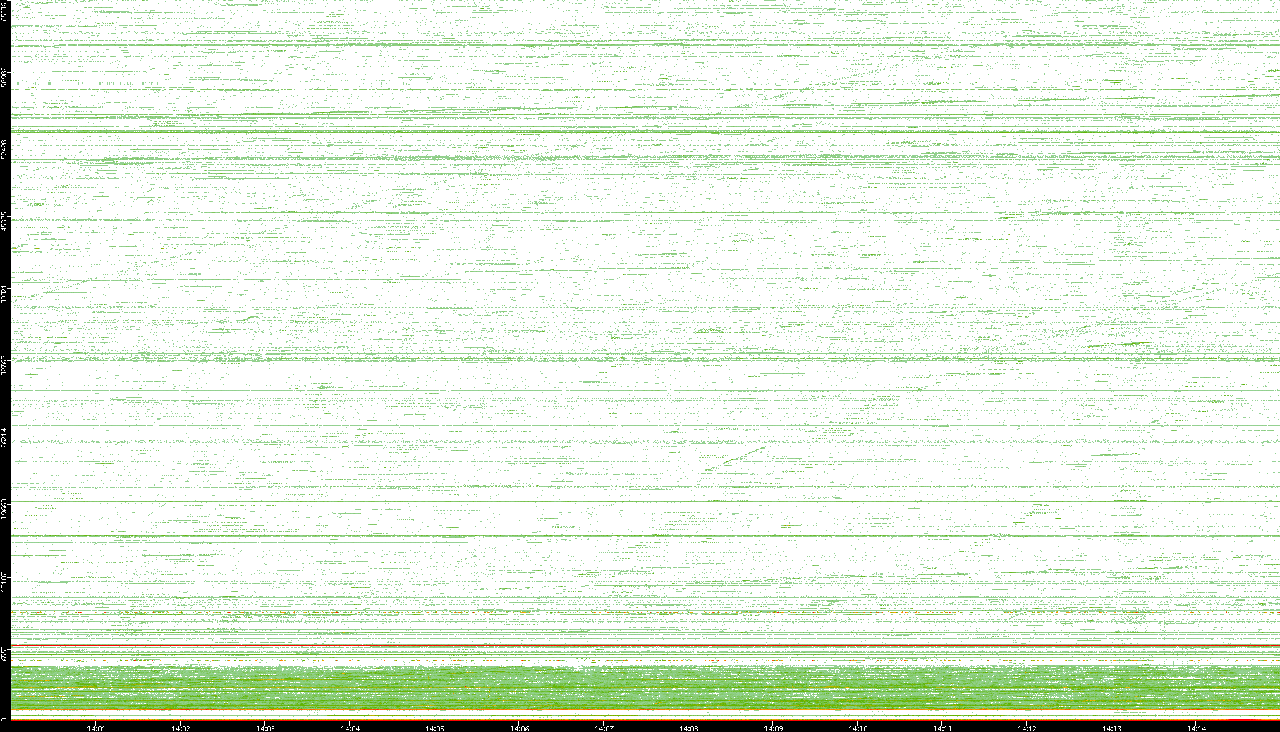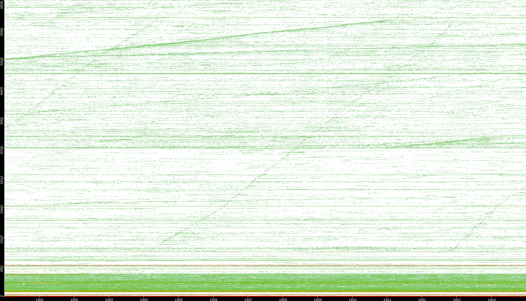 2004/05/14 Dest. IP vs. Time Dest. Port vs. Time Src. IP vs. Time Src. Port vs. Time Nb. of Packets vs. Time Throughput vs. Time Average Packet Size vs. Time Entropy of Port vs. Time