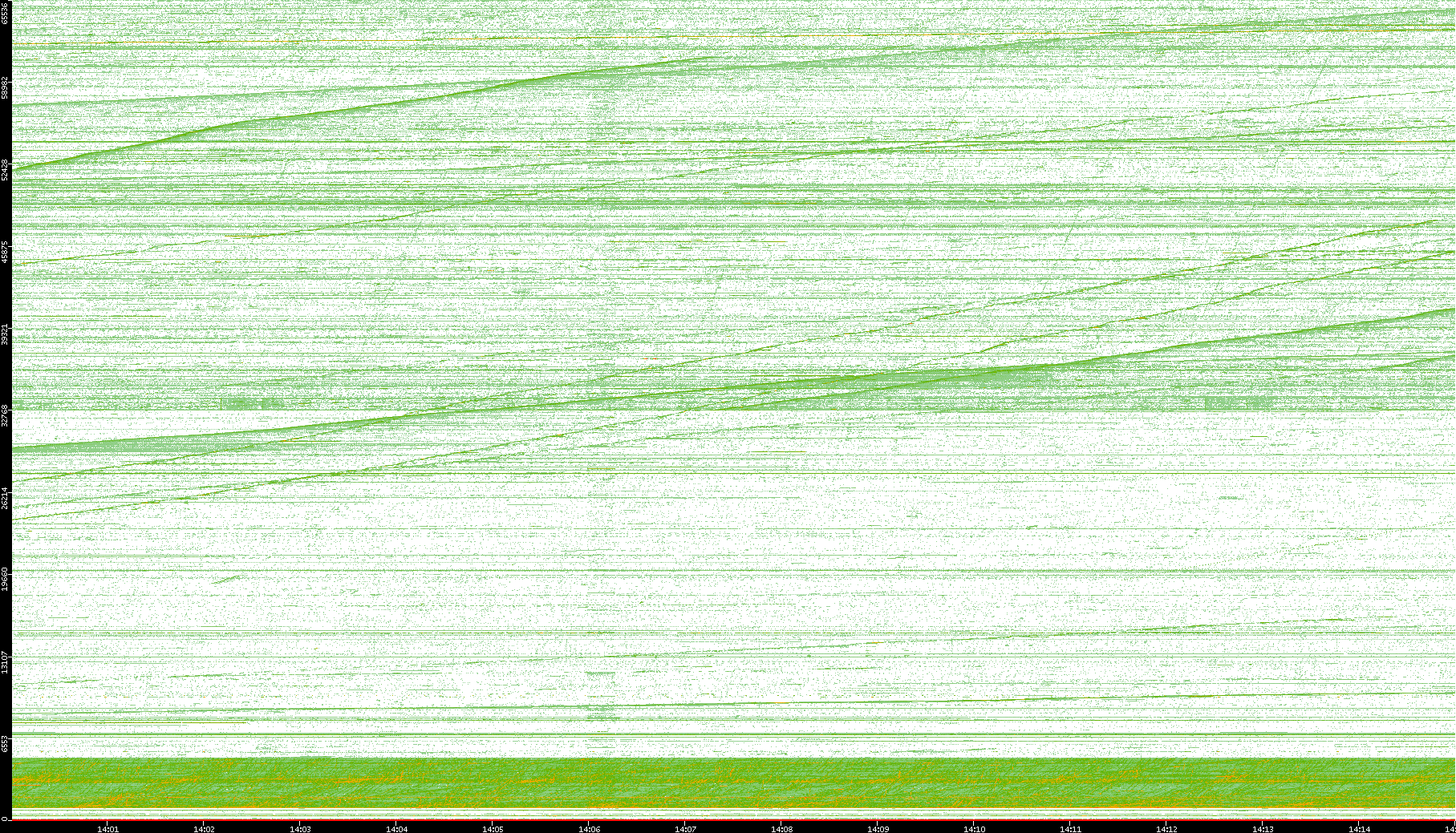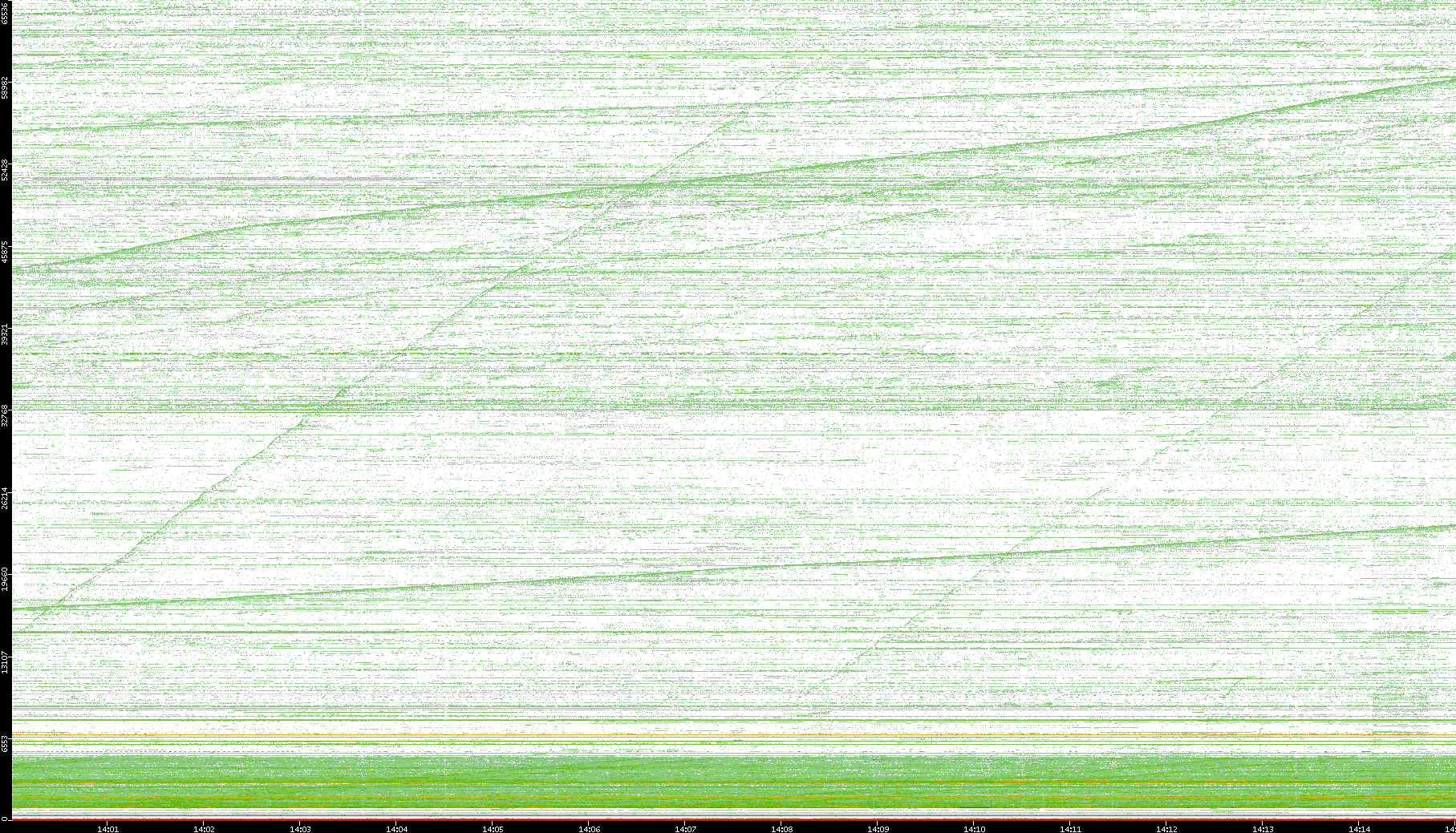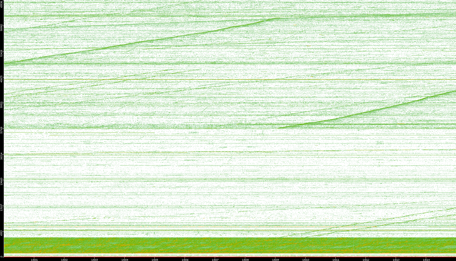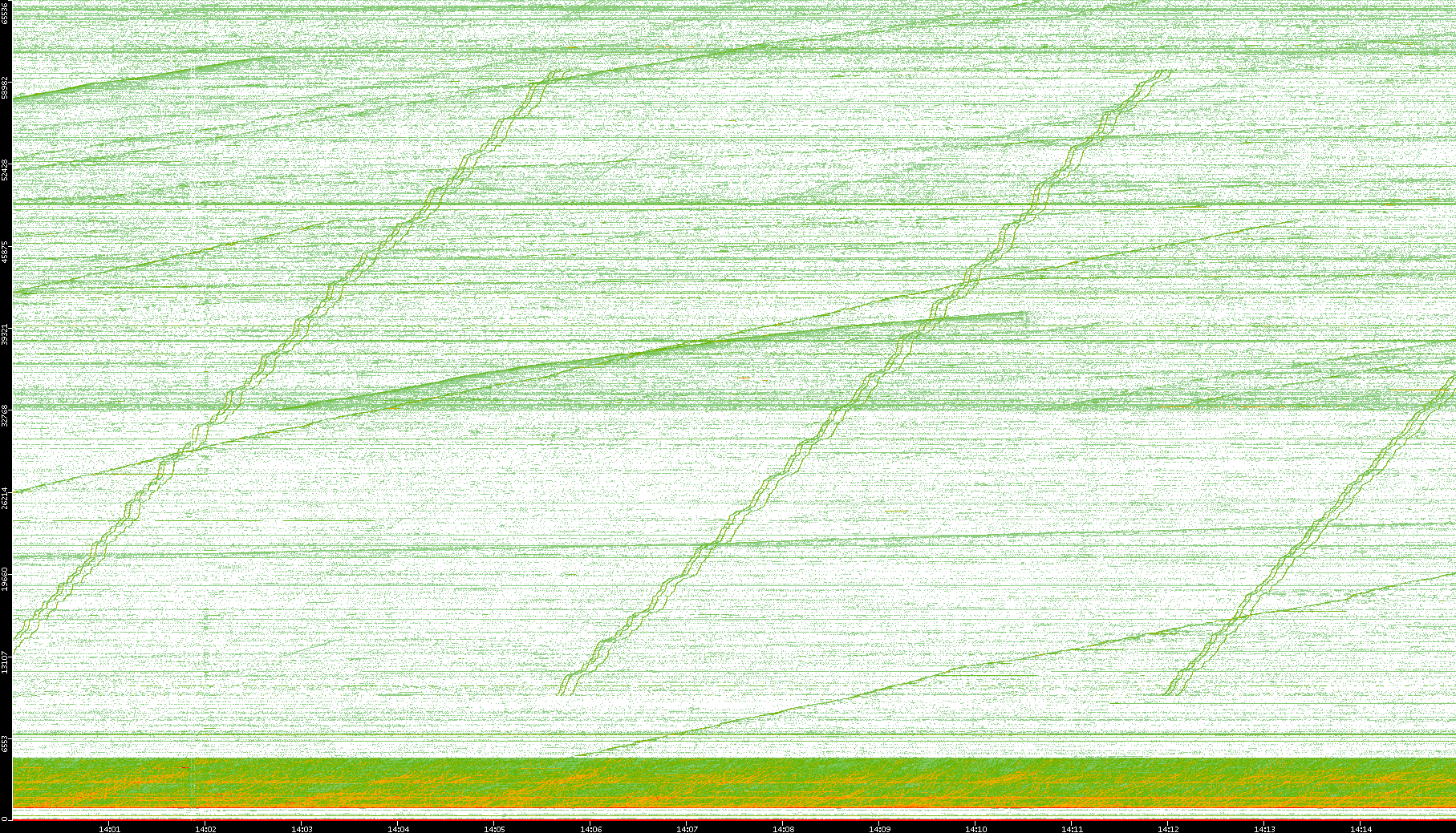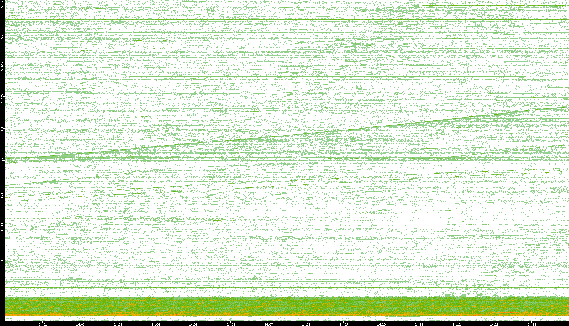 2004/05/14 Dest. IP vs. Time Dest. Port vs. Time Src. IP vs. Time Src. Port vs. Time Nb. of Packets vs. Time Throughput vs. Time Average Packet Size vs. Time Entropy of Port vs. Time