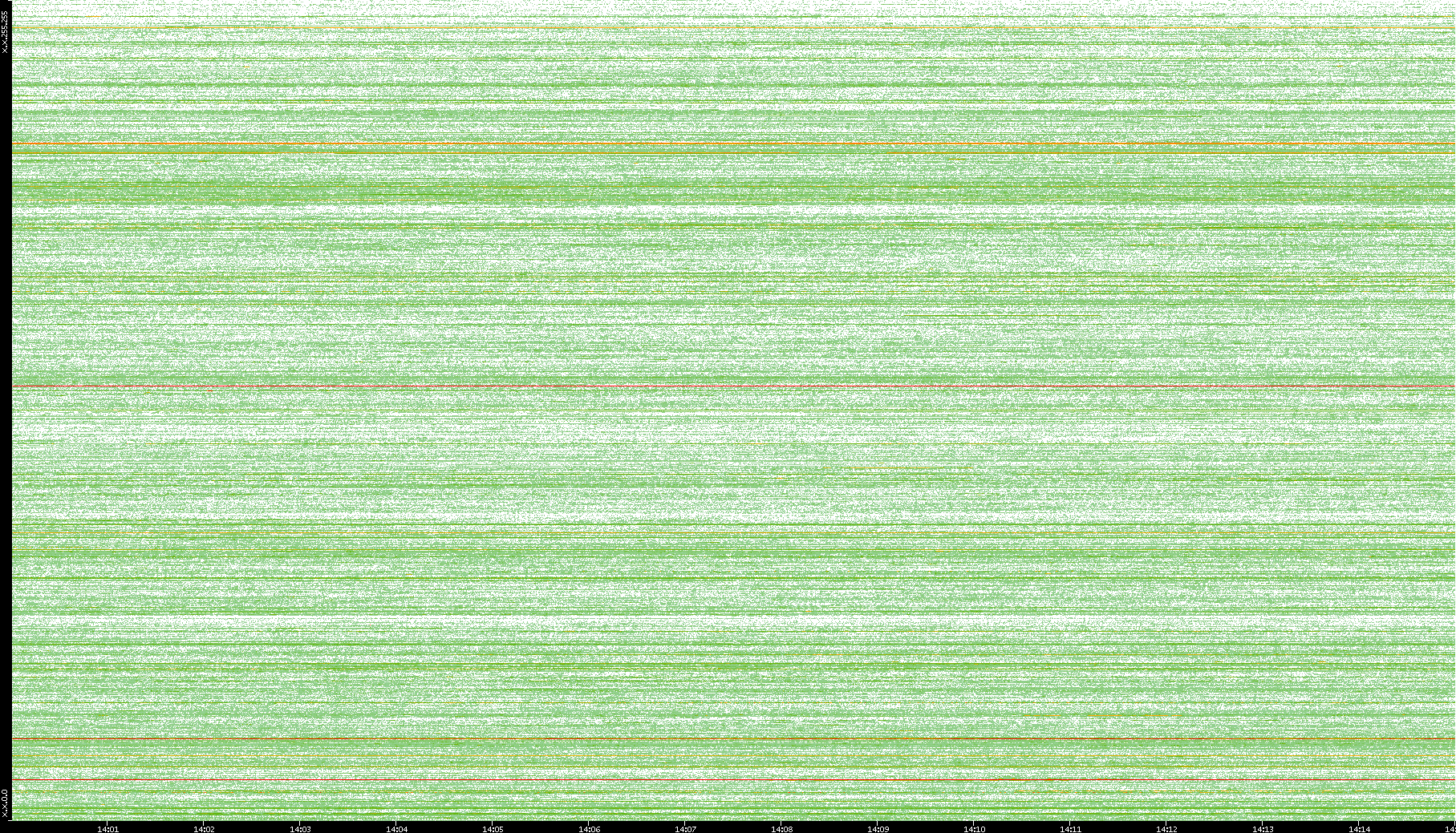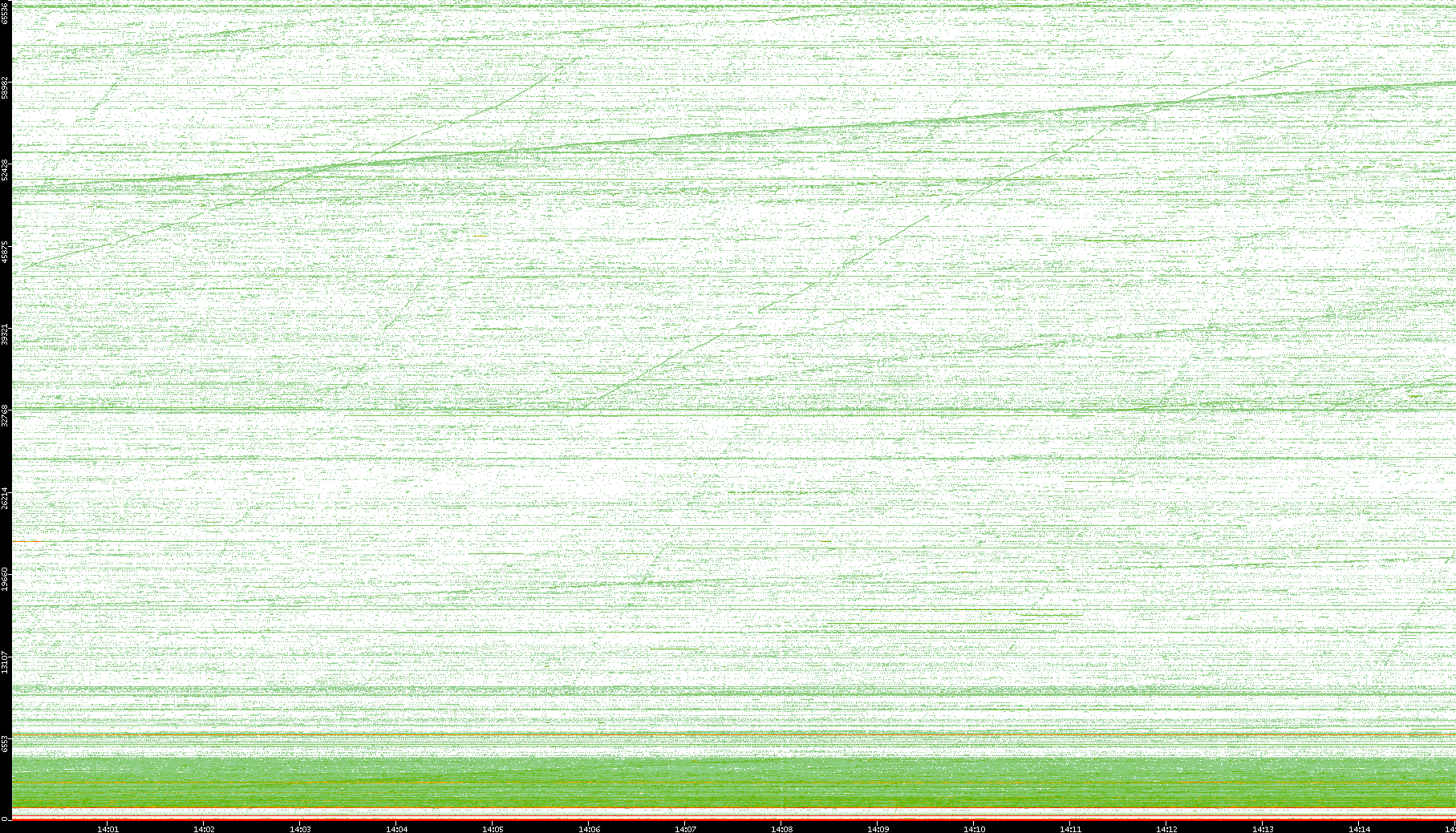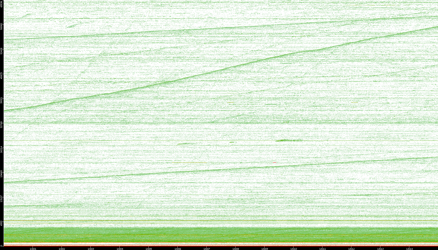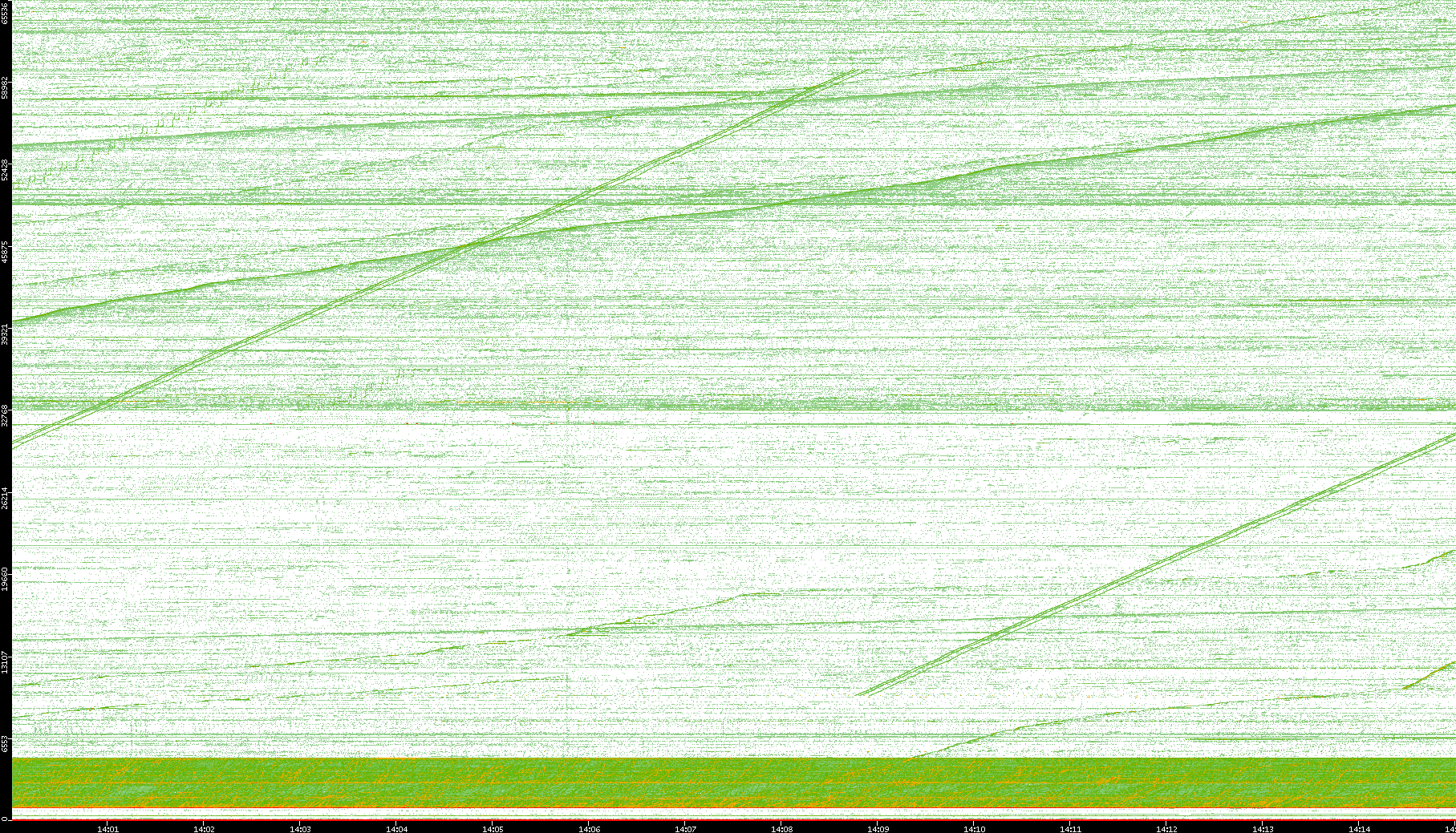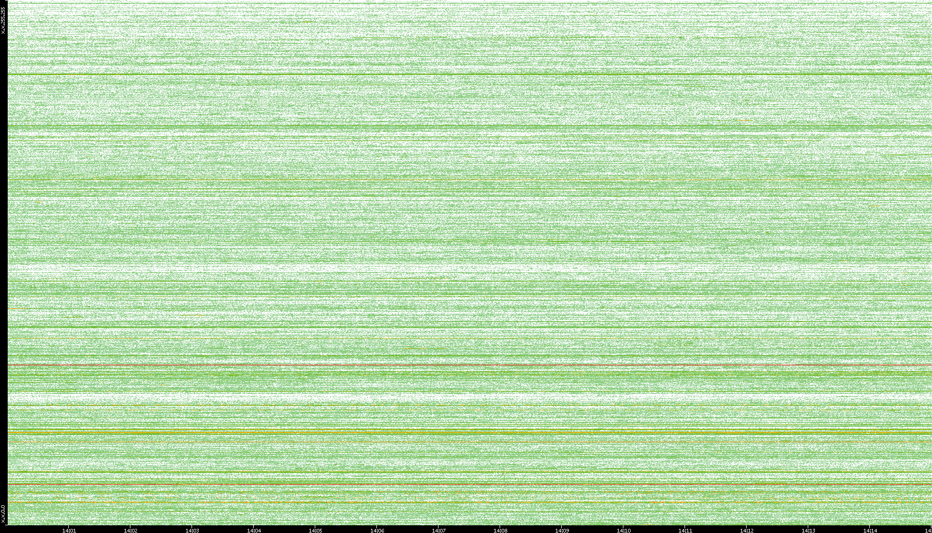 2004/05/14 Dest. IP vs. Time Dest. Port vs. Time Src. IP vs. Time Src. Port vs. Time Nb. of Packets vs. Time Throughput vs. Time Average Packet Size vs. Time Entropy of Port vs. Time