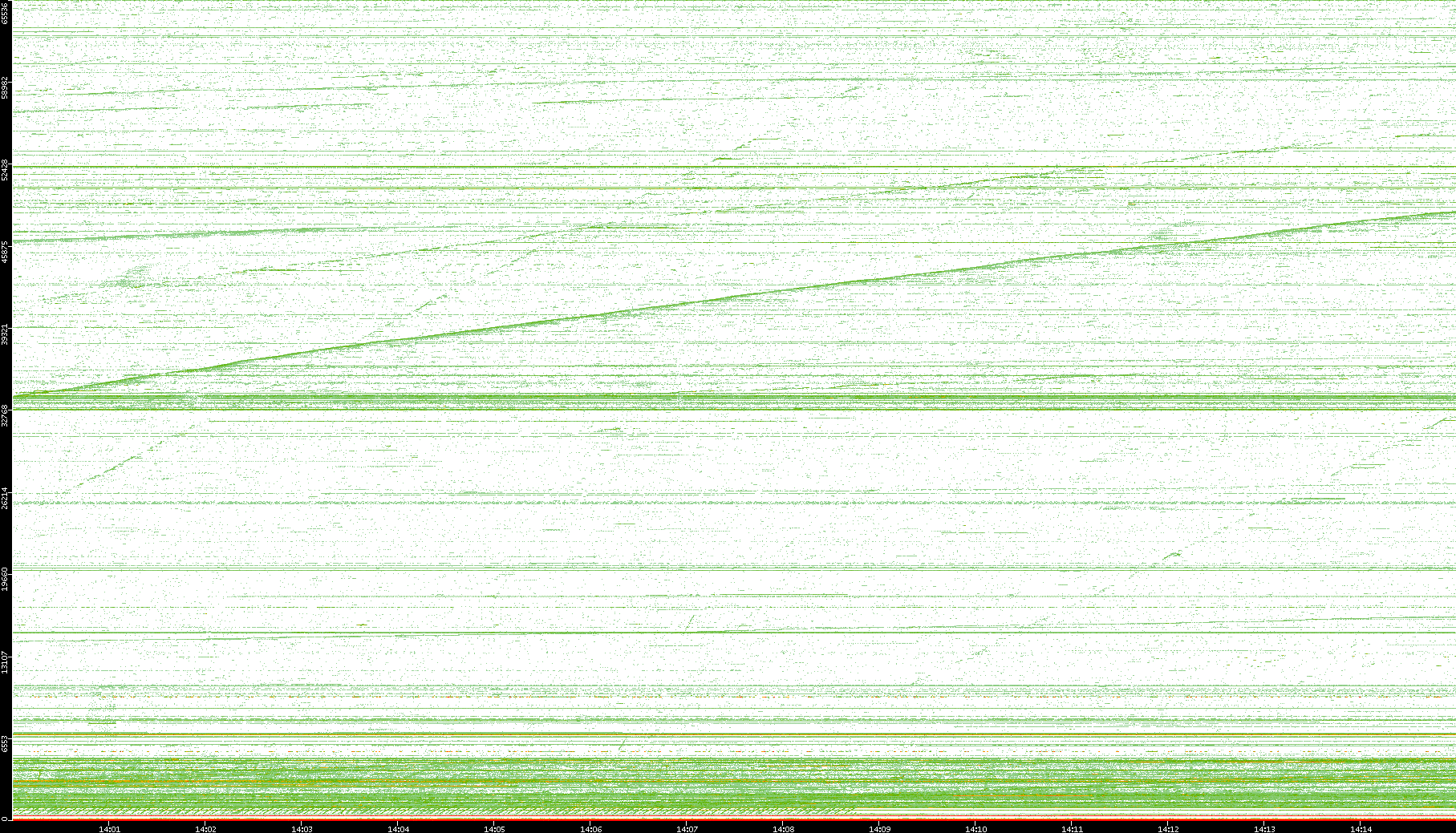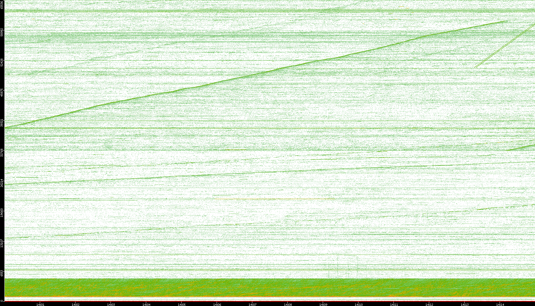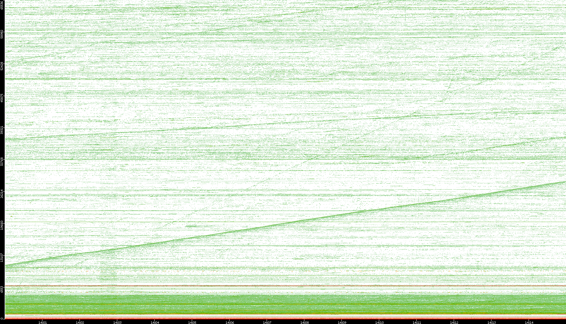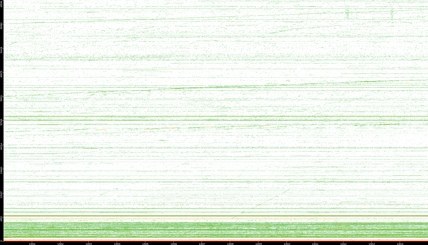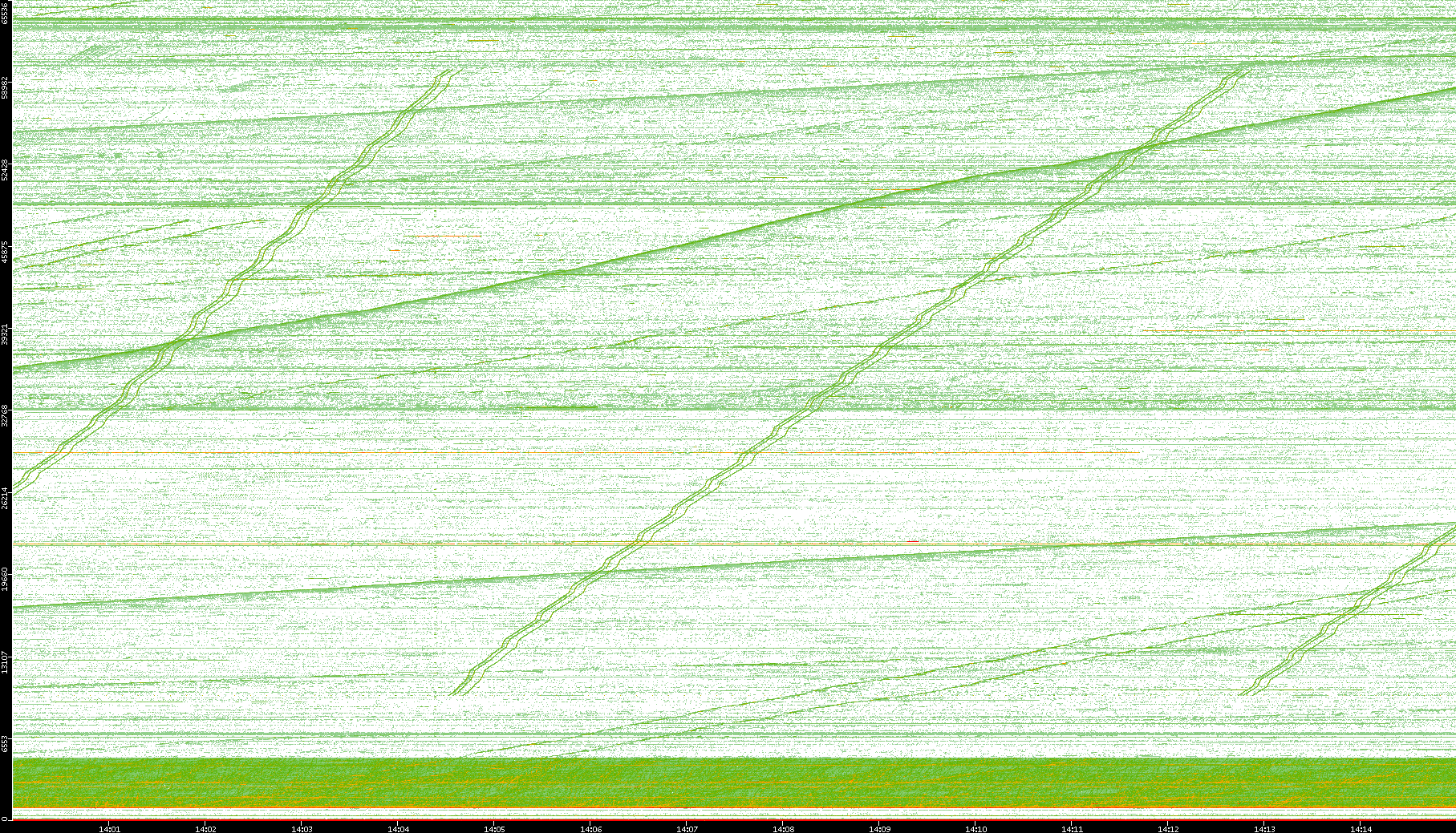 2004/05/14 Dest. IP vs. Time Dest. Port vs. Time Src. IP vs. Time Src. Port vs. Time Nb. of Packets vs. Time Throughput vs. Time Average Packet Size vs. Time Entropy of Port vs. Time
