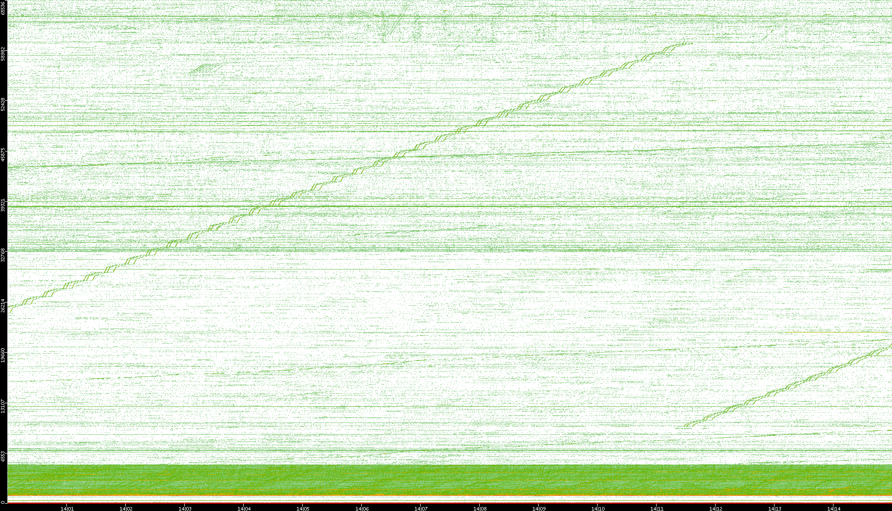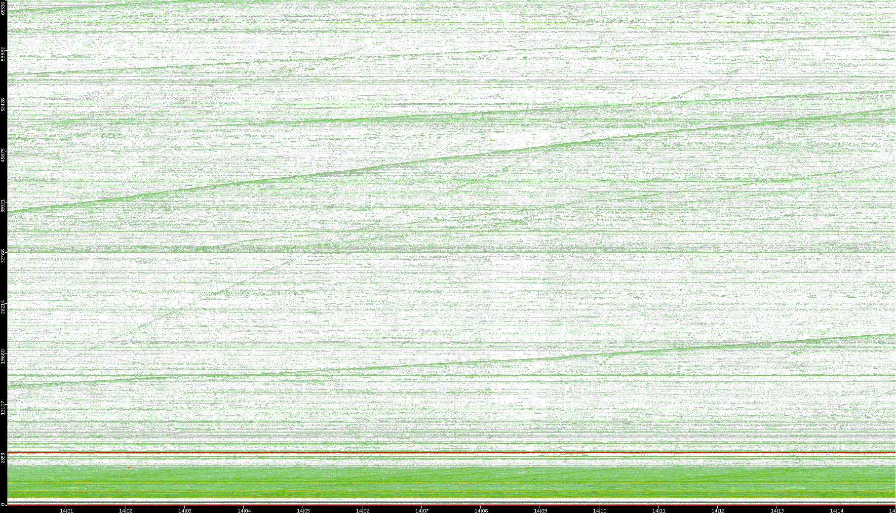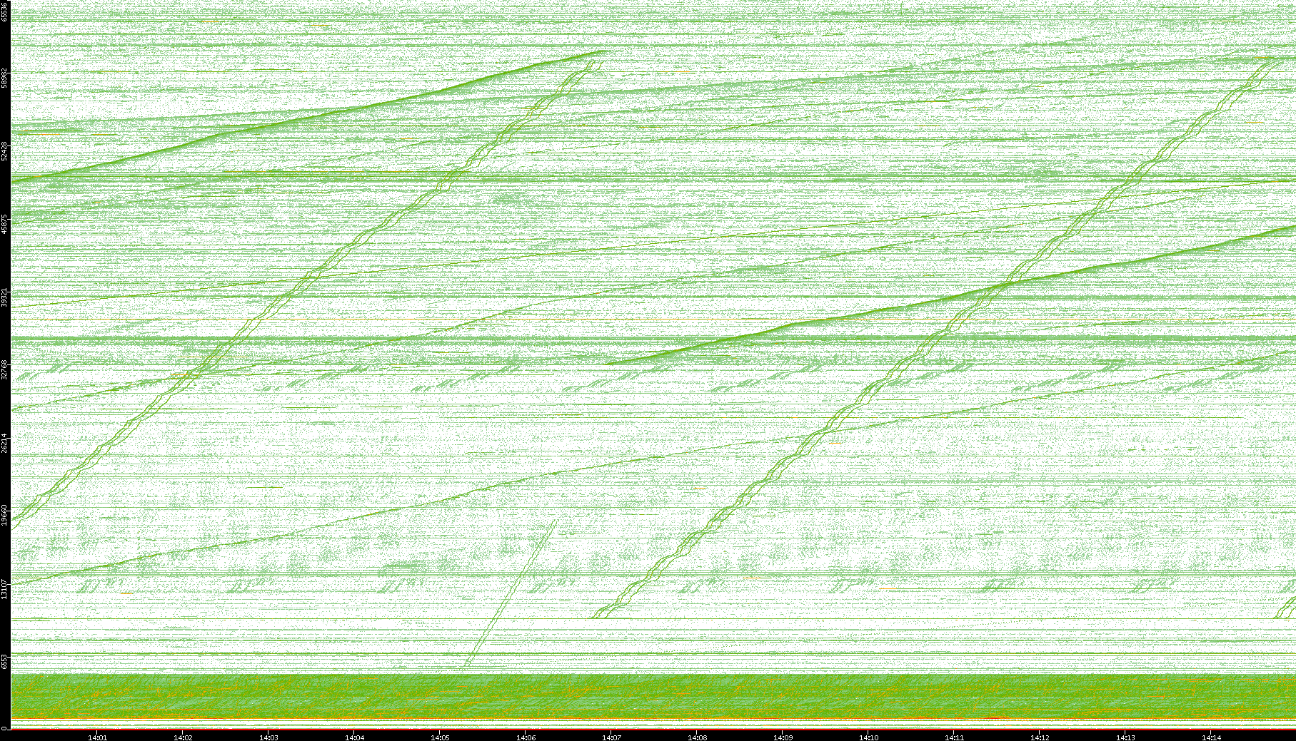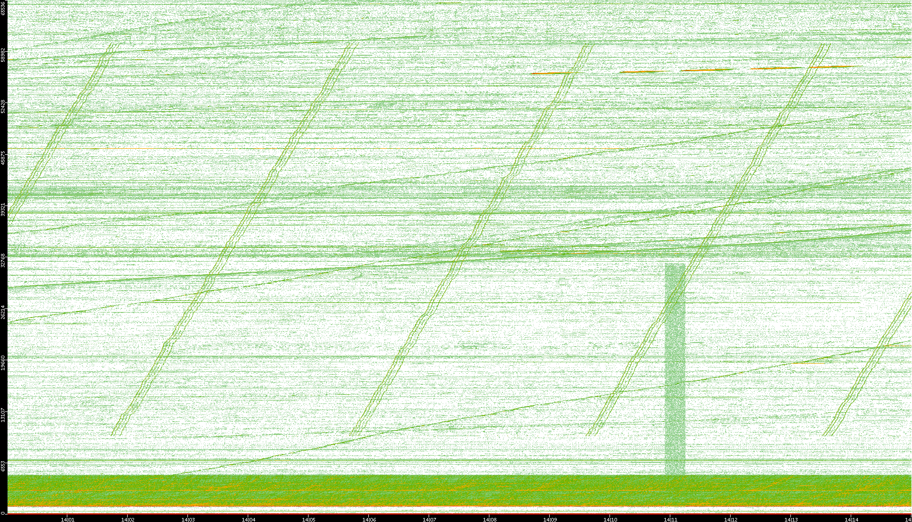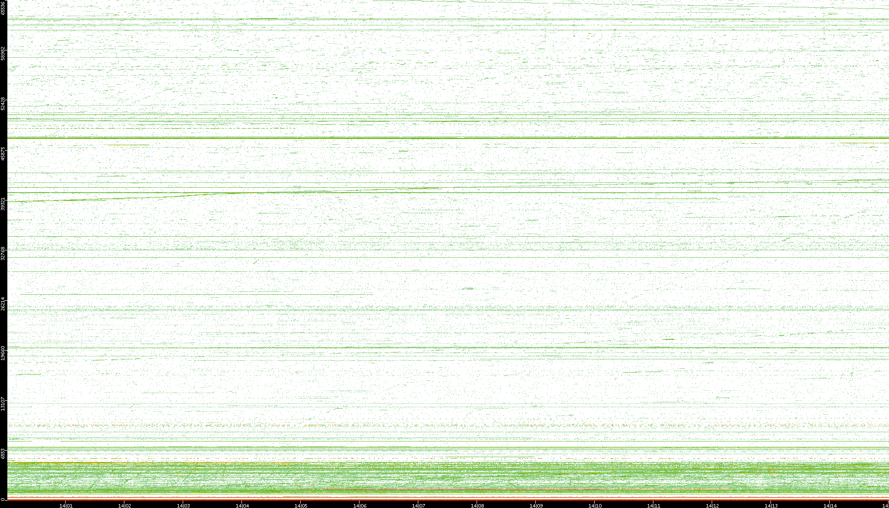 2004/05/14 Dest. IP vs. Time Dest. Port vs. Time Src. IP vs. Time Src. Port vs. Time Nb. of Packets vs. Time Throughput vs. Time Average Packet Size vs. Time Entropy of Port vs. Time