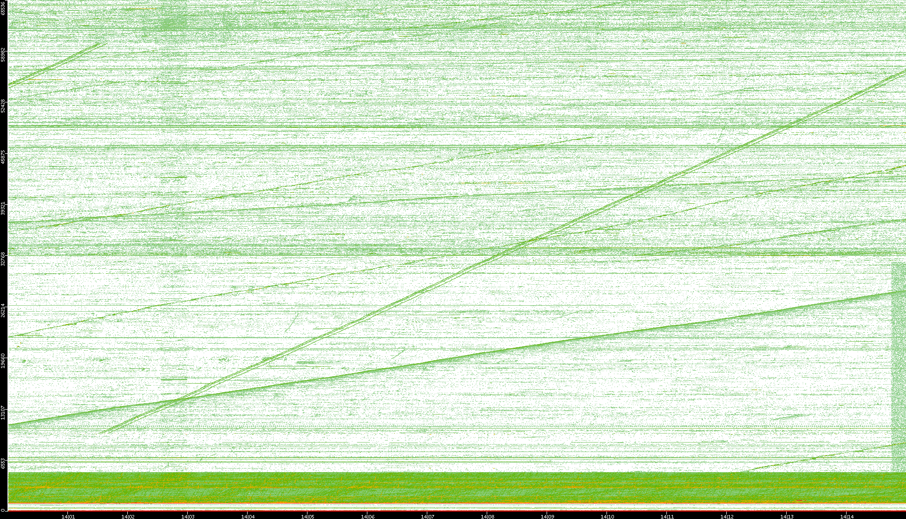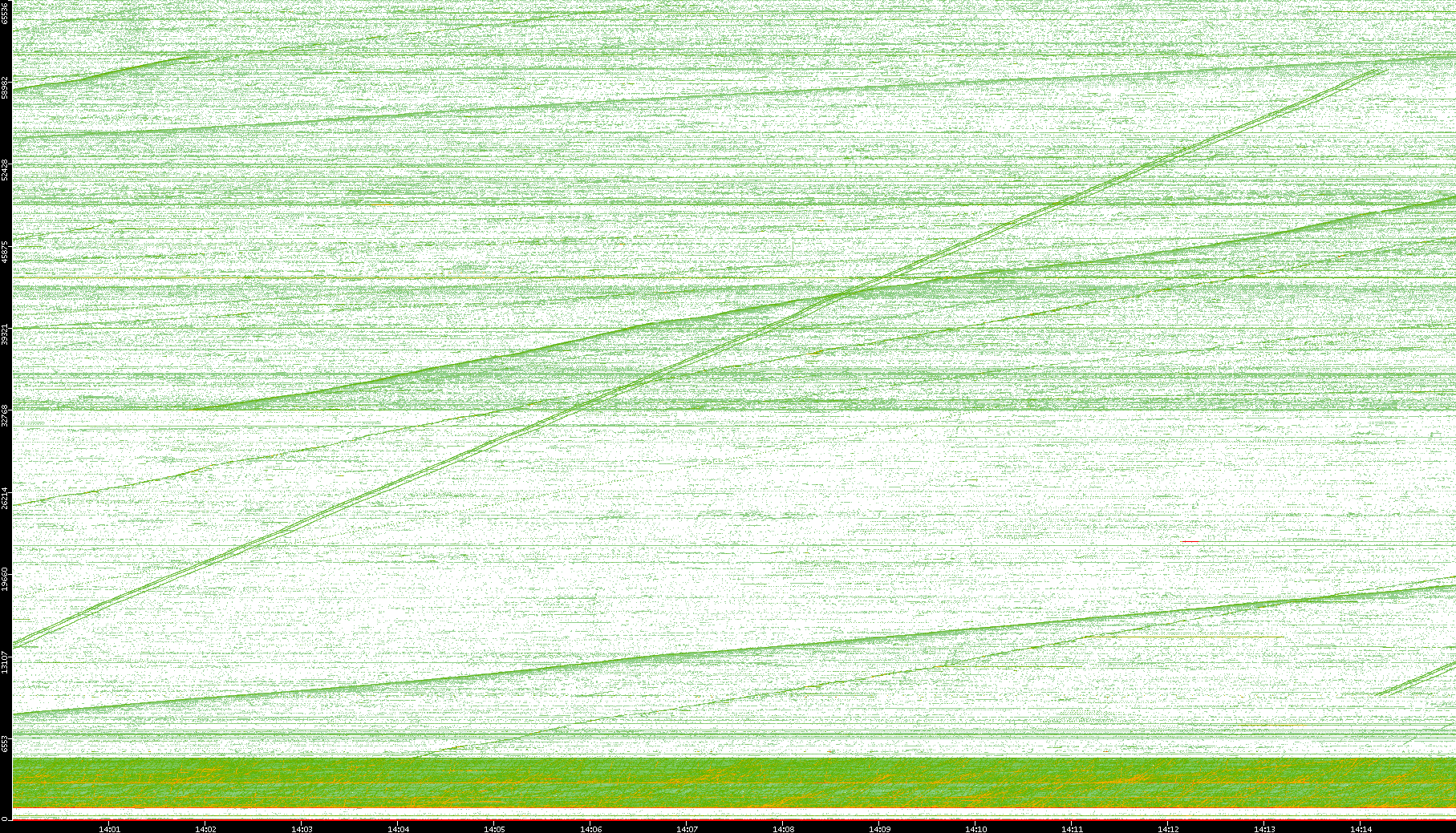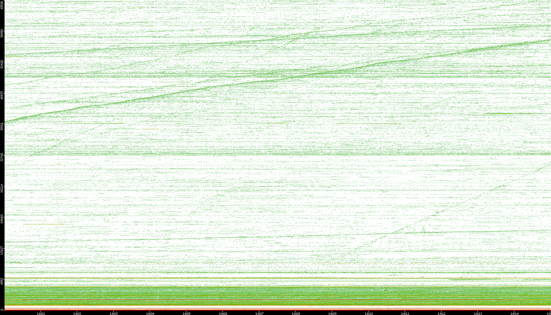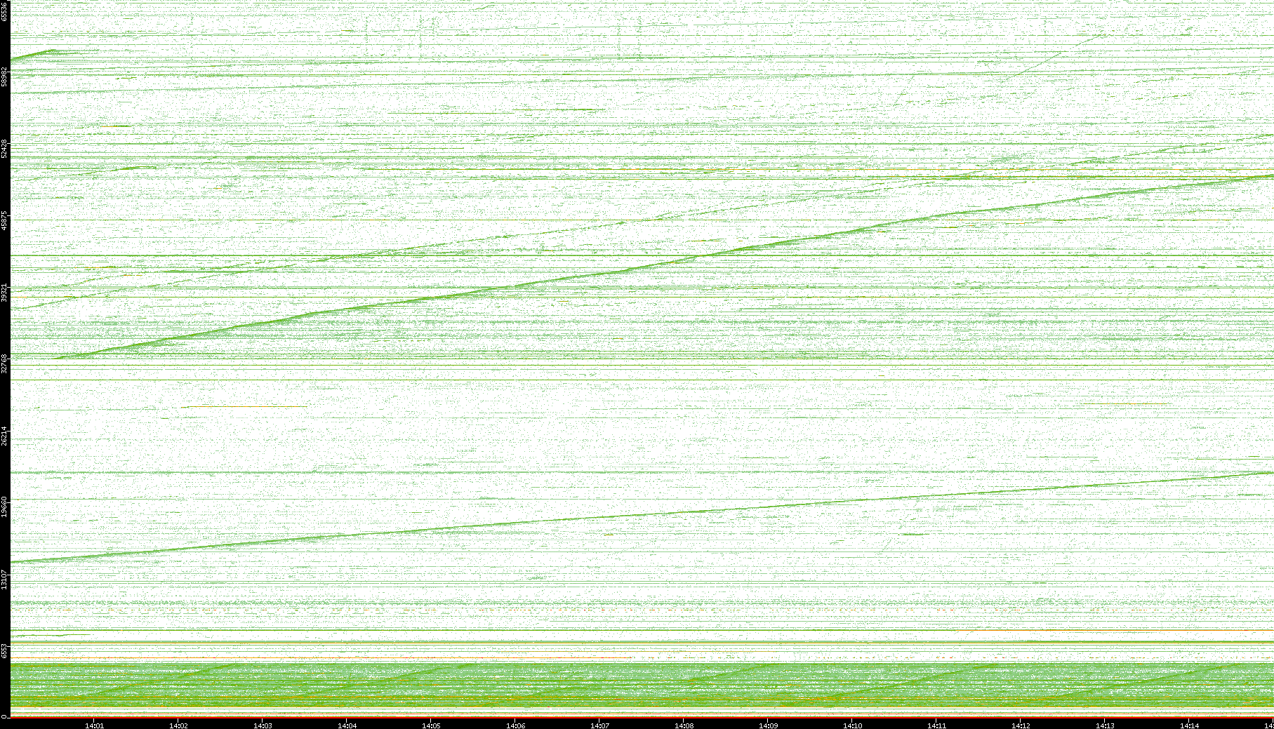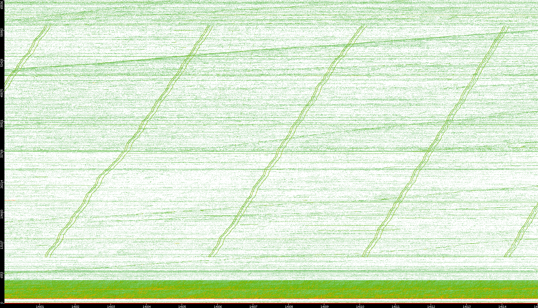 2004/05/14 Dest. IP vs. Time Dest. Port vs. Time Src. IP vs. Time Src. Port vs. Time Nb. of Packets vs. Time Throughput vs. Time Average Packet Size vs. Time Entropy of Port vs. Time