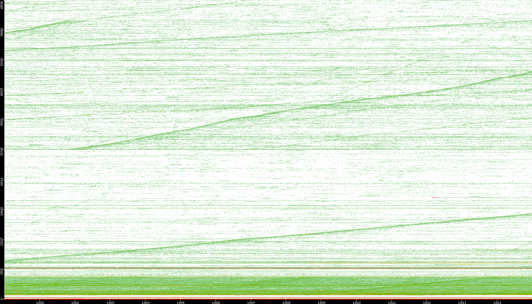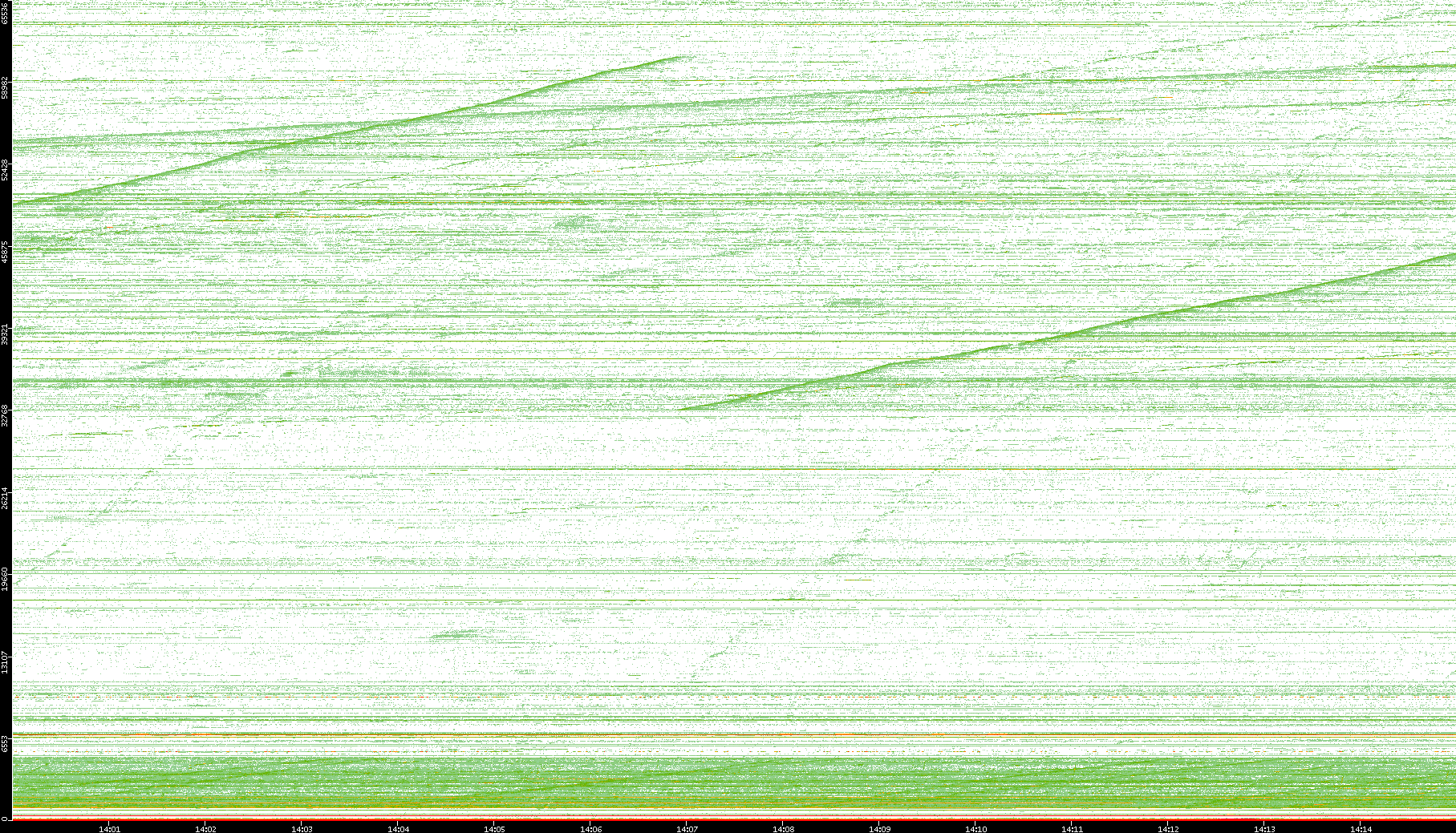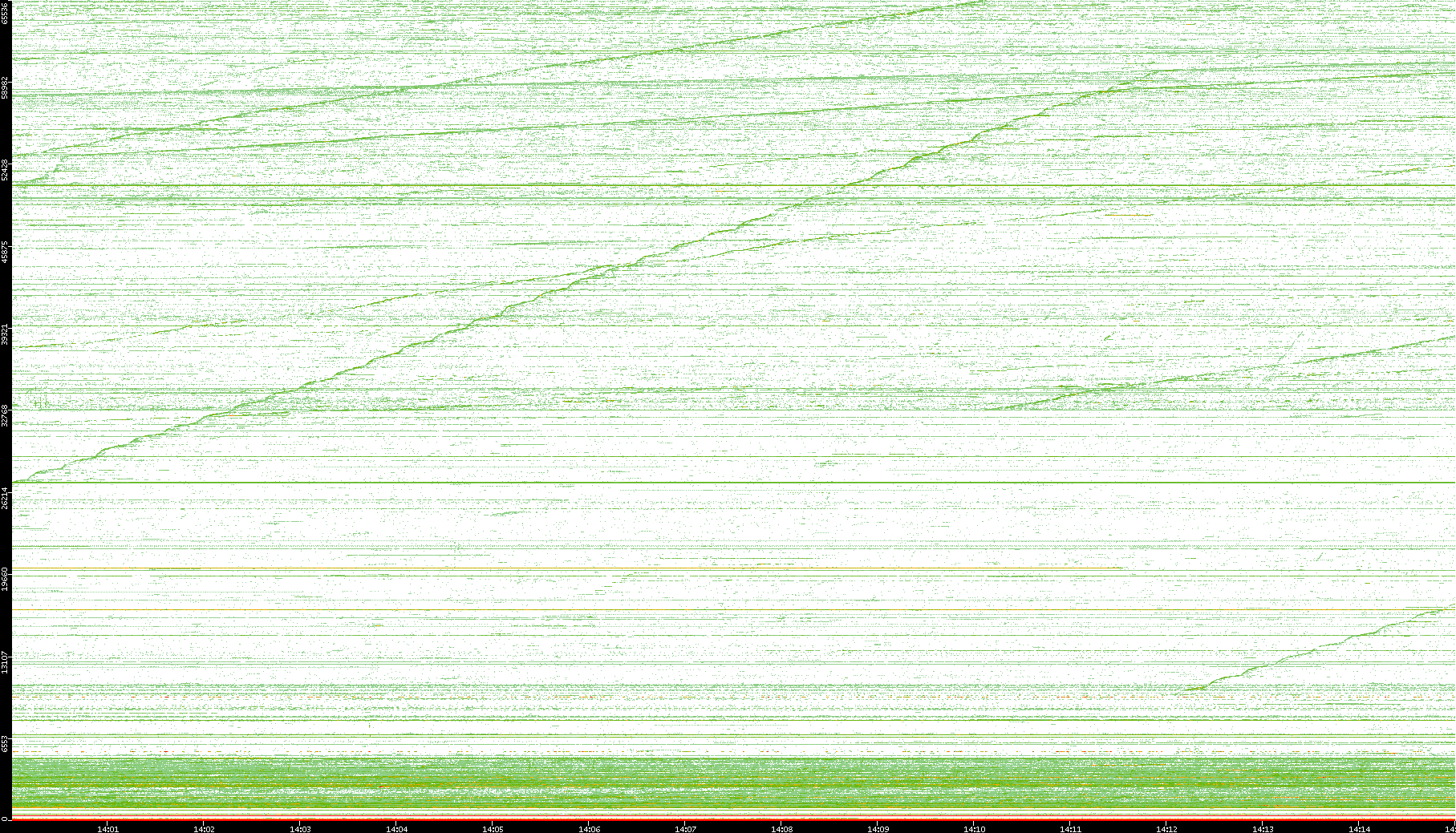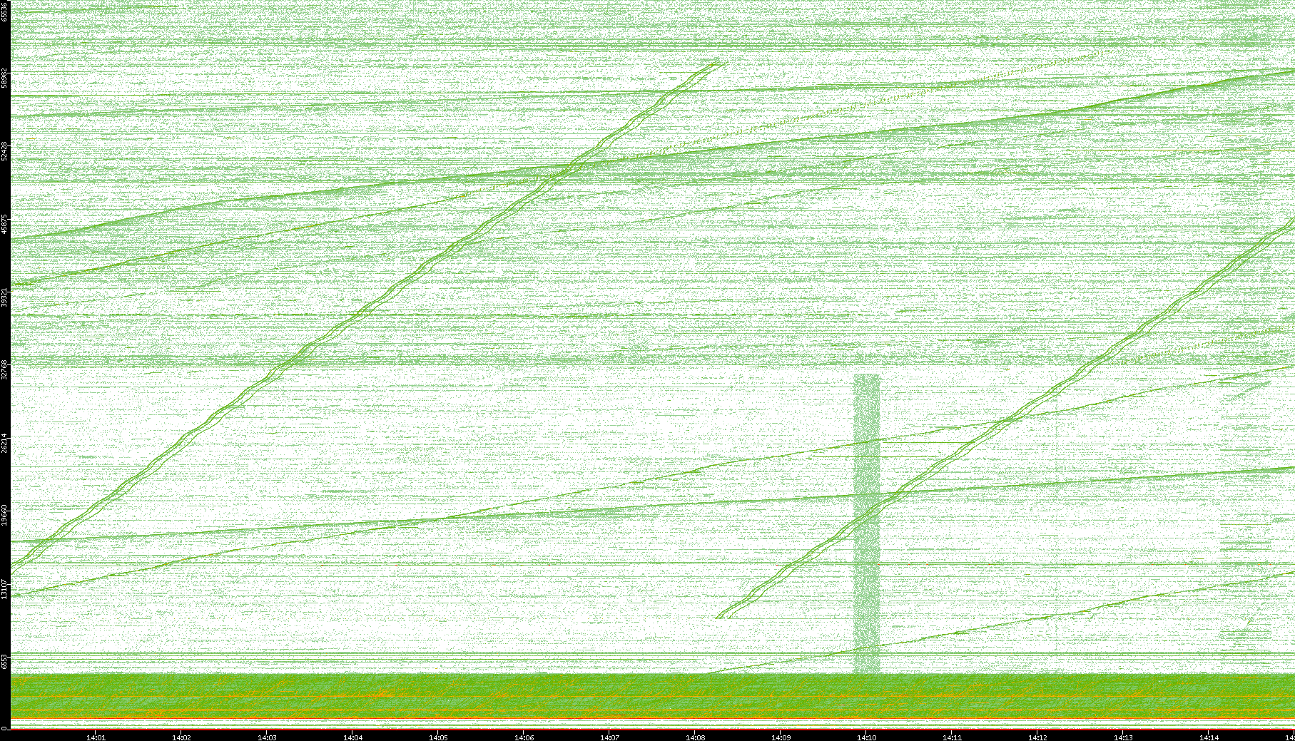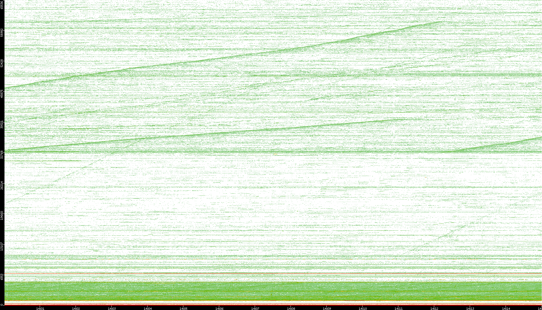 2004/05/14 Dest. IP vs. Time Dest. Port vs. Time Src. IP vs. Time Src. Port vs. Time Nb. of Packets vs. Time Throughput vs. Time Average Packet Size vs. Time Entropy of Port vs. Time