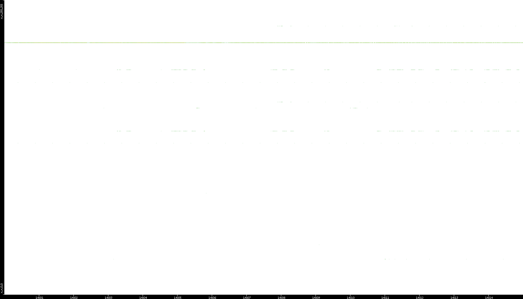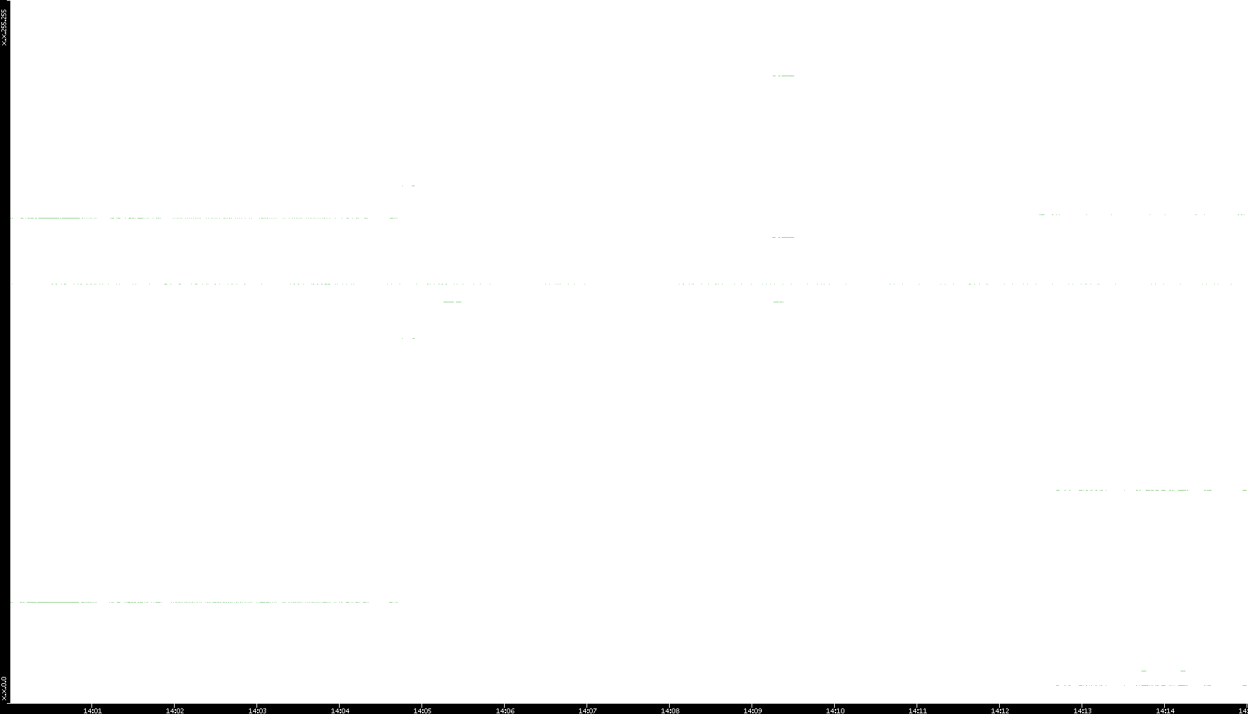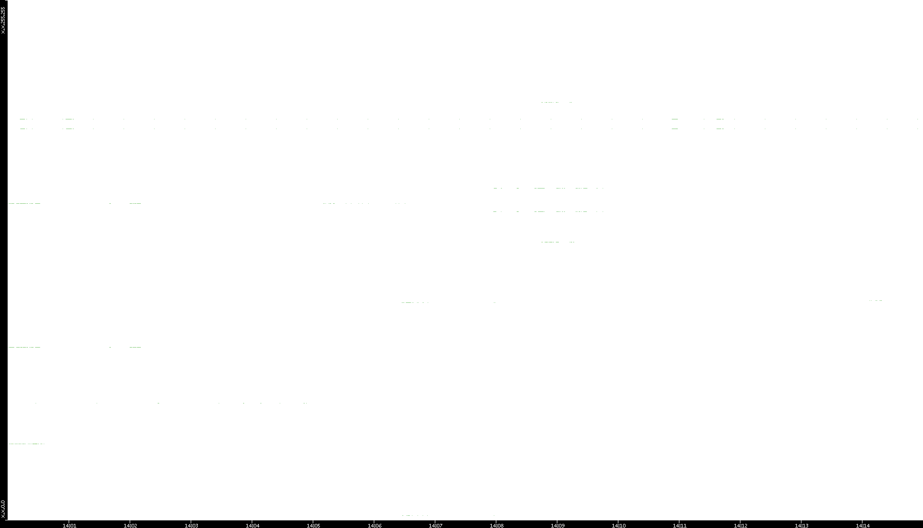 | Date | Dest. IP vs. Time | Dest. Port vs. Time | Src. IP vs. Time | Src. Port vs. Time | Nb. of Packets vs. Time | Throughput vs. Time | Average Packet Size vs. Time | Entropy of Port vs. Time |