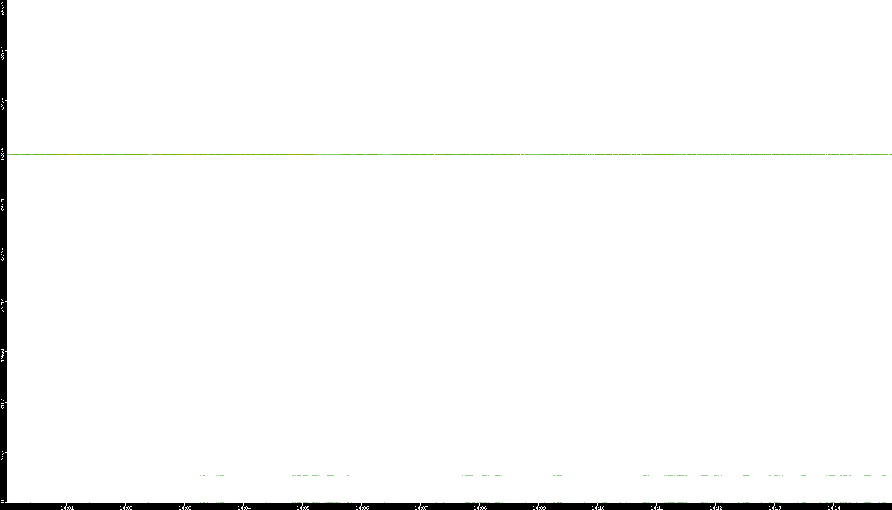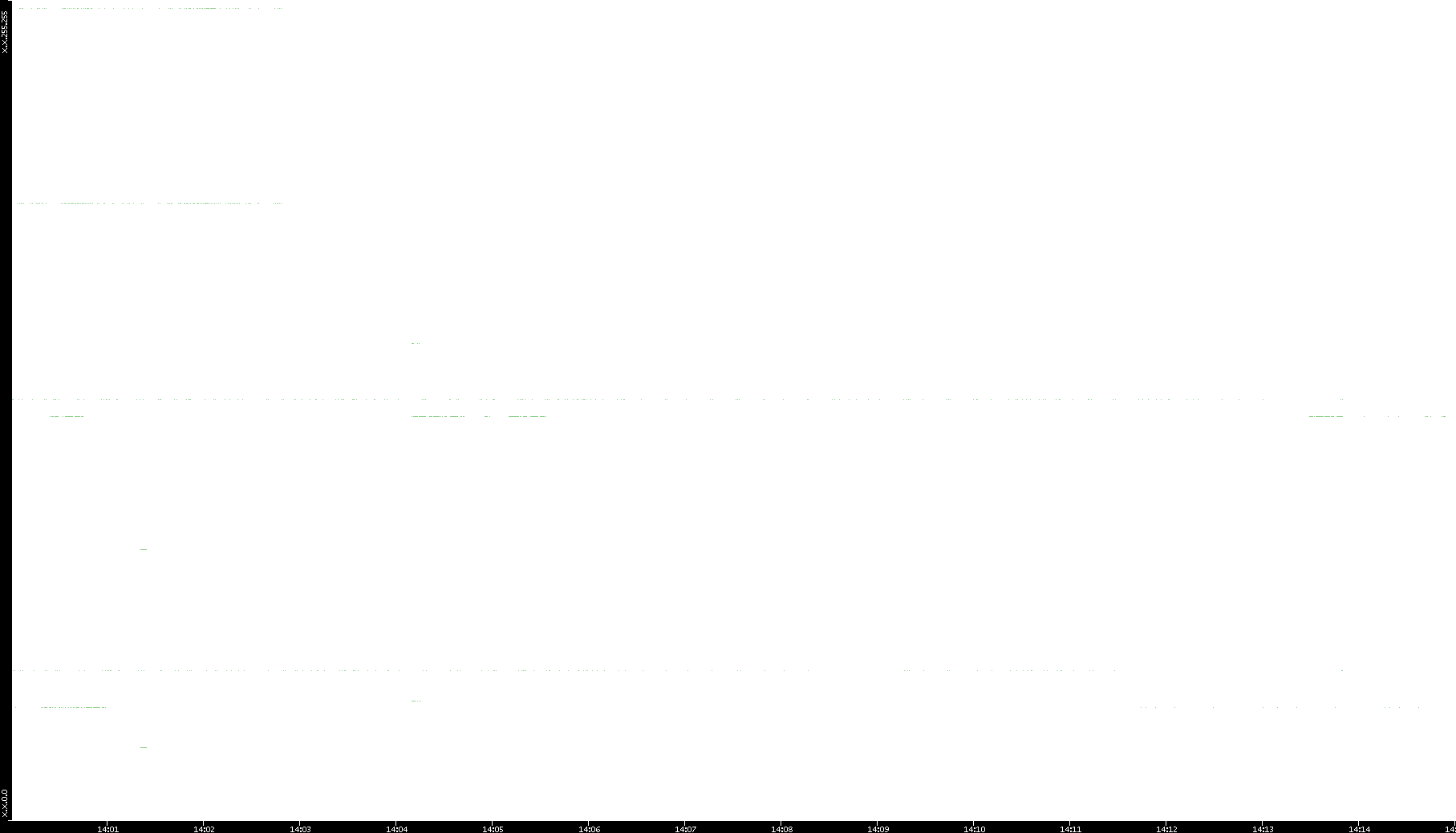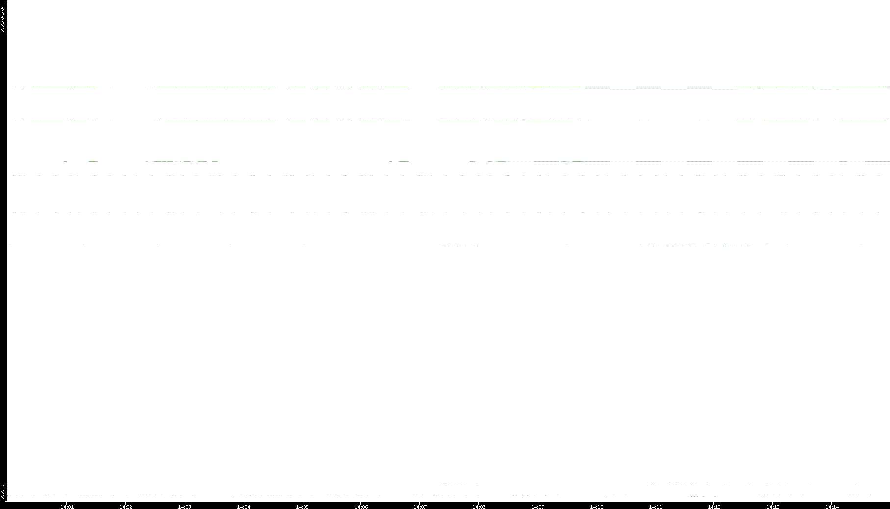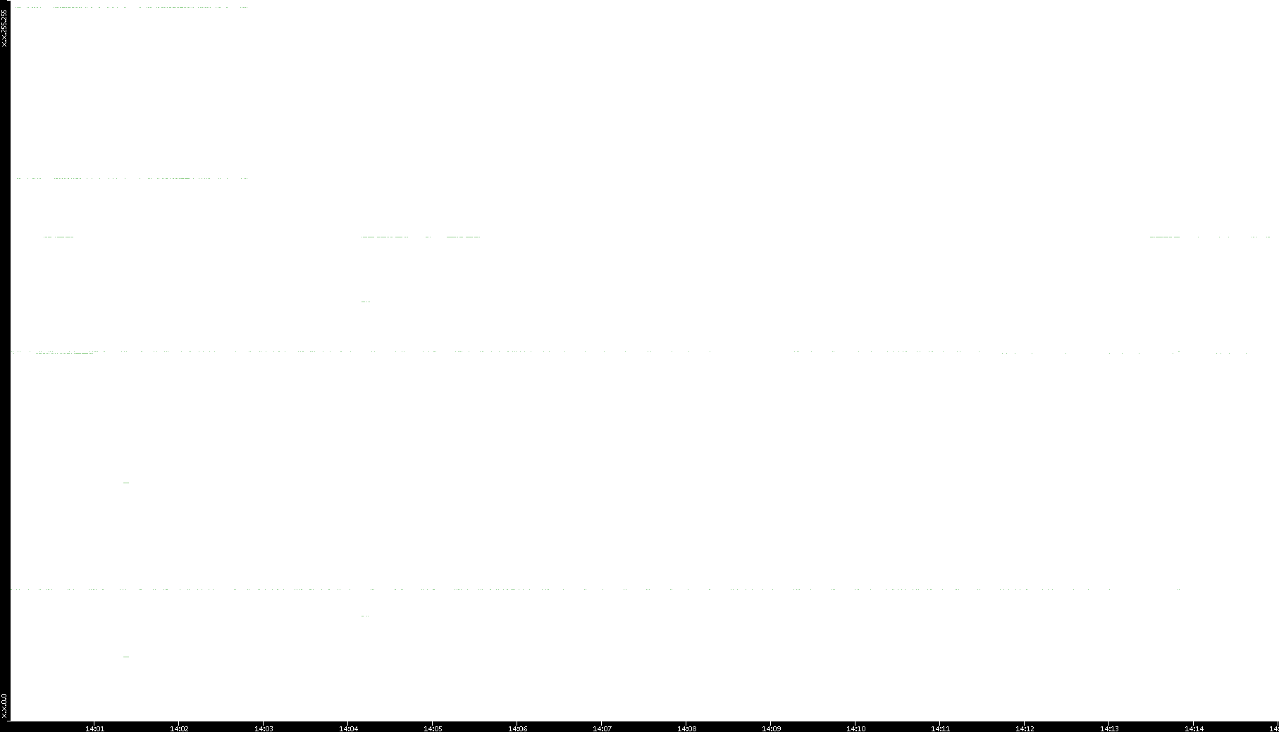 | Date | Dest. IP vs. Time | Dest. Port vs. Time | Src. IP vs. Time | Src. Port vs. Time | Nb. of Packets vs. Time | Throughput vs. Time | Average Packet Size vs. Time | Entropy of Port vs. Time |